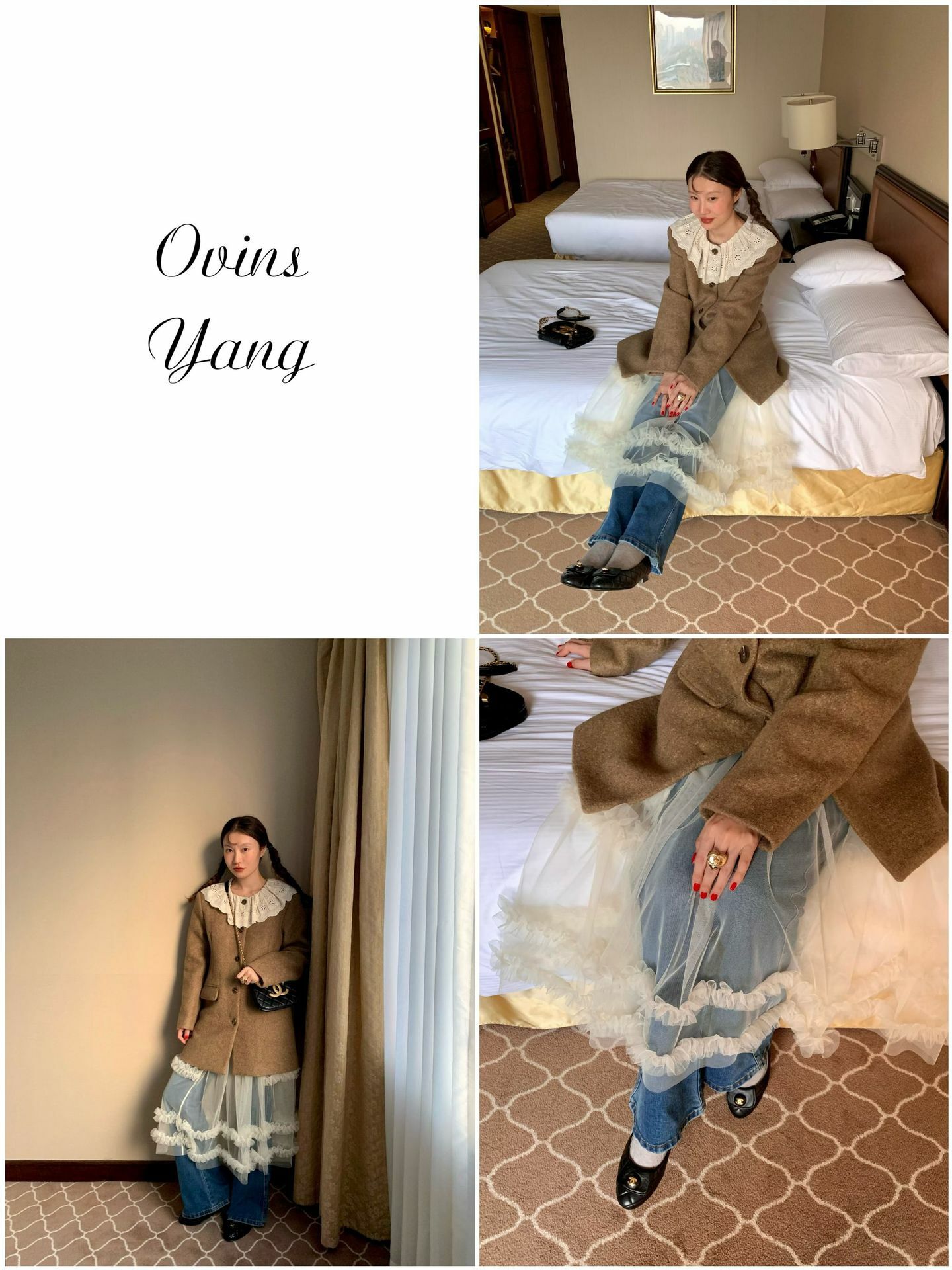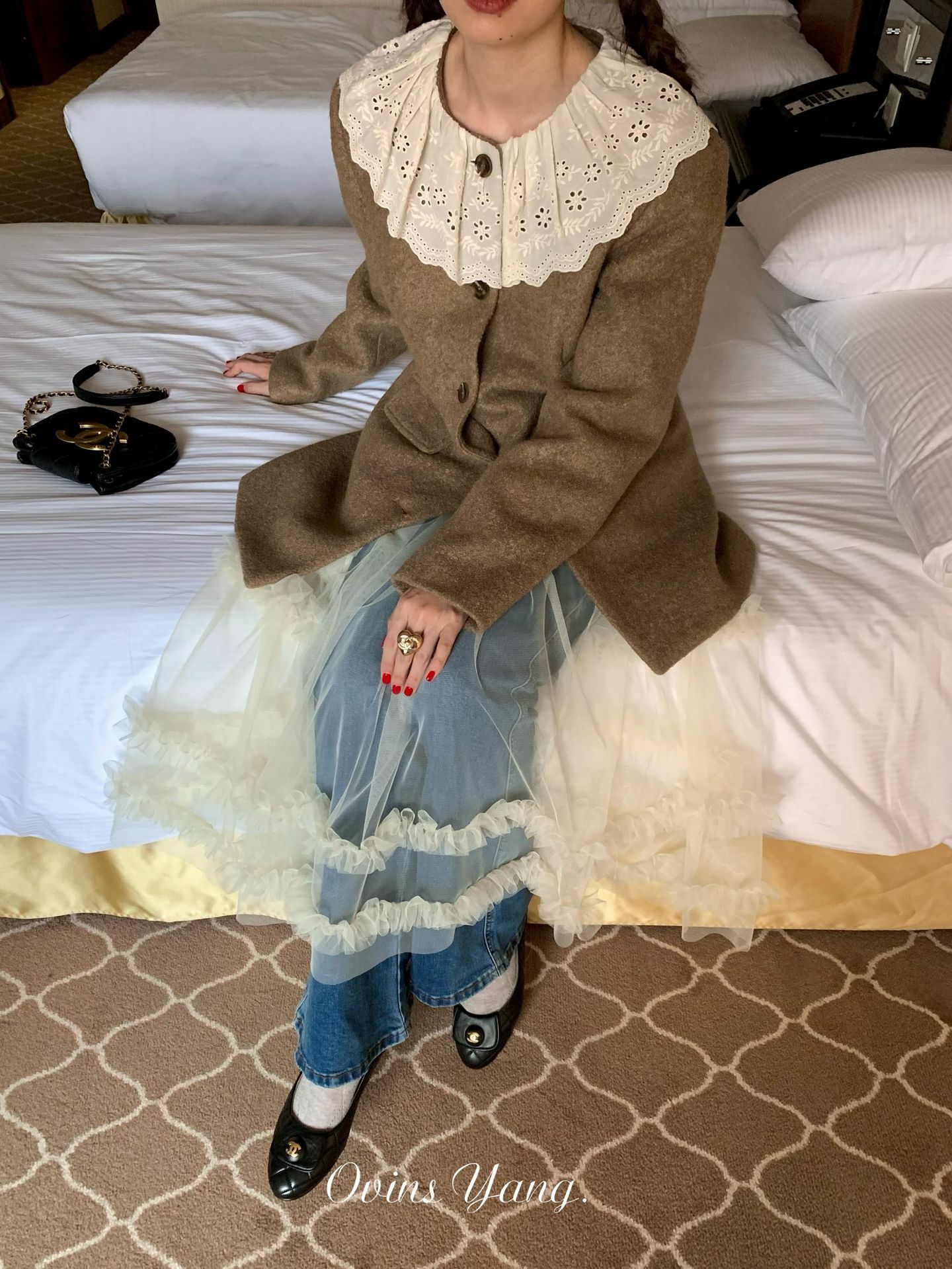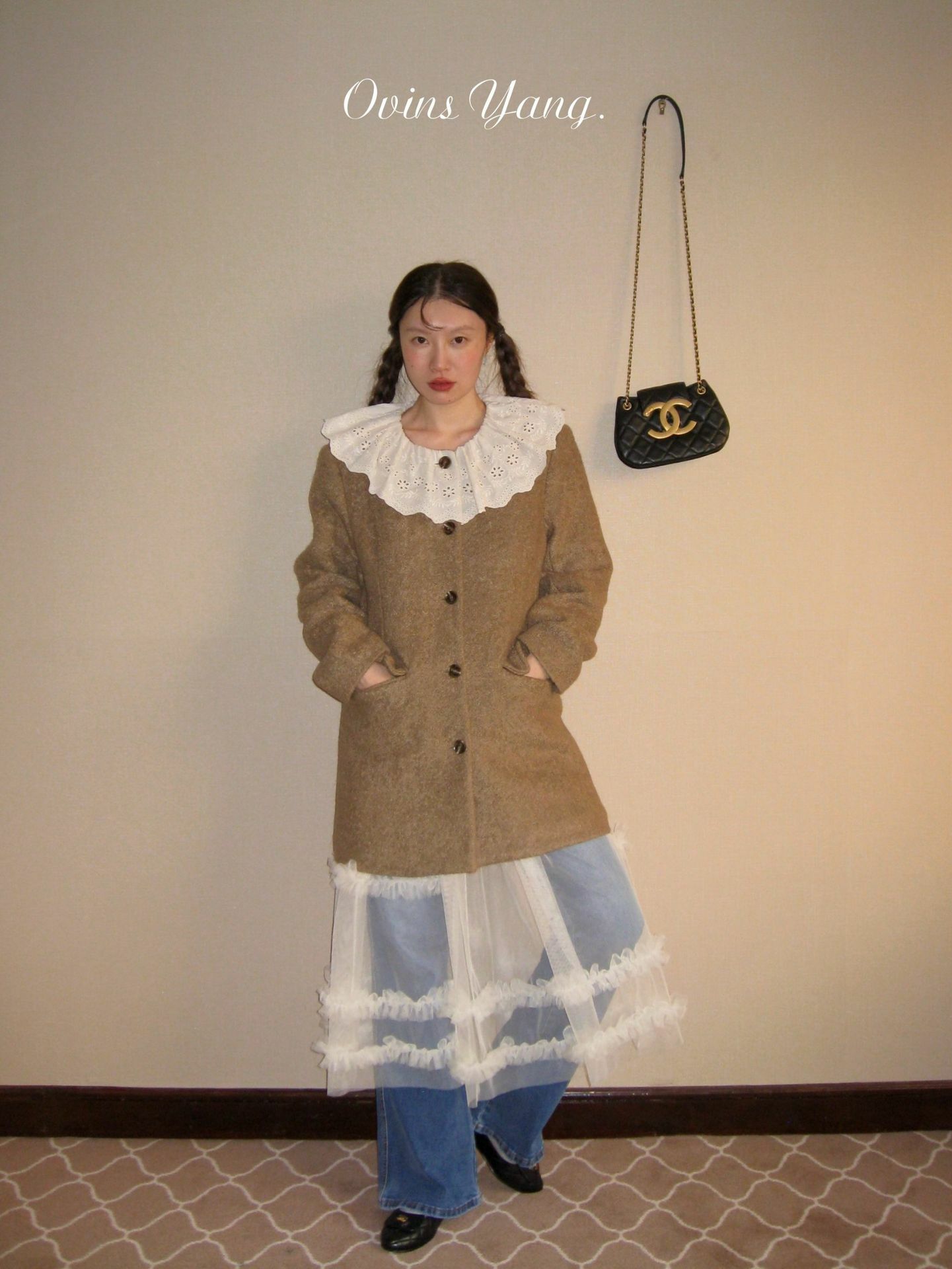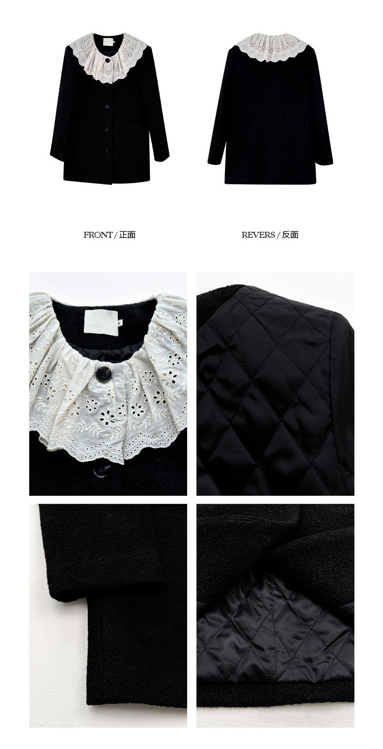 *o-ha-you*【FOY100387】蕾絲羊毛大衣毛呢外套中長款2024新款甜美小西裝外套-2色-如有需要請先諮詢