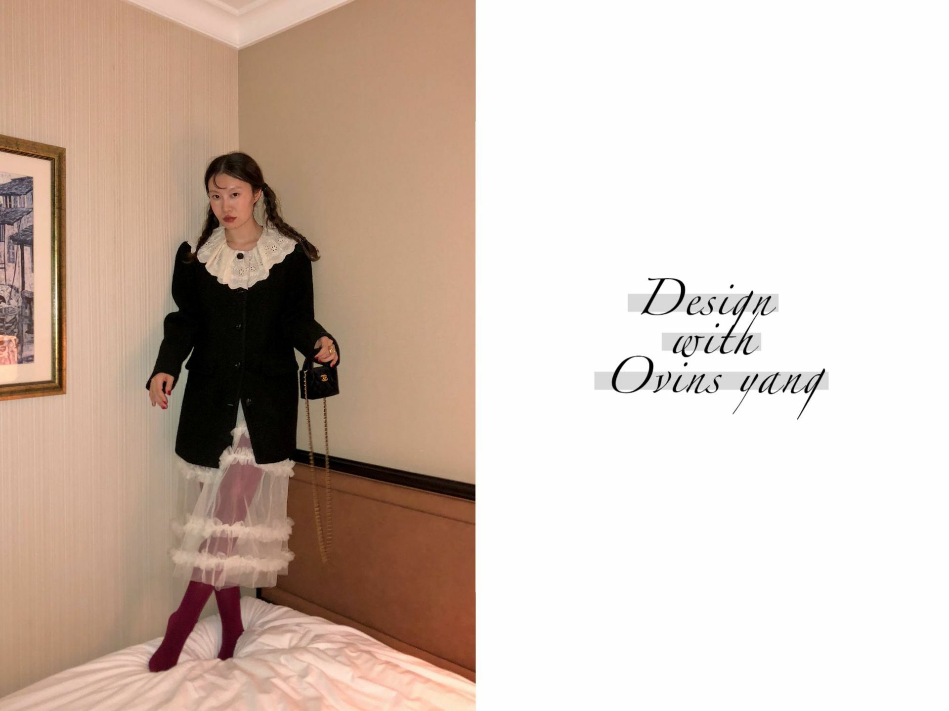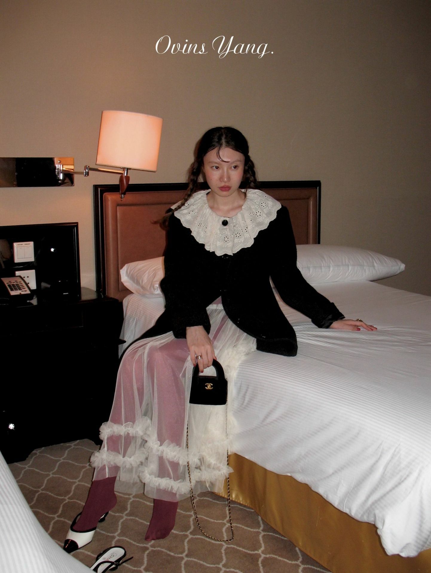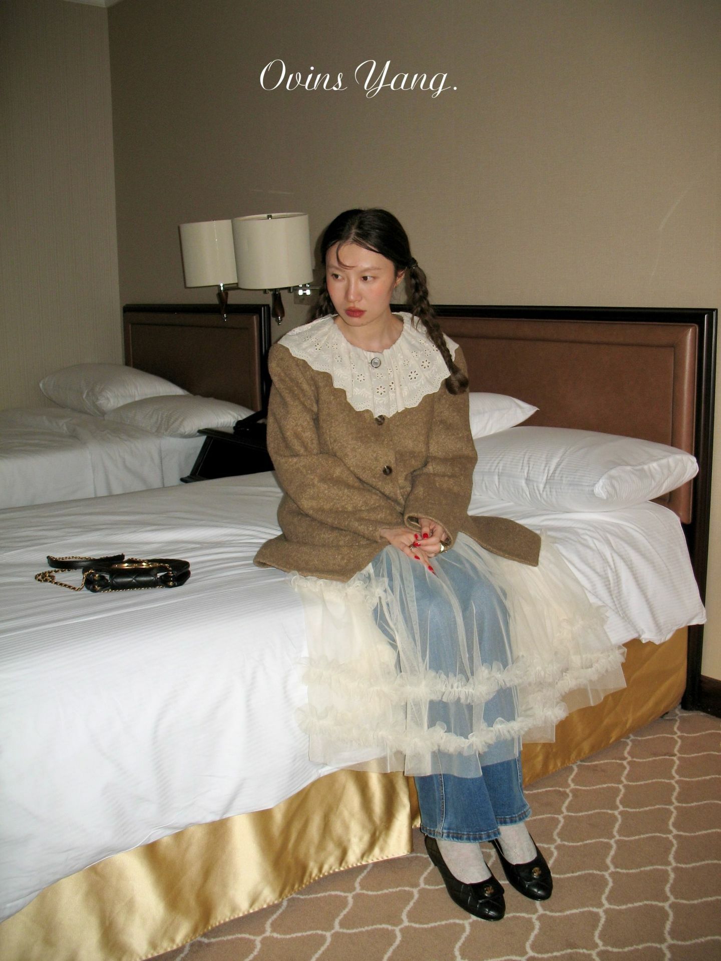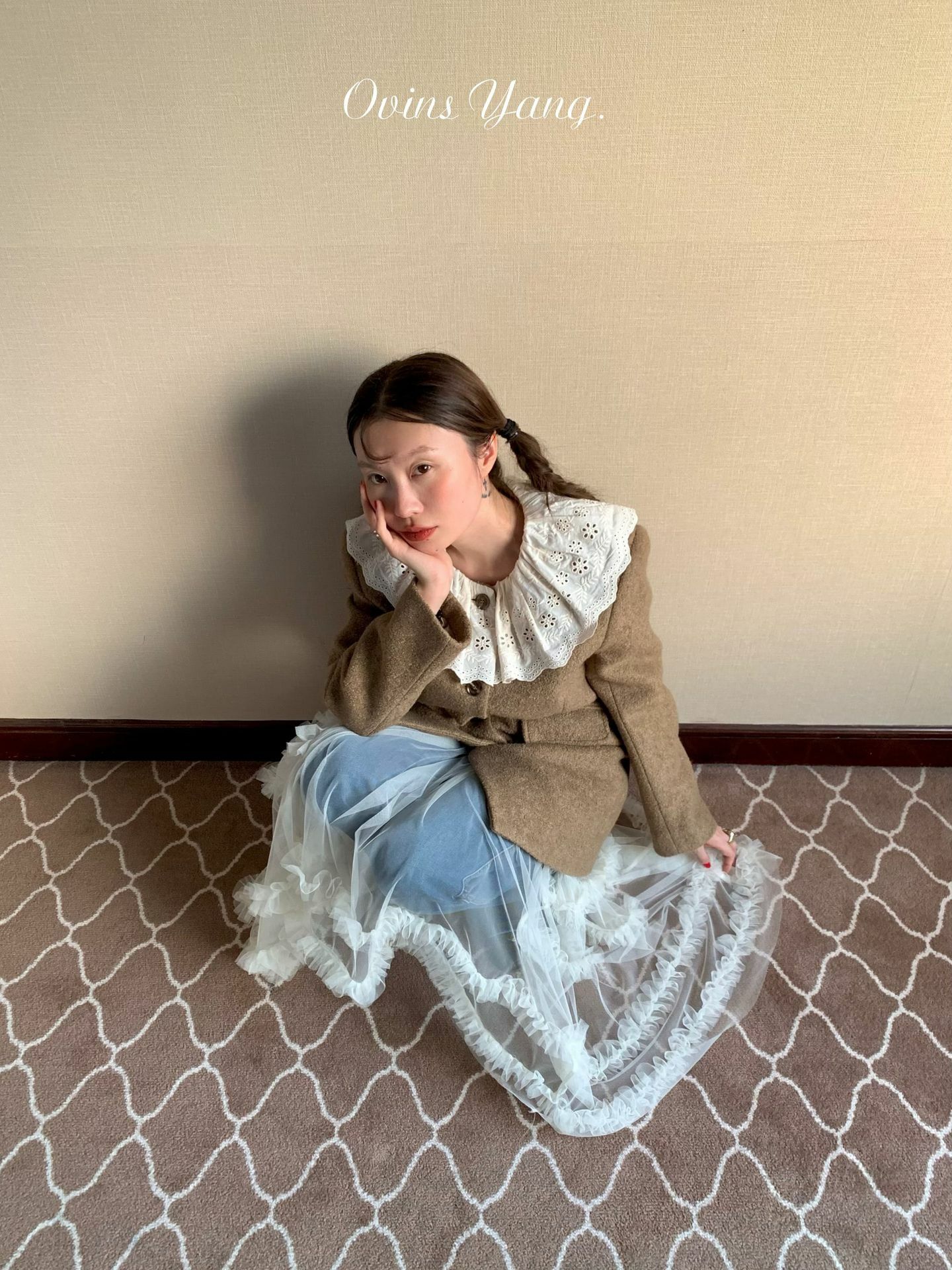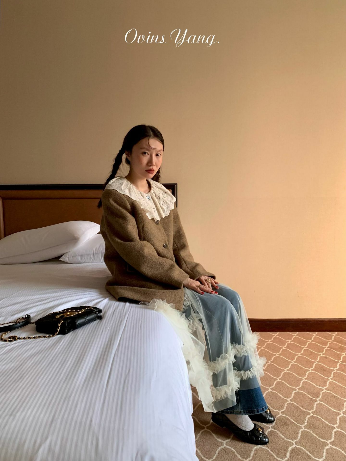 *o-ha-you*【FOY100387】蕾絲羊毛大衣毛呢外套中長款2024新款甜美小西裝外套-2色-如有需要請先諮詢