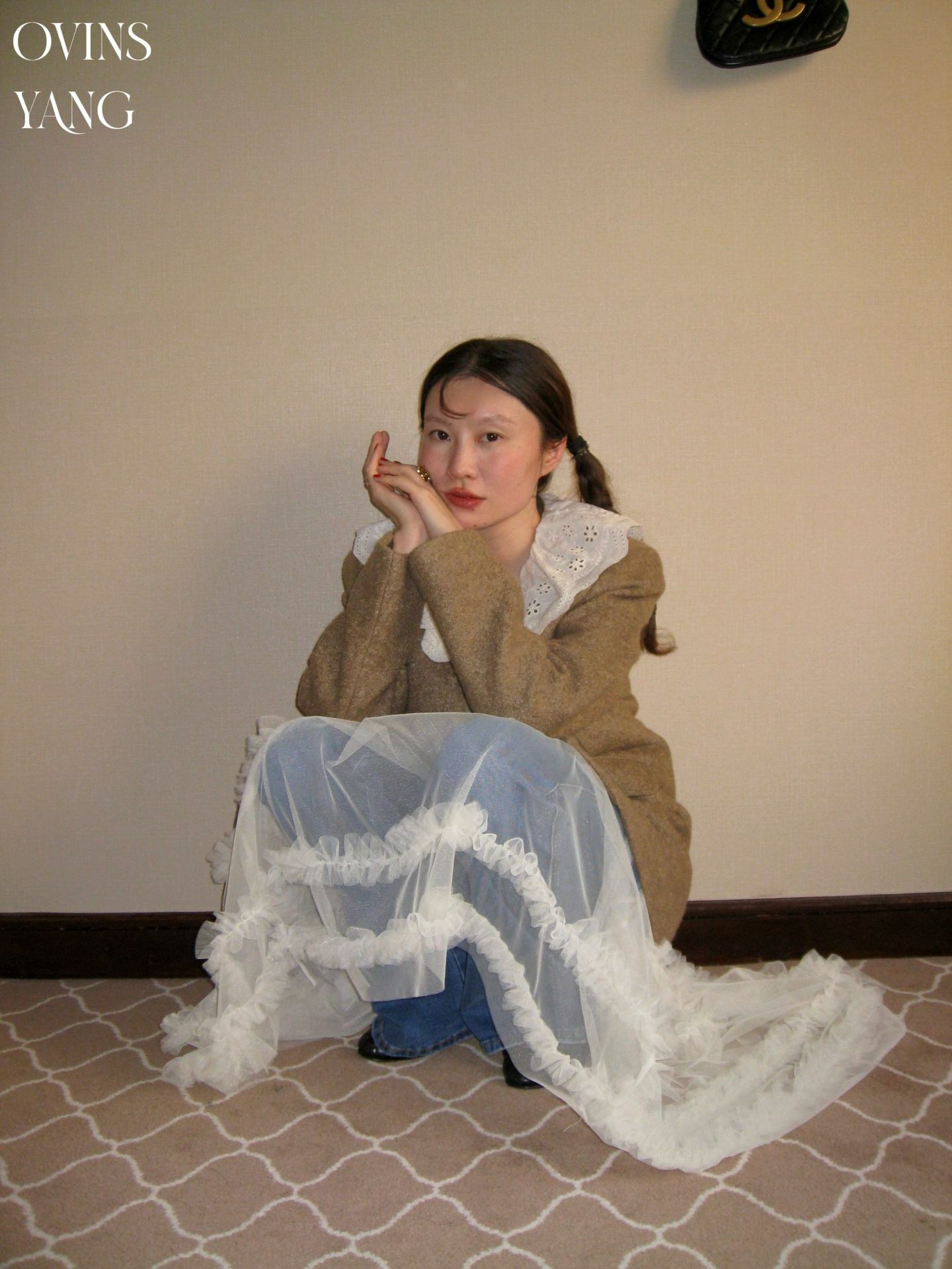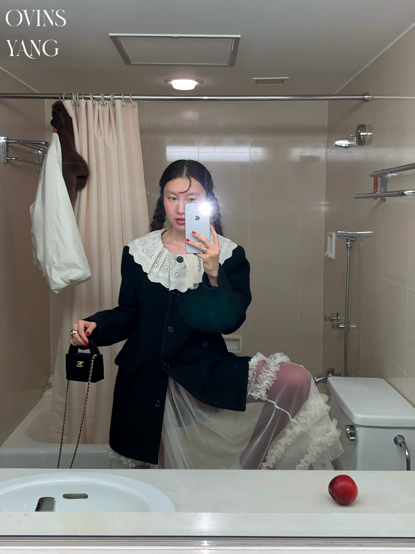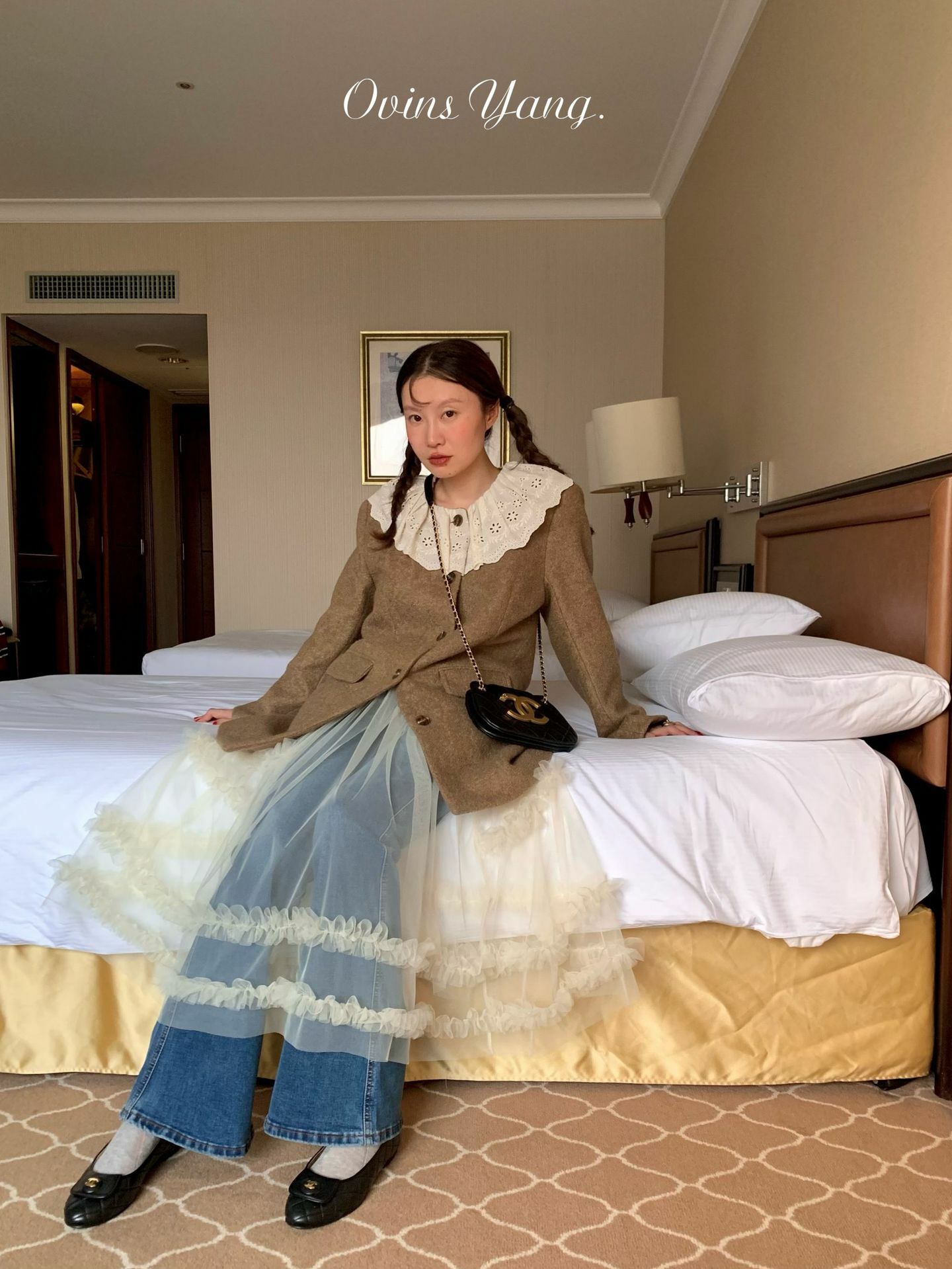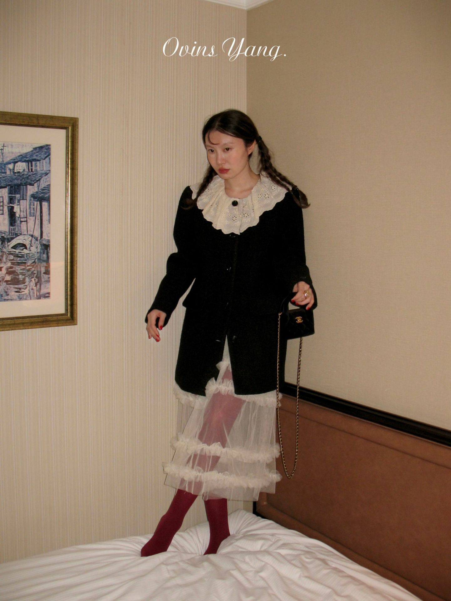 *o-ha-you*【FOY100387】蕾絲羊毛大衣毛呢外套中長款2024新款甜美小西裝外套-2色-如有需要請先諮詢