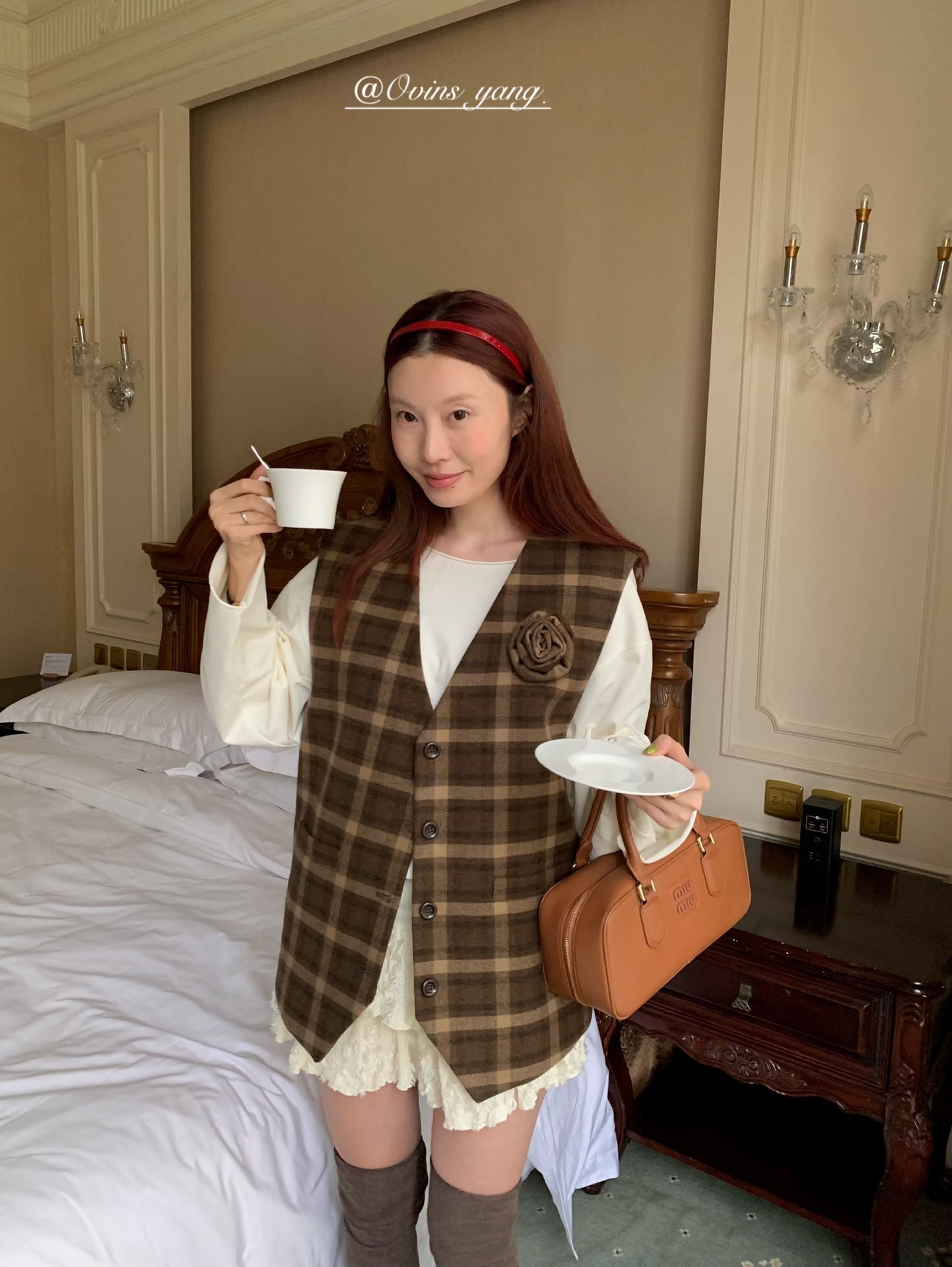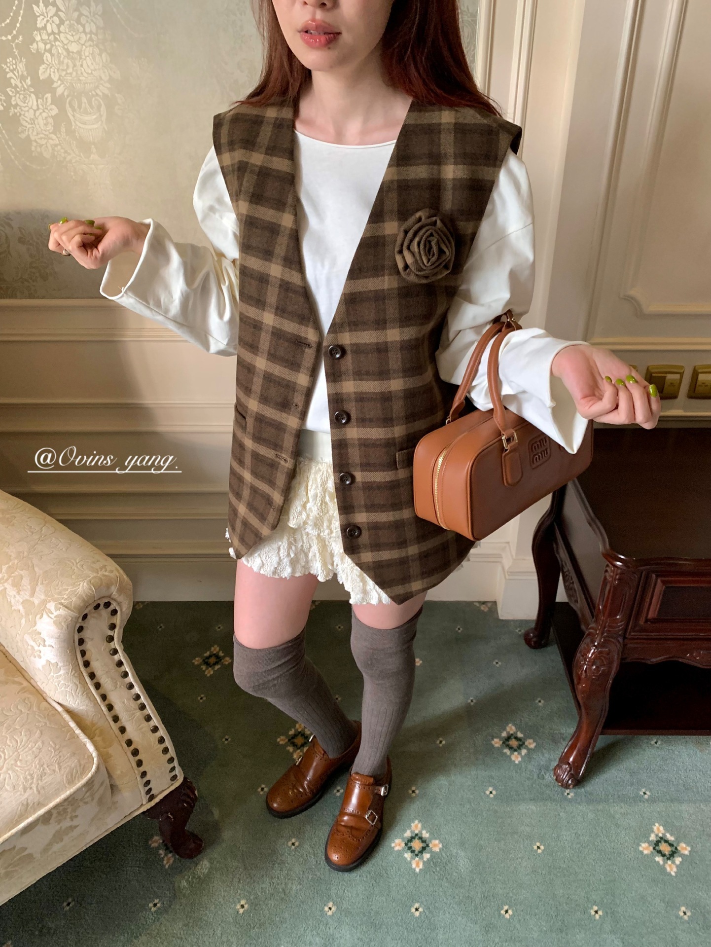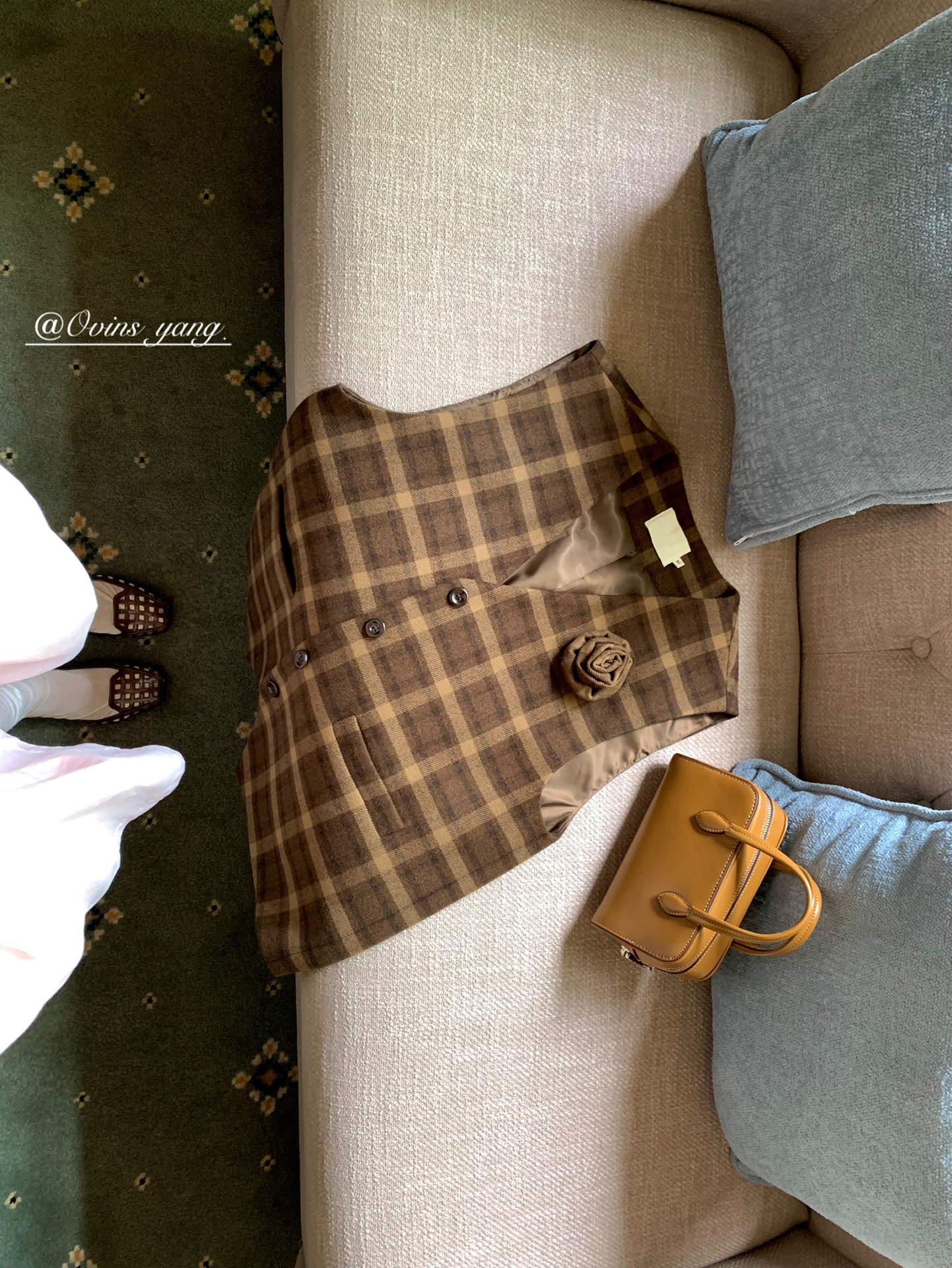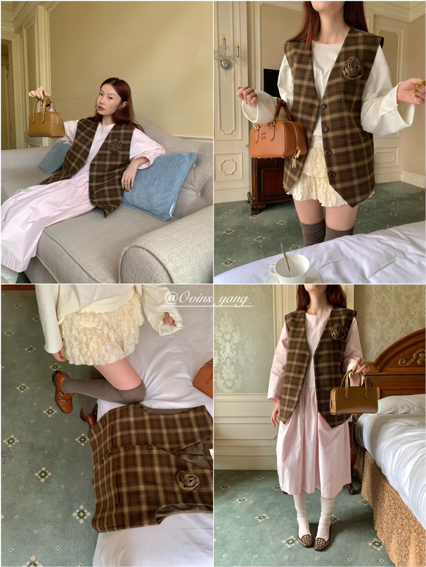 *o-ha-you*【FOY100396】韓系ins風2025新款立體花朵設計感格子背心馬甲外套-2色