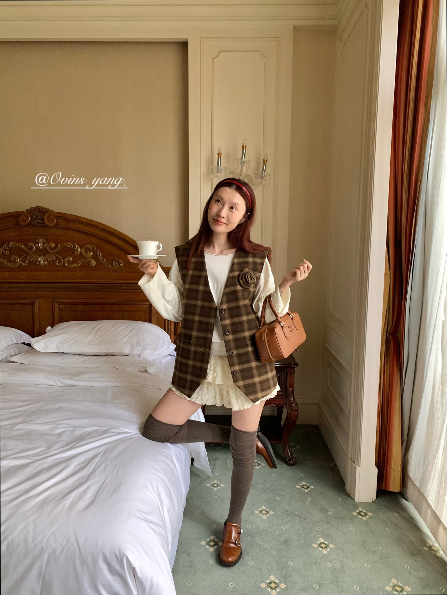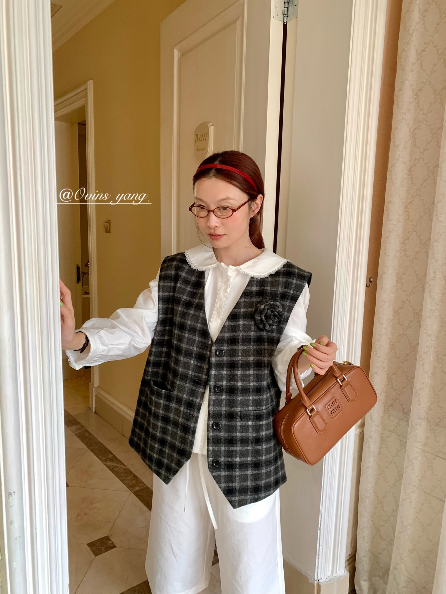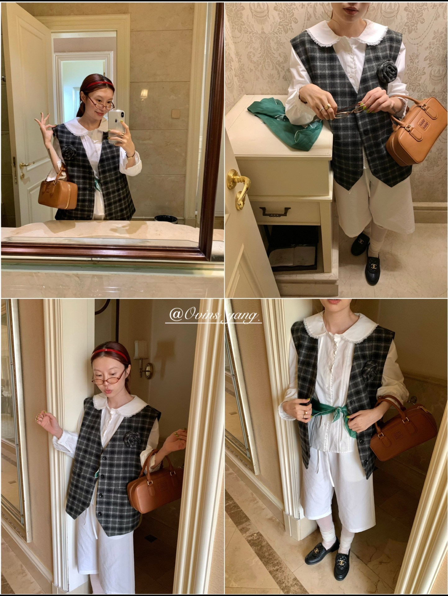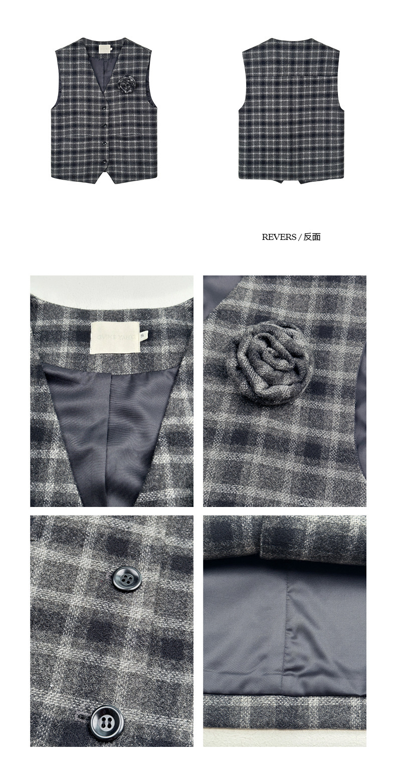 *o-ha-you*【FOY100396】韓系ins風2025新款立體花朵設計感格子背心馬甲外套-2色