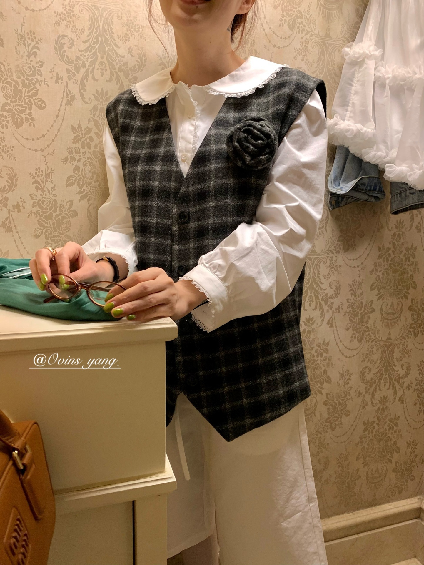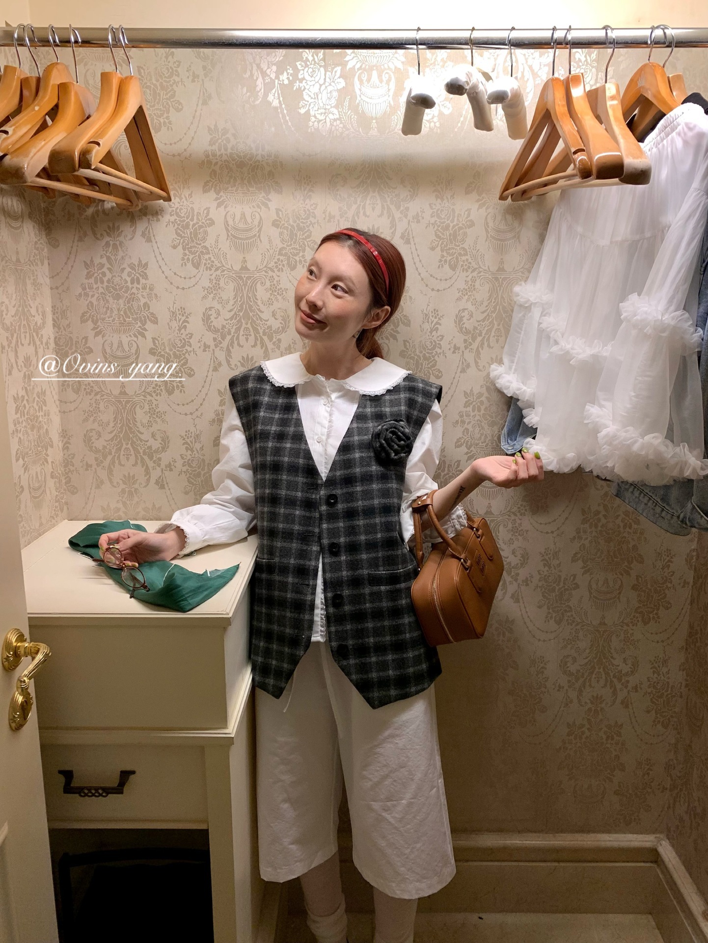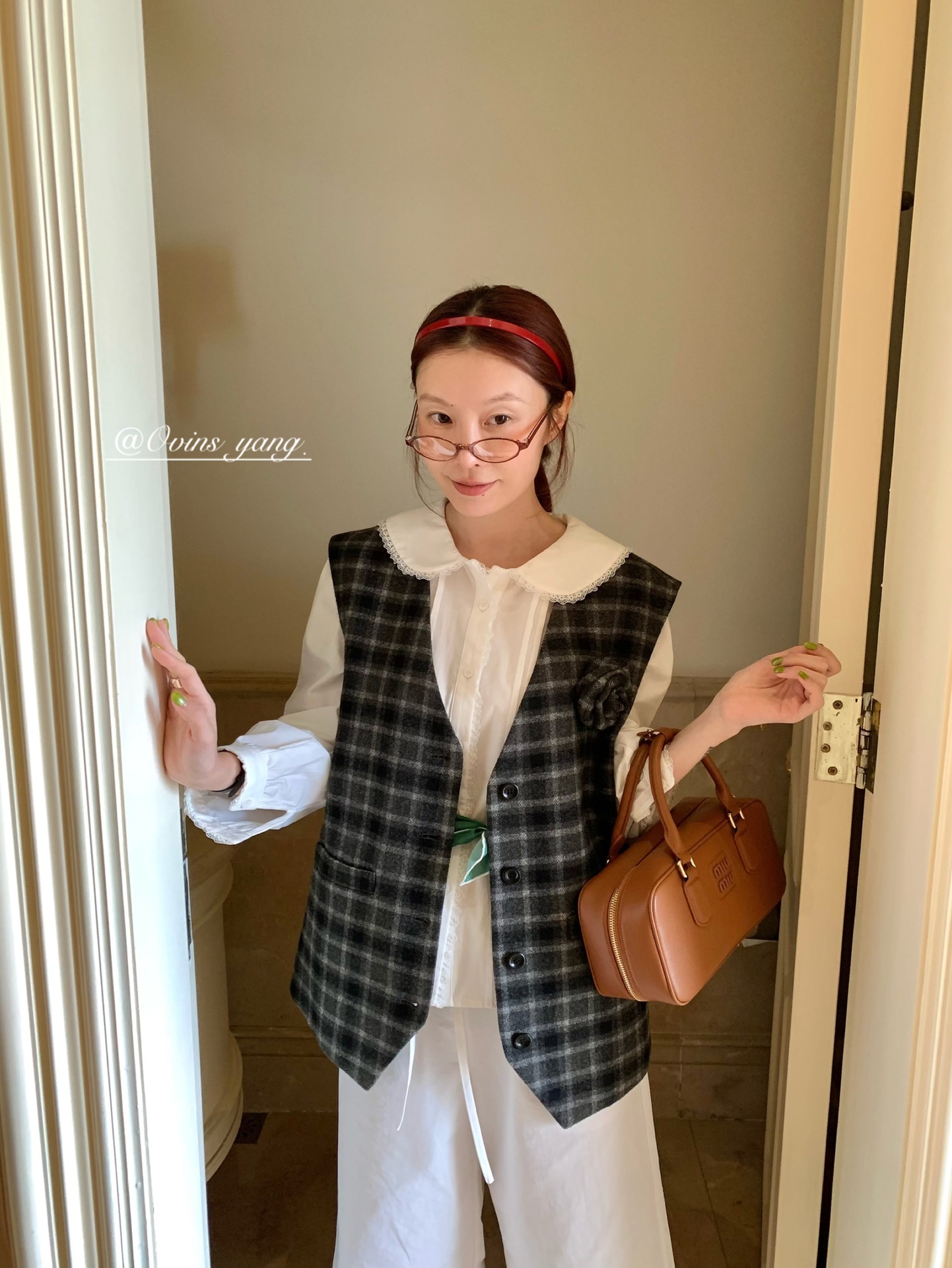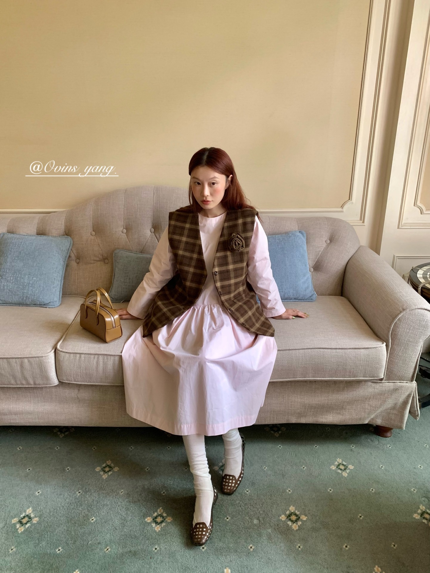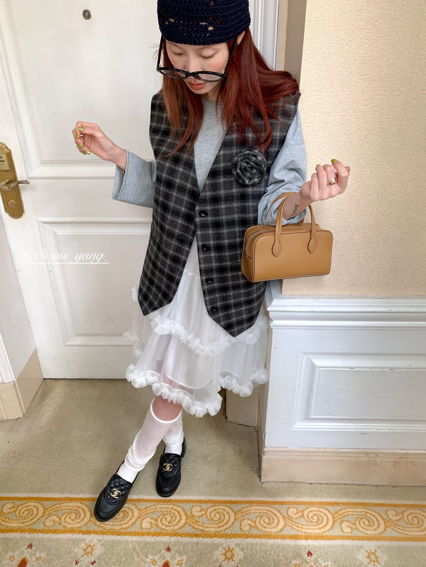 *o-ha-you*【FOY100396】韓系ins風2025新款立體花朵設計感格子背心馬甲外套-2色