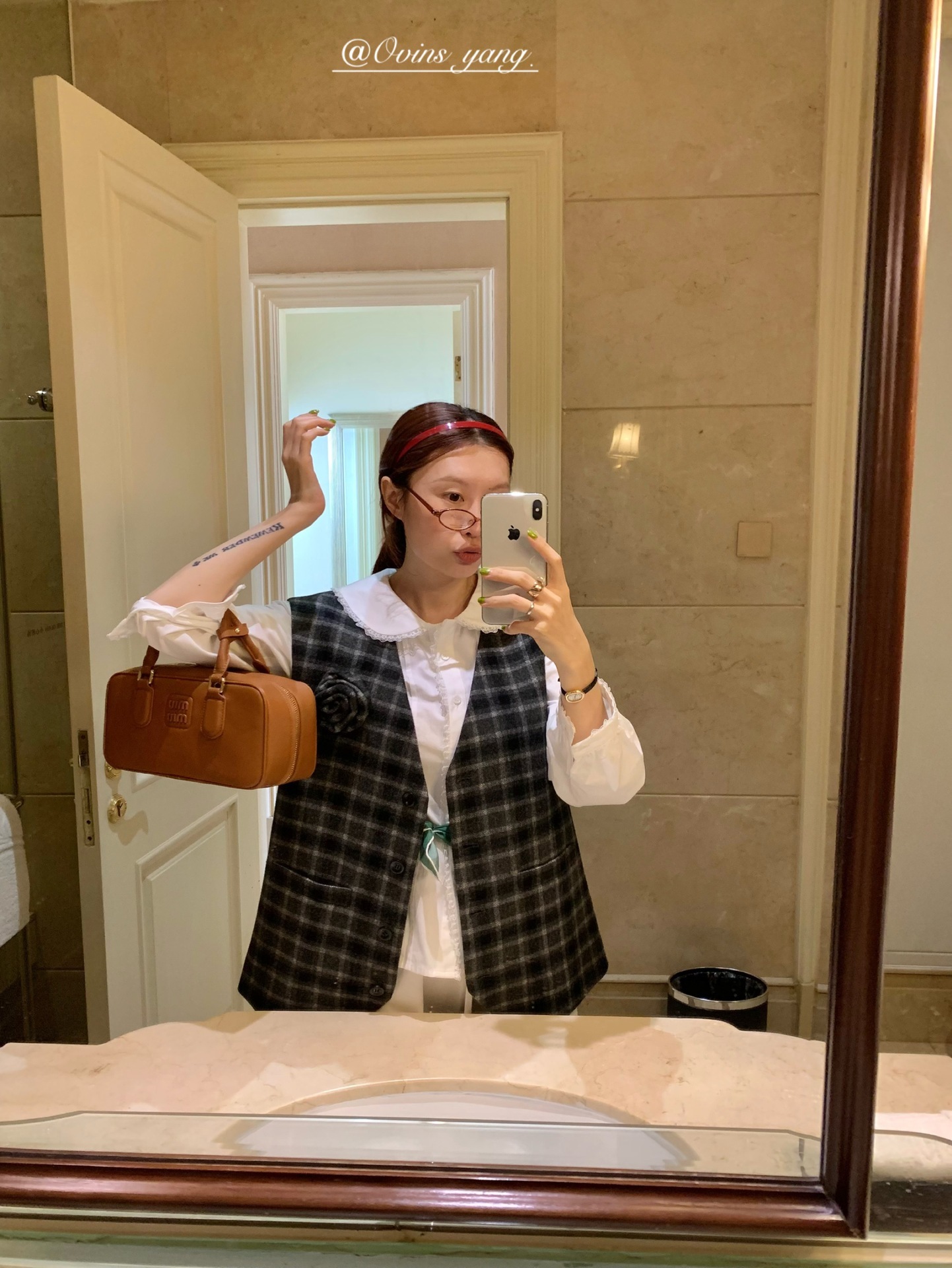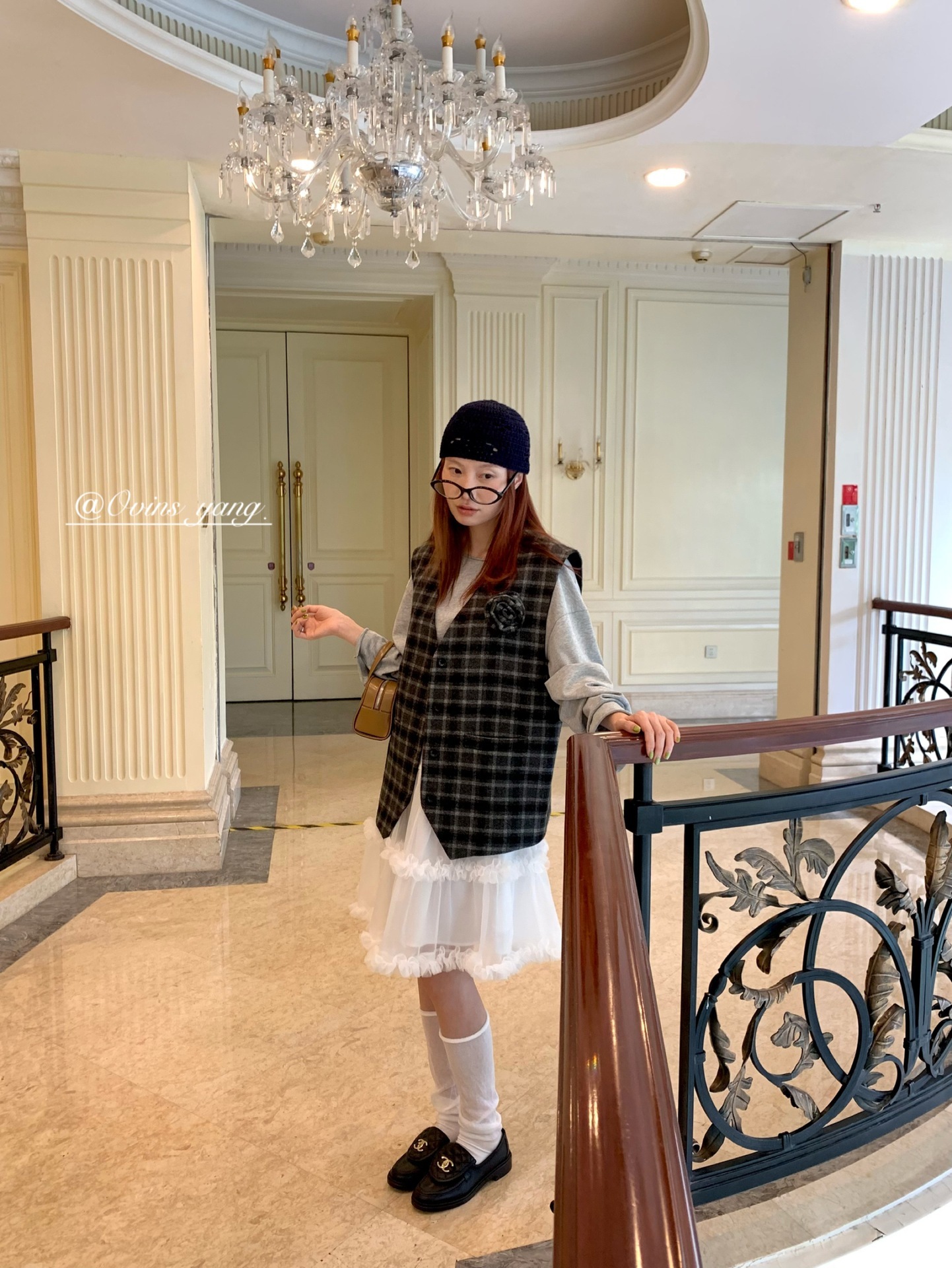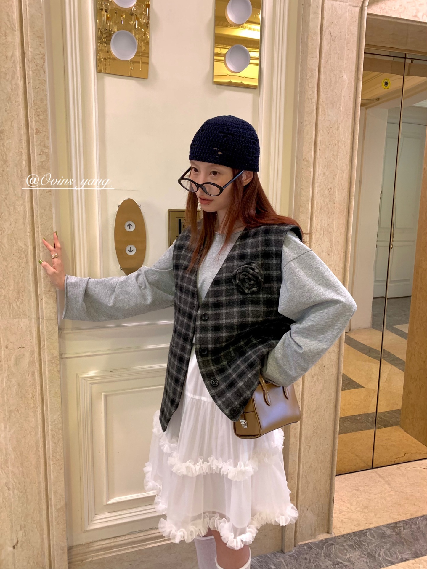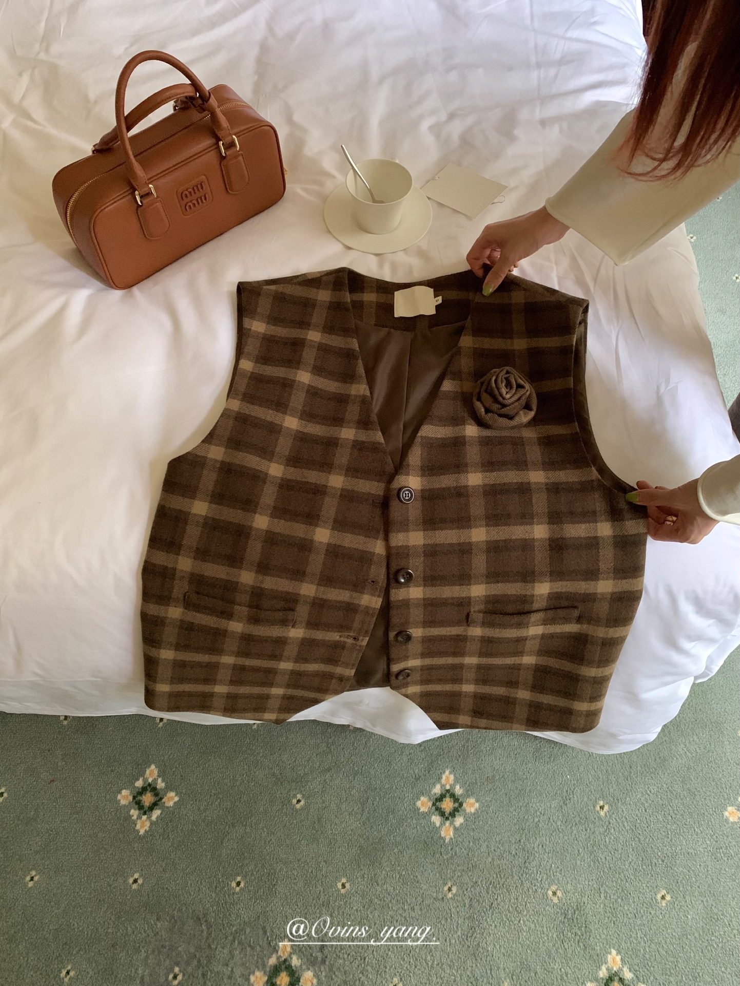 *o-ha-you*【FOY100396】韓系ins風2025新款立體花朵設計感格子背心馬甲外套-2色