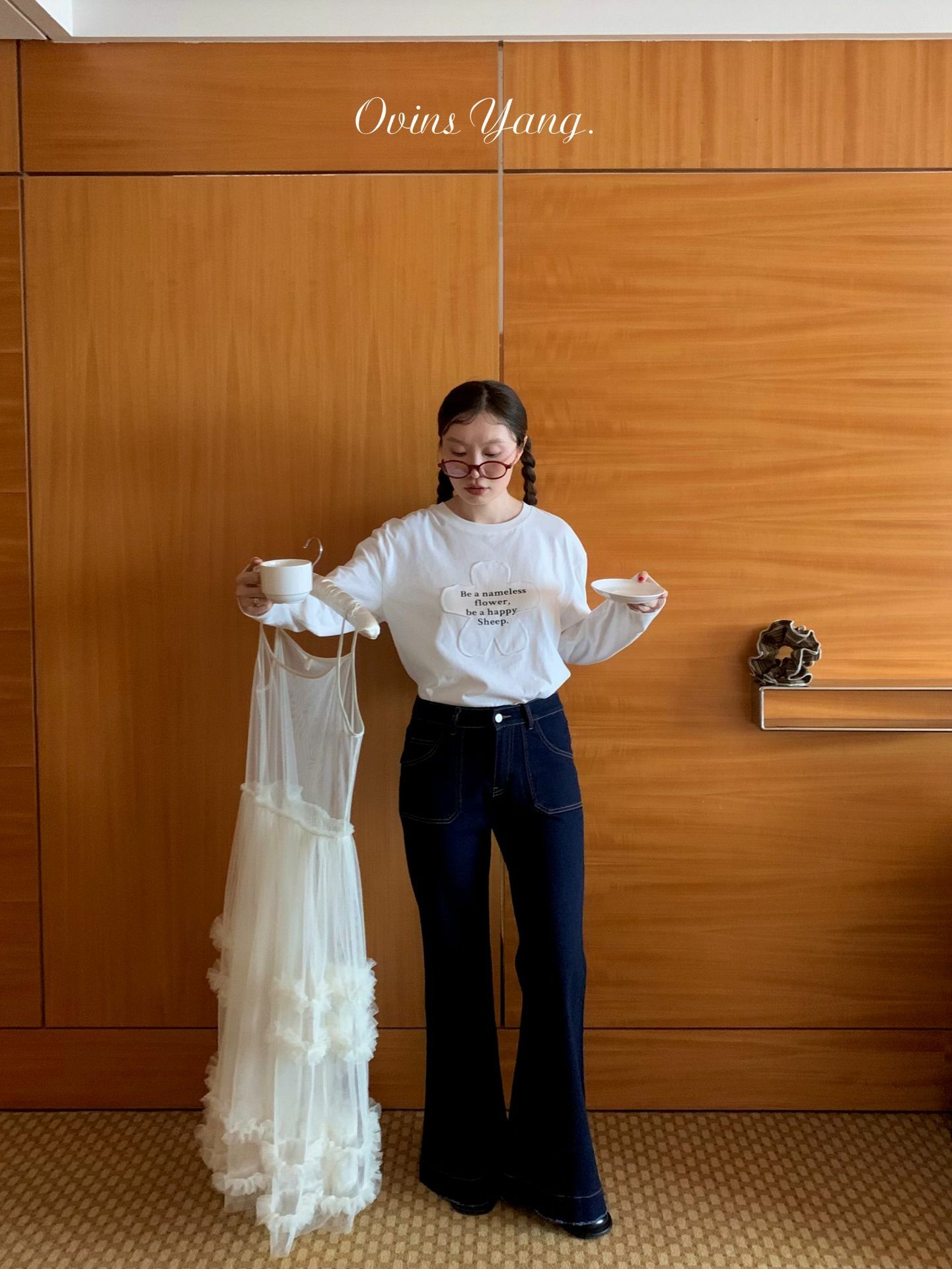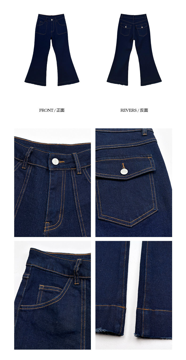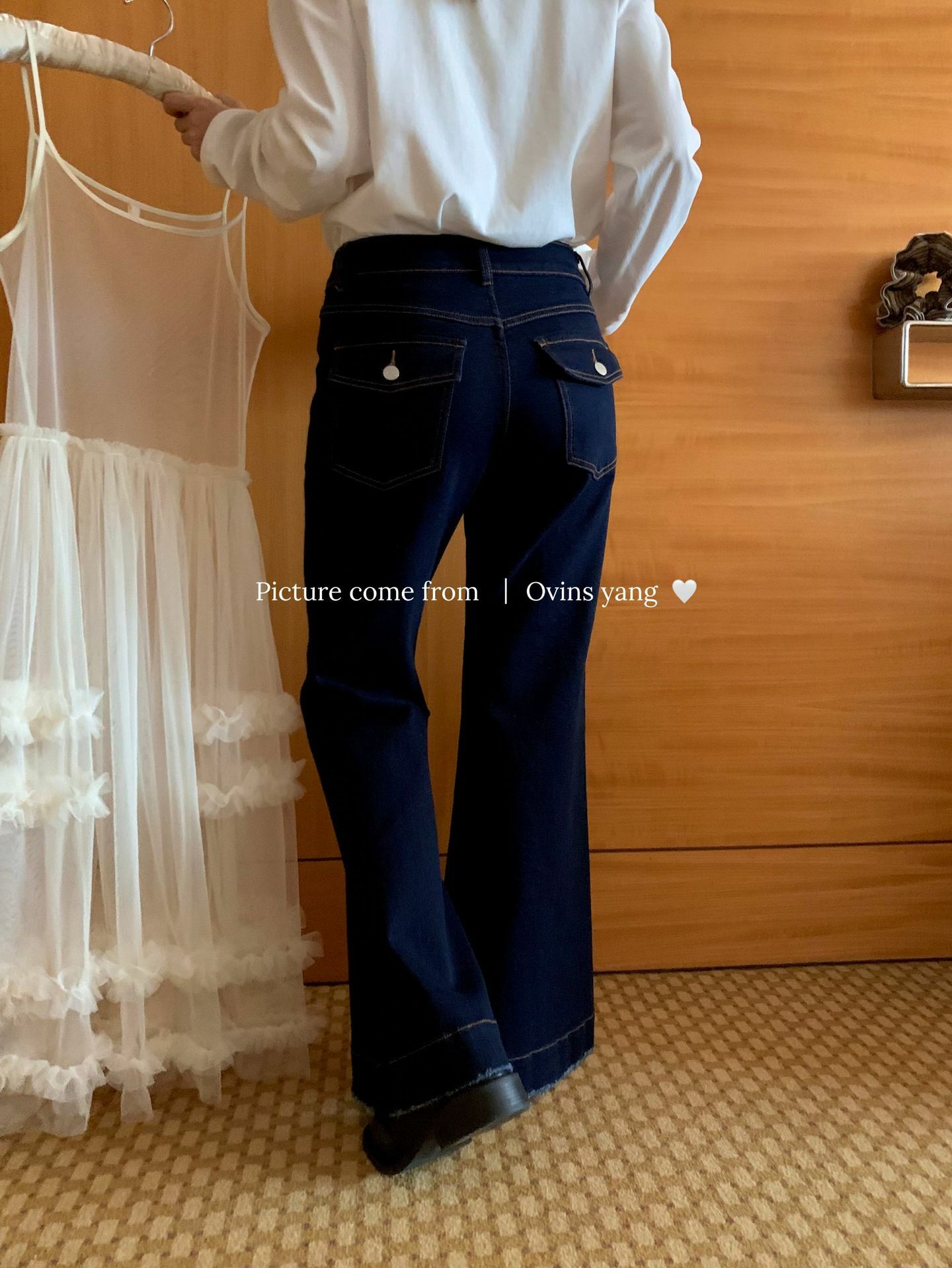 *o-ha-you*【FOY100399】復古明線低腰風深藍色牛仔褲秋冬微喇叭褲子休閒褲-如有需要請先諮詢