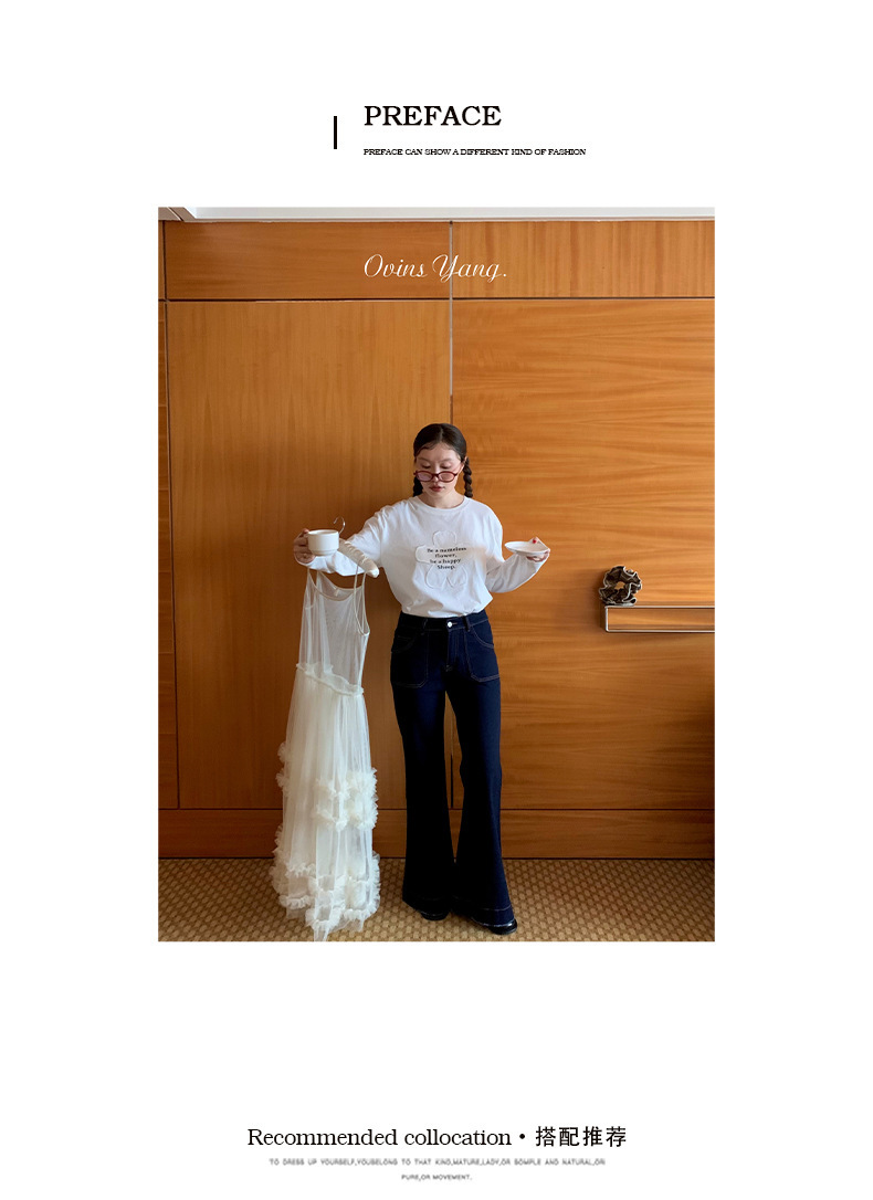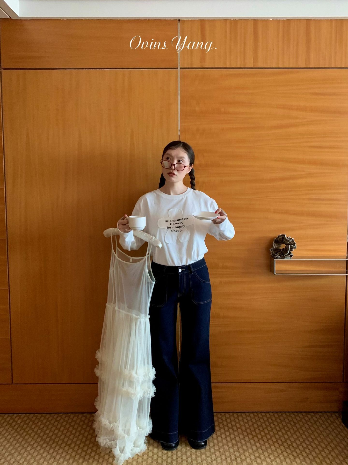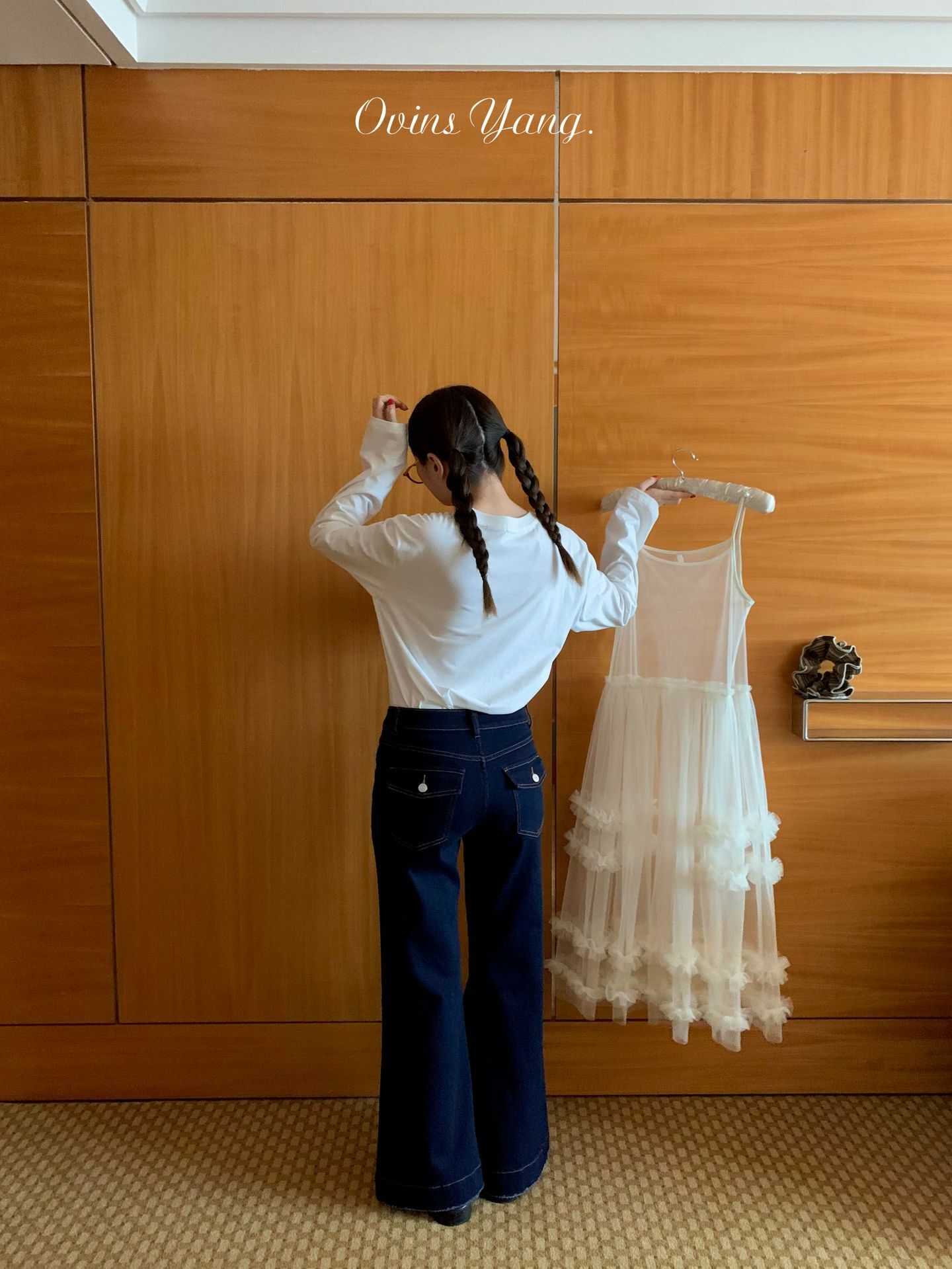 *o-ha-you*【FOY100399】復古明線低腰風深藍色牛仔褲秋冬微喇叭褲子休閒褲-如有需要請先諮詢