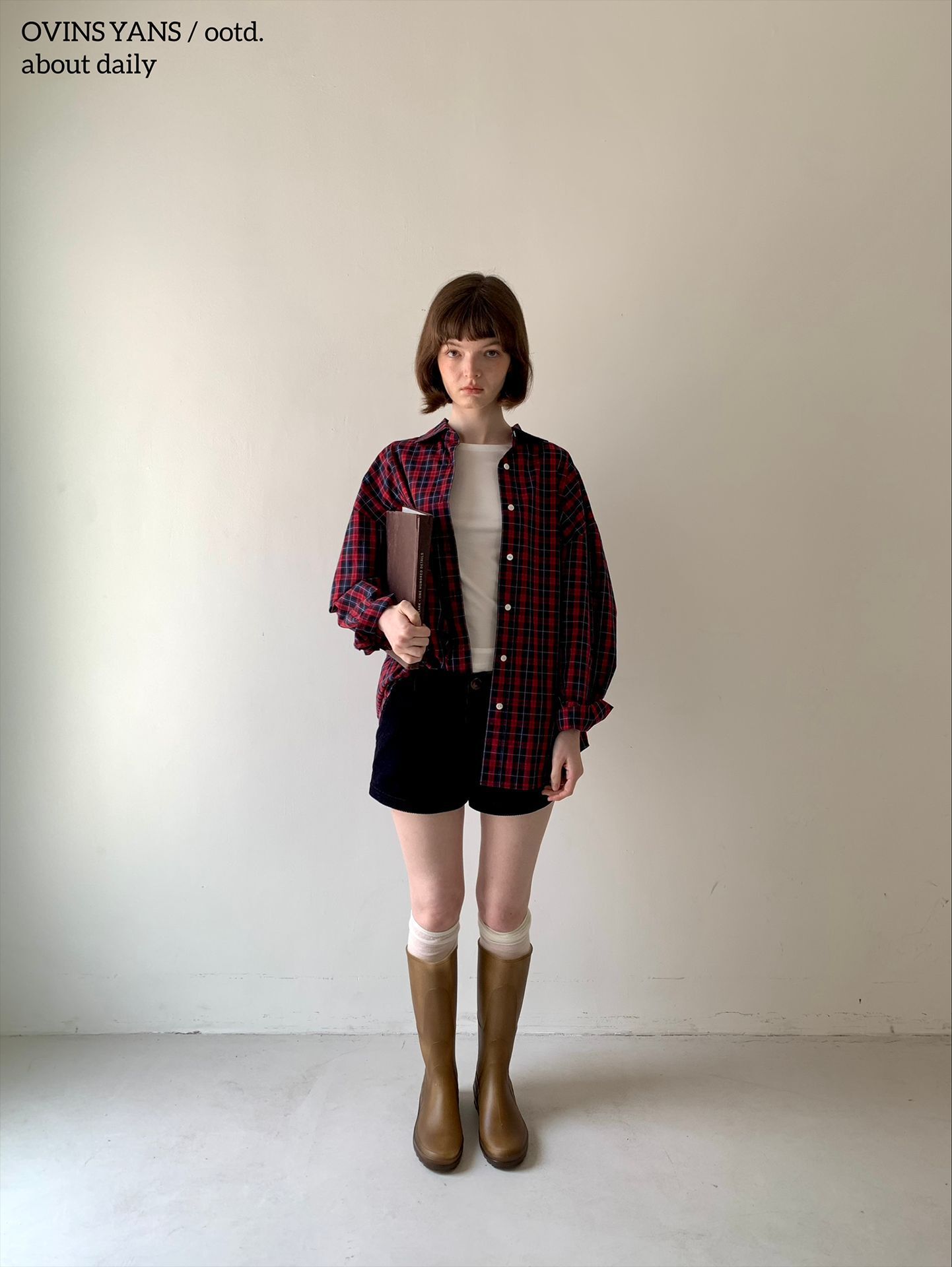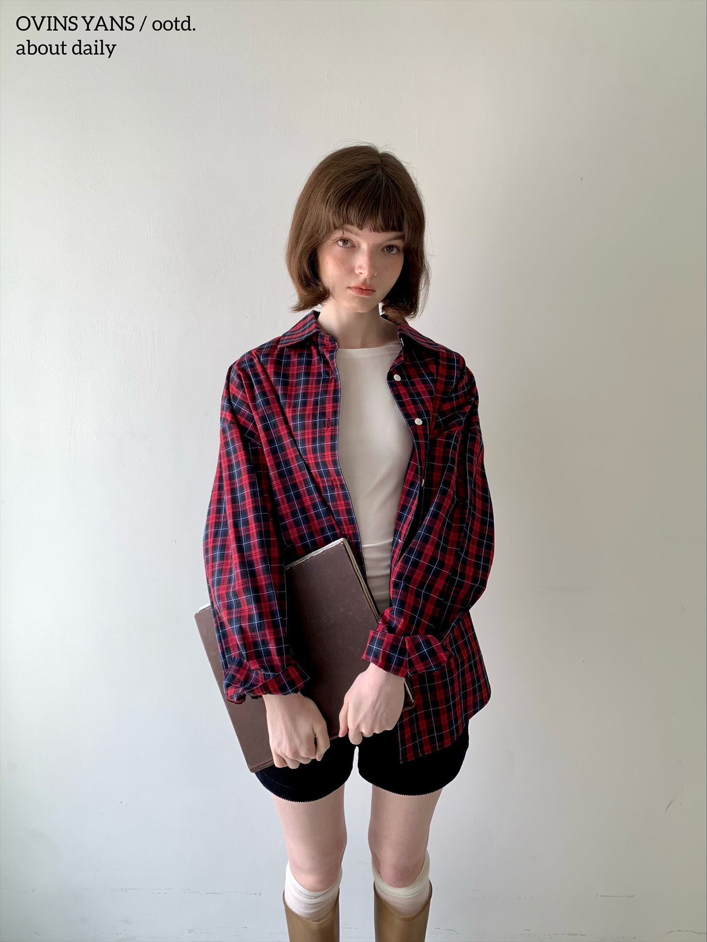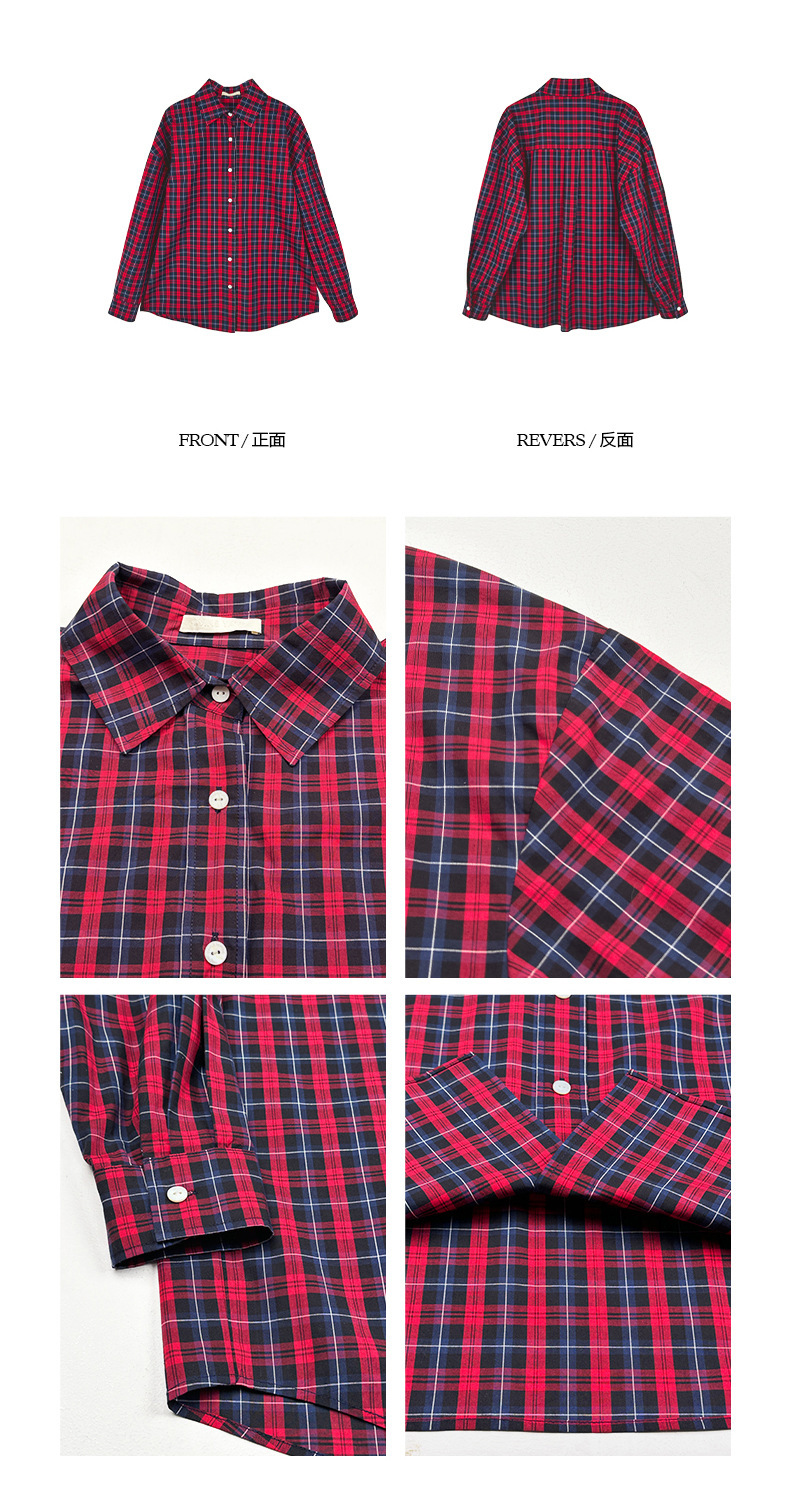 *o-ha-you*【FOY100500】復古紅色格紋襯衫女秋季2025新款寬鬆百搭長袖襯衣