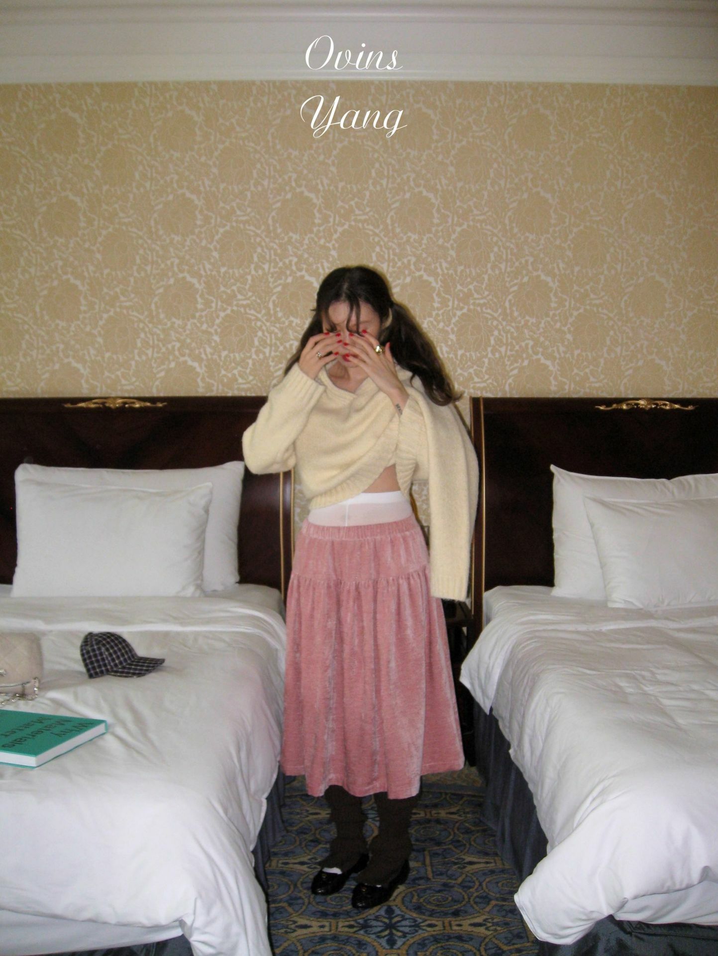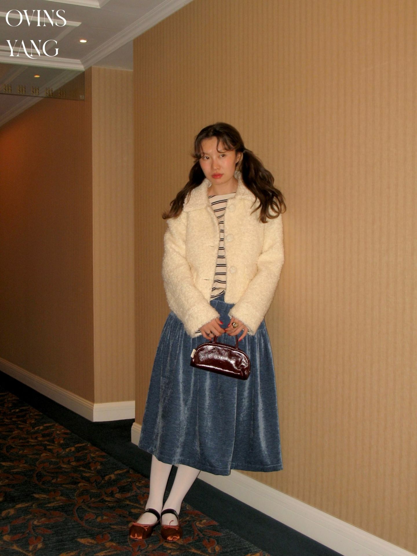 *o-ha-you*【FOY100506】雪尼爾半身裙秋冬款高級感甜美穿搭減齡學院風A字短裙-3色-如有需要請先諮詢