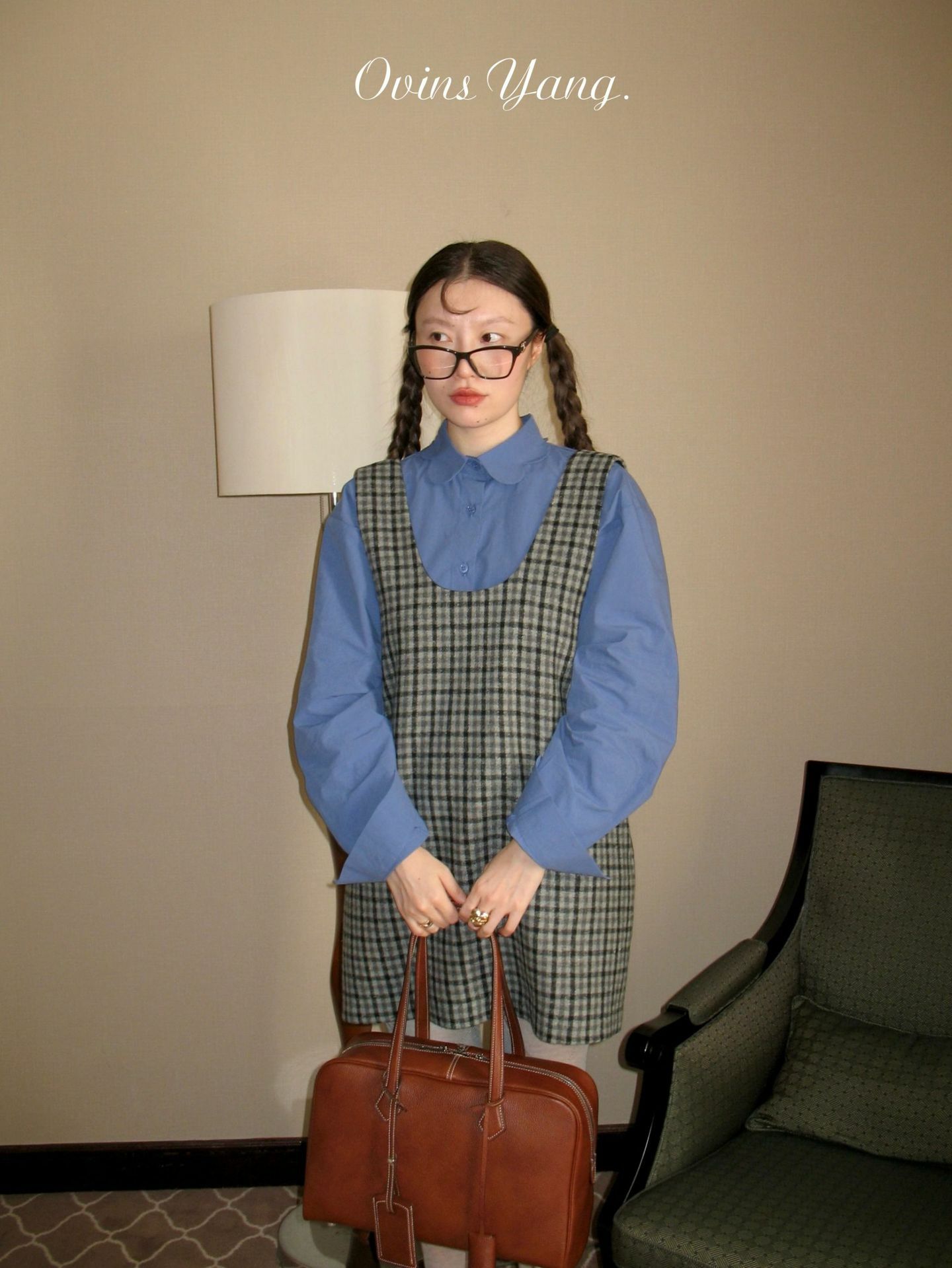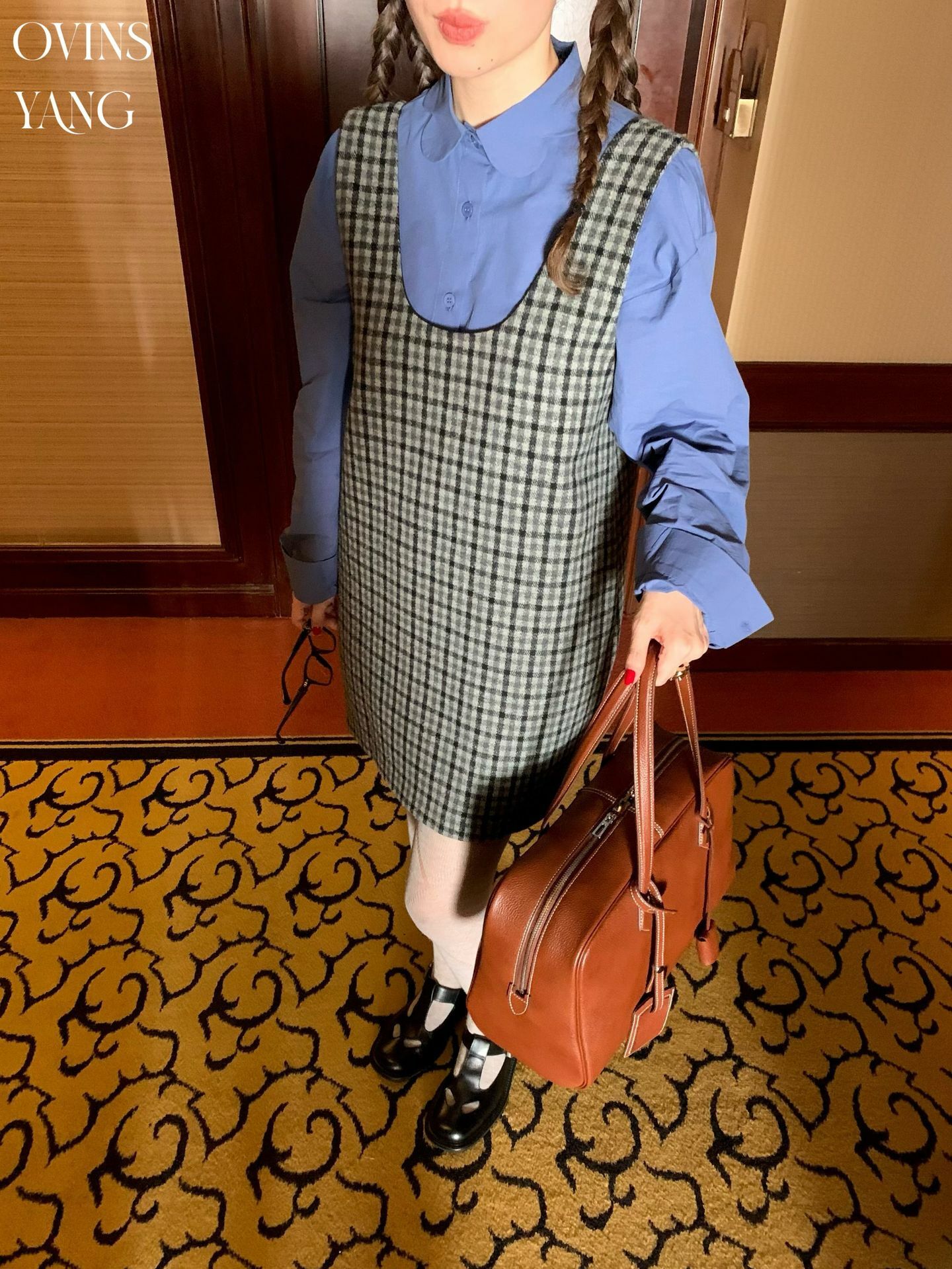 *o-ha-you*【FOY100516】格子毛呢背心裙秋冬miu裡miu氣穿搭氣質疊穿連衣裙洋裝-如有需要請先諮詢