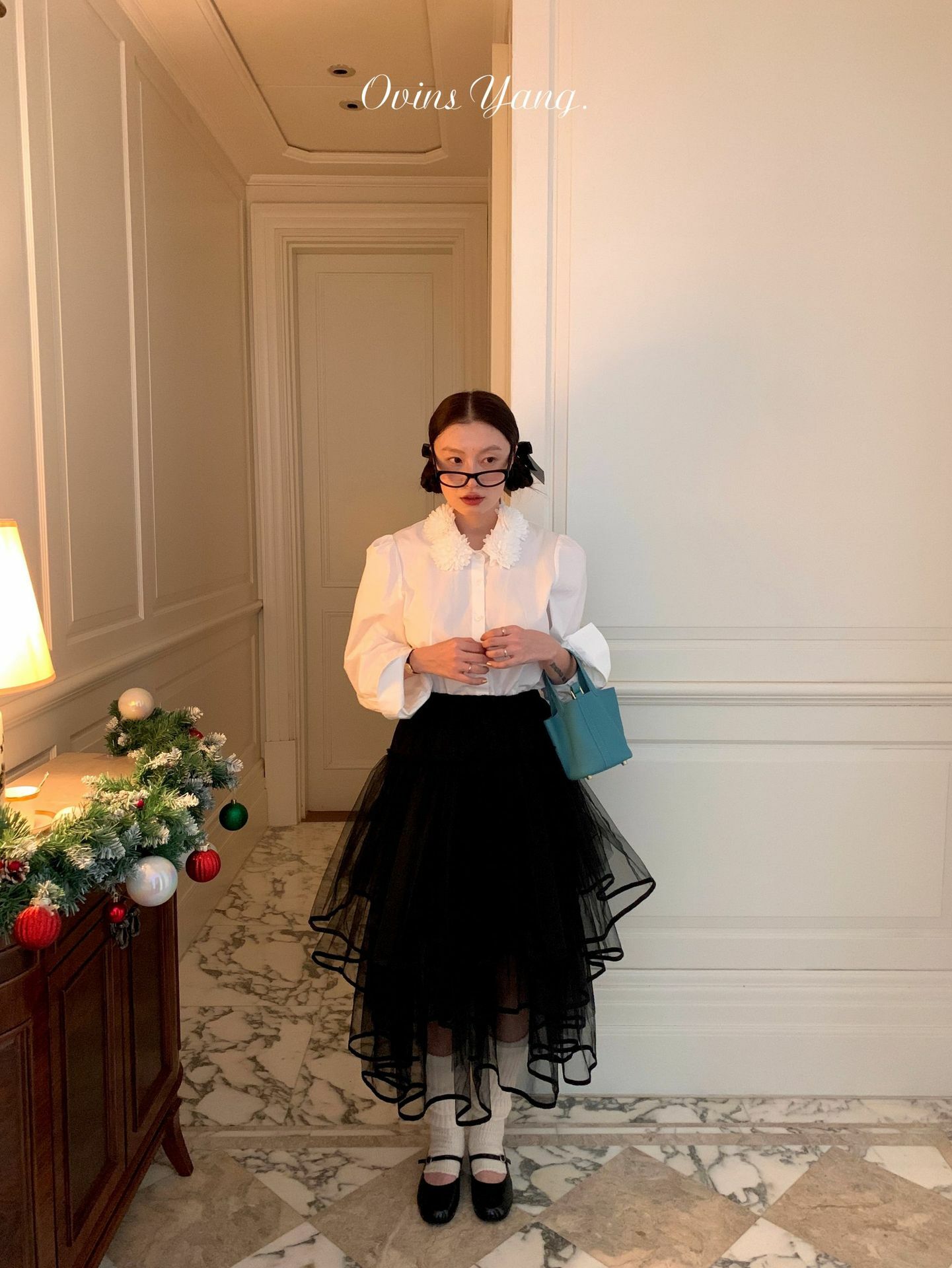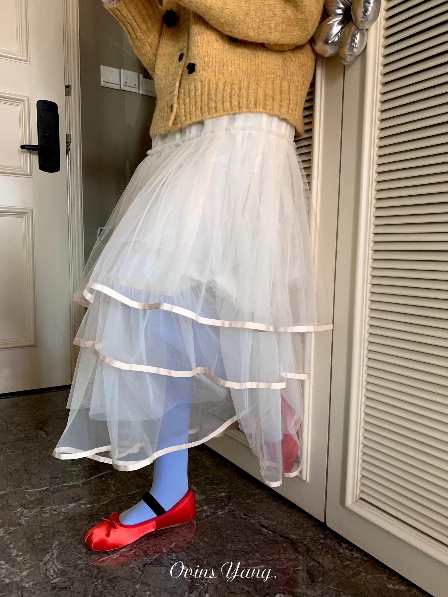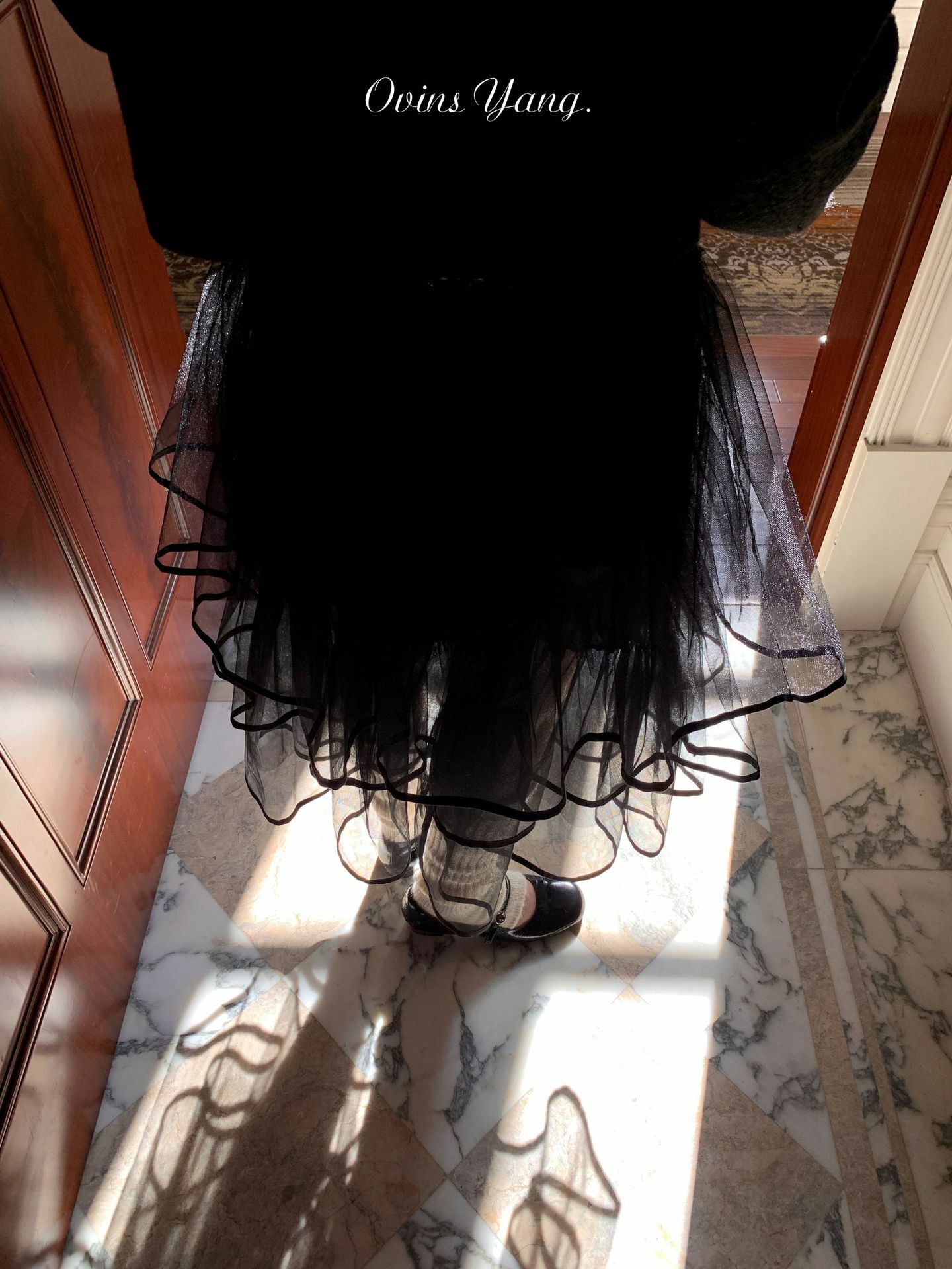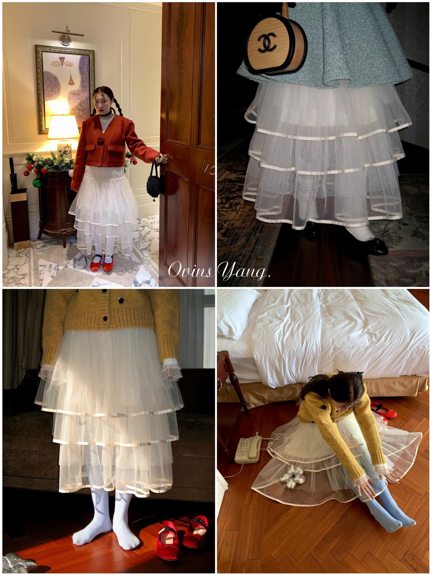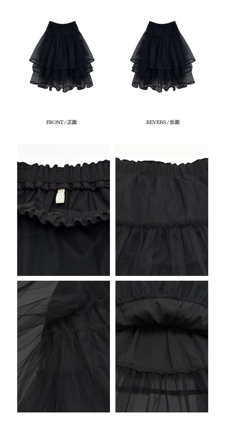 *o-ha-you*【FOY100521】網紗黑色半身裙2024新款秋冬款減齡穿搭百褶裙蛋糕裙-2色-杏色有現貨