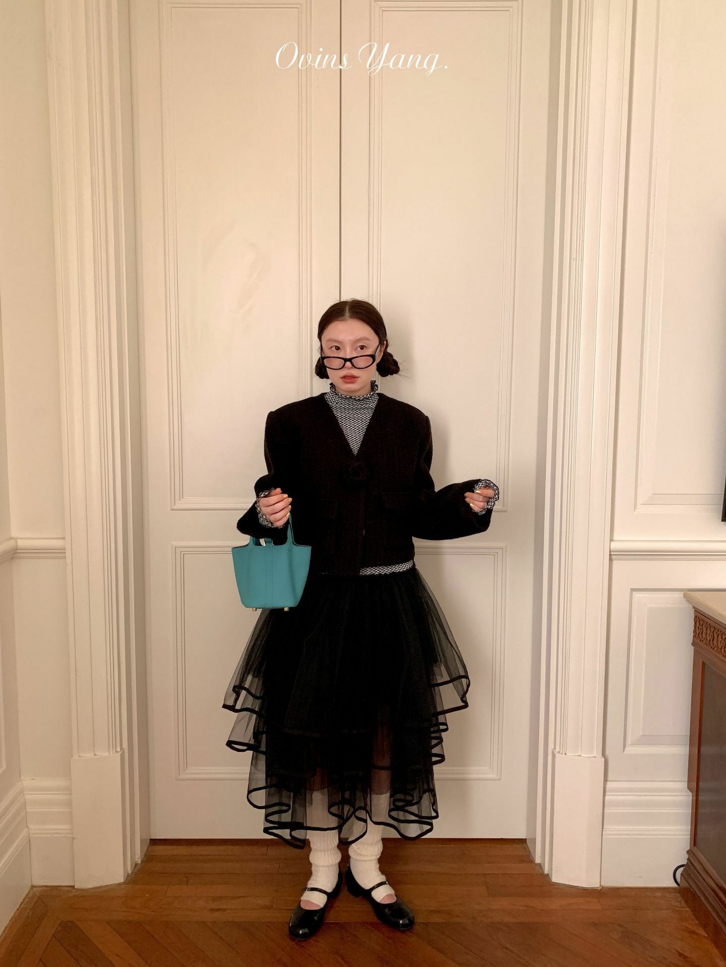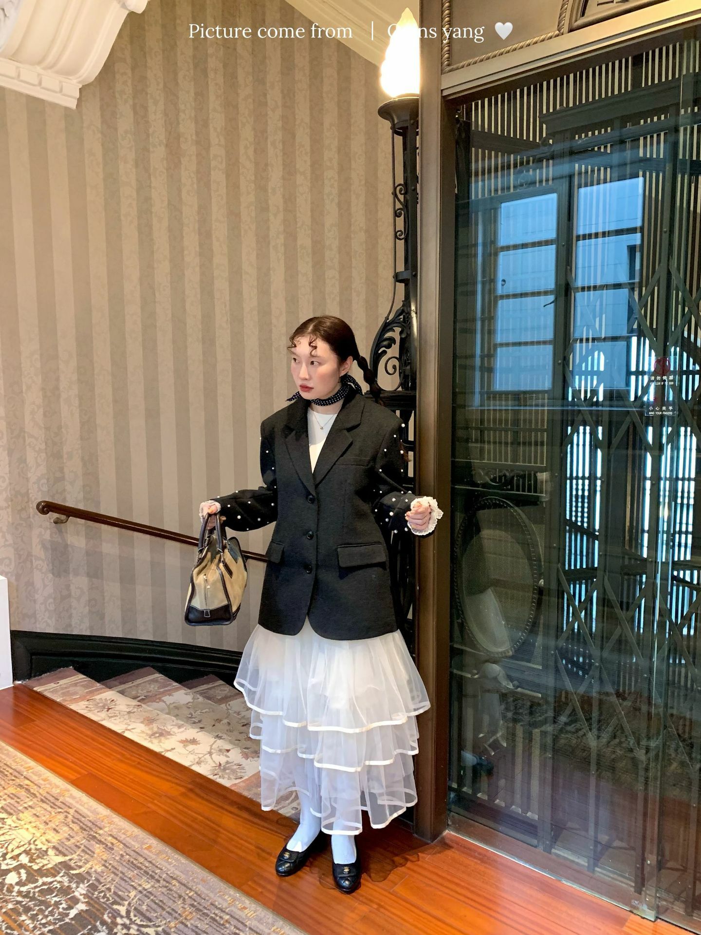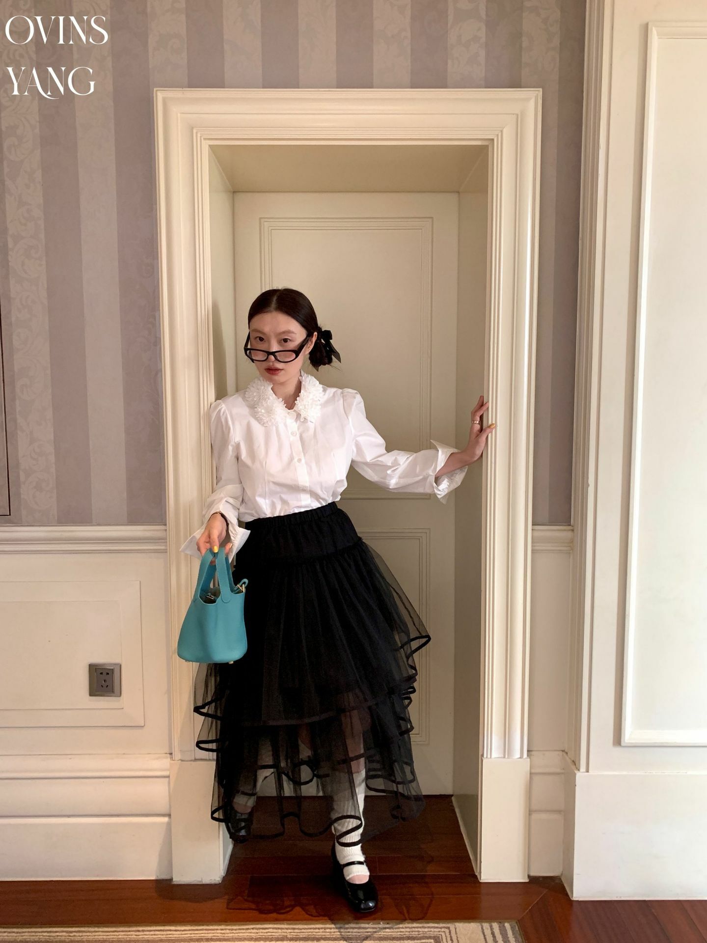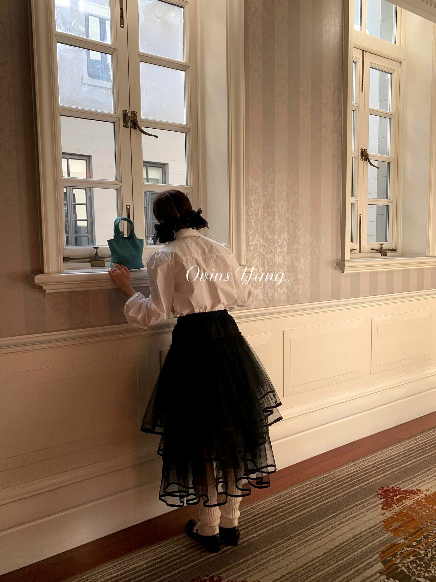 *o-ha-you*【FOY100521】網紗黑色半身裙2024新款秋冬款減齡穿搭百褶裙蛋糕裙-2色-杏色有現貨