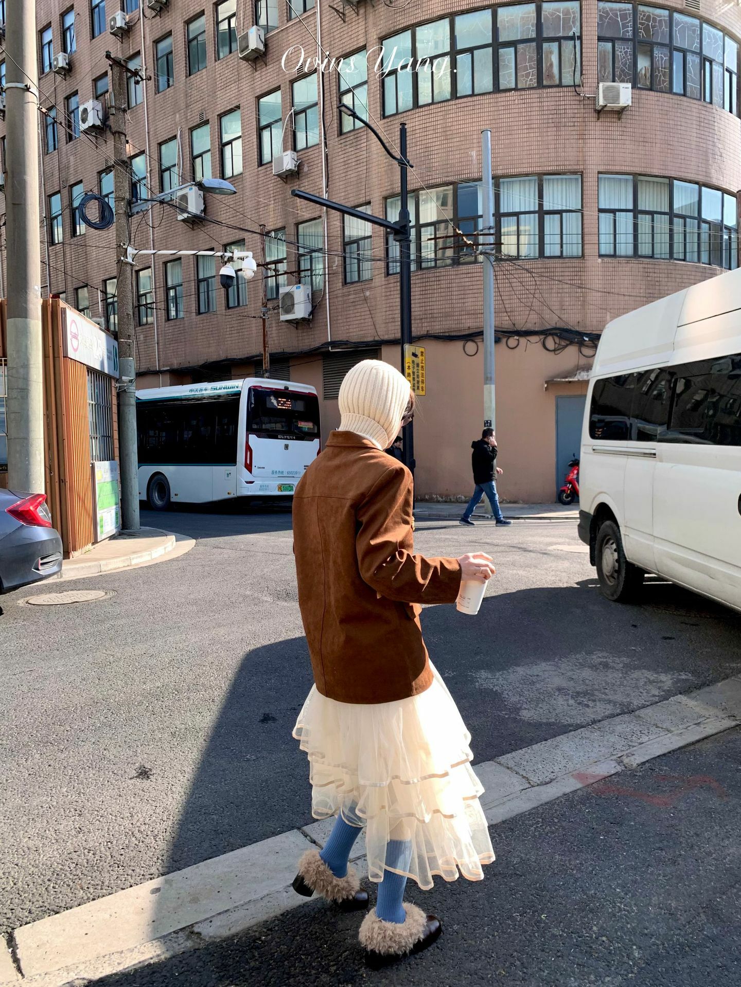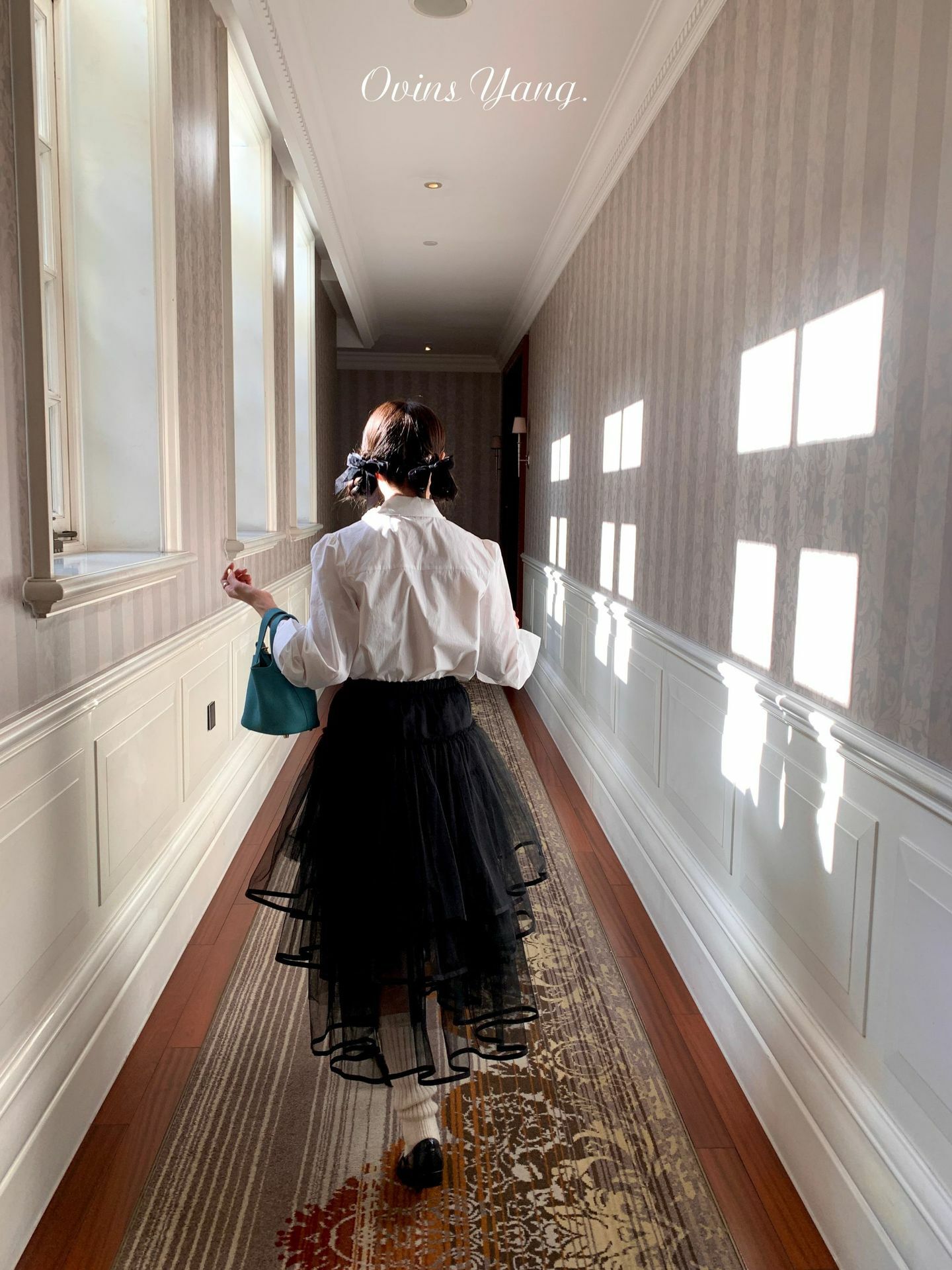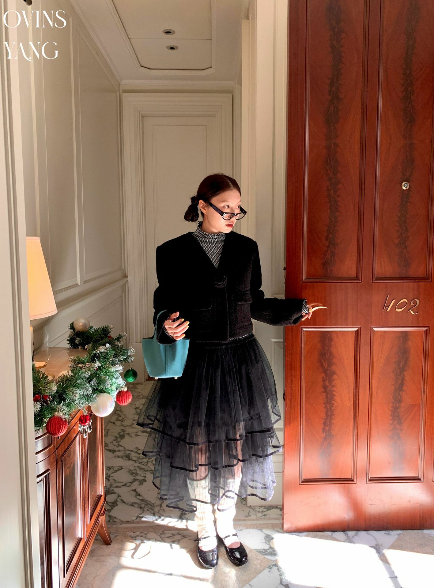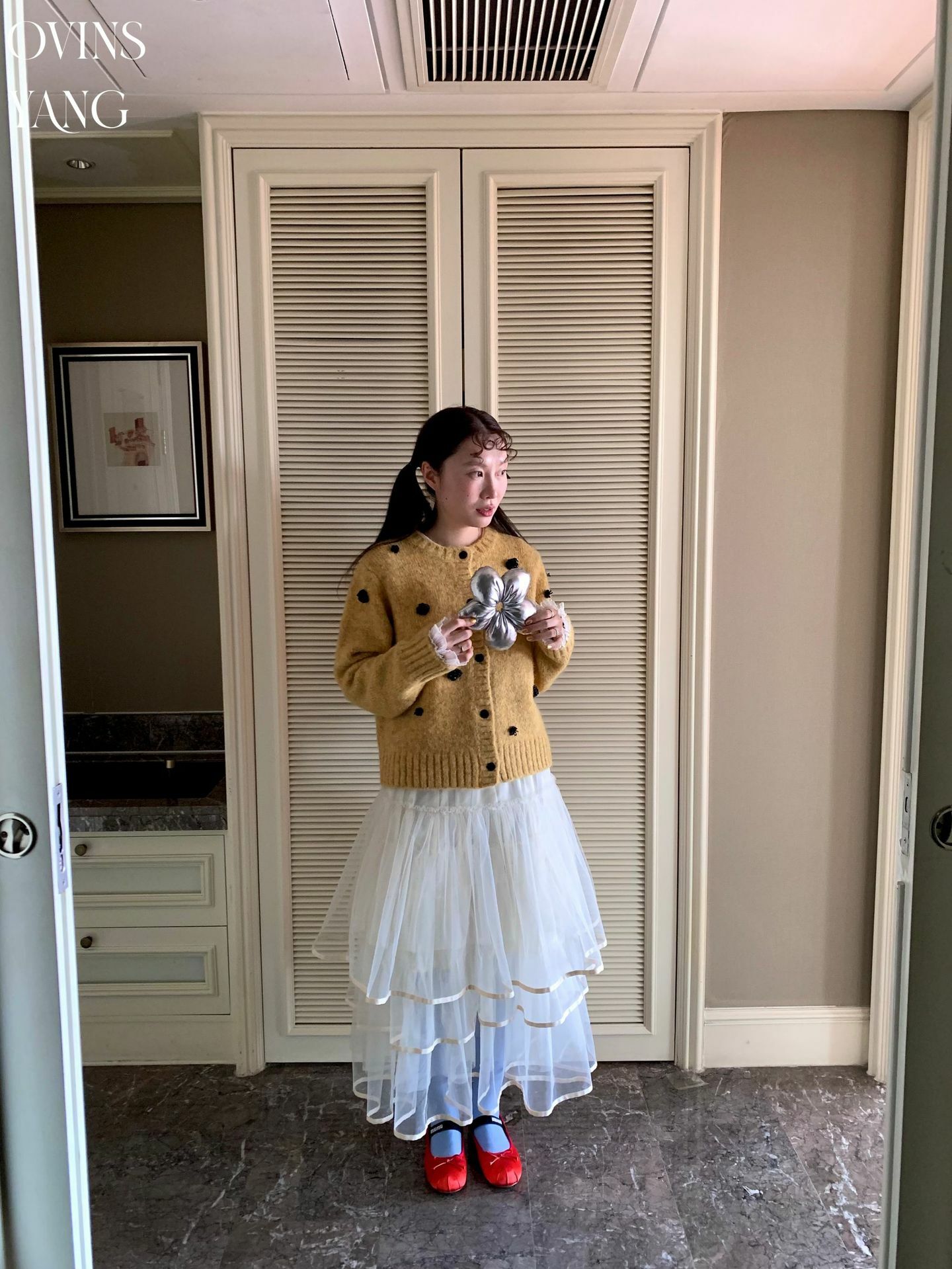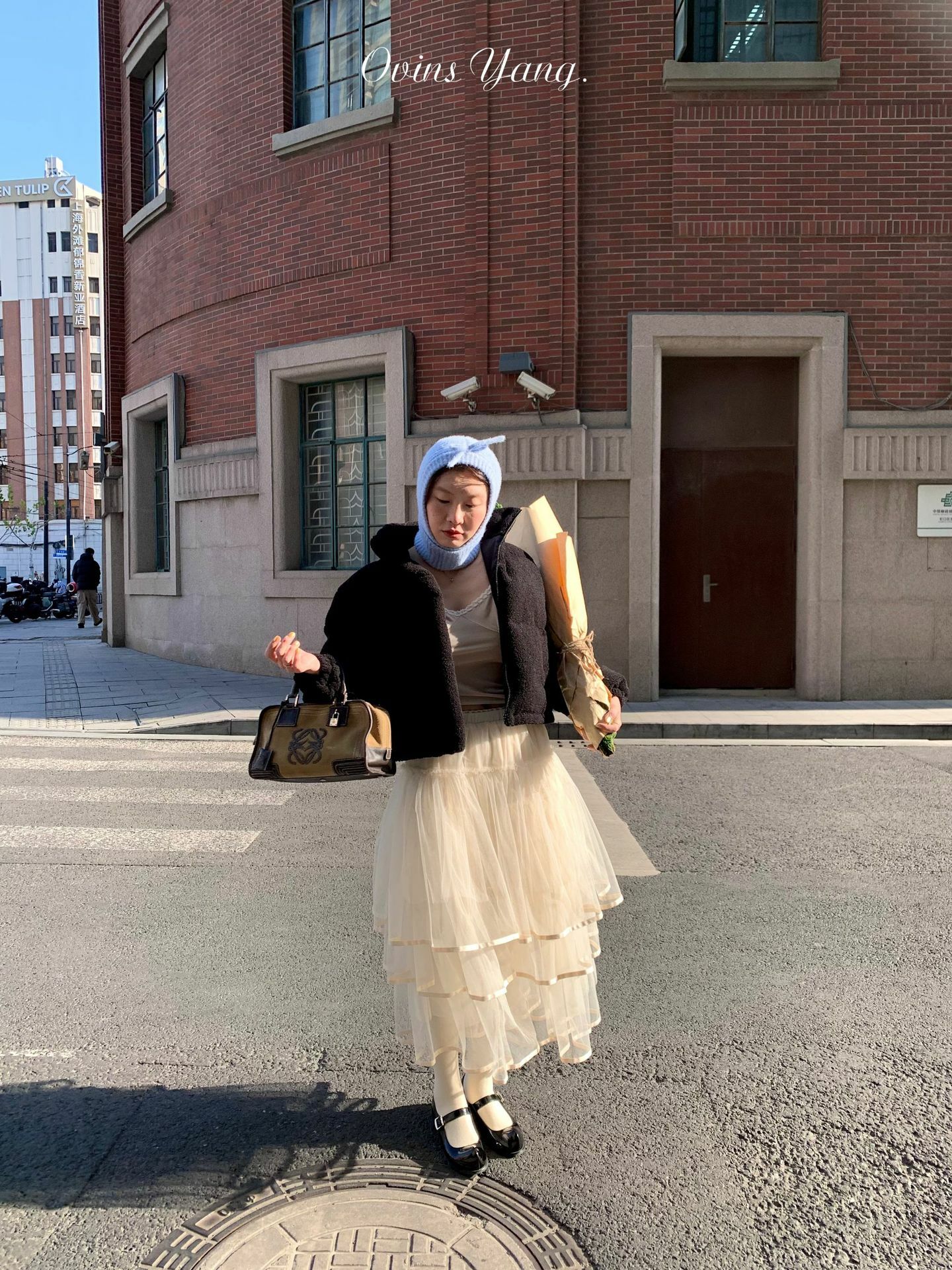 *o-ha-you*【FOY100521】網紗黑色半身裙2024新款秋冬款減齡穿搭百褶裙蛋糕裙-2色-杏色有現貨