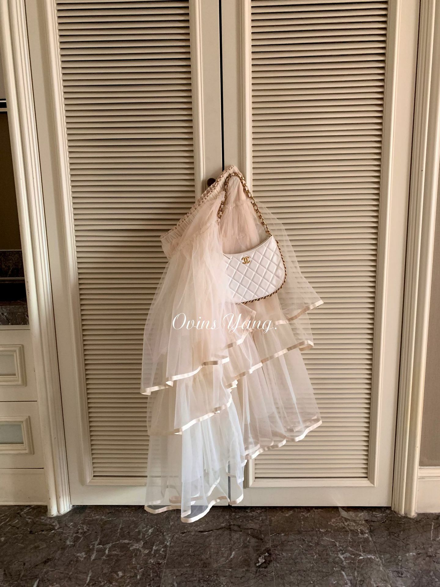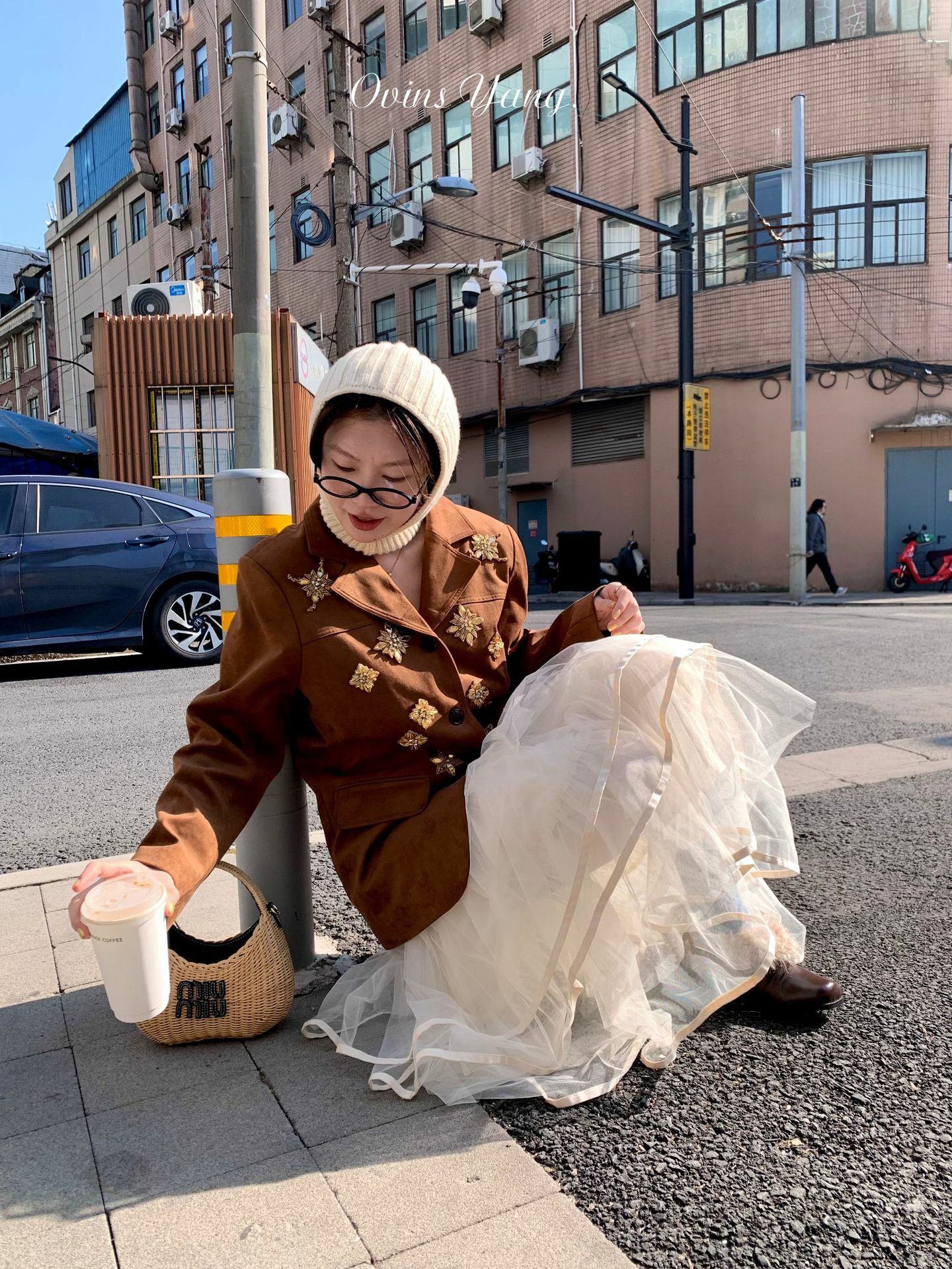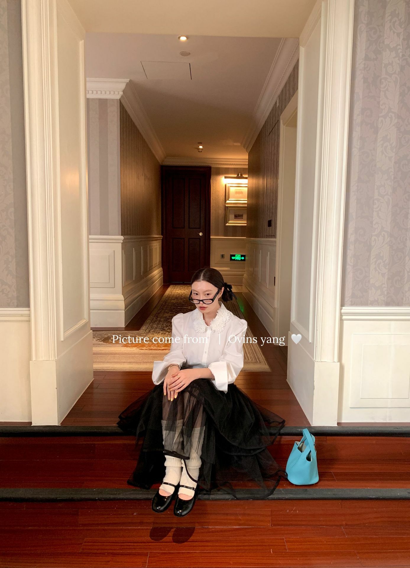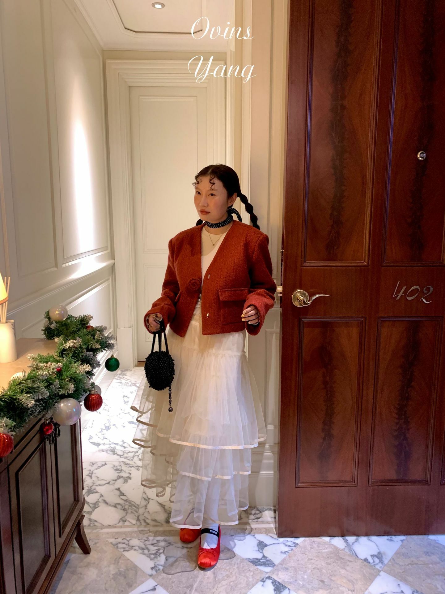 *o-ha-you*【FOY100521】網紗黑色半身裙2024新款秋冬款減齡穿搭百褶裙蛋糕裙-2色-杏色有現貨