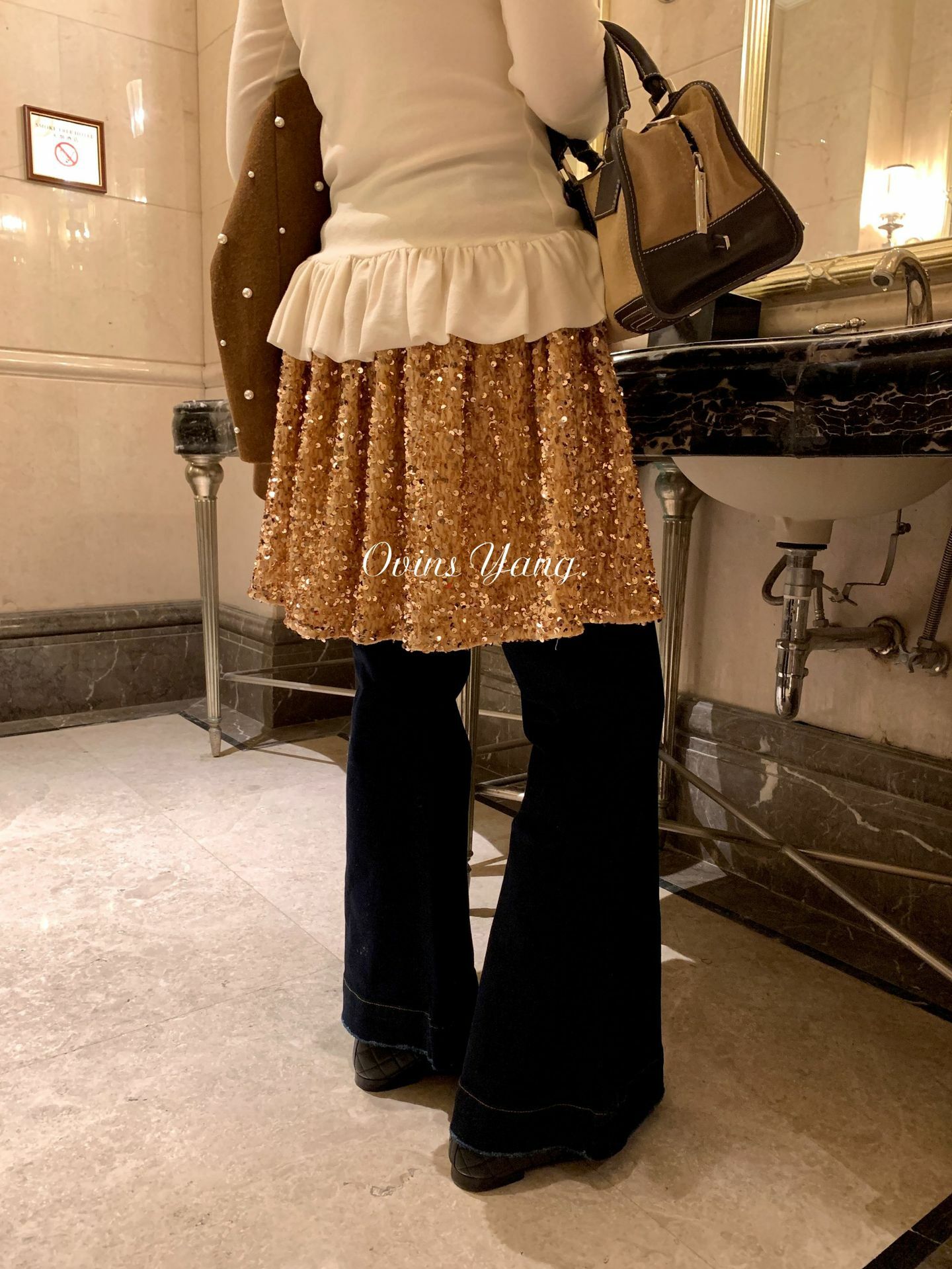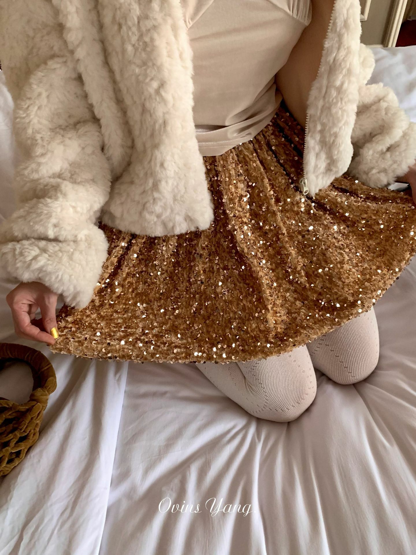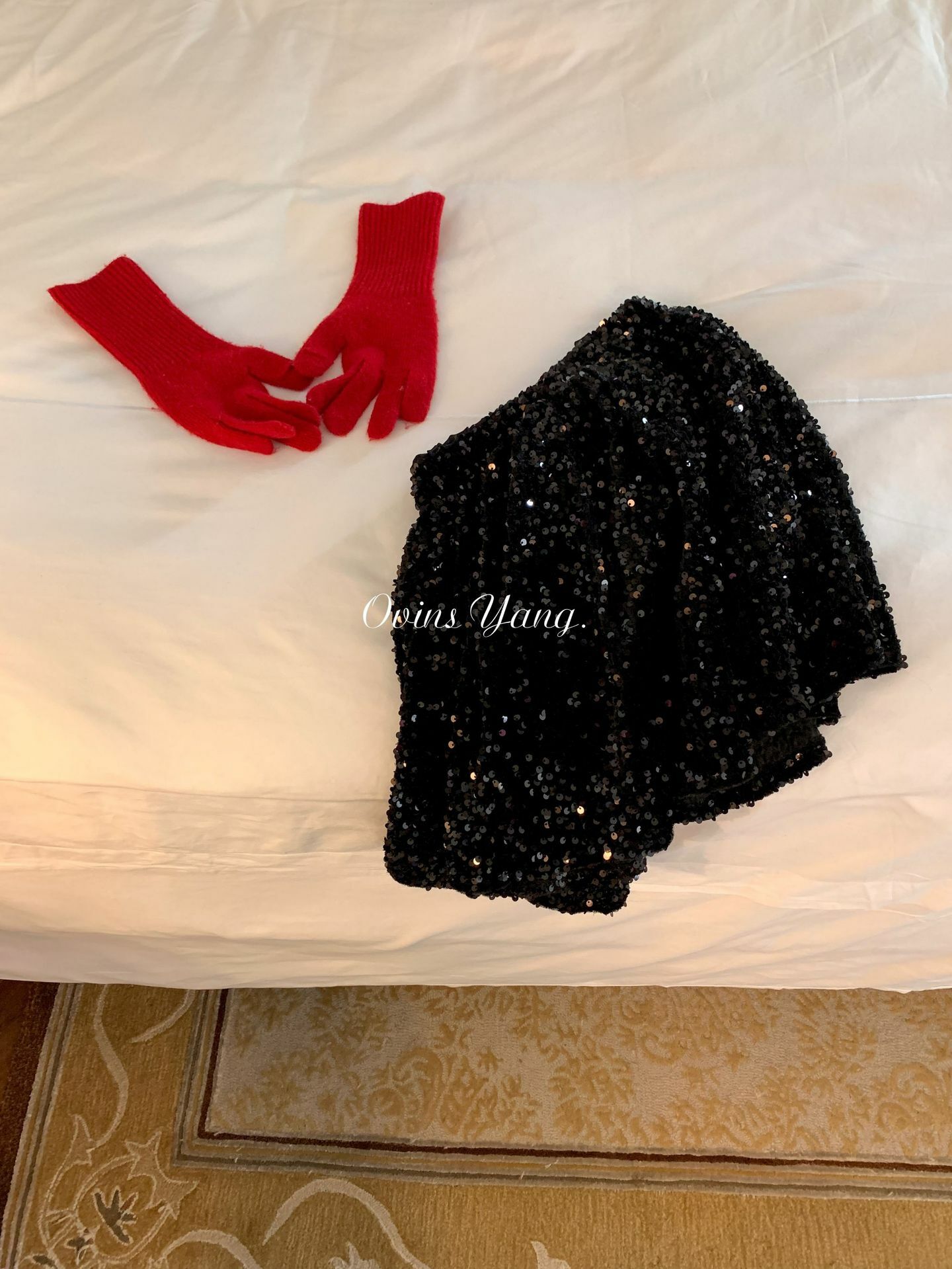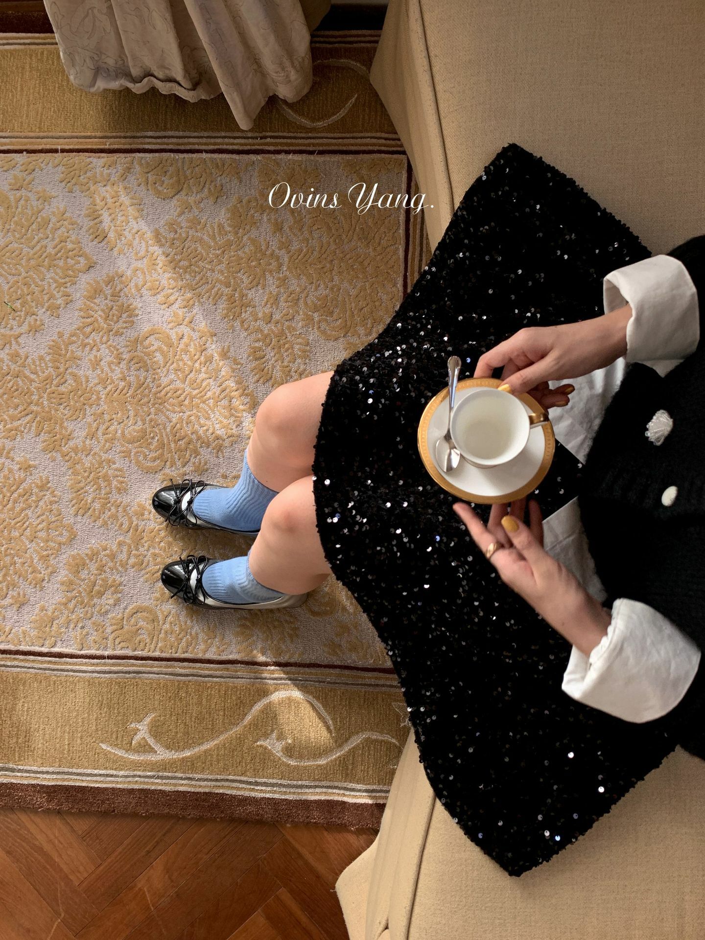 *o-ha-you*【FOY100523】亮片半身裙秋冬款設計感小眾甜美穿搭A字短裙包臀裙-2色-如有需要請先諮詢