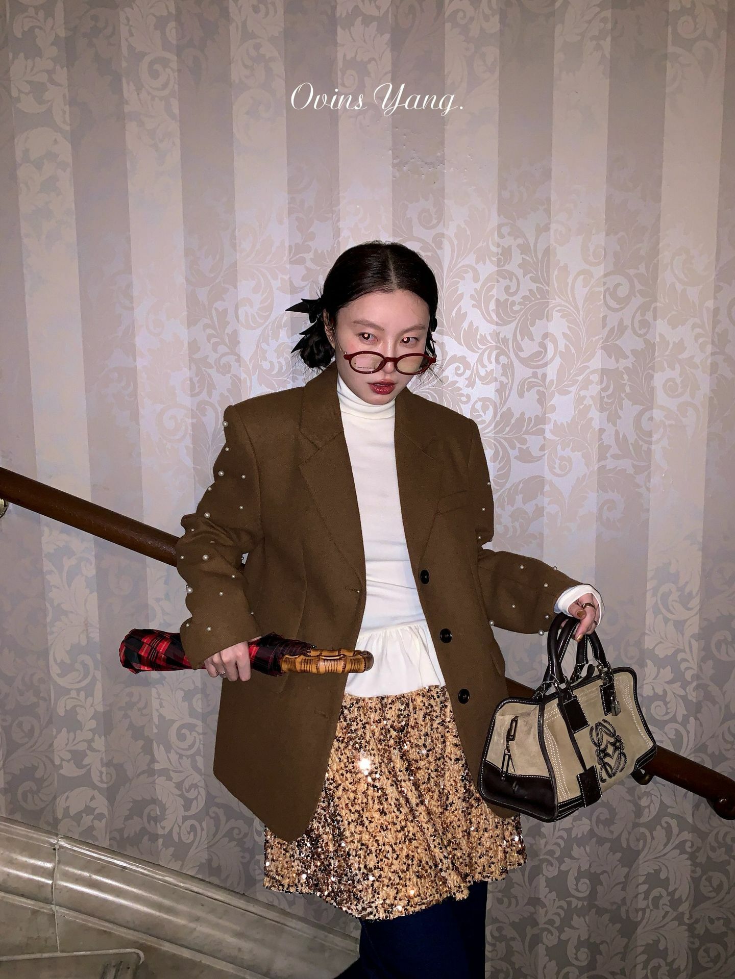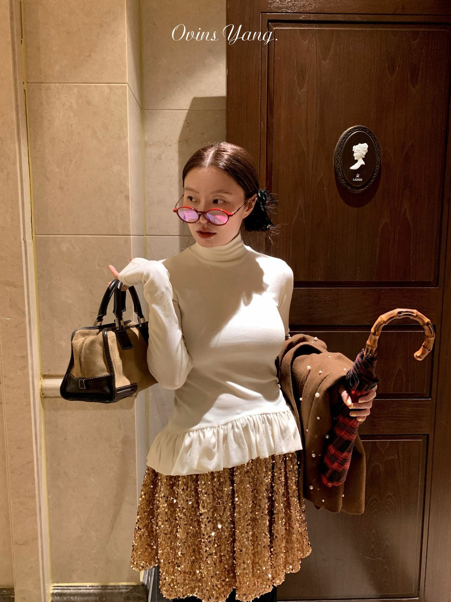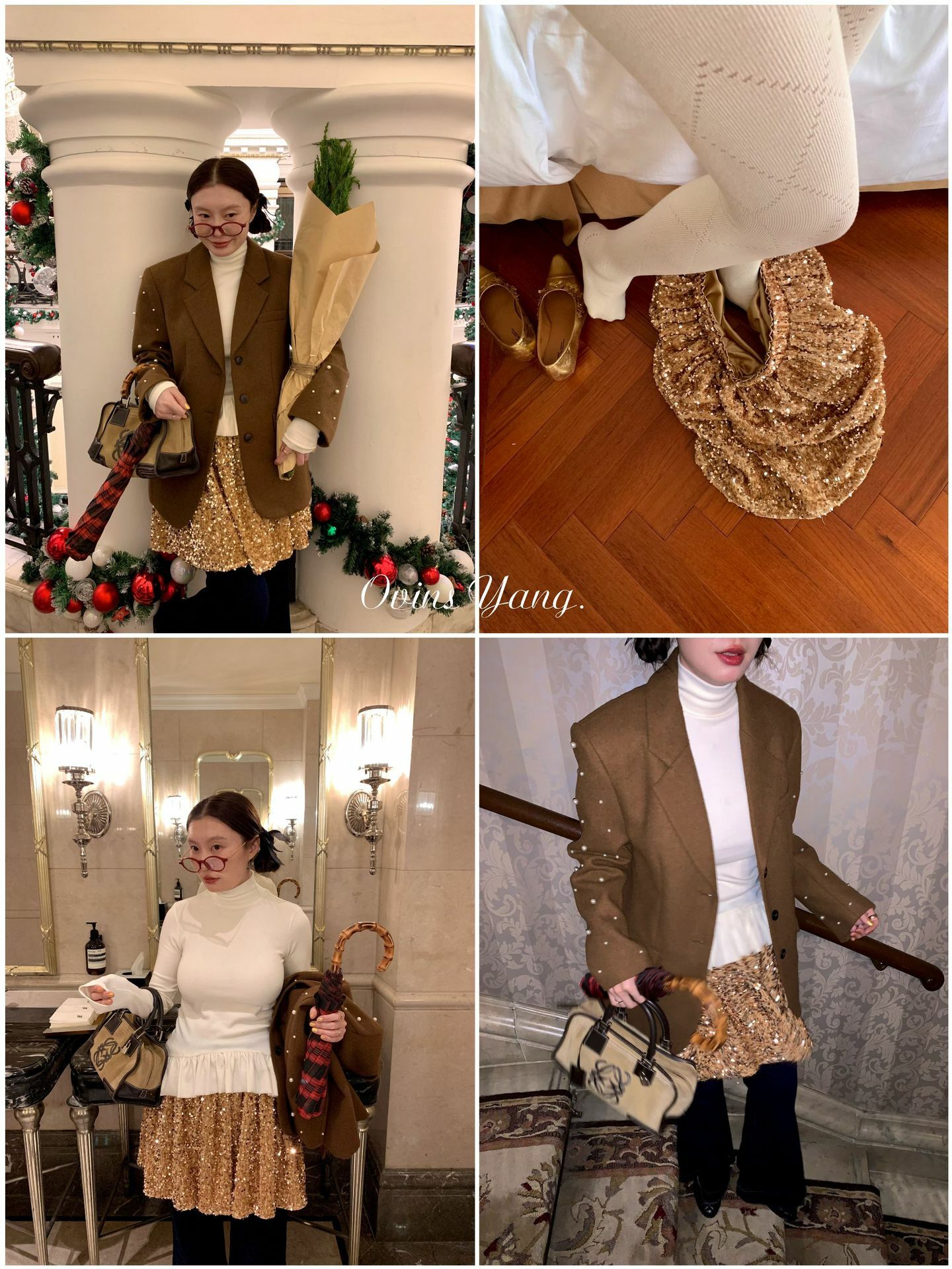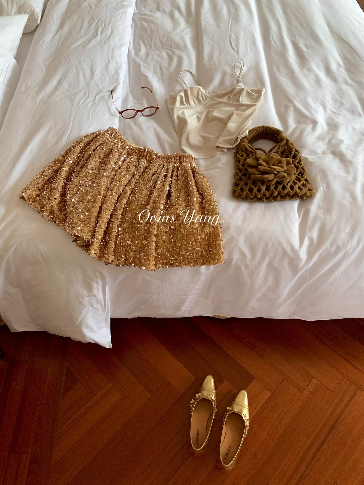 *o-ha-you*【FOY100523】亮片半身裙秋冬款設計感小眾甜美穿搭A字短裙包臀裙-2色-如有需要請先諮詢