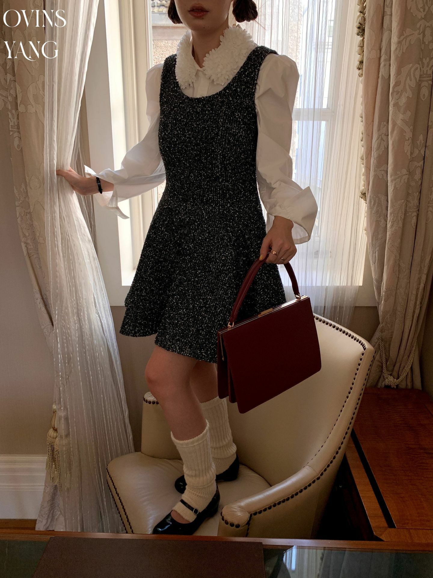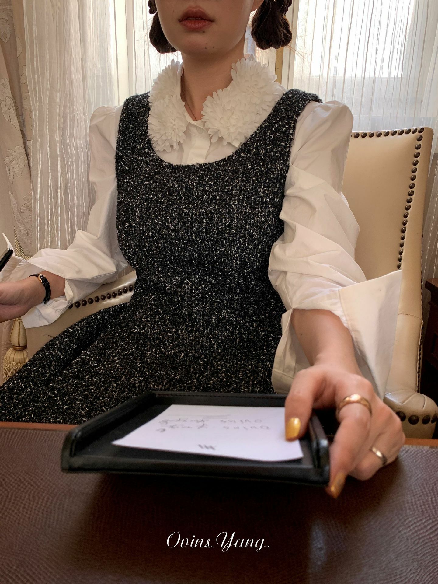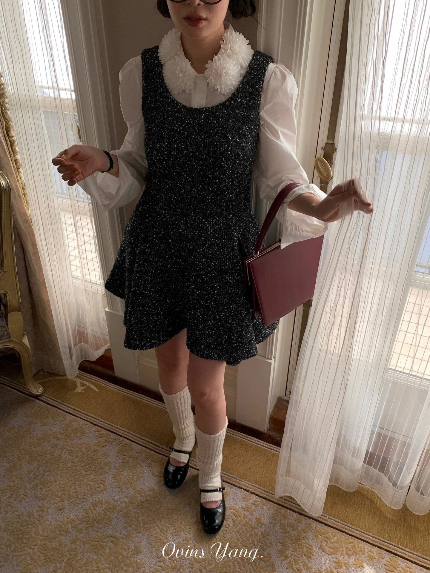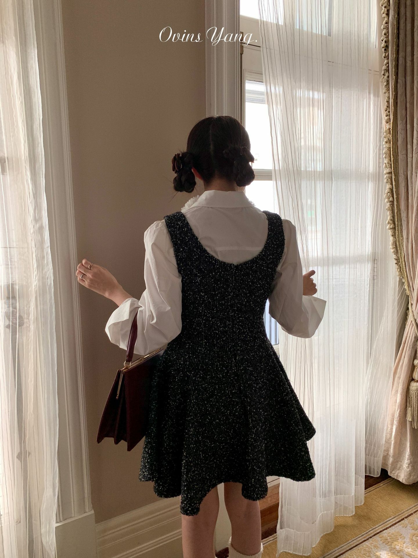 *o-ha-you*【FOY100526】亮晶晶毛呢背帶裙子連衣裙秋冬設計感小眾無袖背心裙洋裝-2色-如有需要請先諮詢