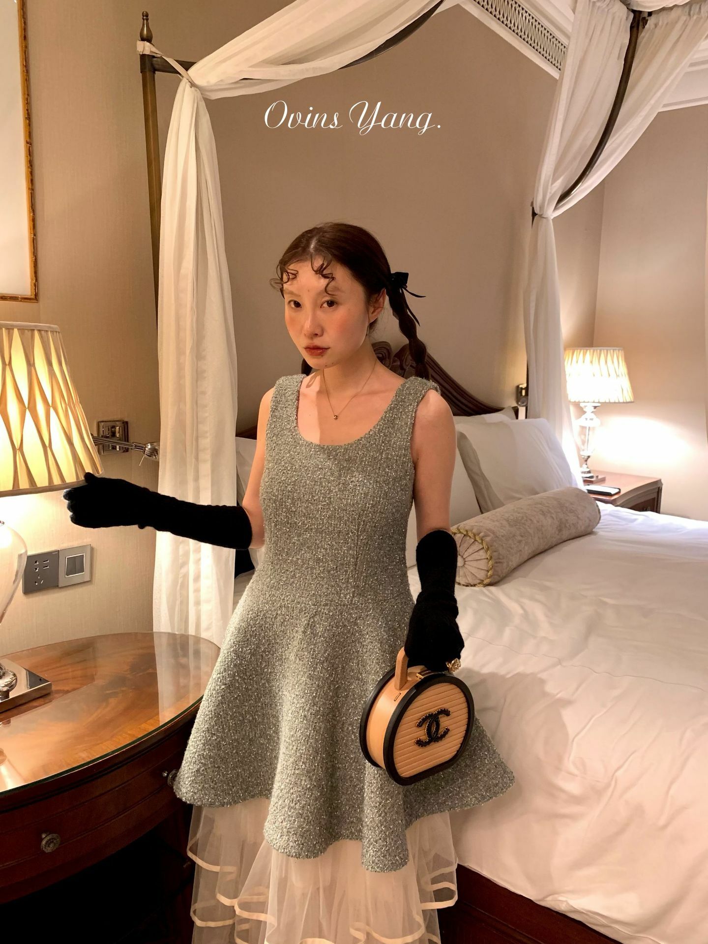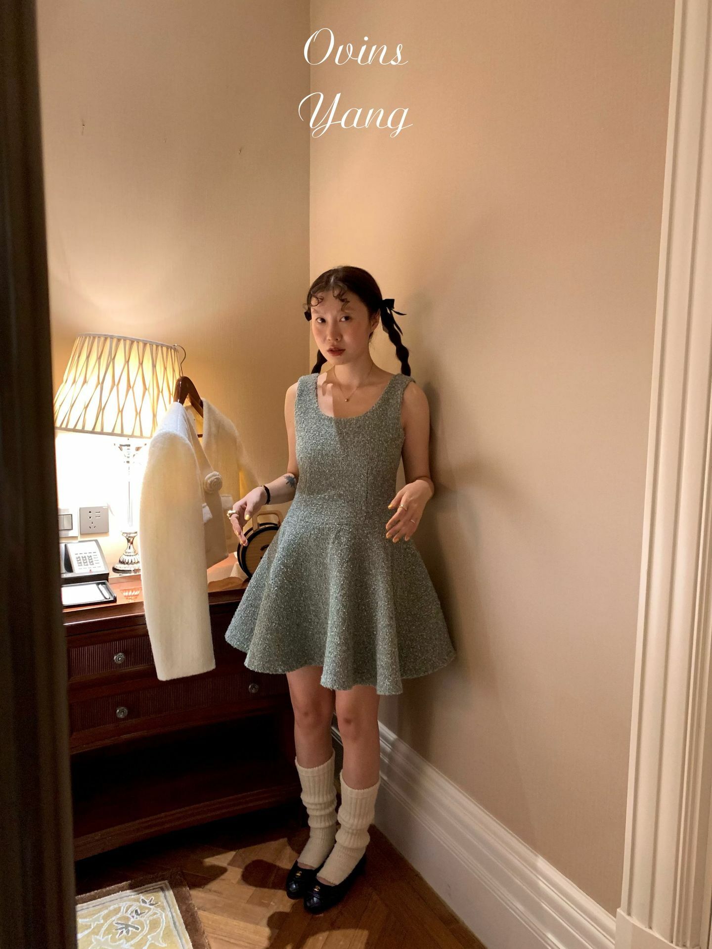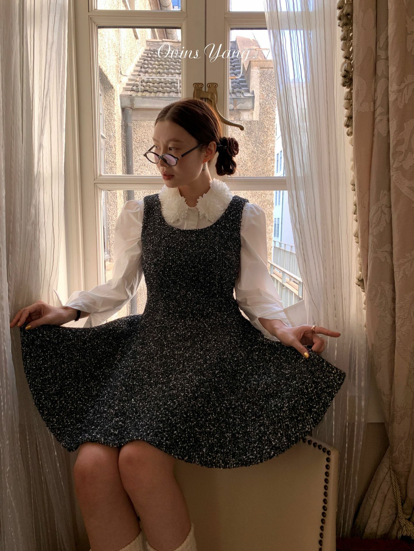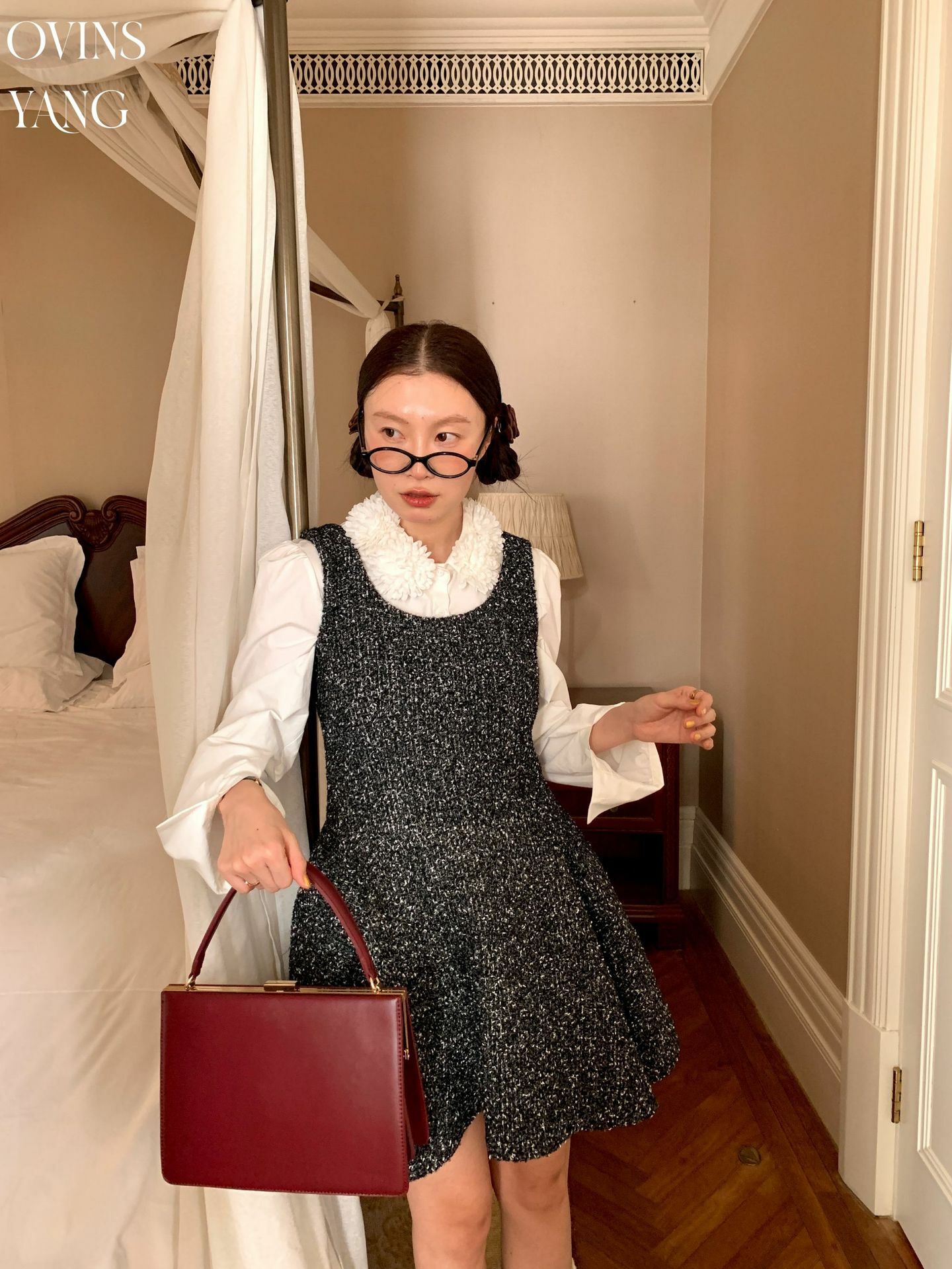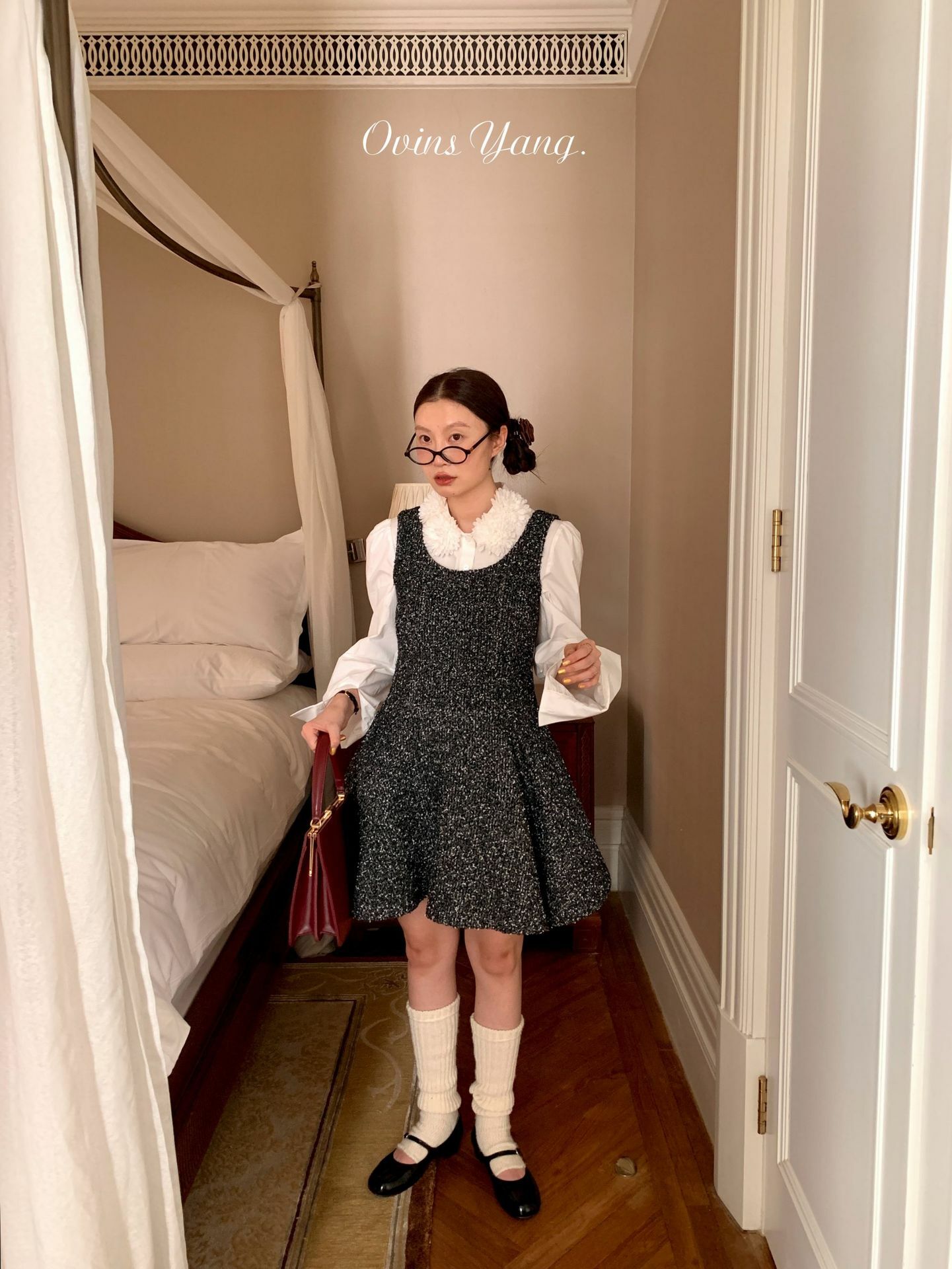 *o-ha-you*【FOY100526】亮晶晶毛呢背帶裙子連衣裙秋冬設計感小眾無袖背心裙洋裝-2色-如有需要請先諮詢