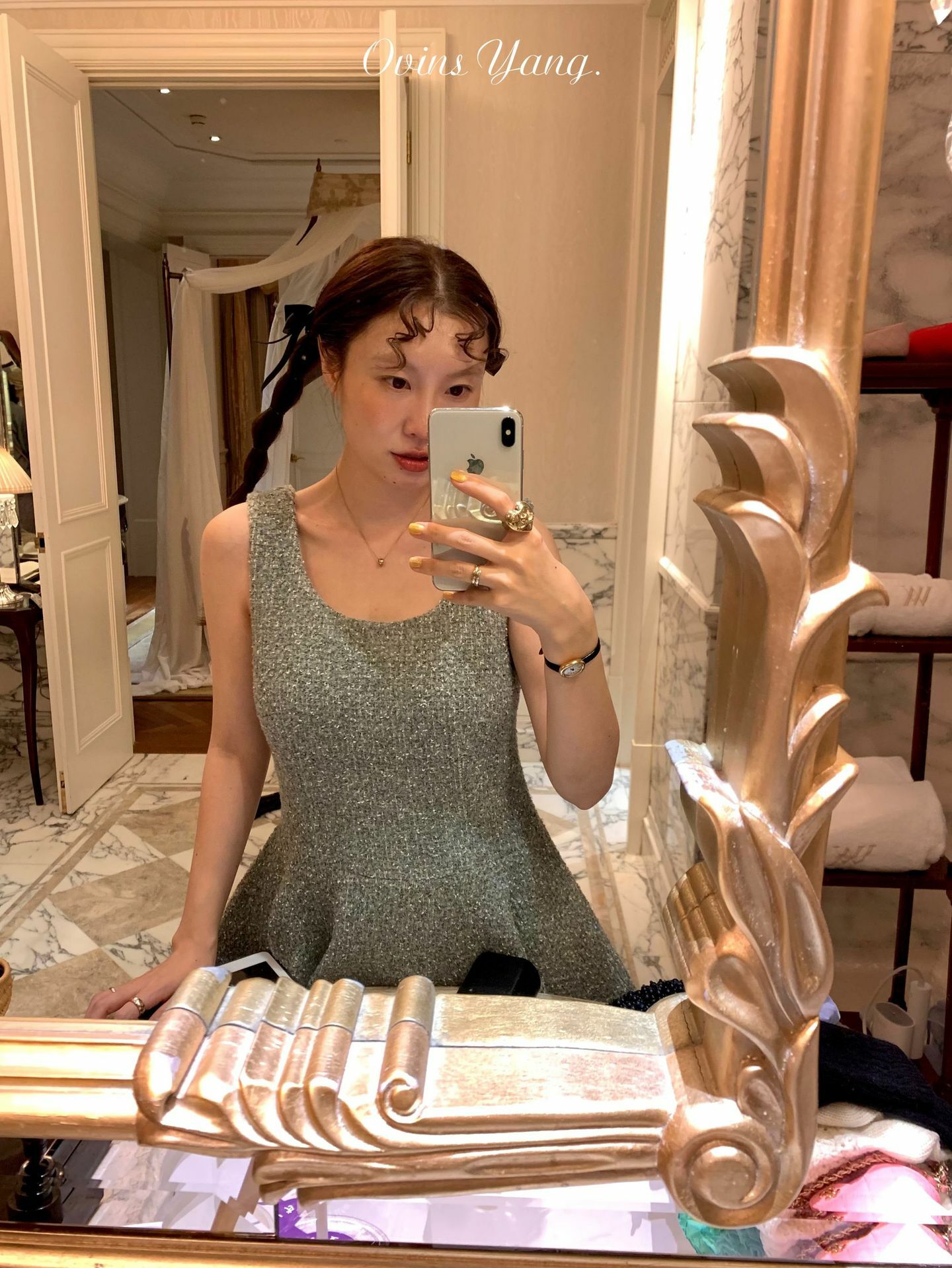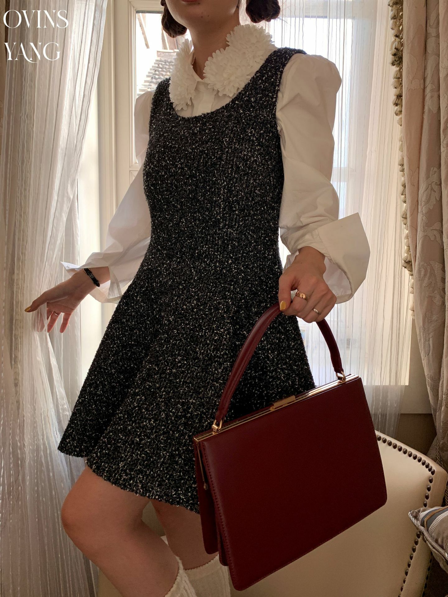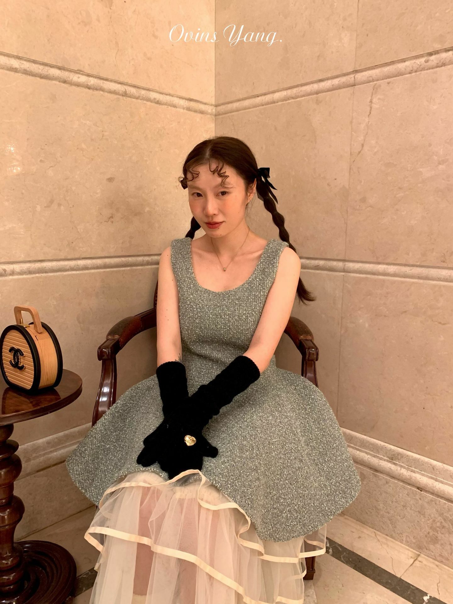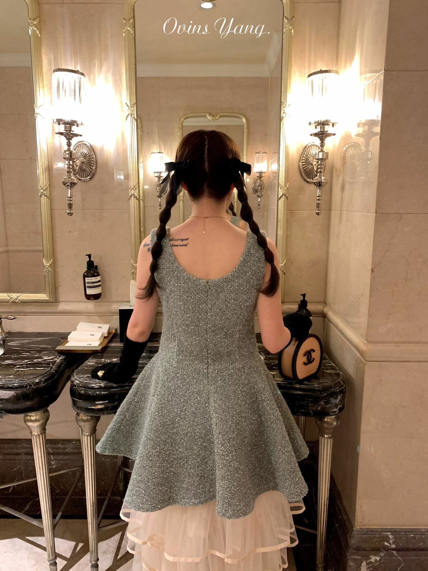 *o-ha-you*【FOY100526】亮晶晶毛呢背帶裙子連衣裙秋冬設計感小眾無袖背心裙洋裝-2色-如有需要請先諮詢