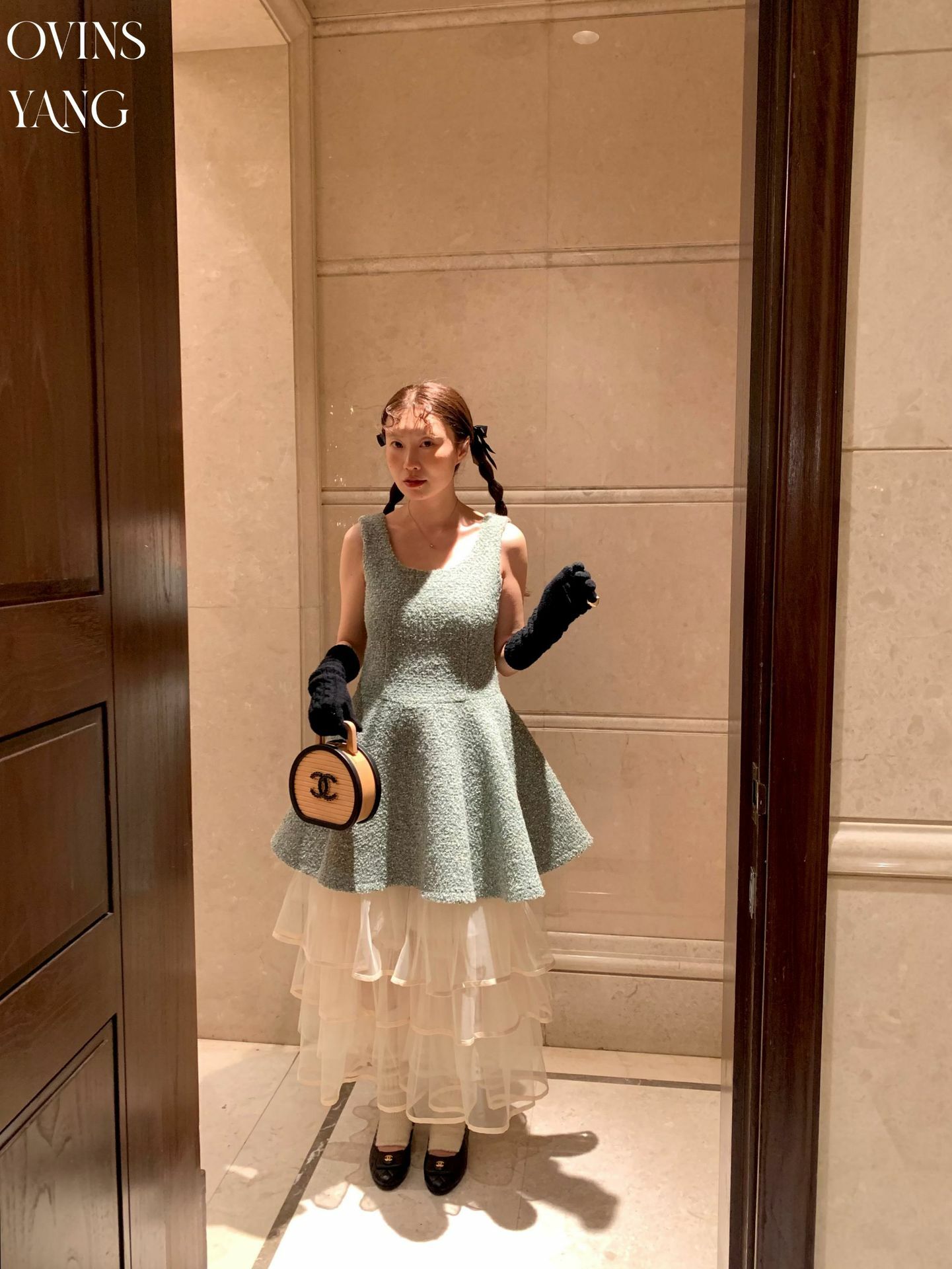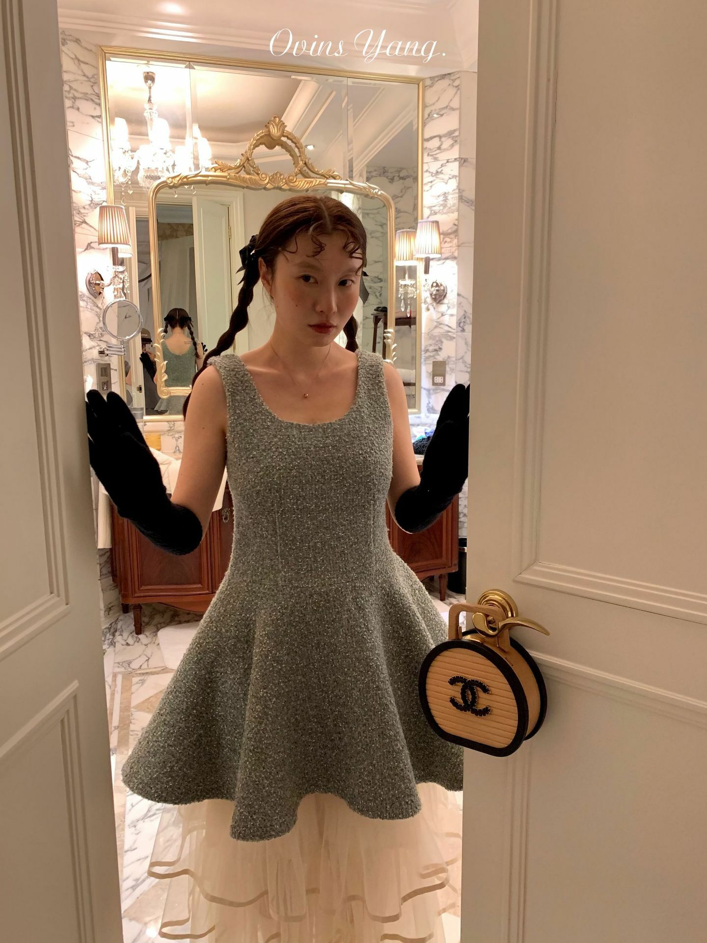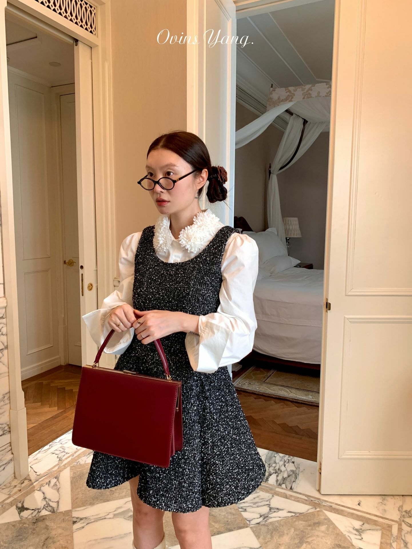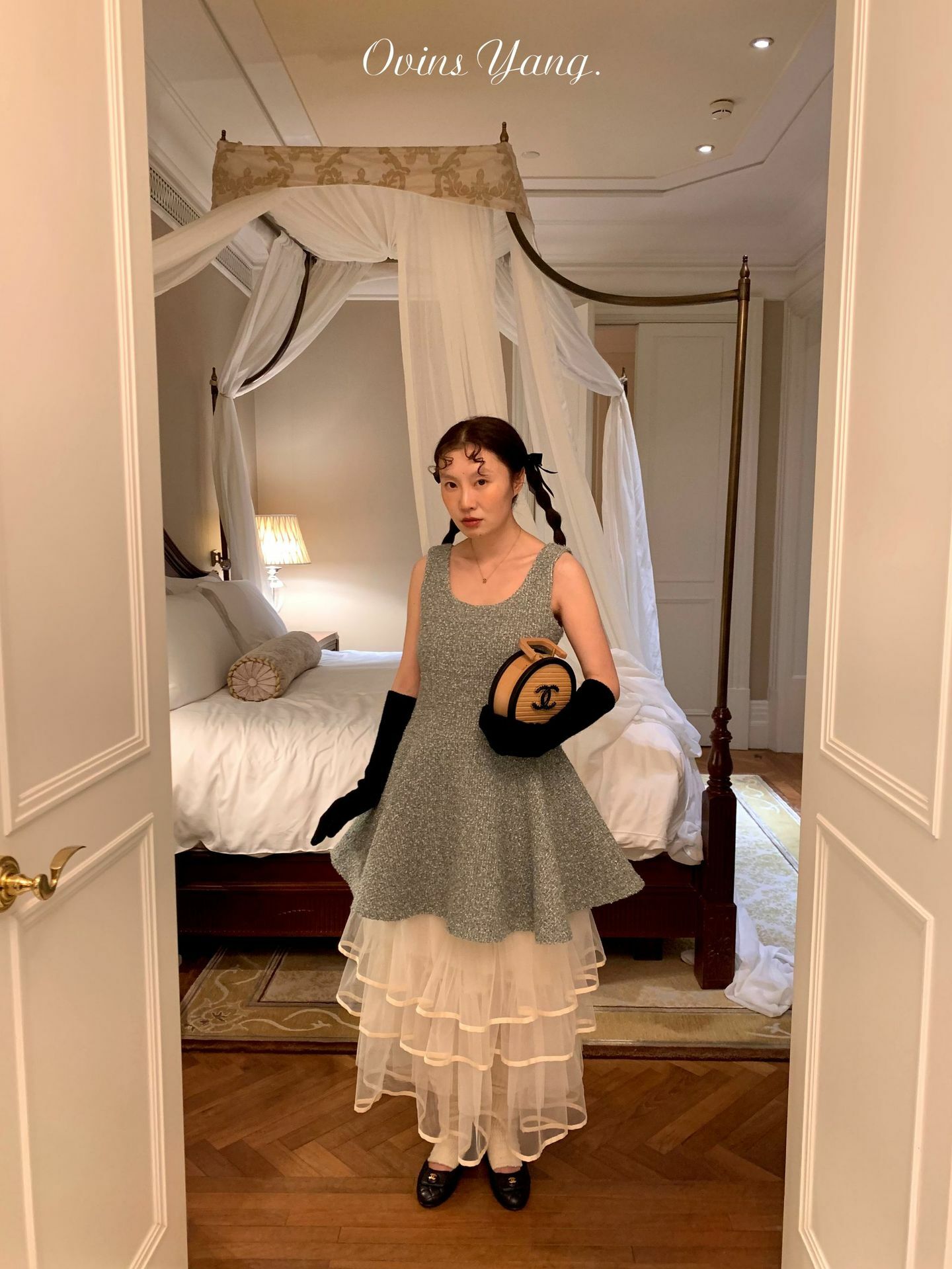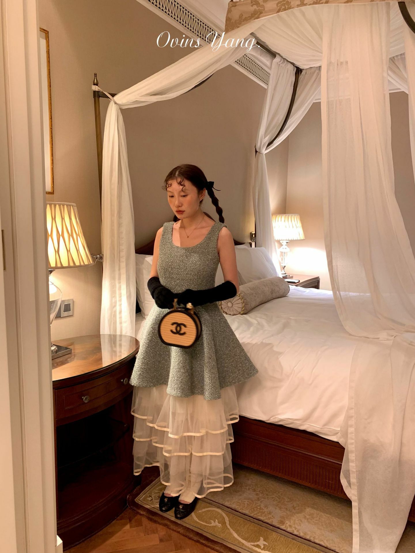 *o-ha-you*【FOY100526】亮晶晶毛呢背帶裙子連衣裙秋冬設計感小眾無袖背心裙洋裝-2色-如有需要請先諮詢