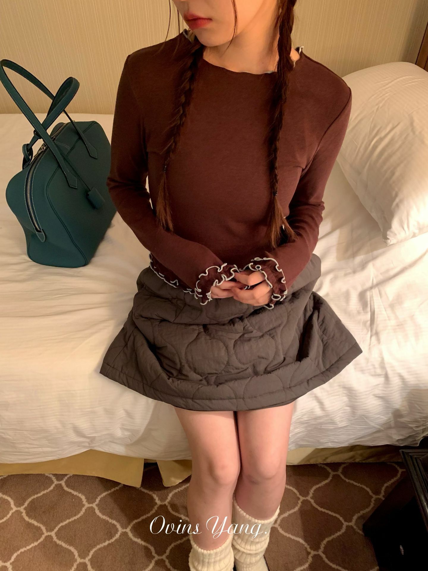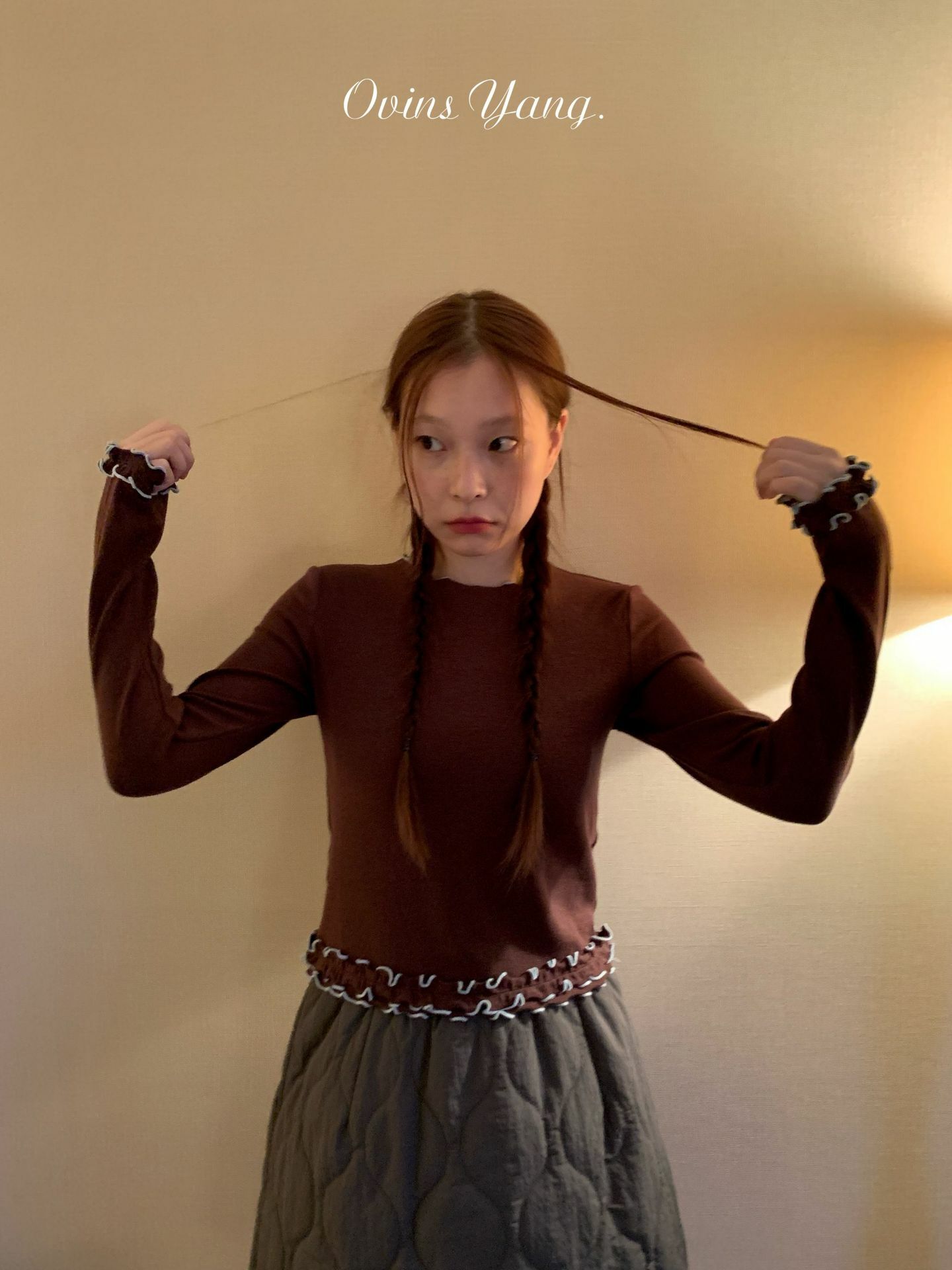 *o-ha-you*【FOY100539】捲邊打底衫秋冬內搭設計感小眾甜美穿搭長袖短版上衣-4色-如有需要請先諮詢