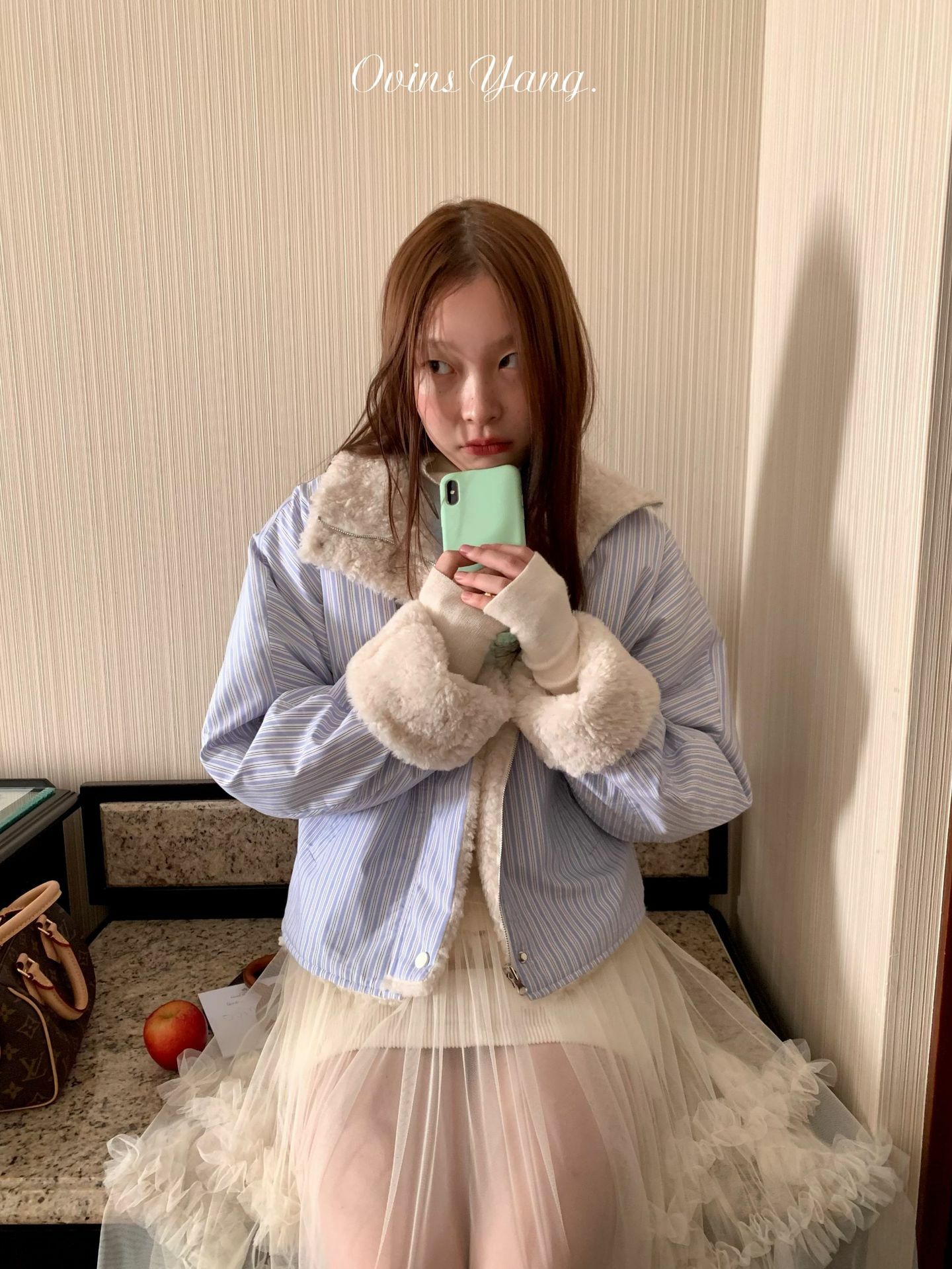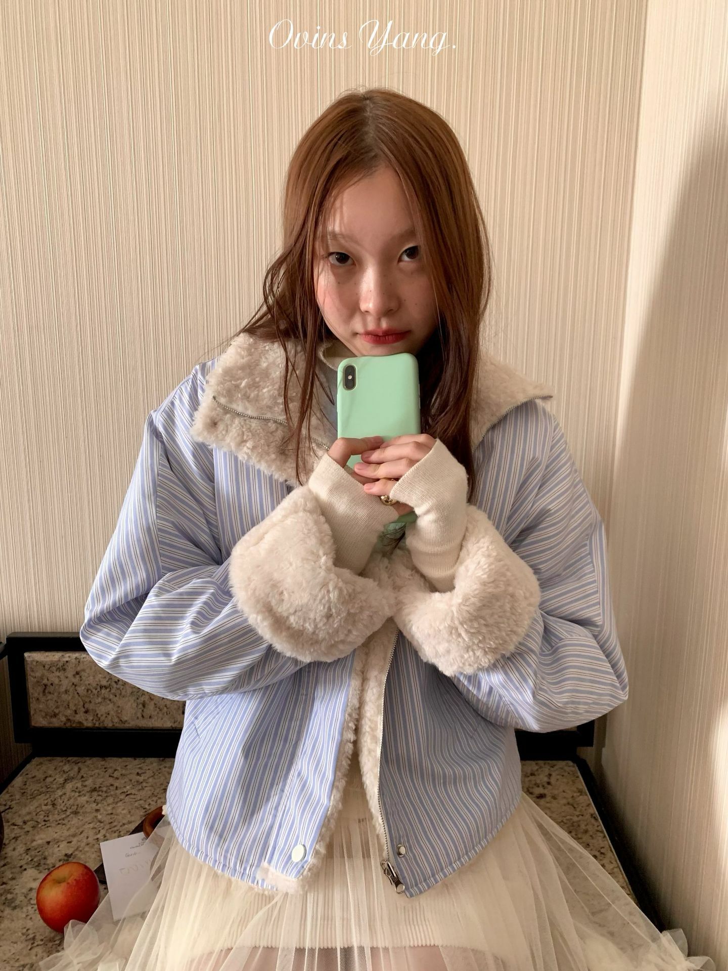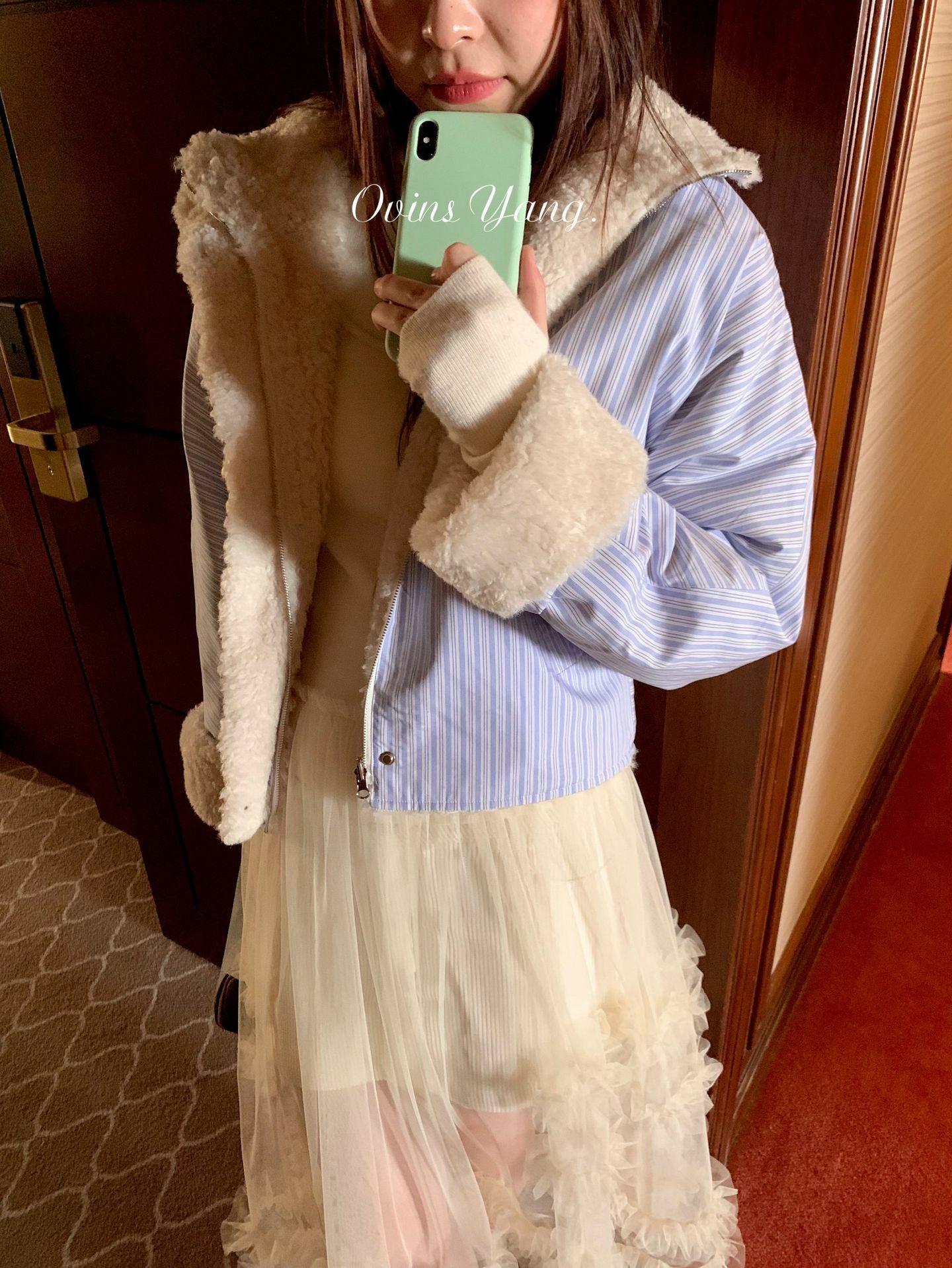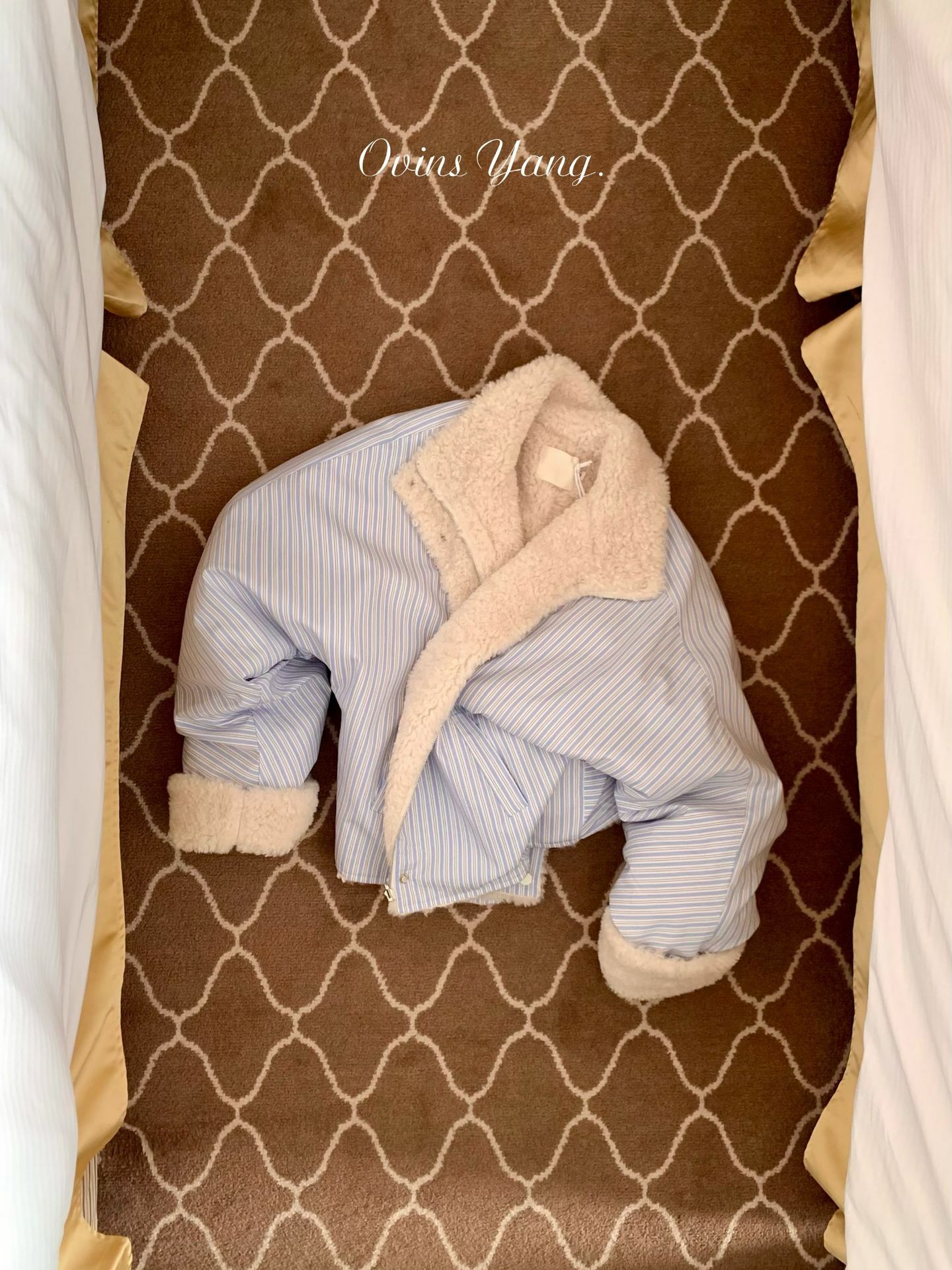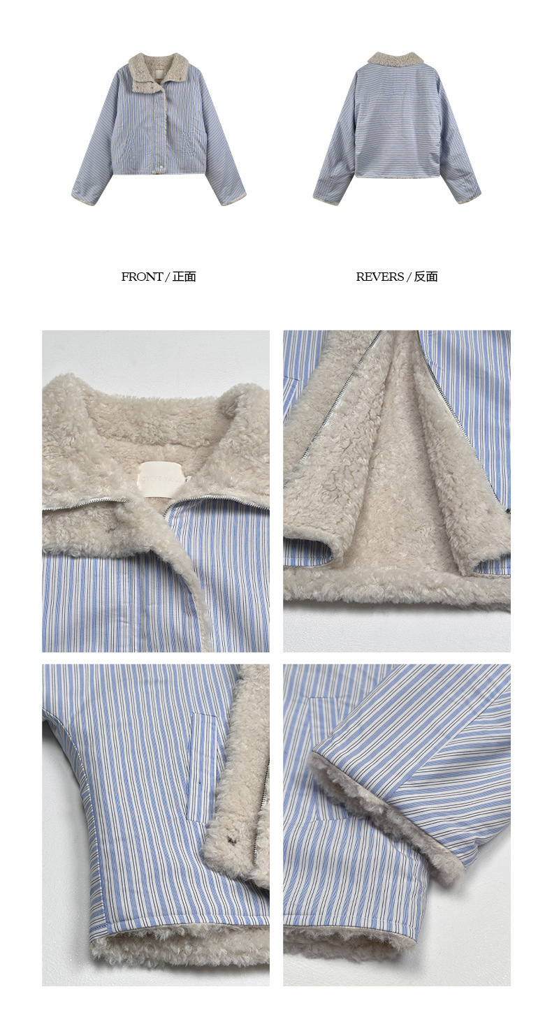 *o-ha-you*【FOY100561】條紋羊羔毛外套冬季2024新款設計感小眾短版毛呢外套-如有需要請先諮詢