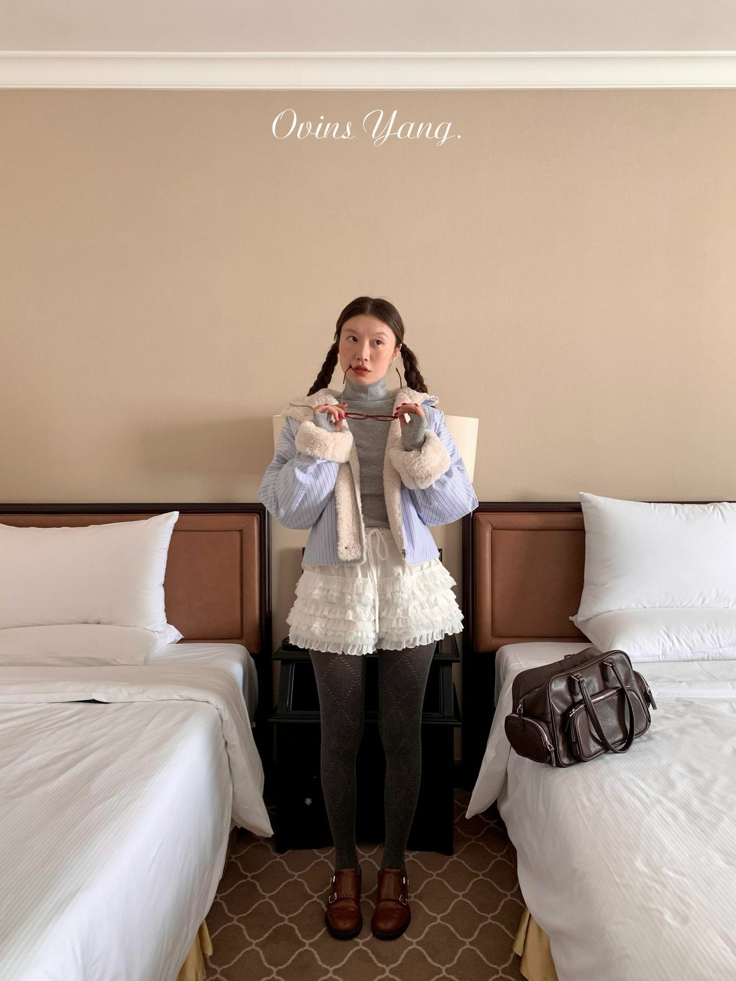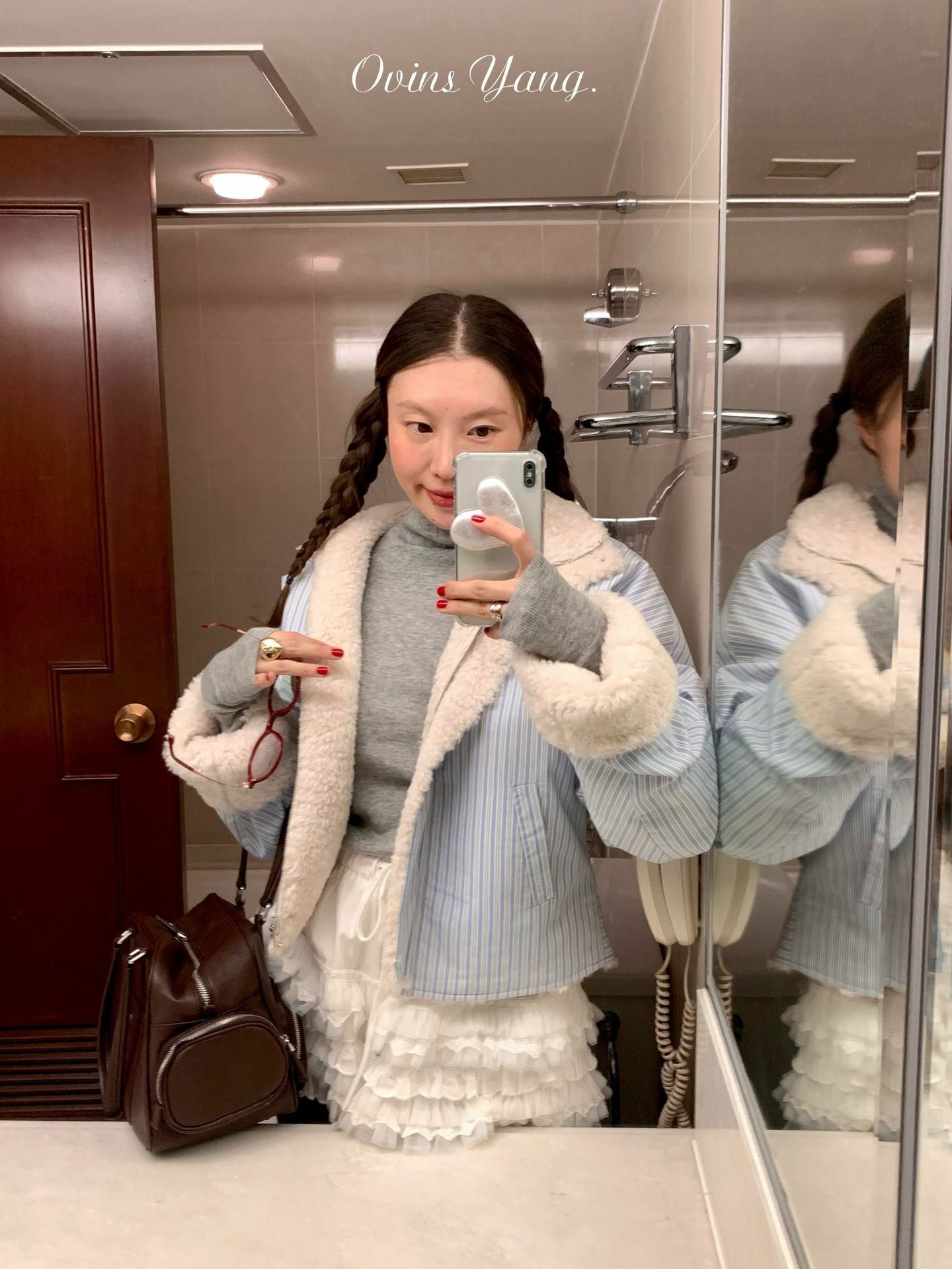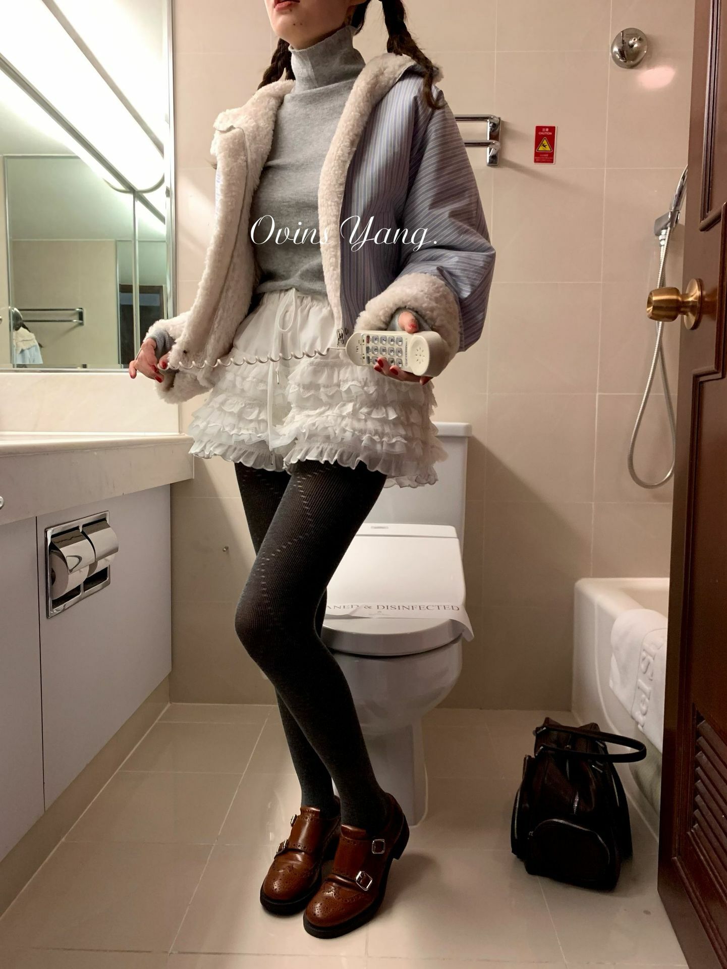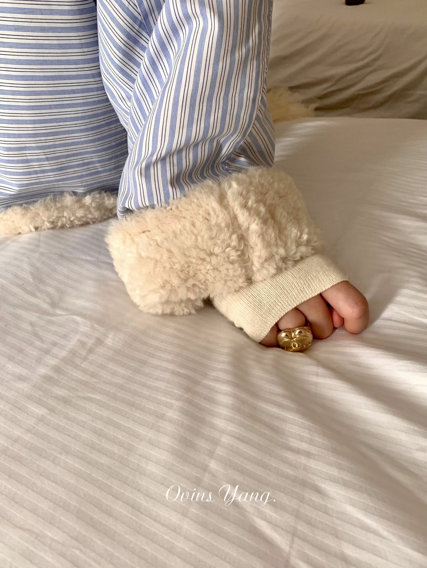 *o-ha-you*【FOY100561】條紋羊羔毛外套冬季2024新款設計感小眾短版毛呢外套-如有需要請先諮詢
