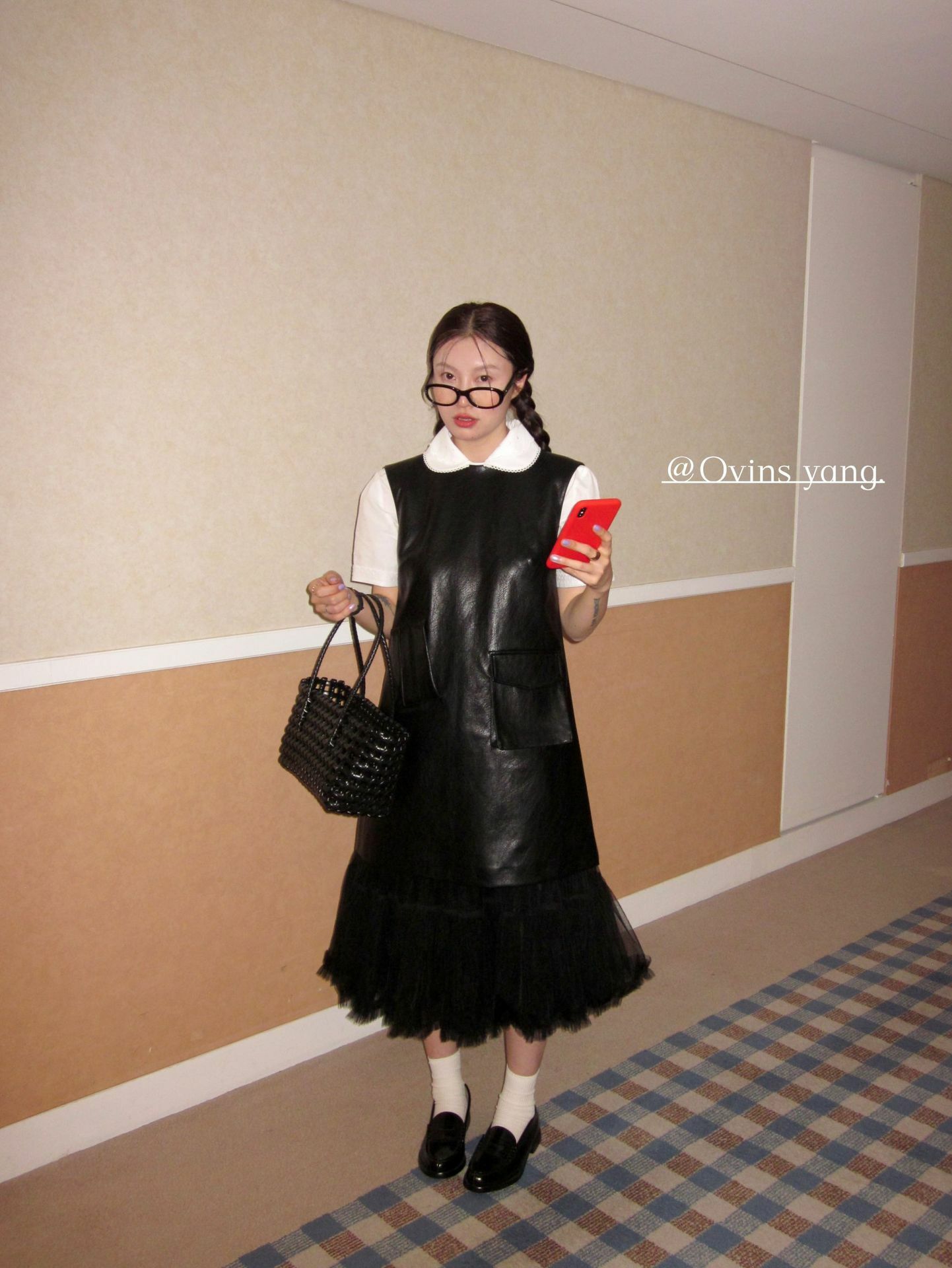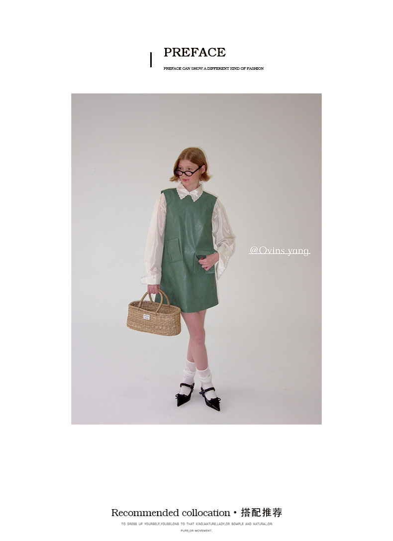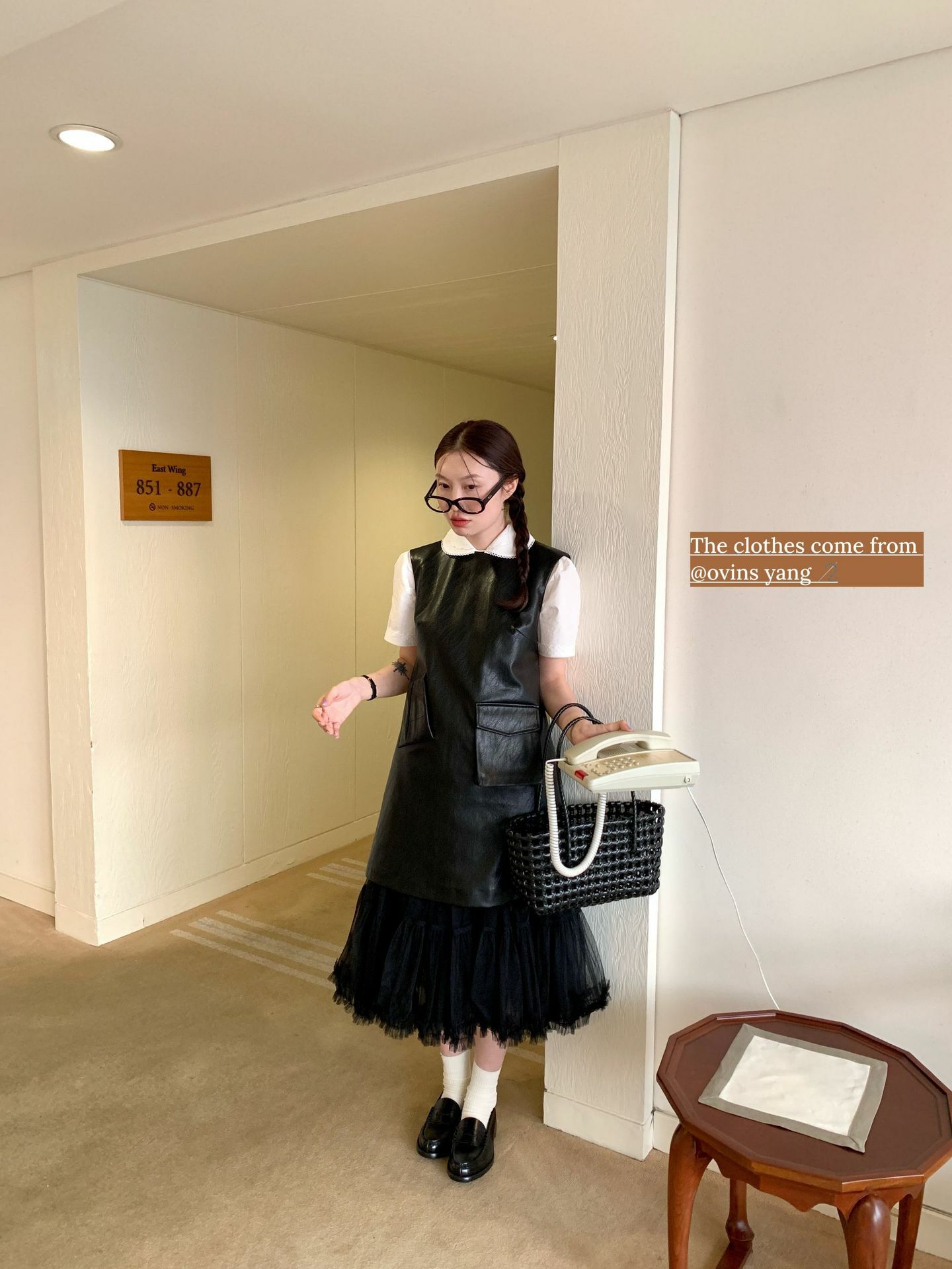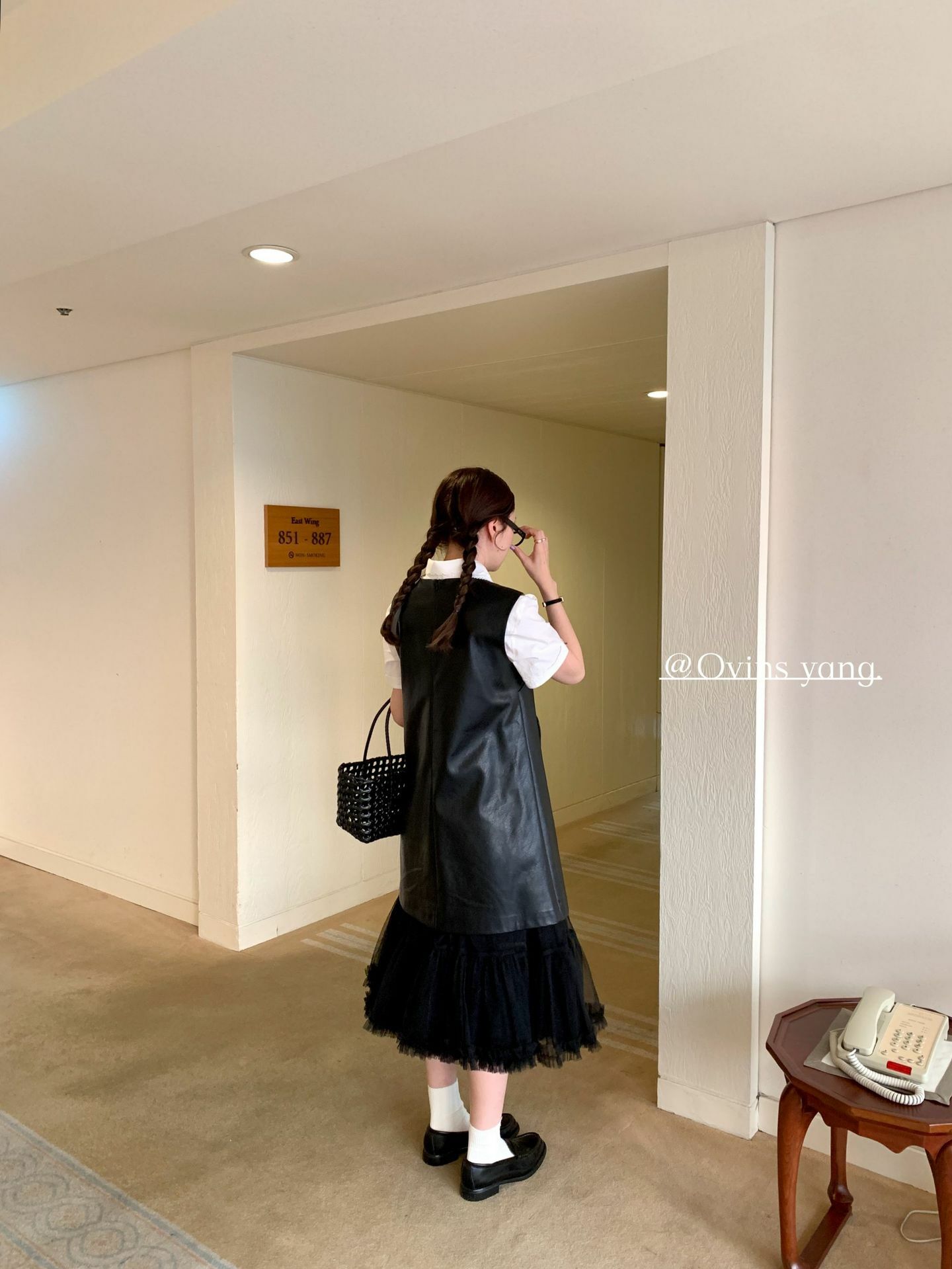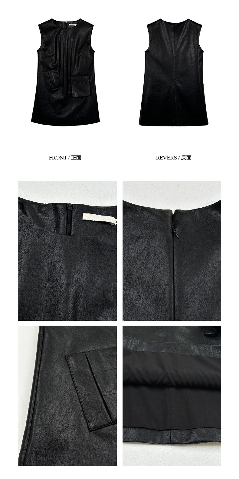 *o-ha-you*【FOY100567】PU皮A字連衣裙春秋設計感小眾繆系穿搭休閒背心裙洋裝-2色-如有需要請先諮詢