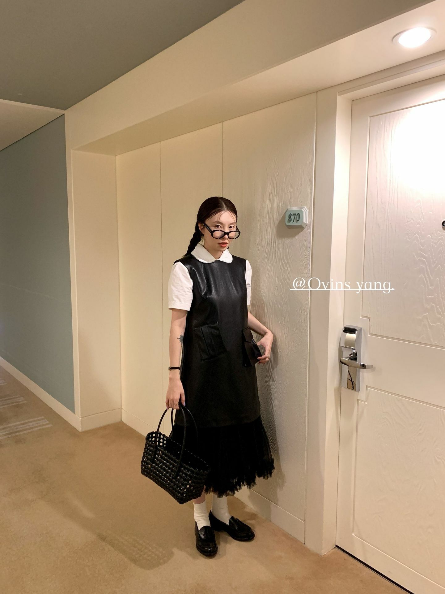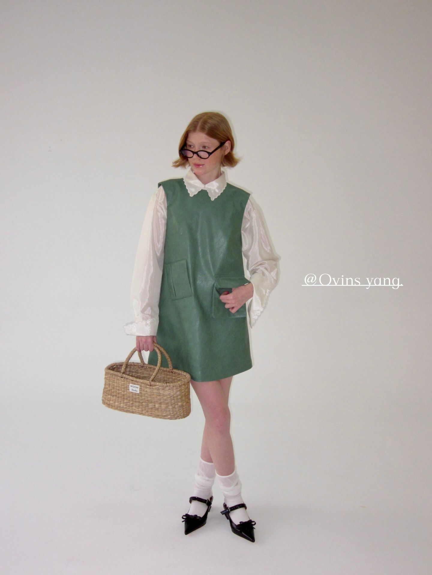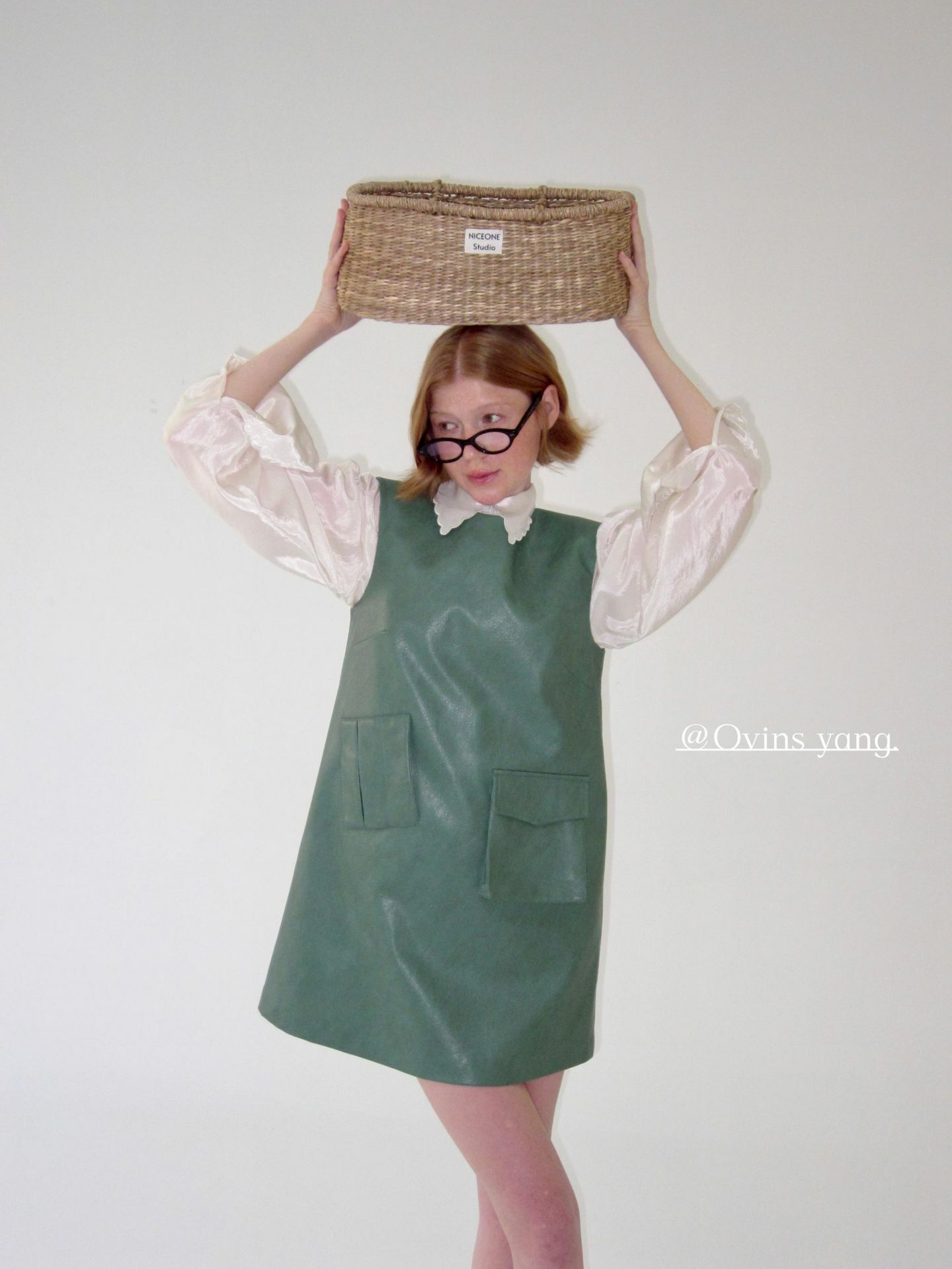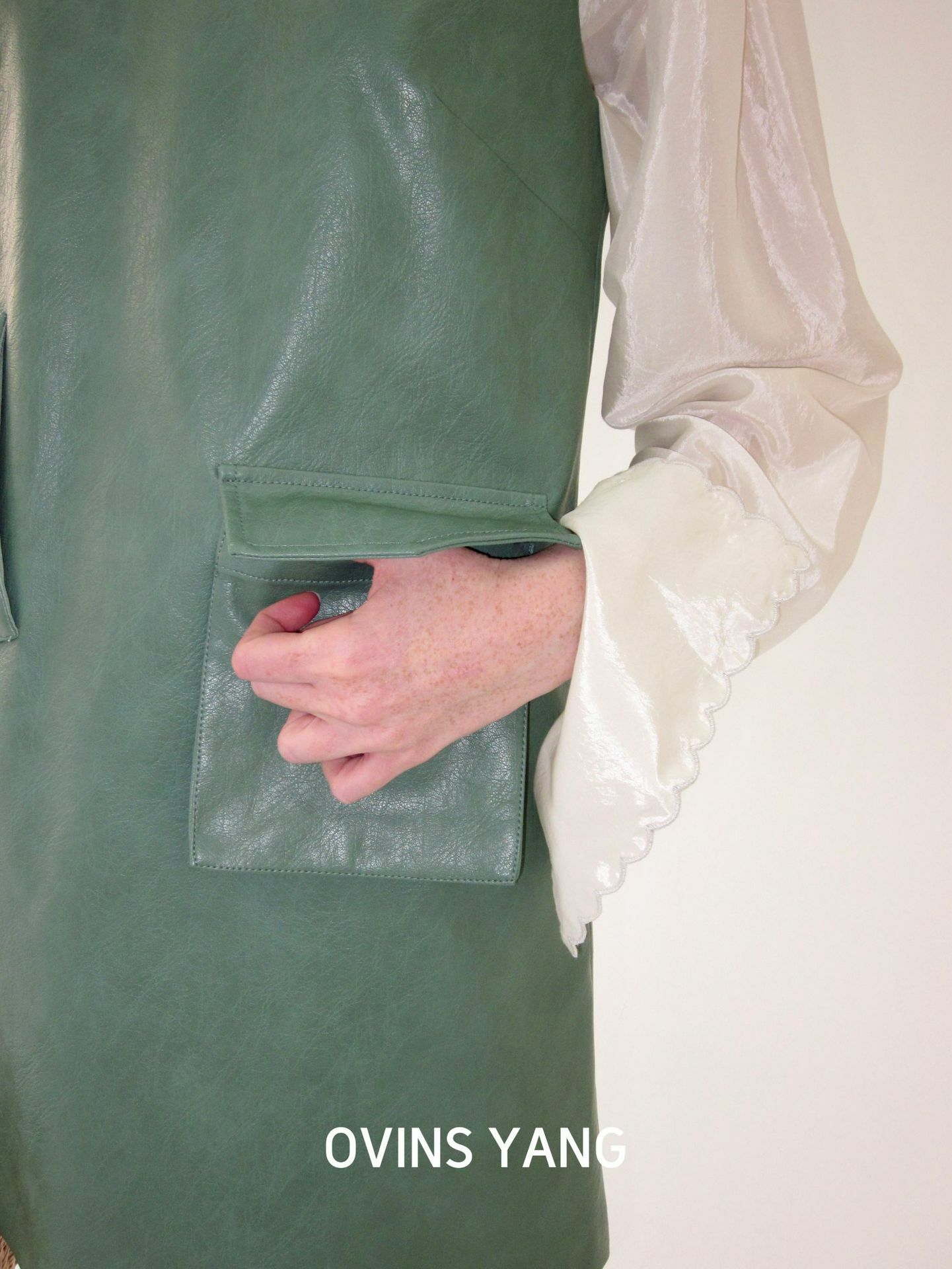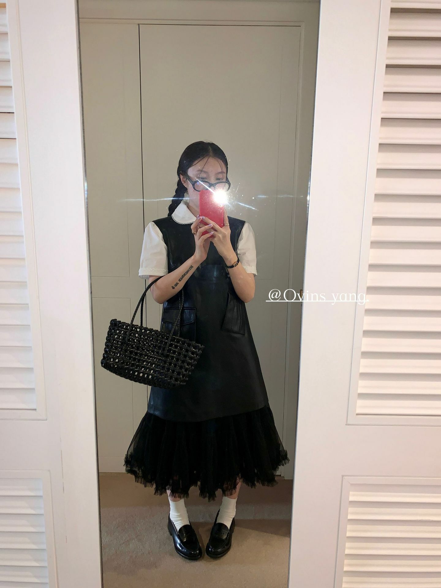 *o-ha-you*【FOY100567】PU皮A字連衣裙春秋設計感小眾繆系穿搭休閒背心裙洋裝-2色-如有需要請先諮詢