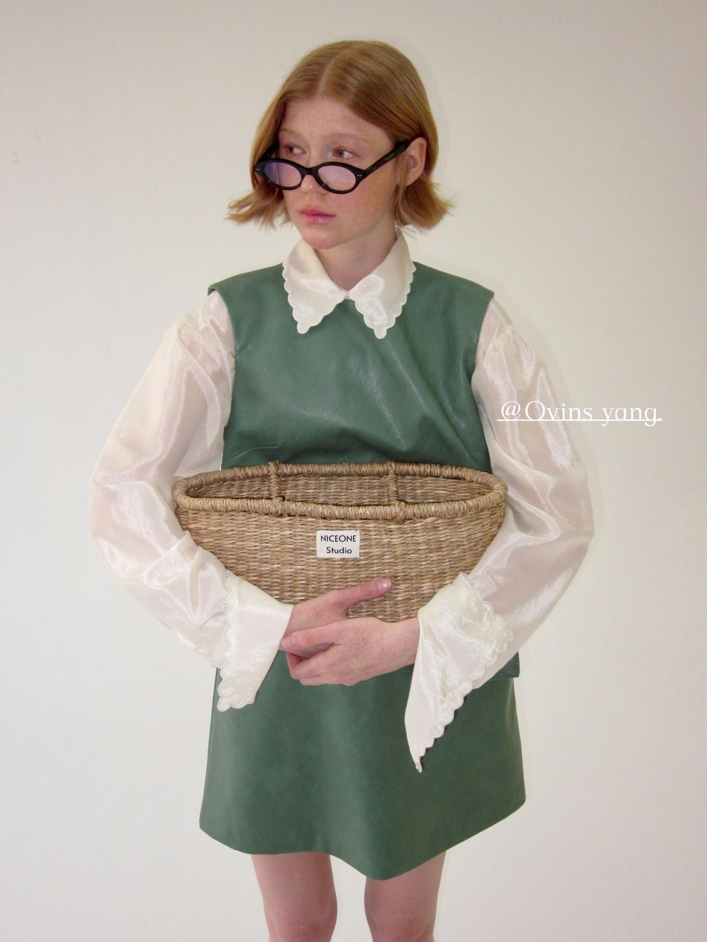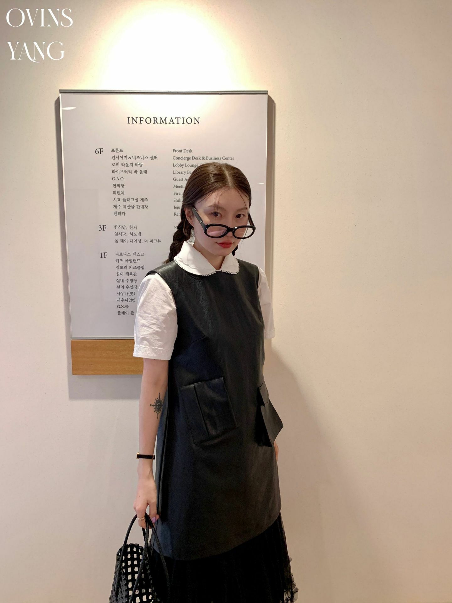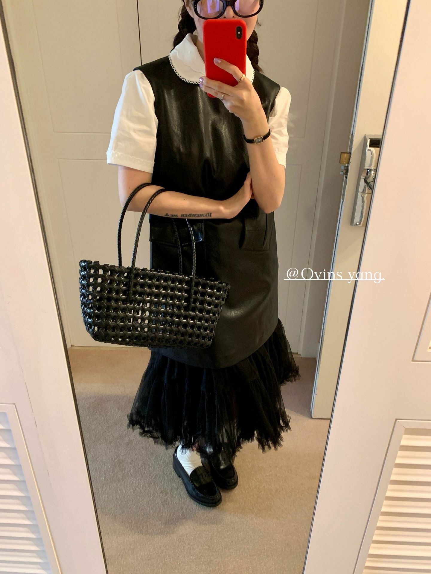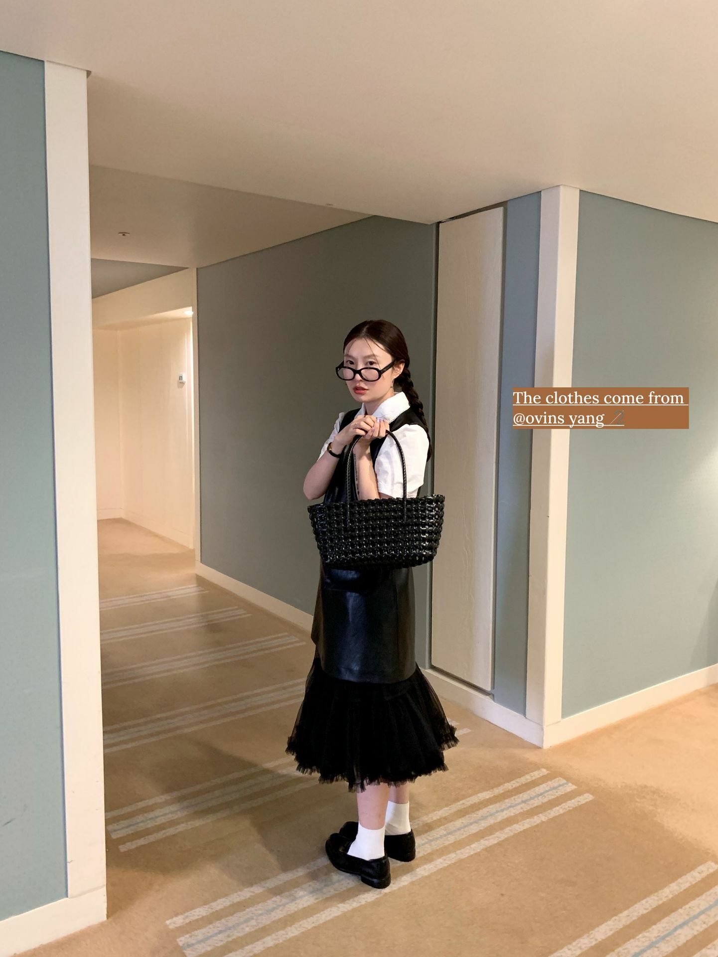 *o-ha-you*【FOY100567】PU皮A字連衣裙春秋設計感小眾繆系穿搭休閒背心裙洋裝-2色-如有需要請先諮詢