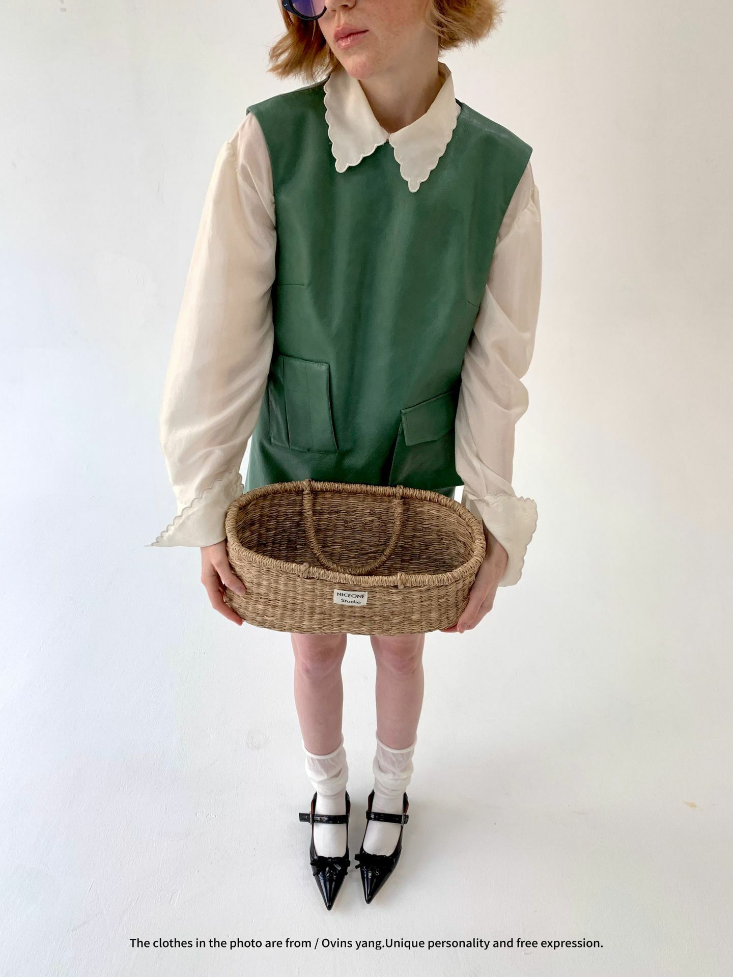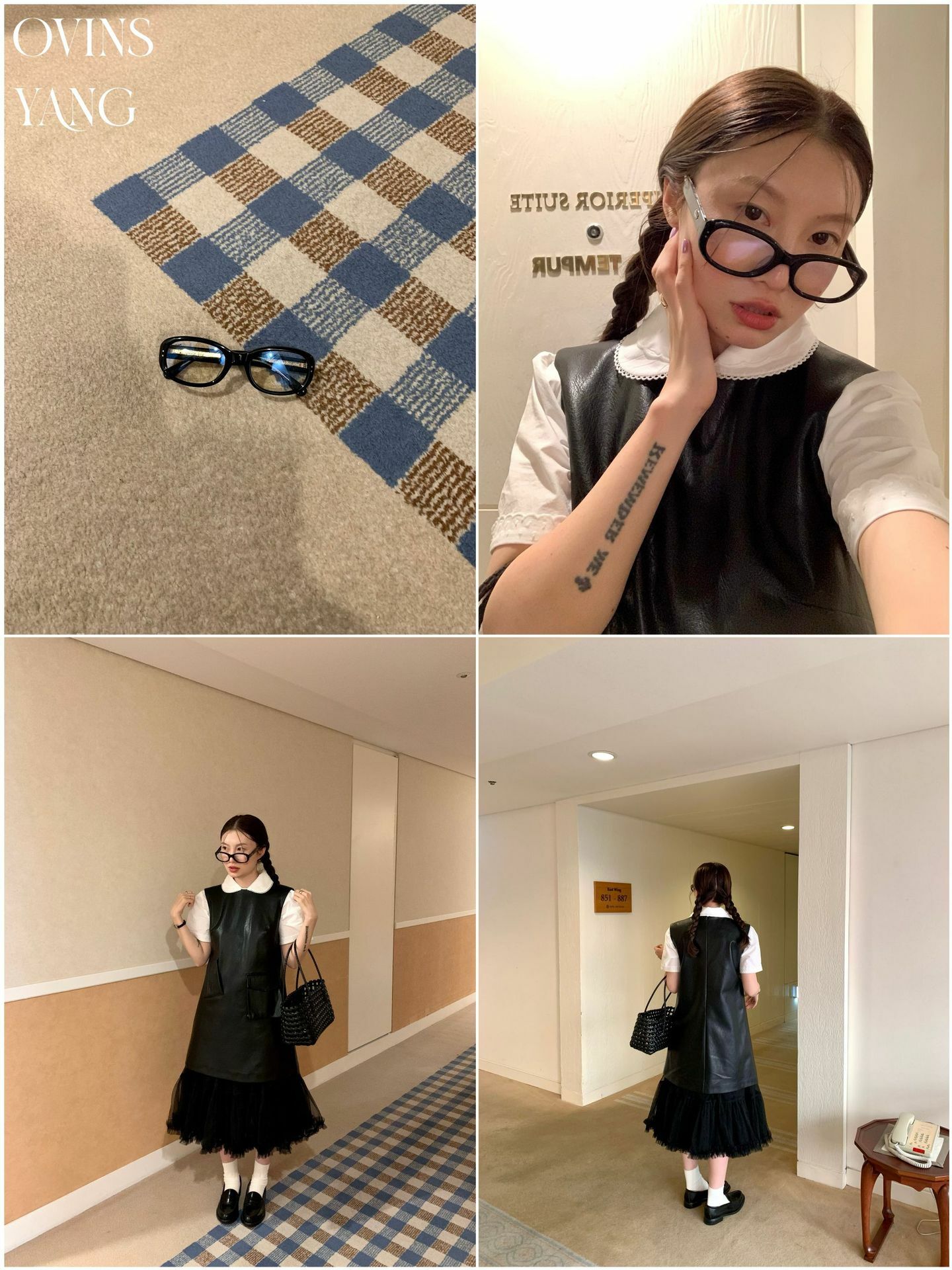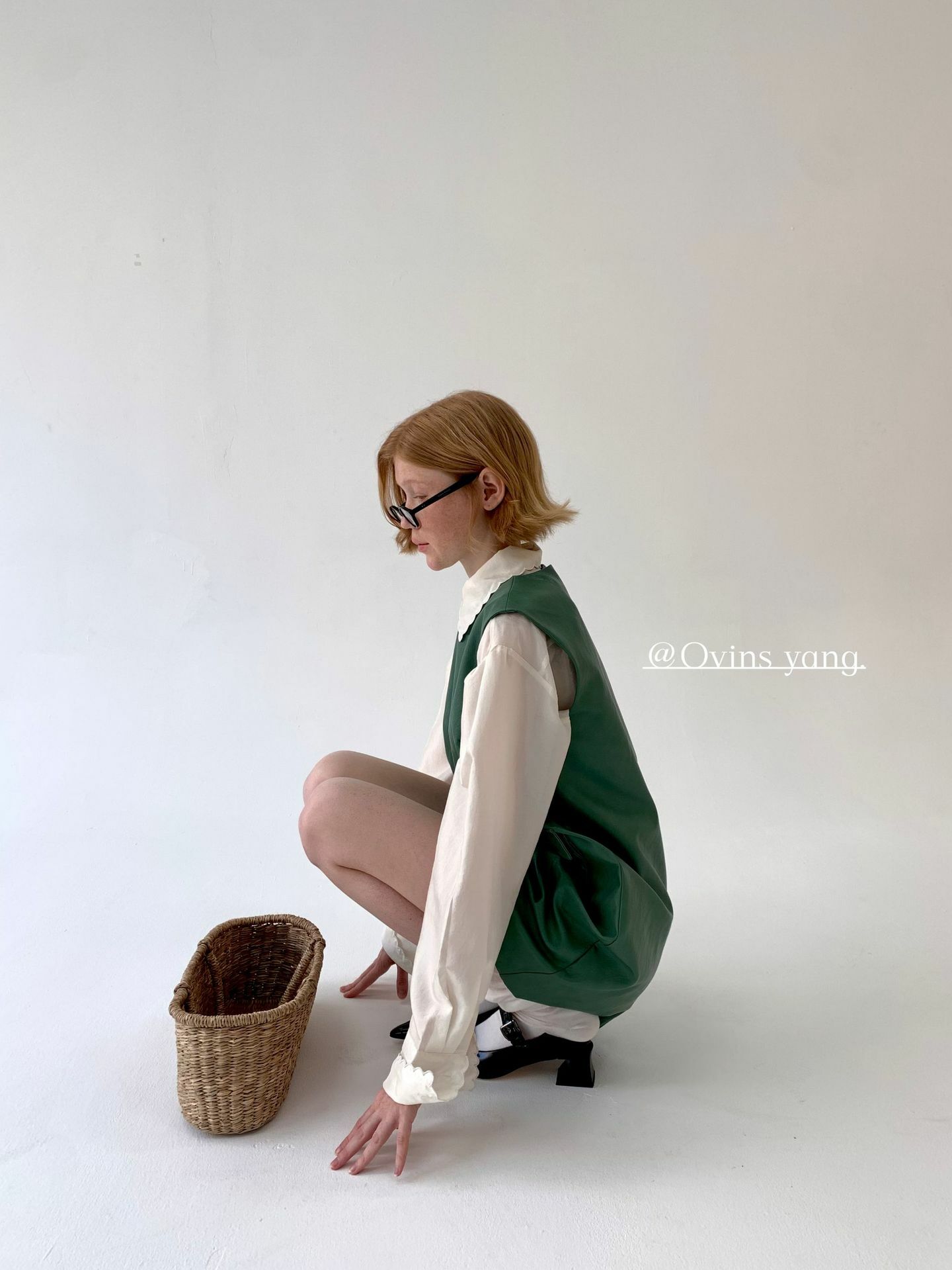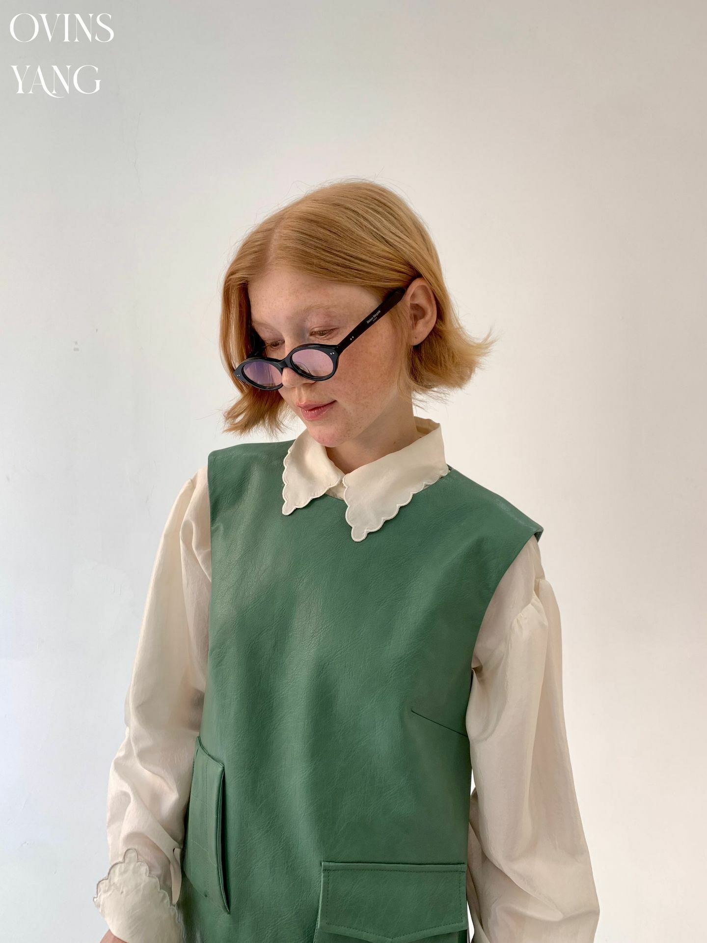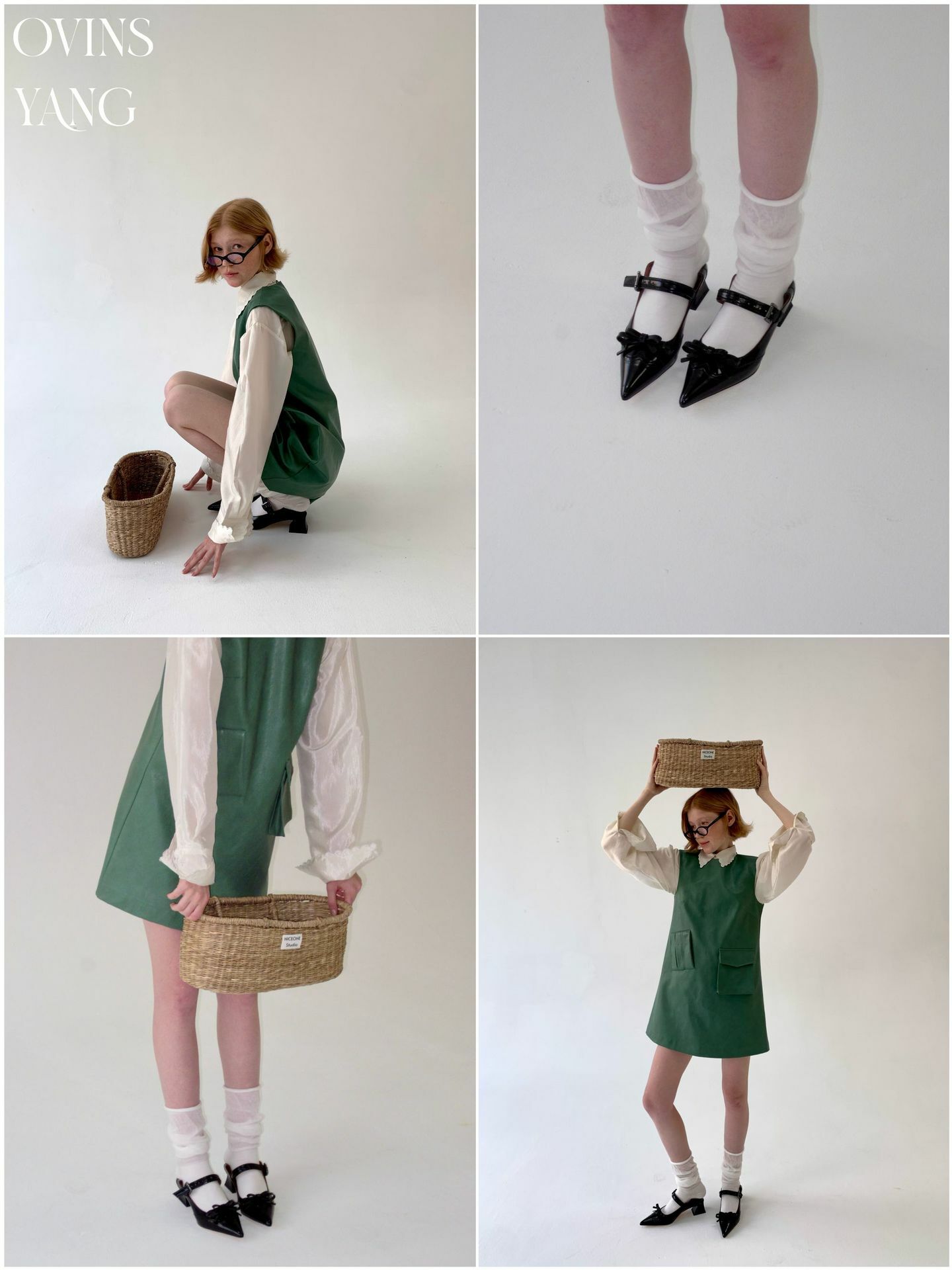 *o-ha-you*【FOY100567】PU皮A字連衣裙春秋設計感小眾繆系穿搭休閒背心裙洋裝-2色-如有需要請先諮詢