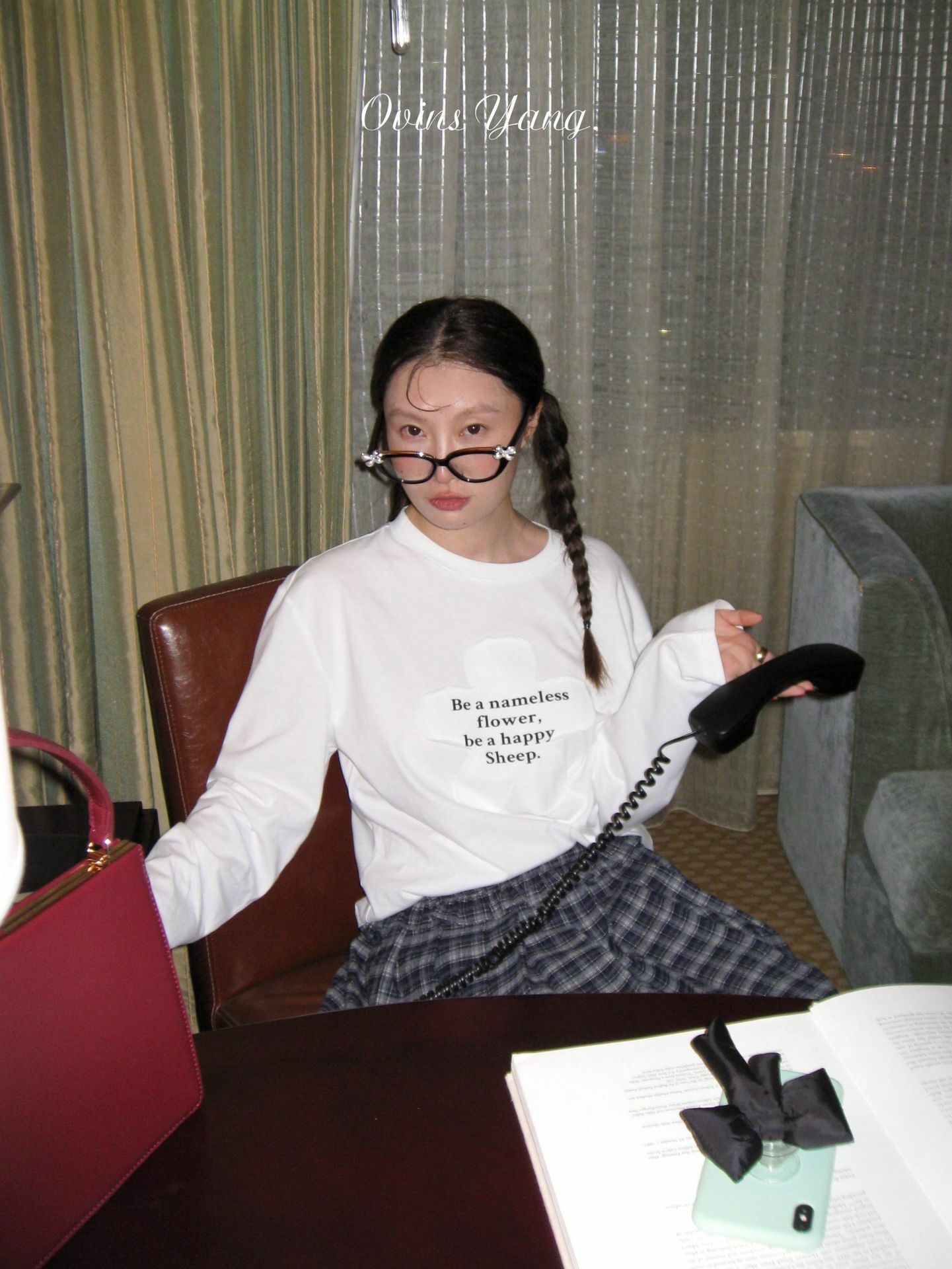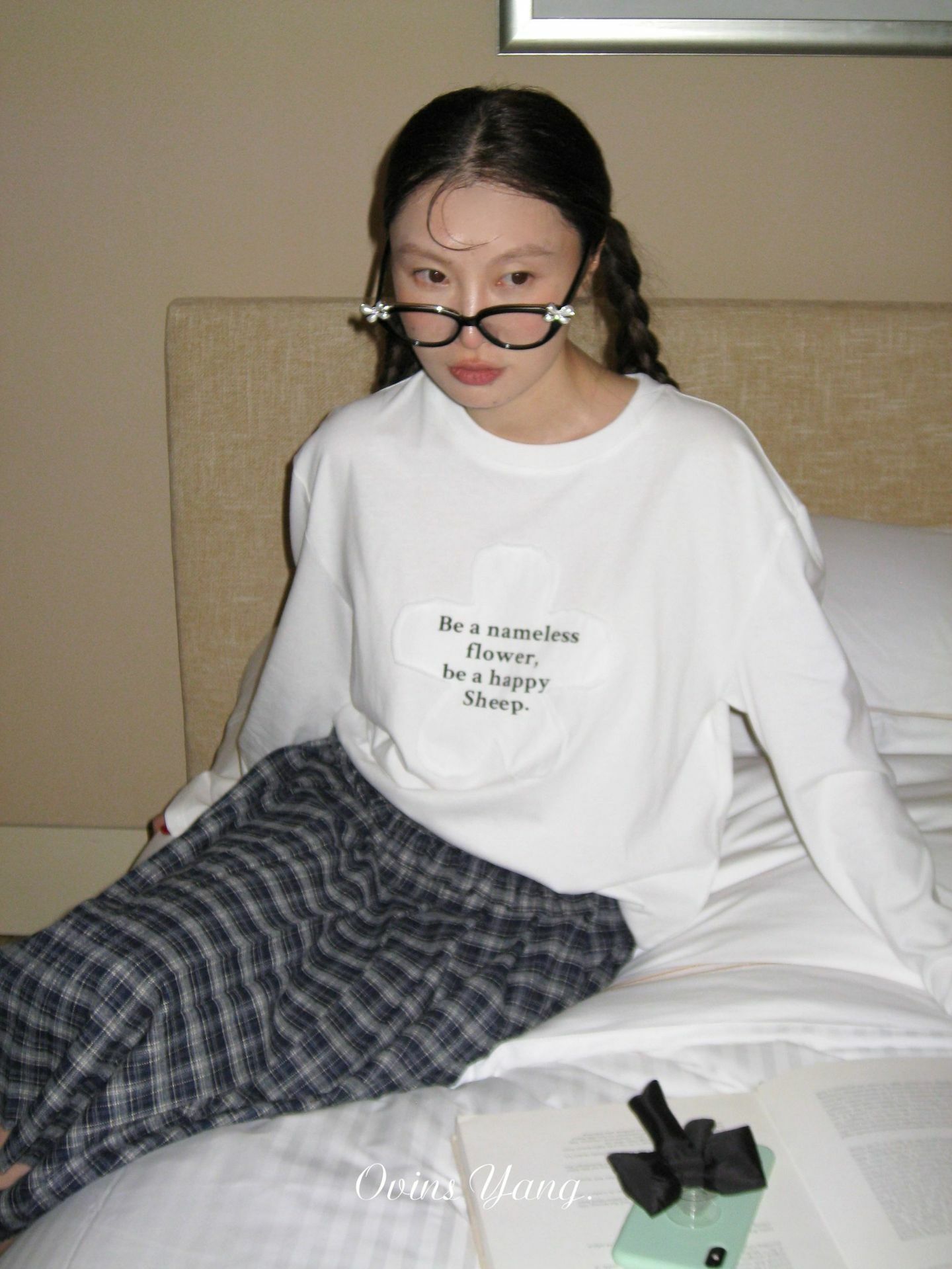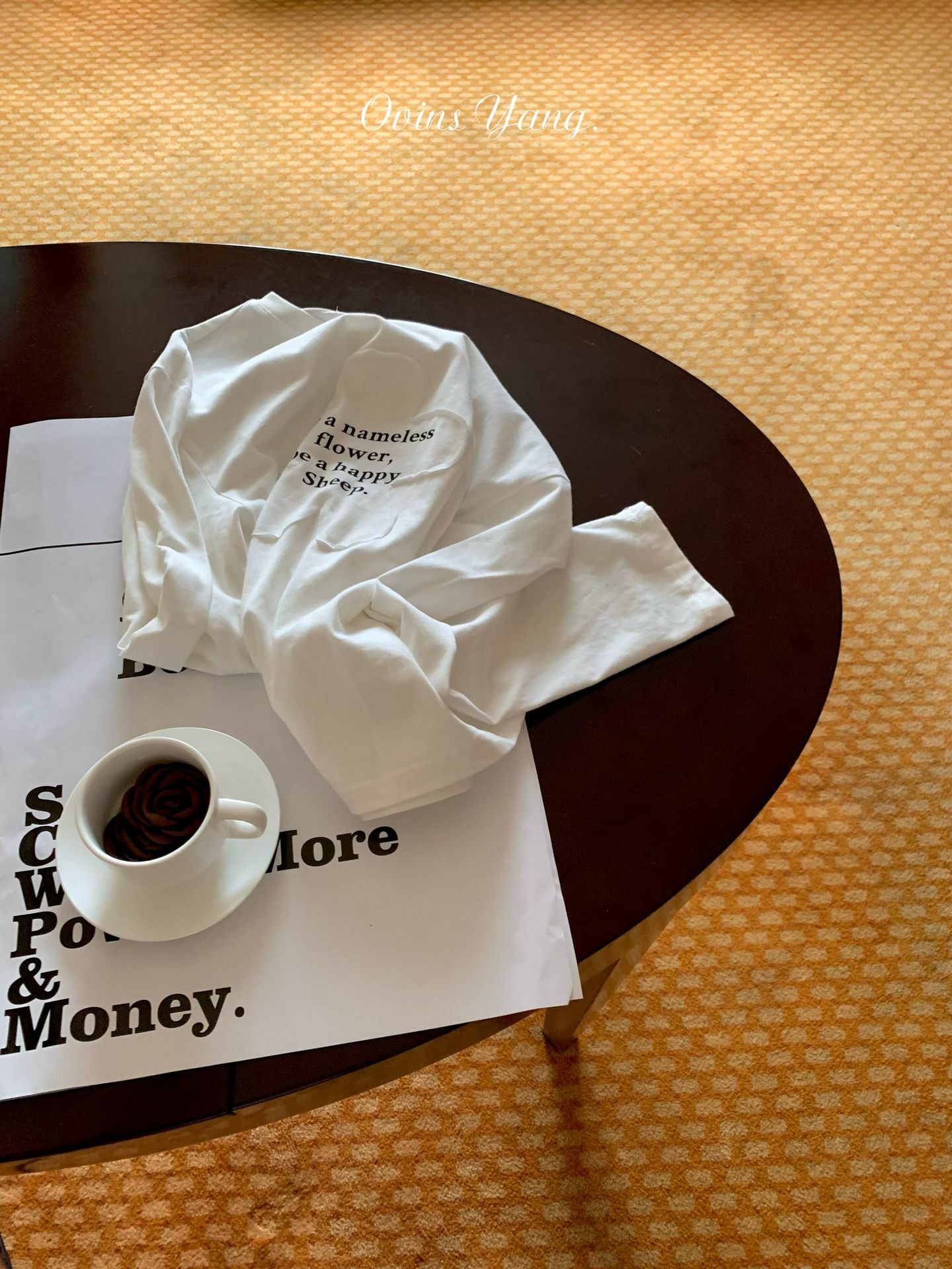 *o-ha-you*【FOY100573】設計感花朵字母白色打底衫純棉秋冬內搭長袖T恤上衣-2色-如有需要請先諮詢