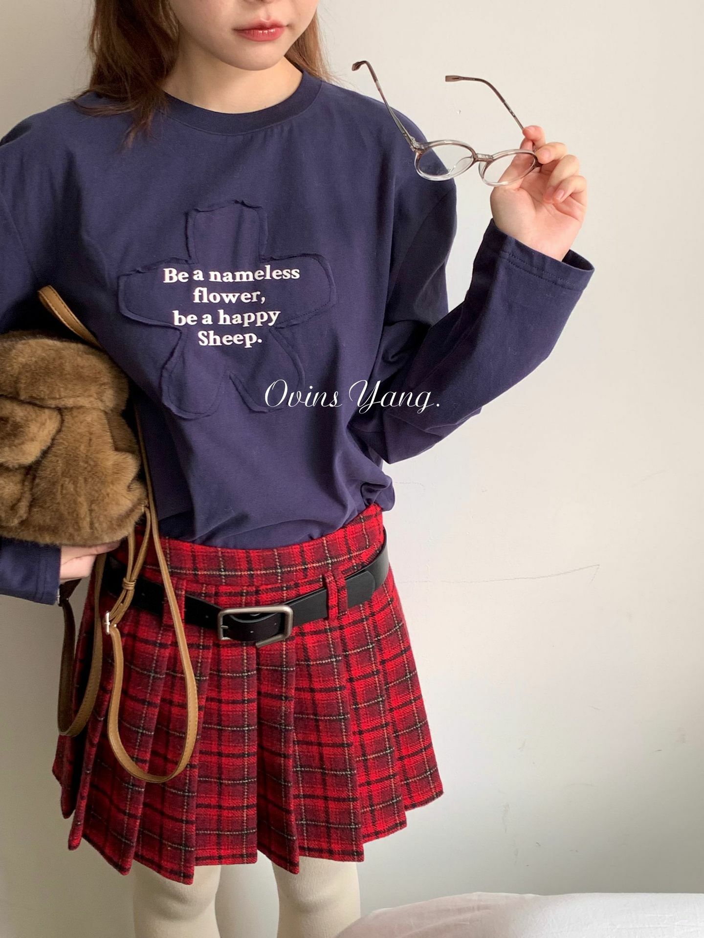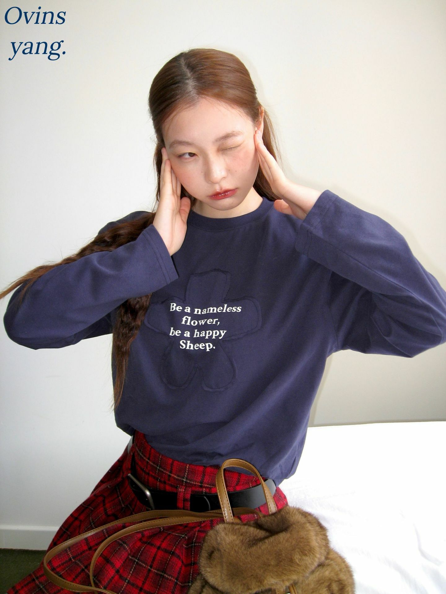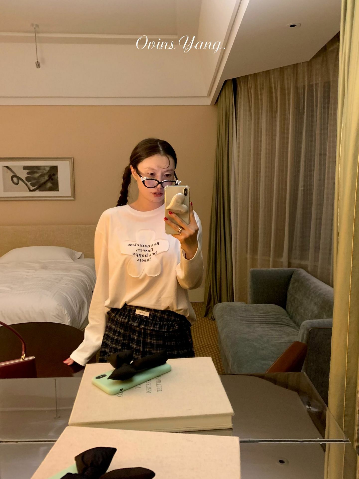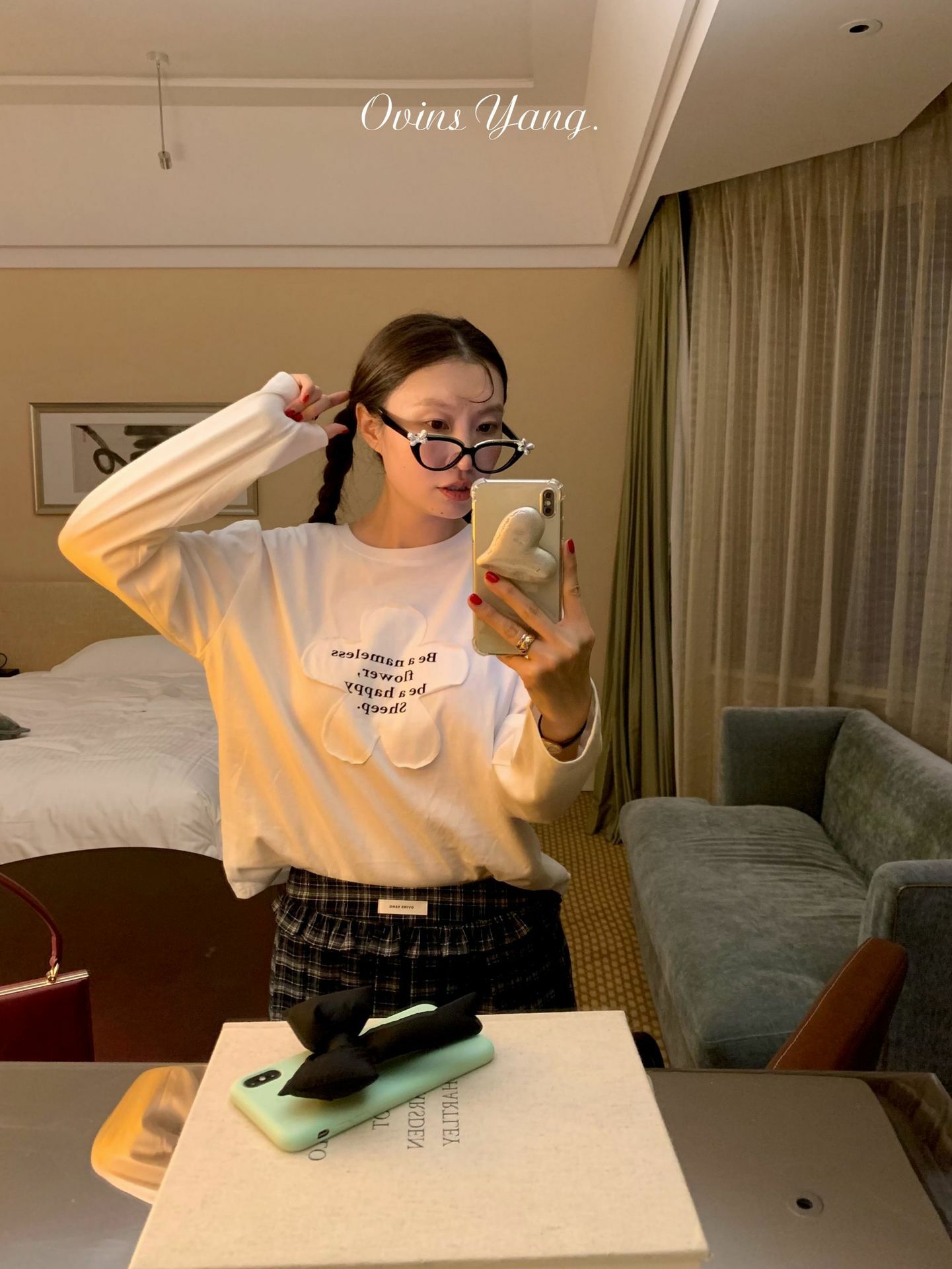*o-ha-you*【FOY100573】設計感花朵字母白色打底衫純棉秋冬內搭長袖T恤上衣-2色-如有需要請先諮詢
