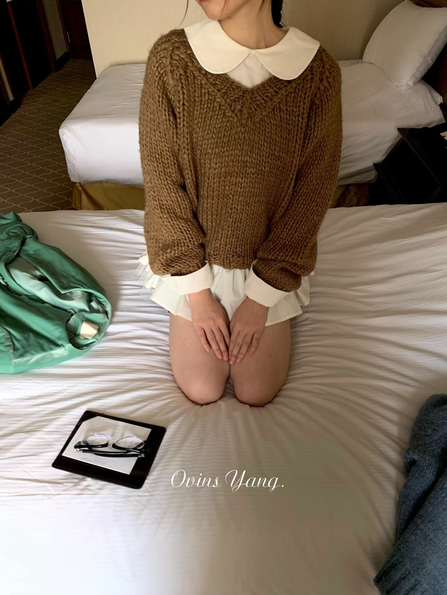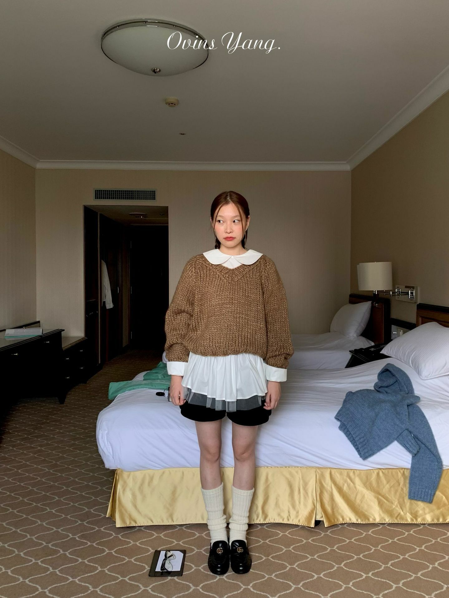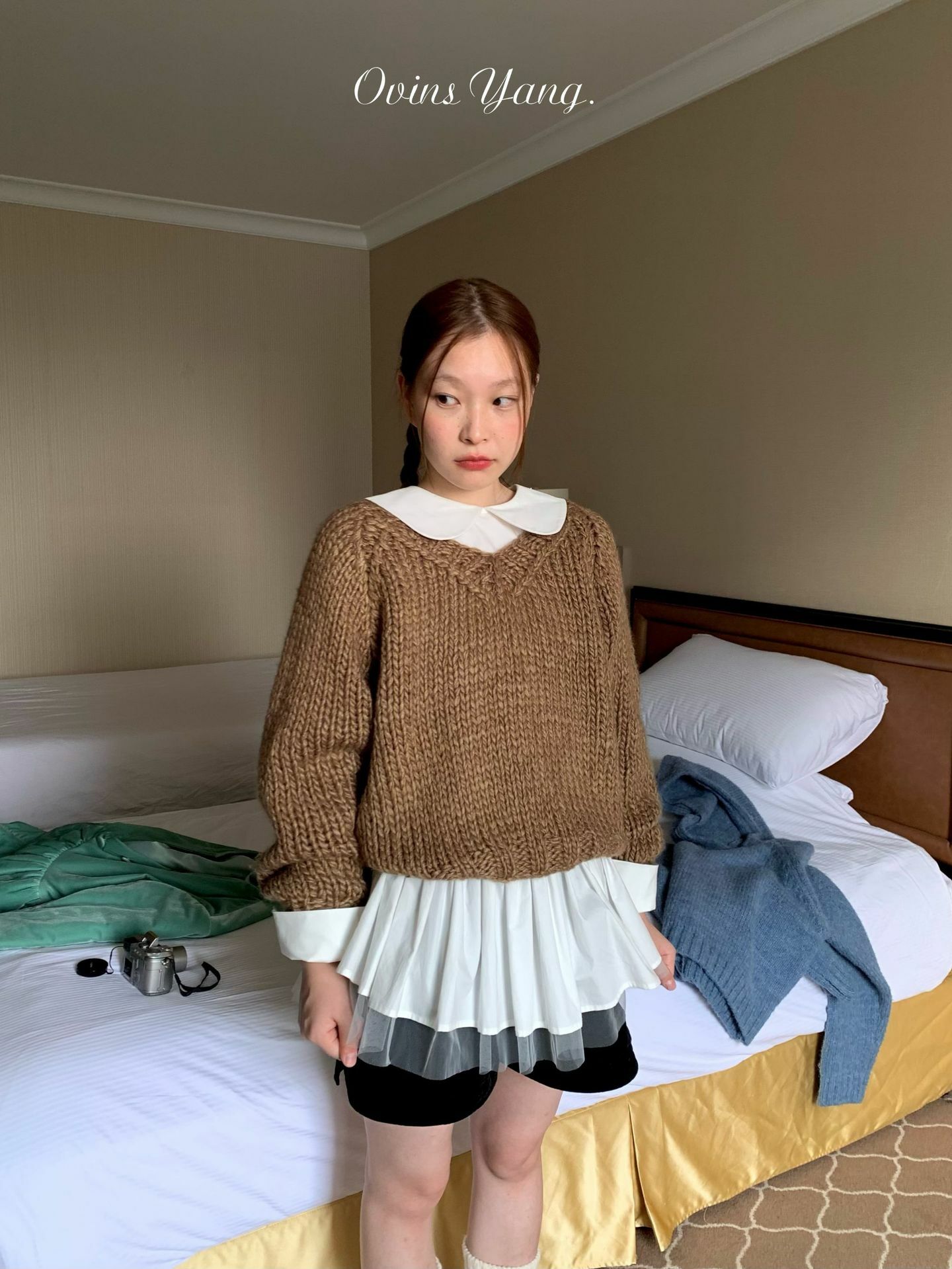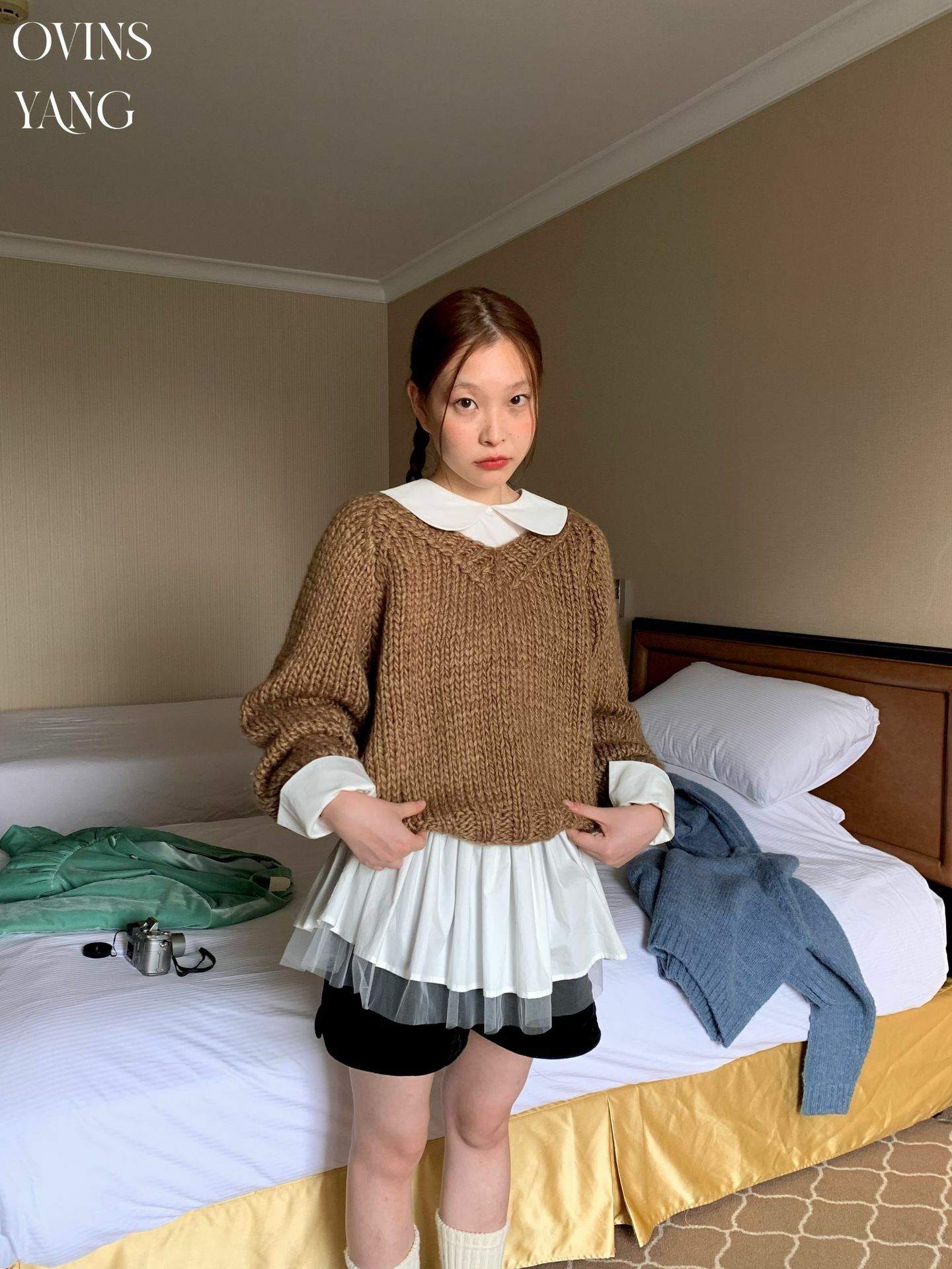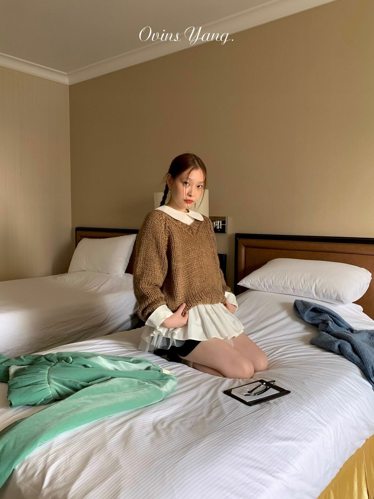 *o-ha-you*【FOY100578】V領毛衣秋冬穿搭設計感小眾慵懶風鏤空針織疊穿上衣-3色-如有需要請先諮詢