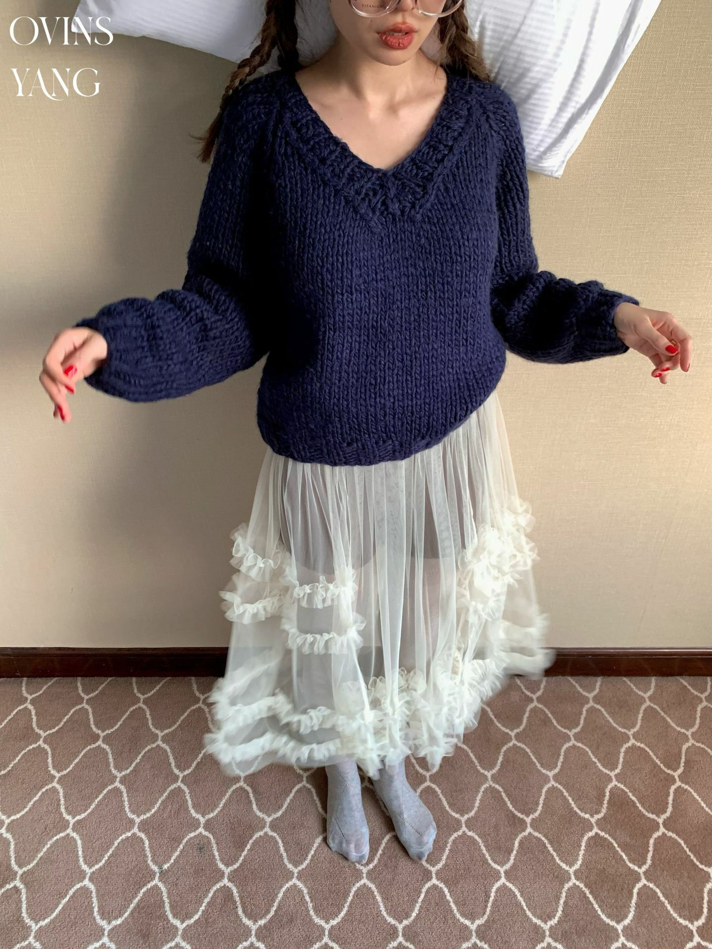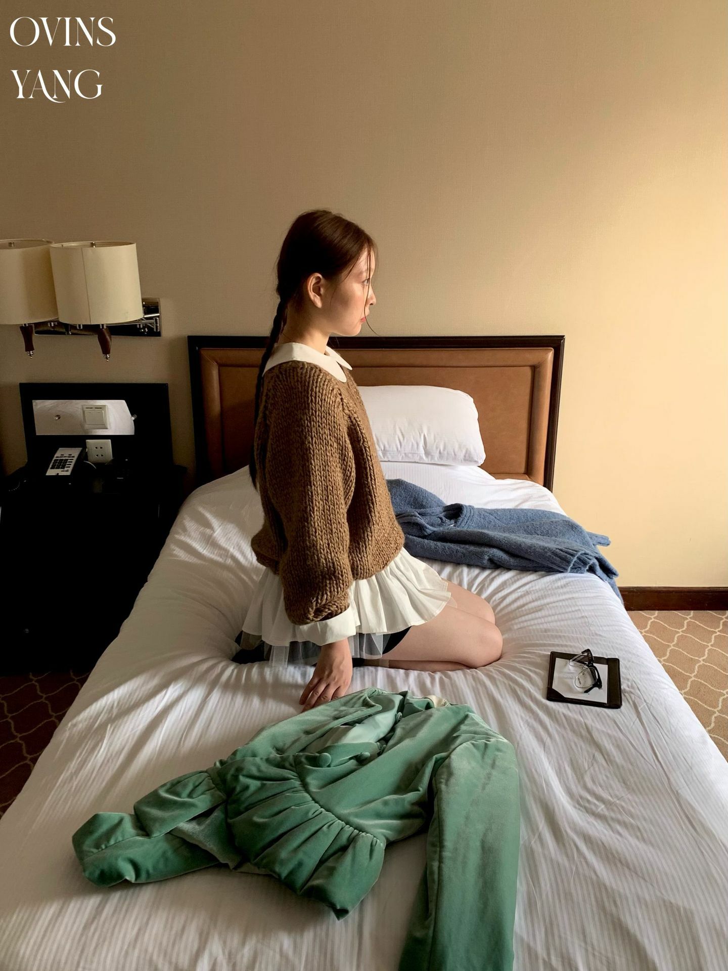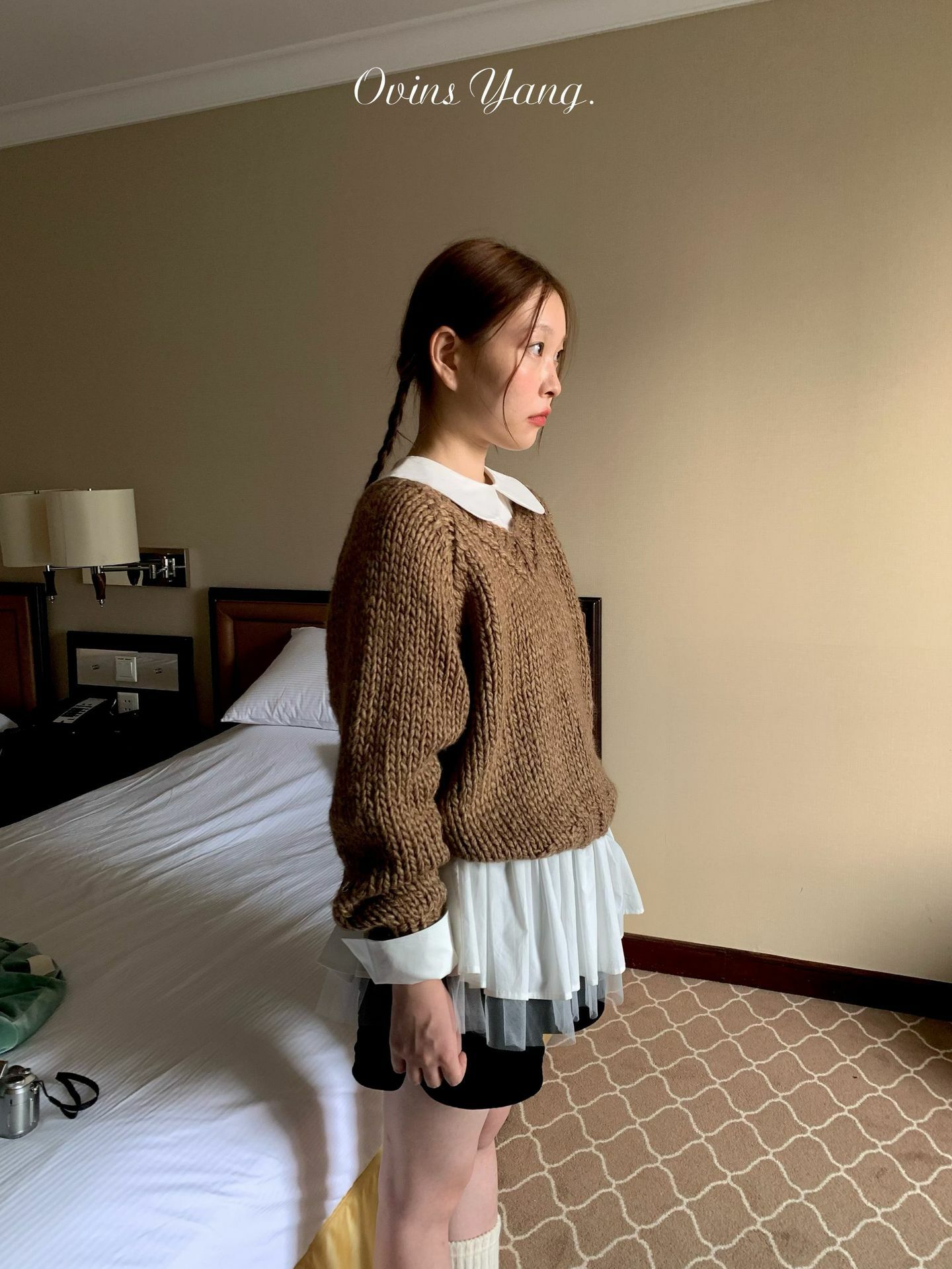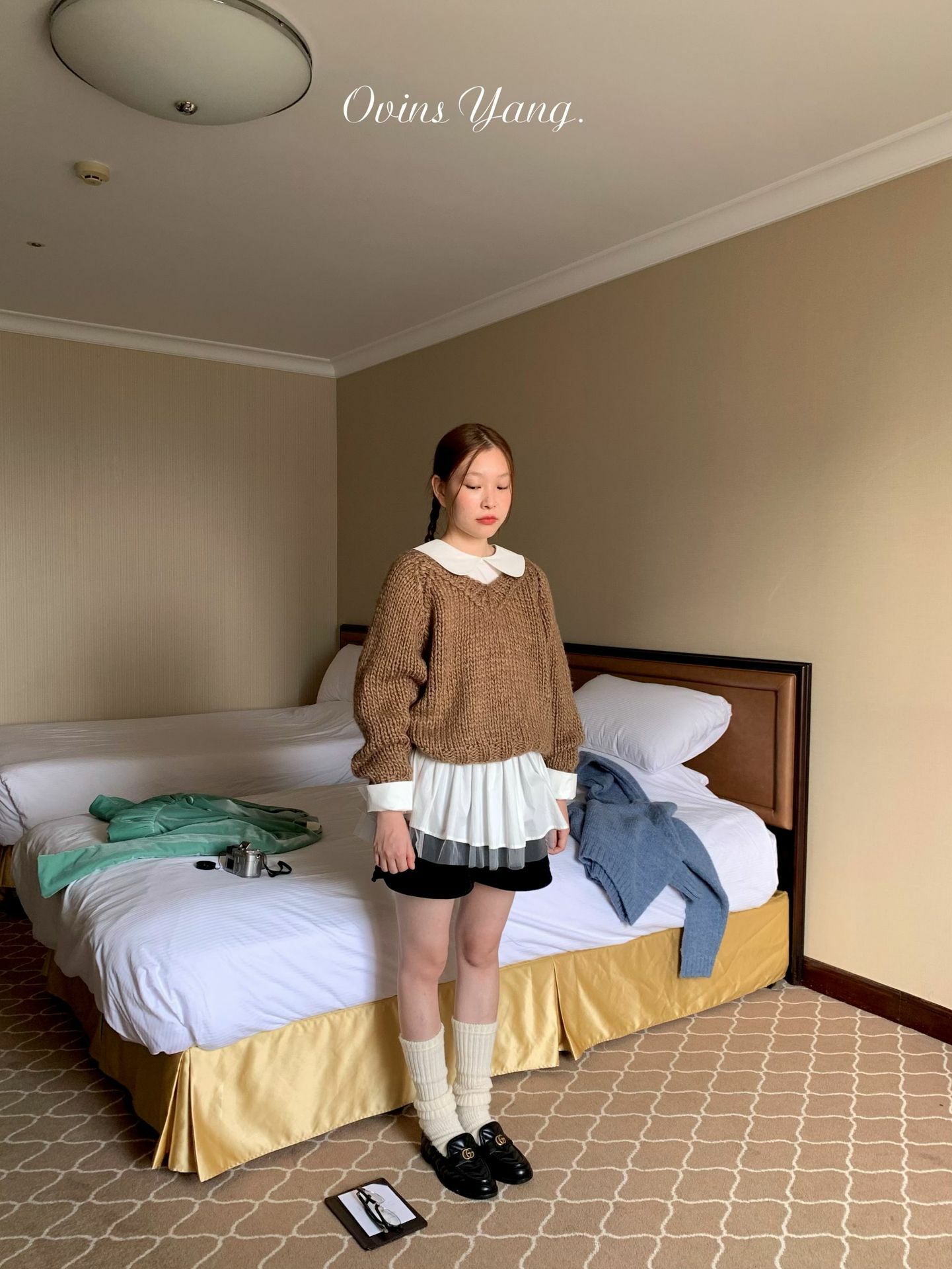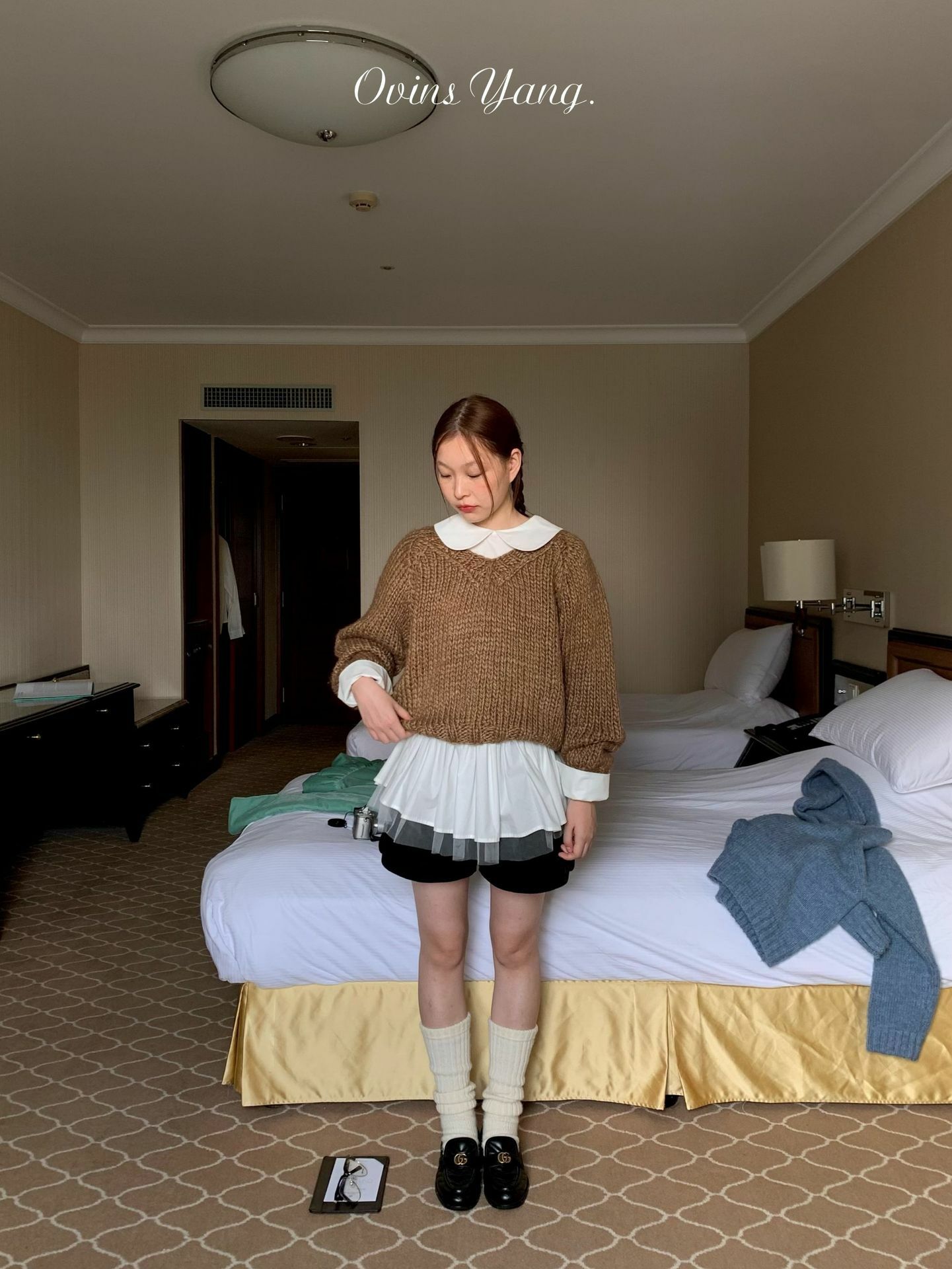 *o-ha-you*【FOY100578】V領毛衣秋冬穿搭設計感小眾慵懶風鏤空針織疊穿上衣-3色-如有需要請先諮詢