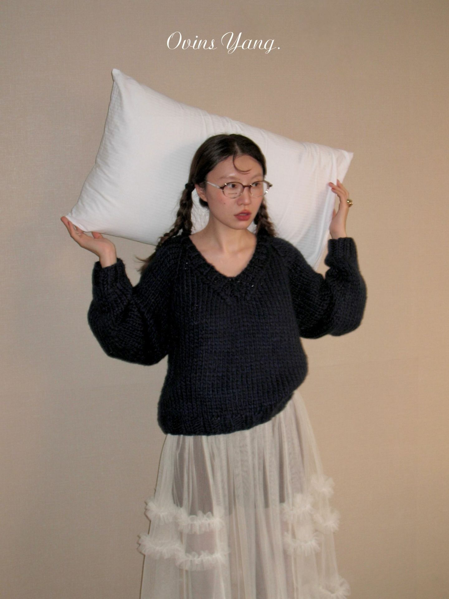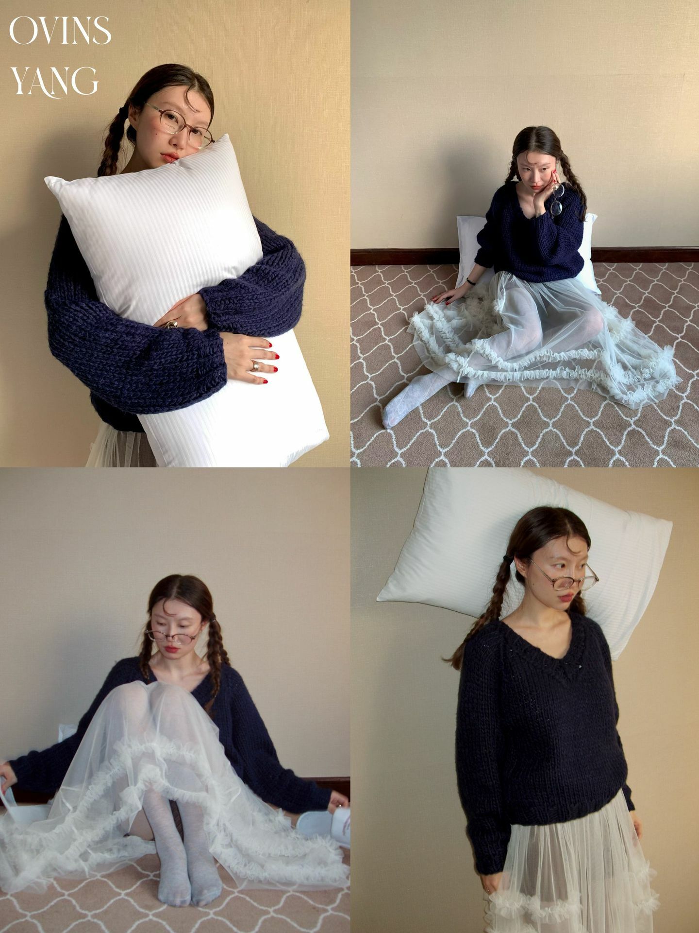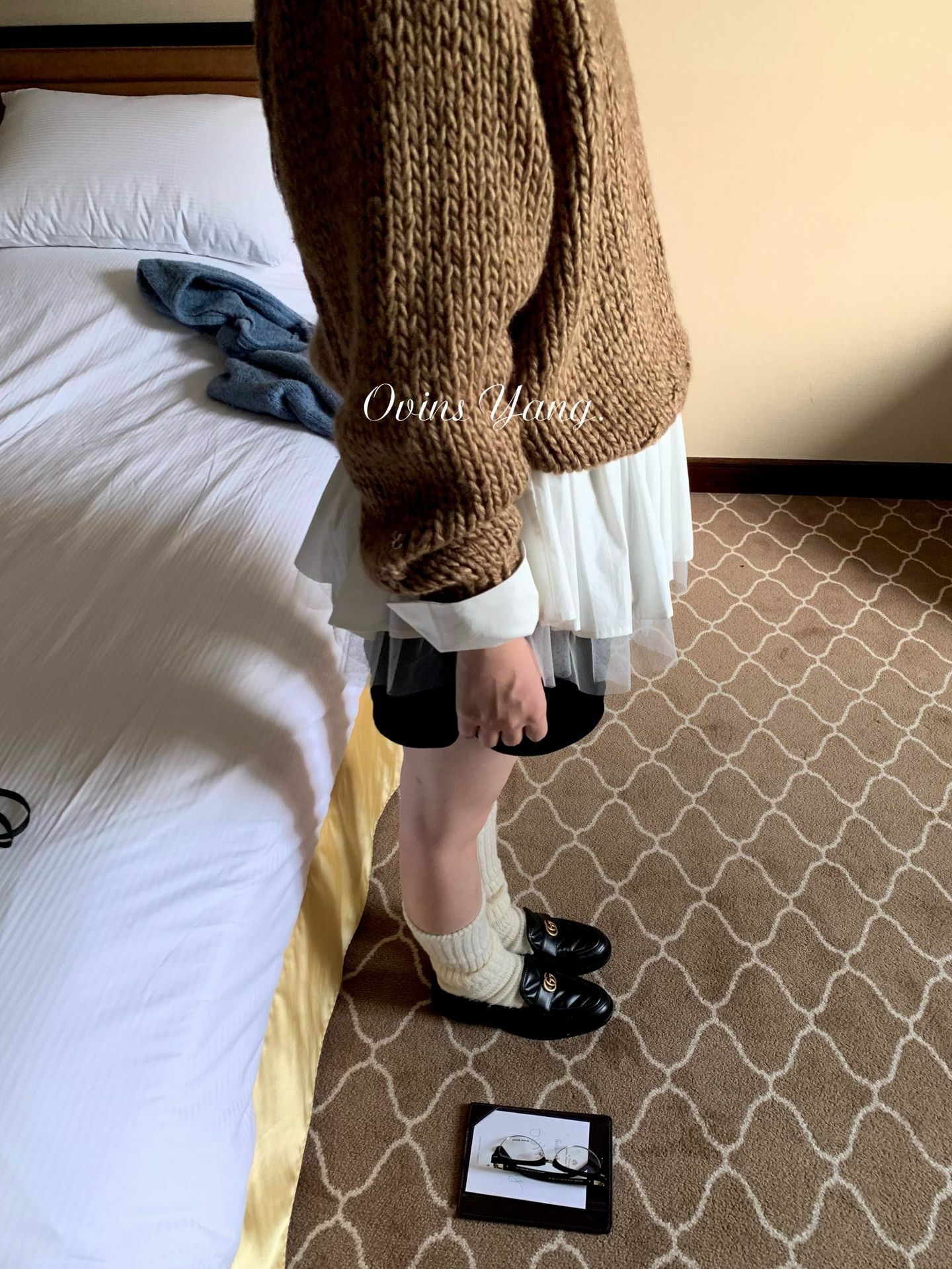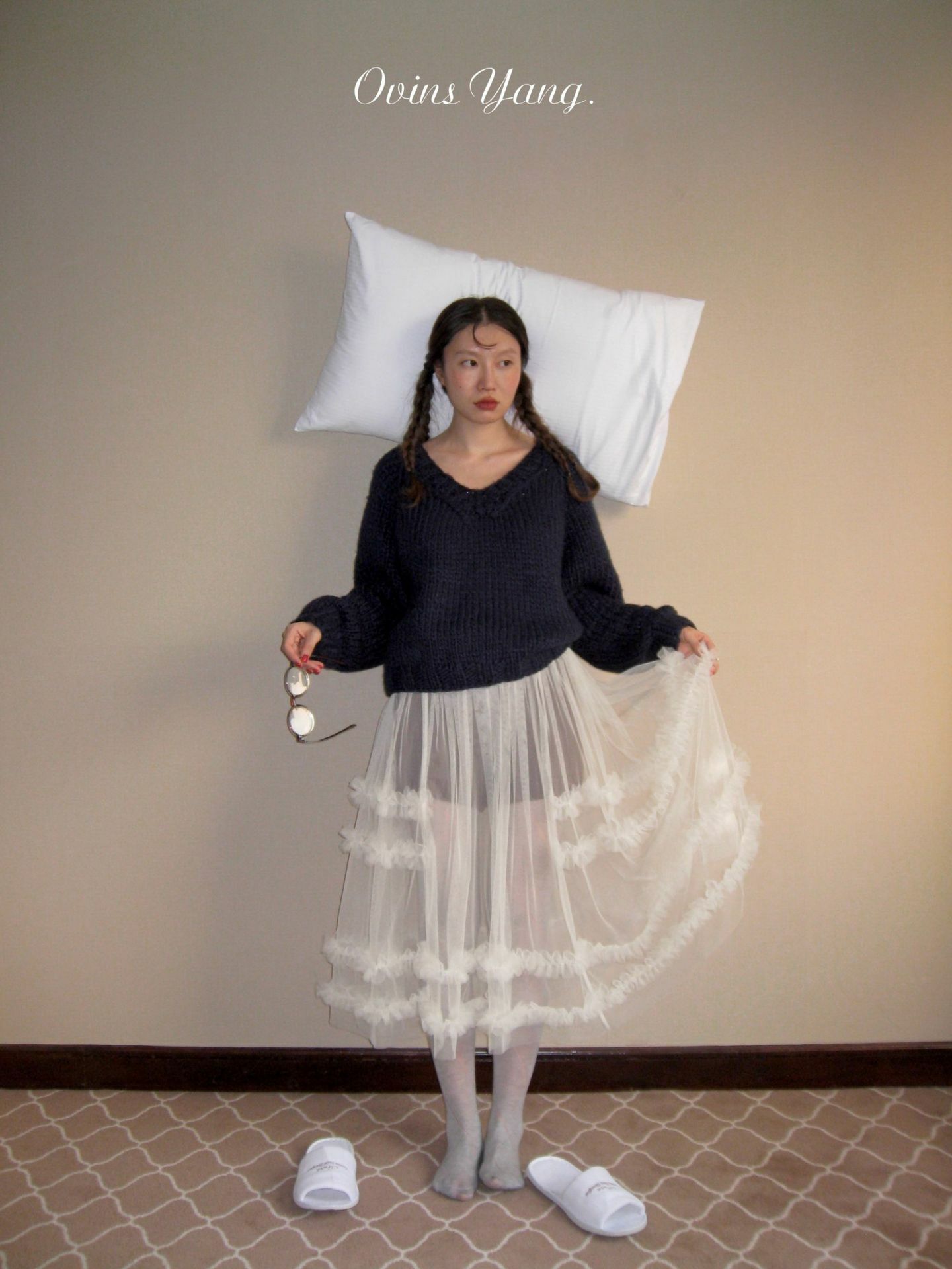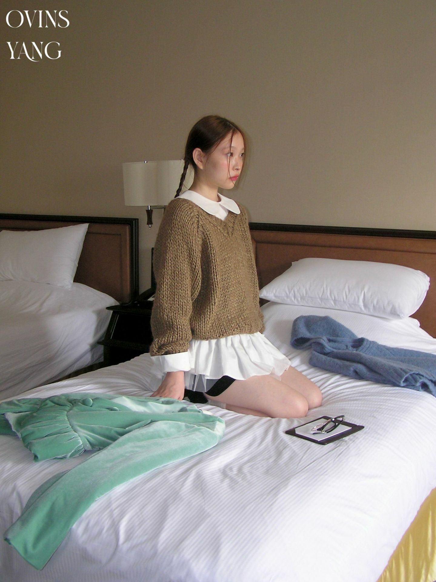 *o-ha-you*【FOY100578】V領毛衣秋冬穿搭設計感小眾慵懶風鏤空針織疊穿上衣-3色-如有需要請先諮詢