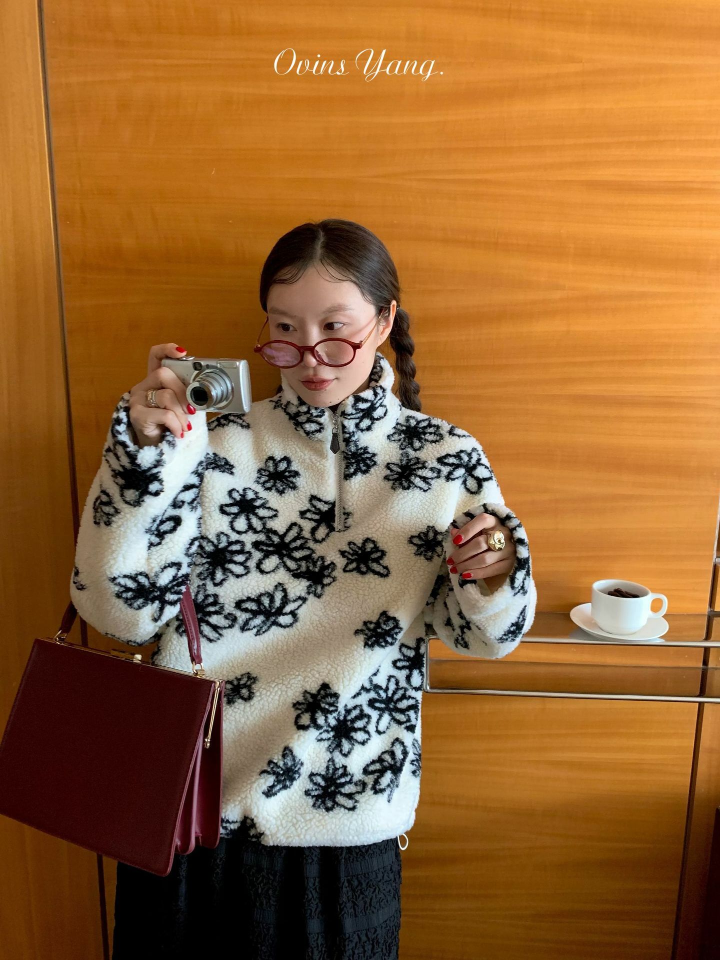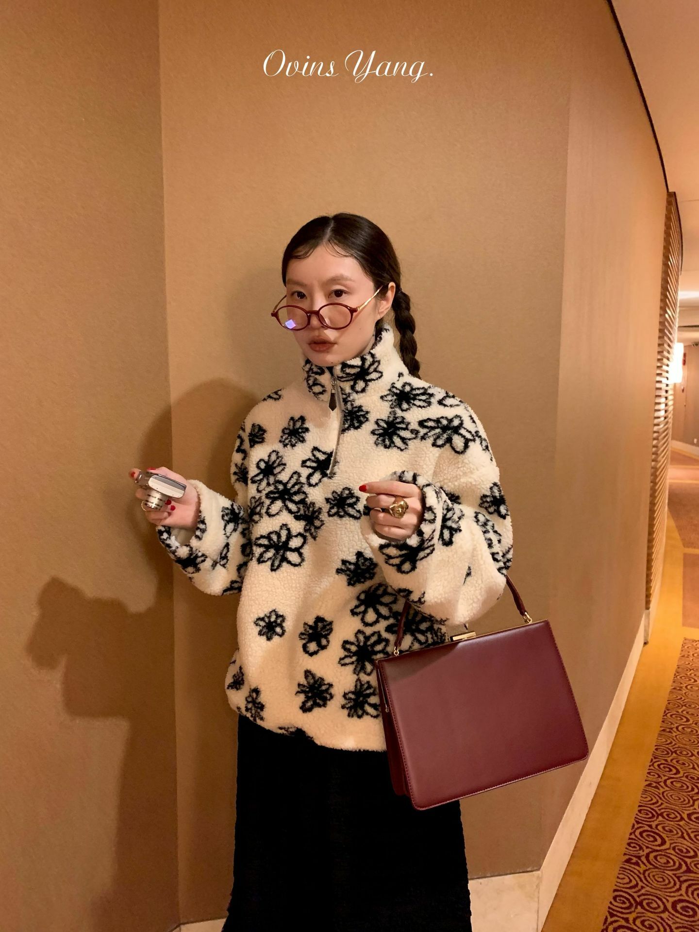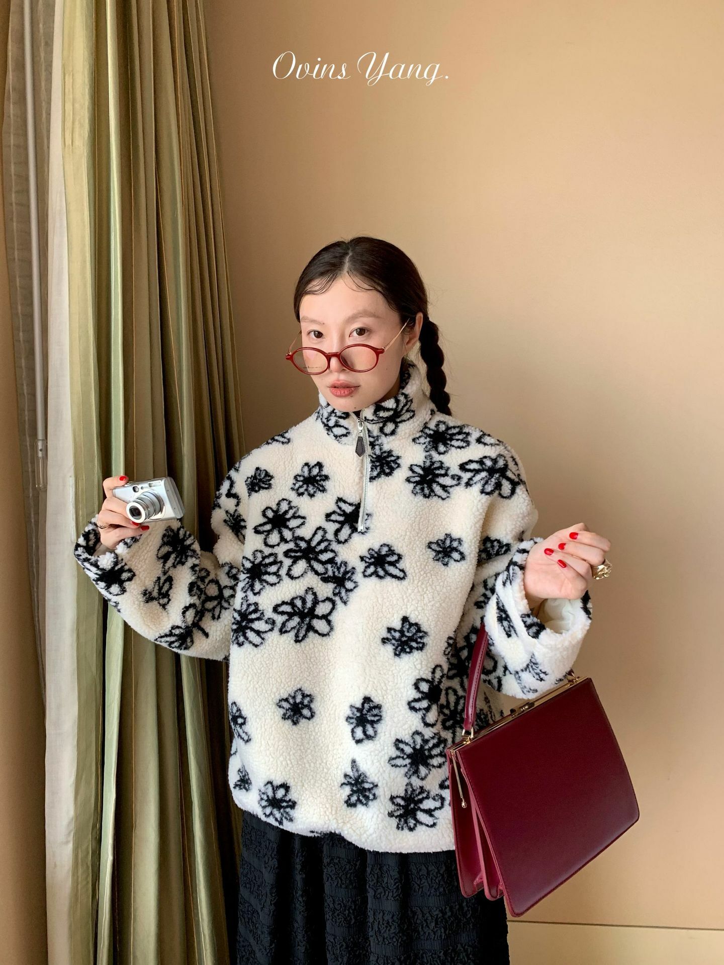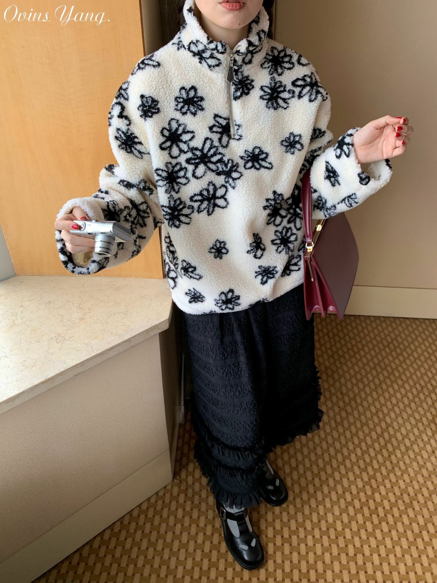 *o-ha-you*【FOY100581】小羊毛無帽衛衣秋冬設計感小眾韓系慵懶風寬鬆上衣-2色-如有需要請先諮詢