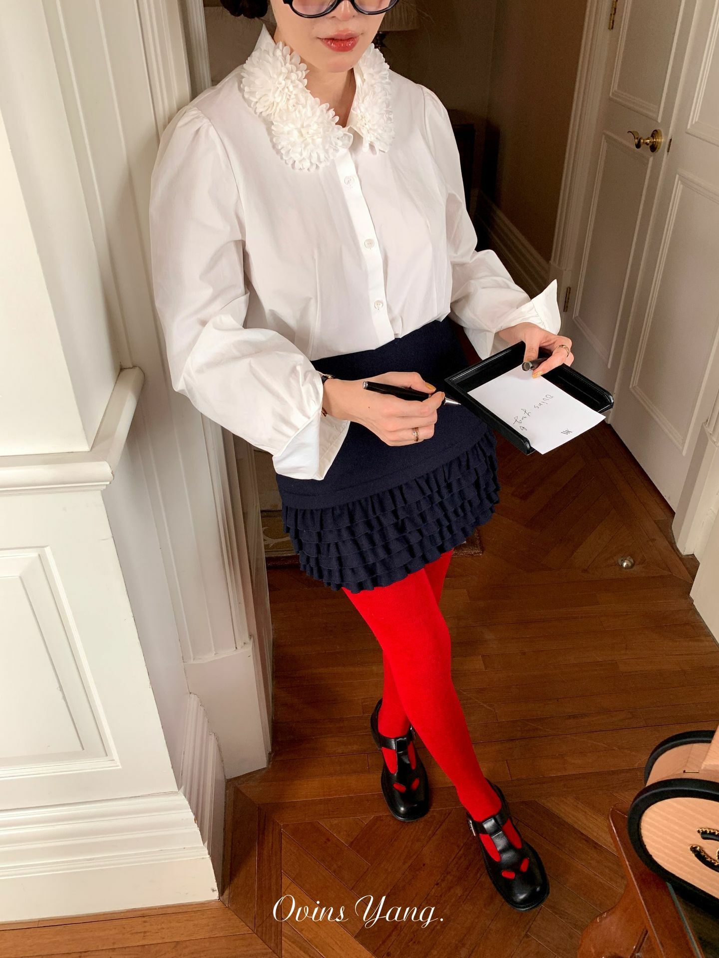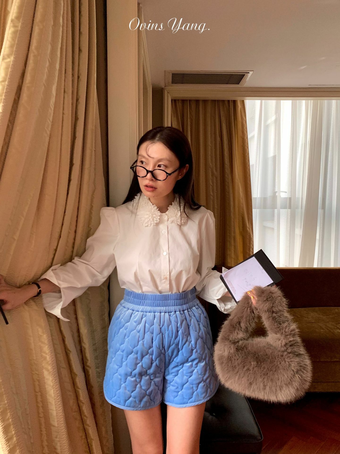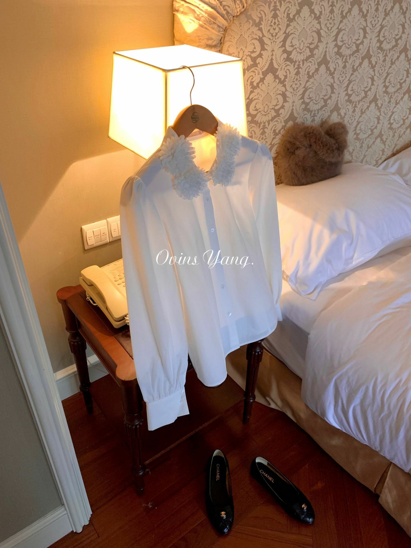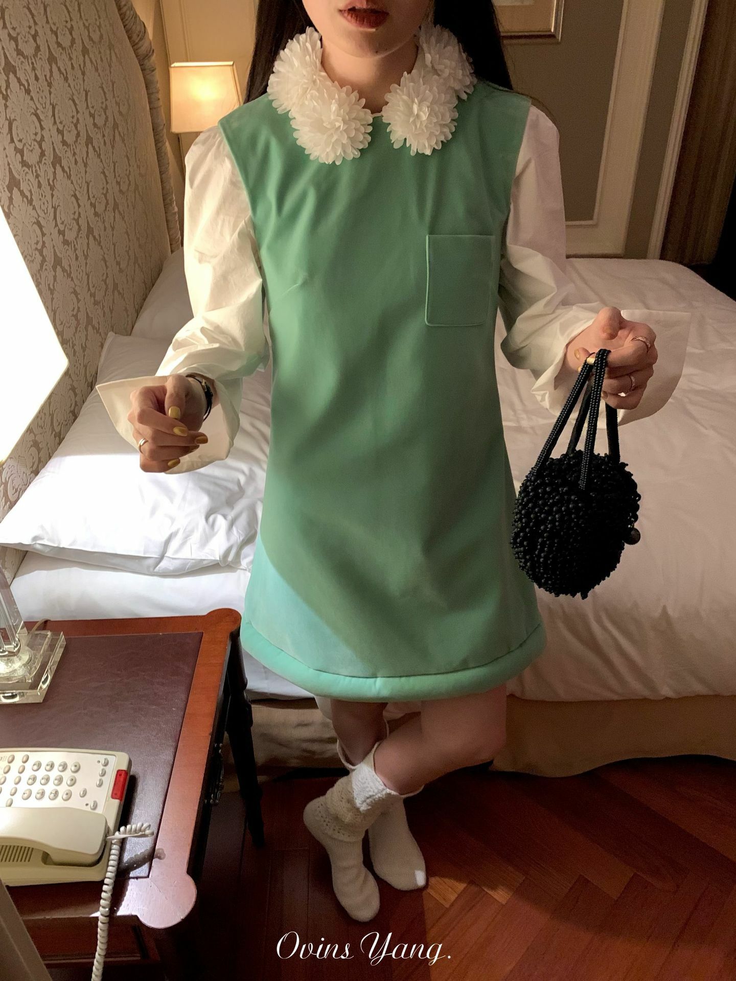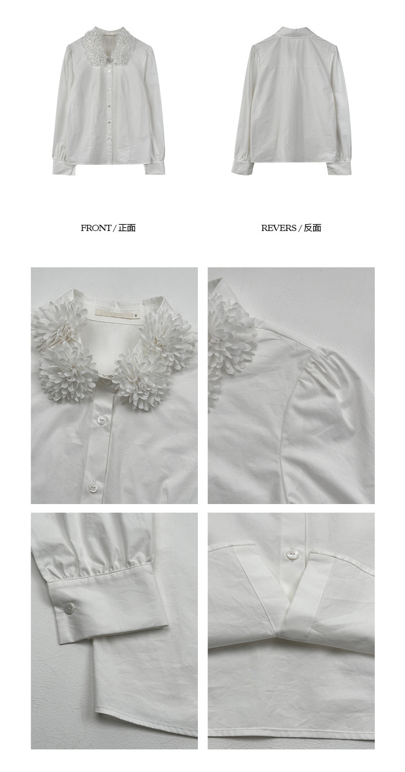 *o-ha-you*【FOY100588】花球領白襯衫秋冬設計感小眾長袖內搭疊穿上衣襯衣-如有需要請先諮詢