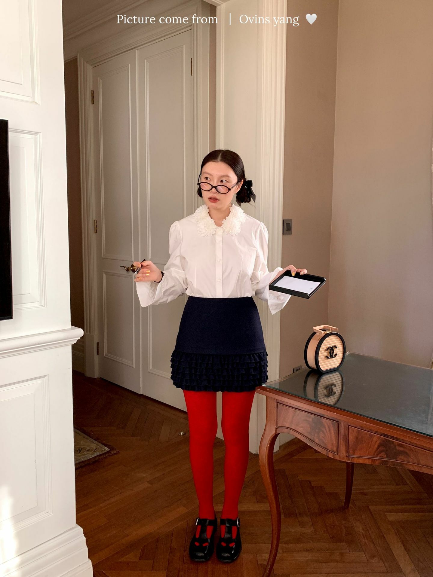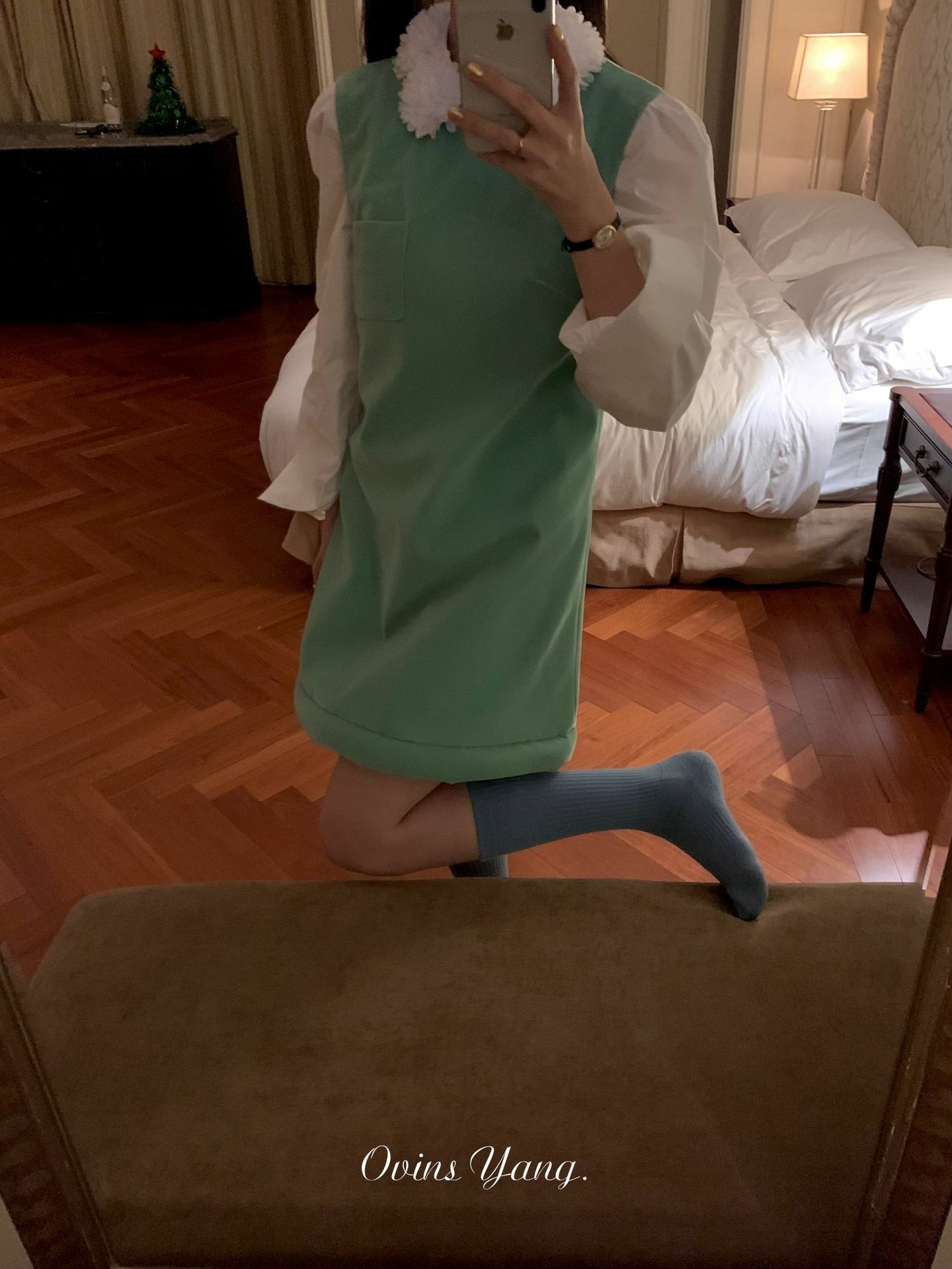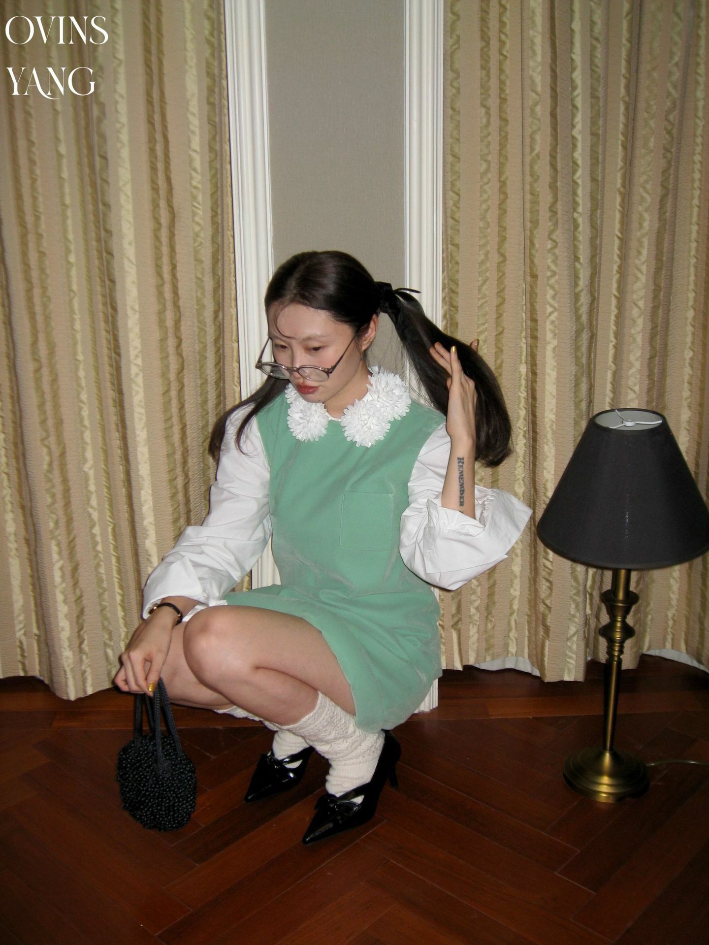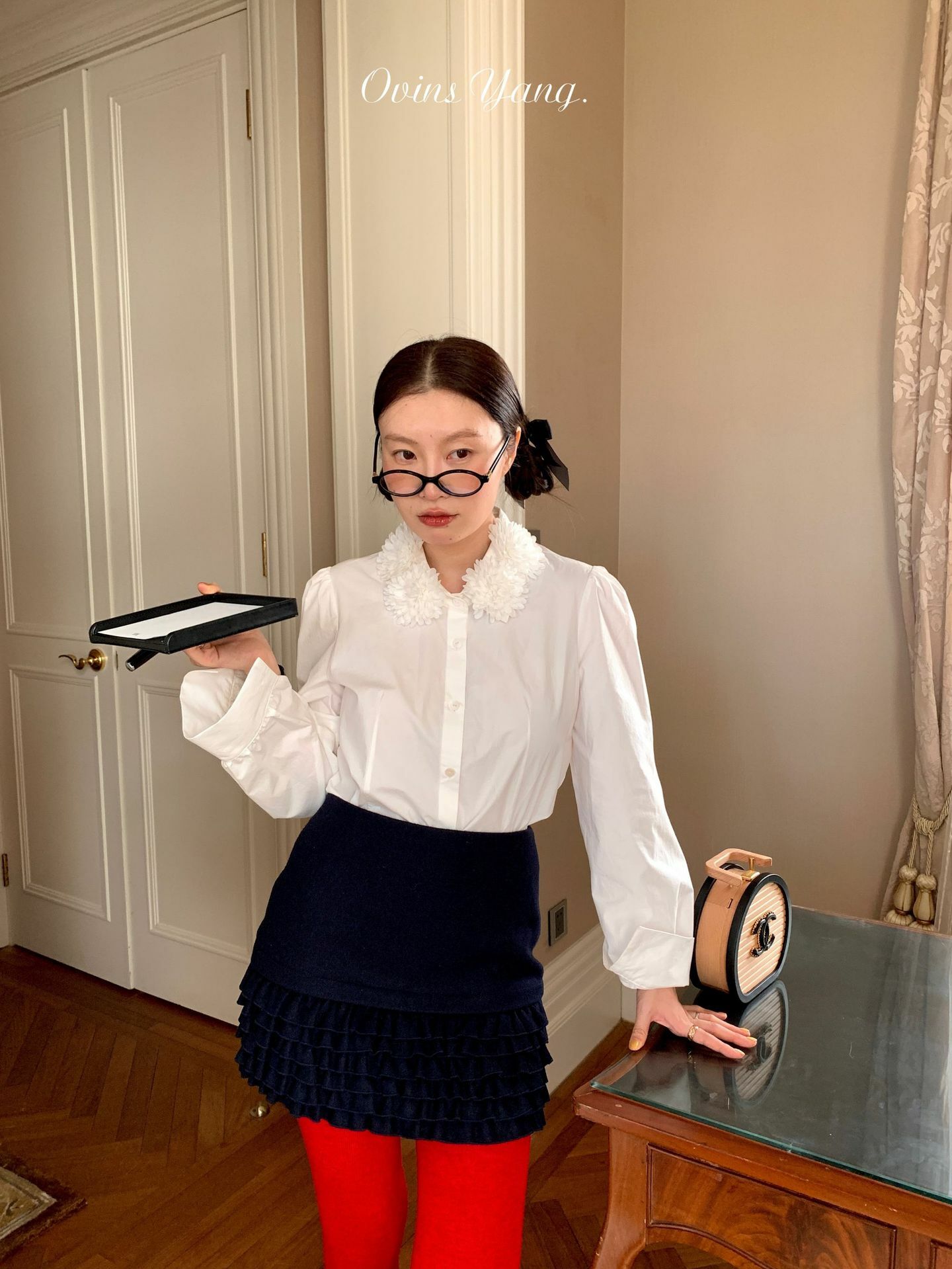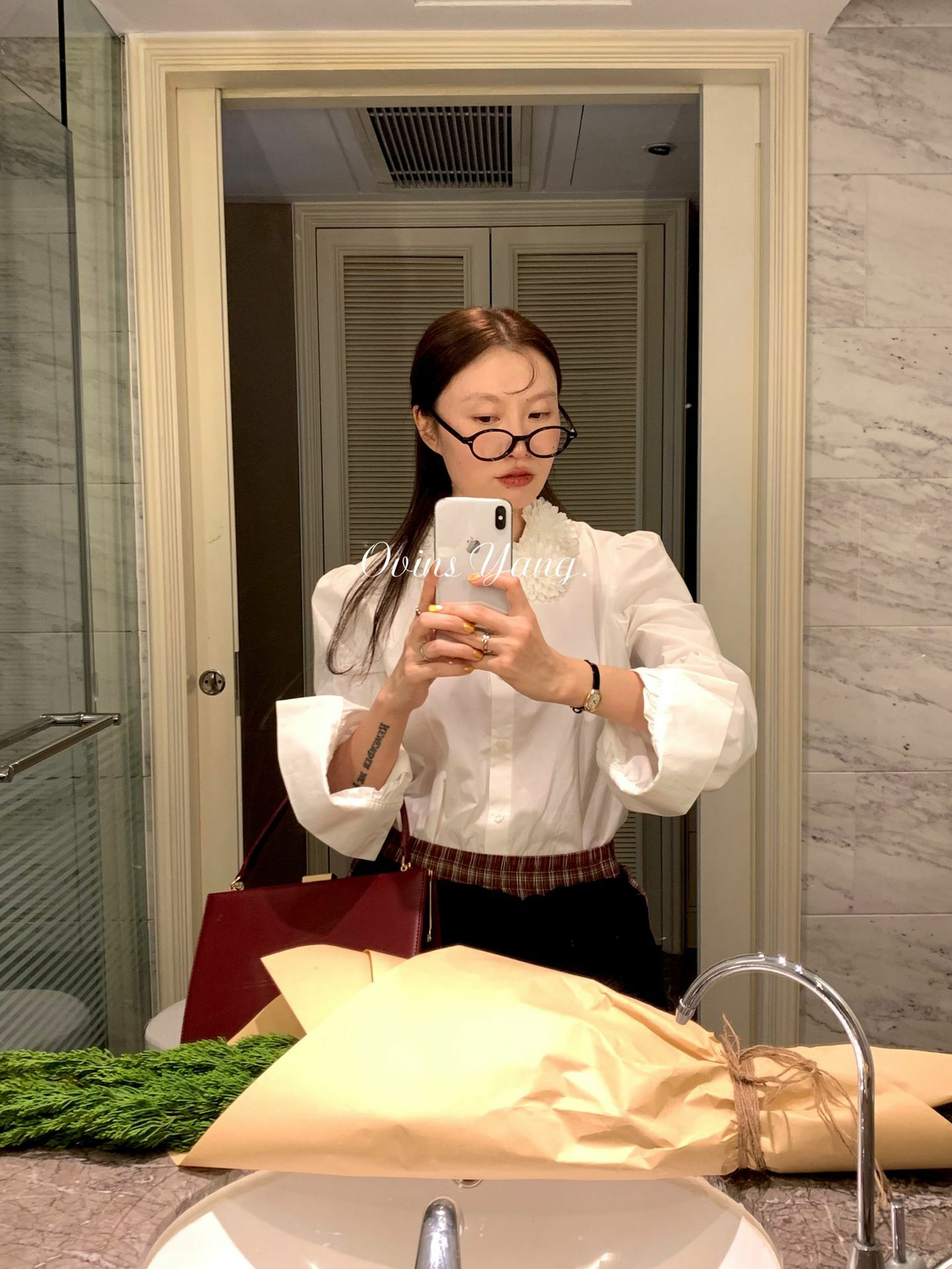 *o-ha-you*【FOY100588】花球領白襯衫秋冬設計感小眾長袖內搭疊穿上衣襯衣-如有需要請先諮詢