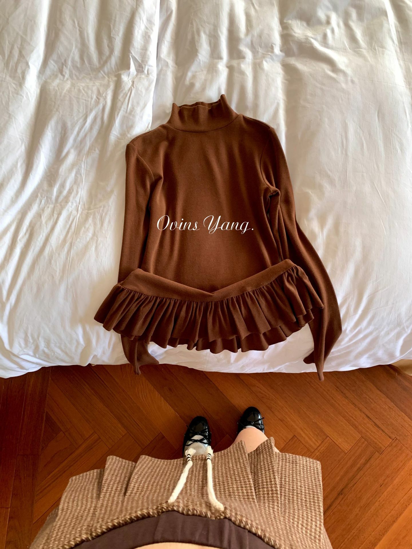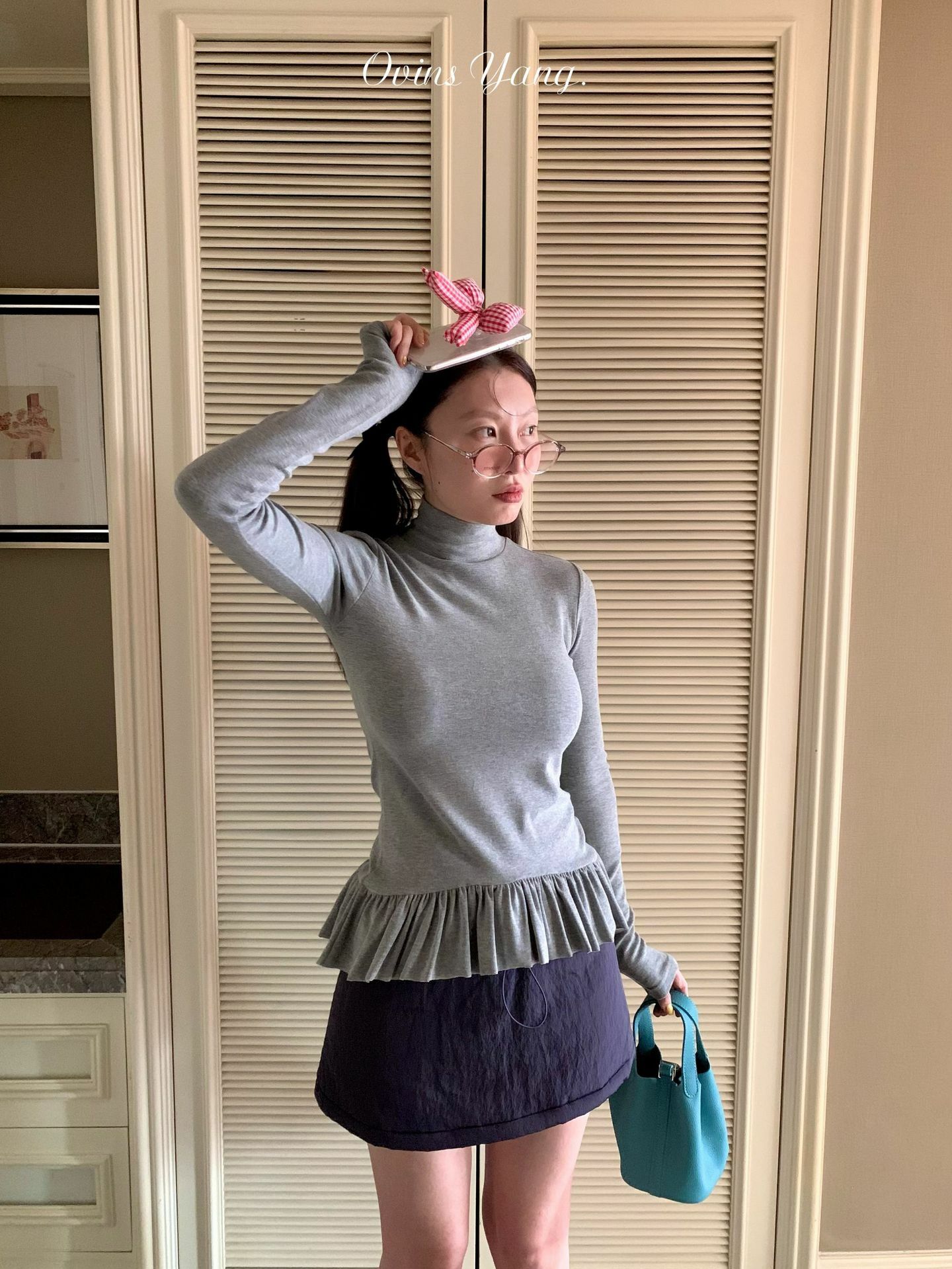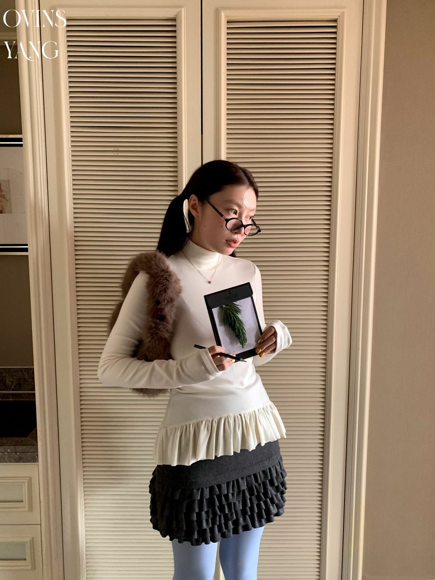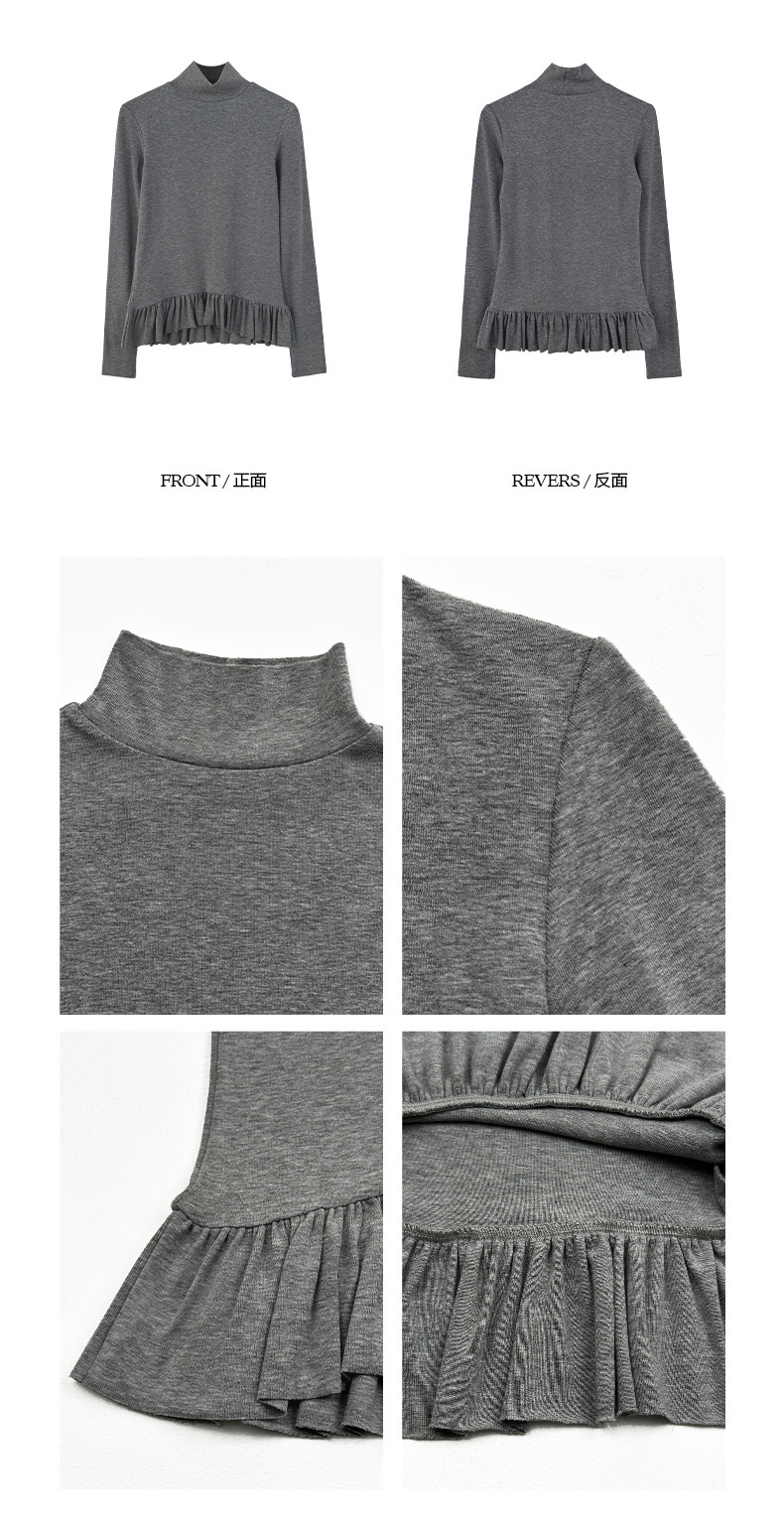 *o-ha-you*【FOY100595】花邊下擺半高領打底衫女秋冬長袖T恤內搭修身疊穿上衣-4色-如有需要請先諮詢