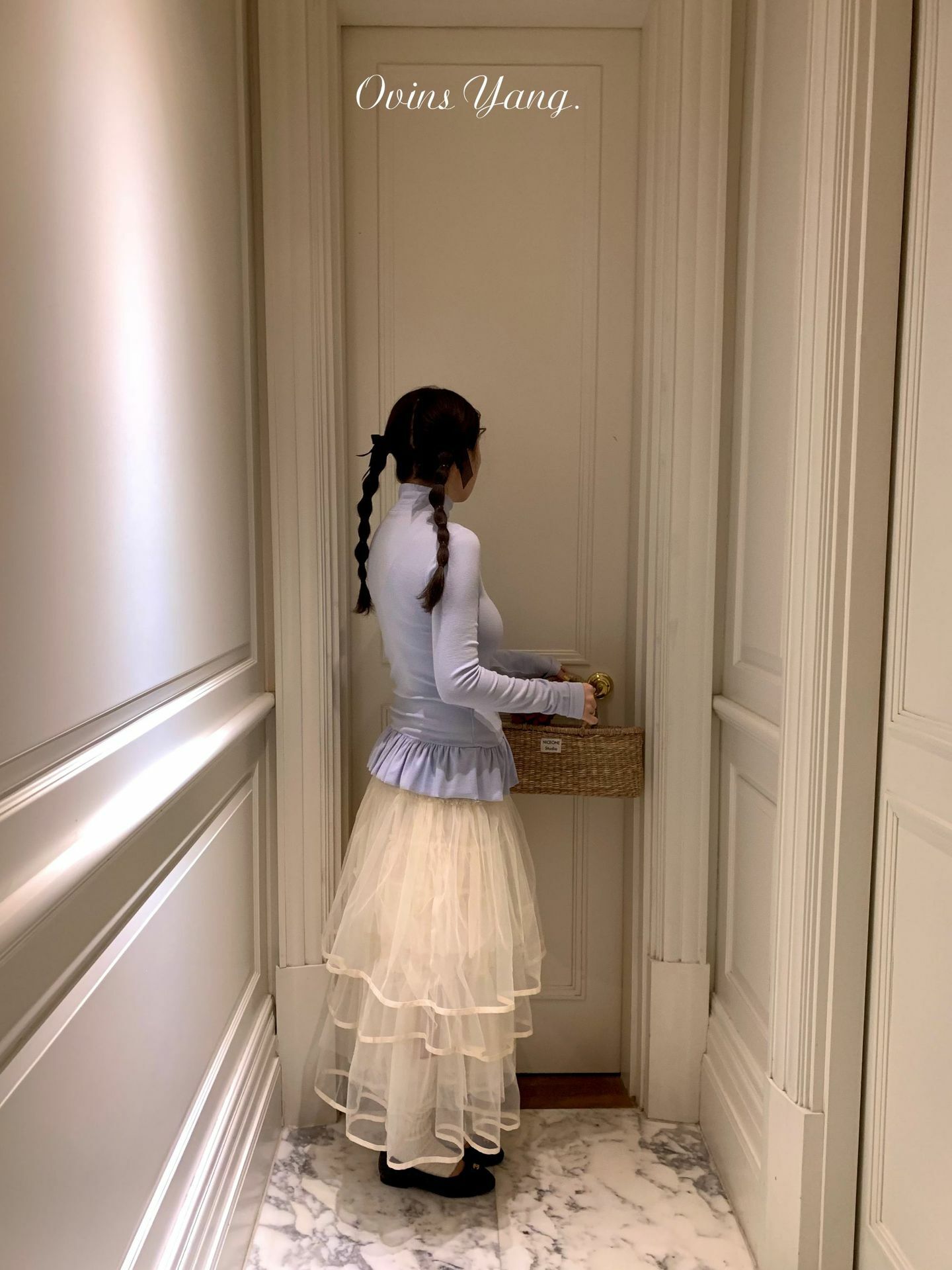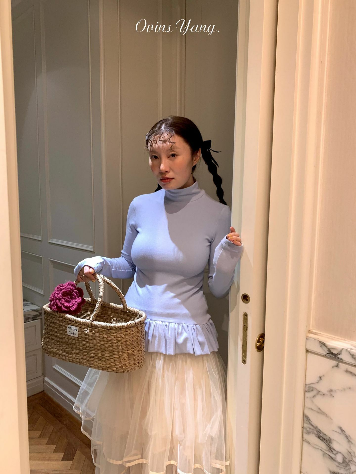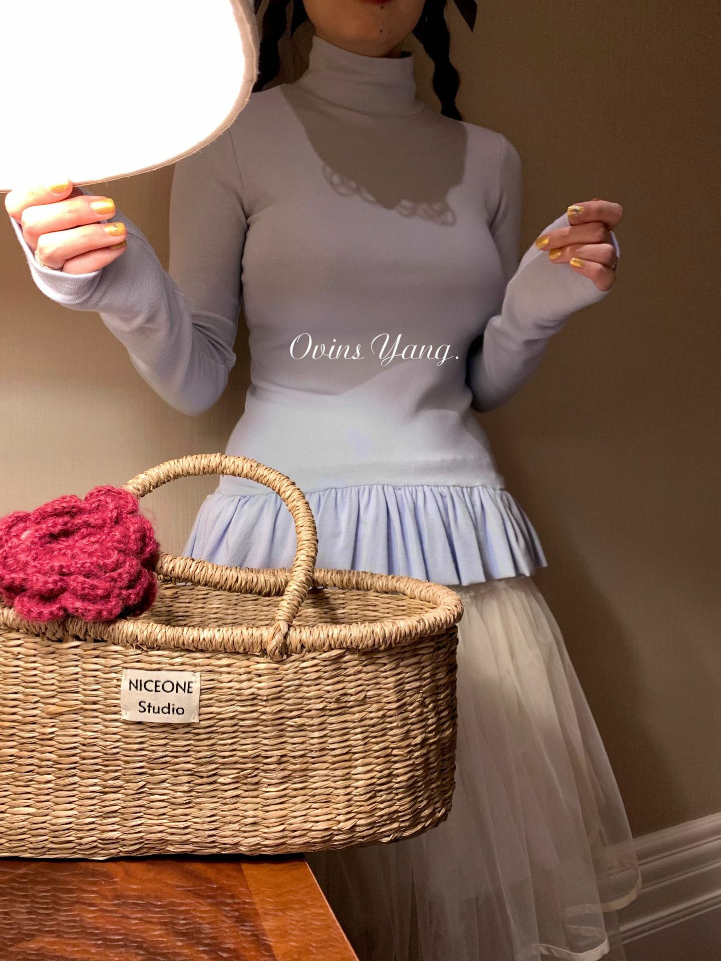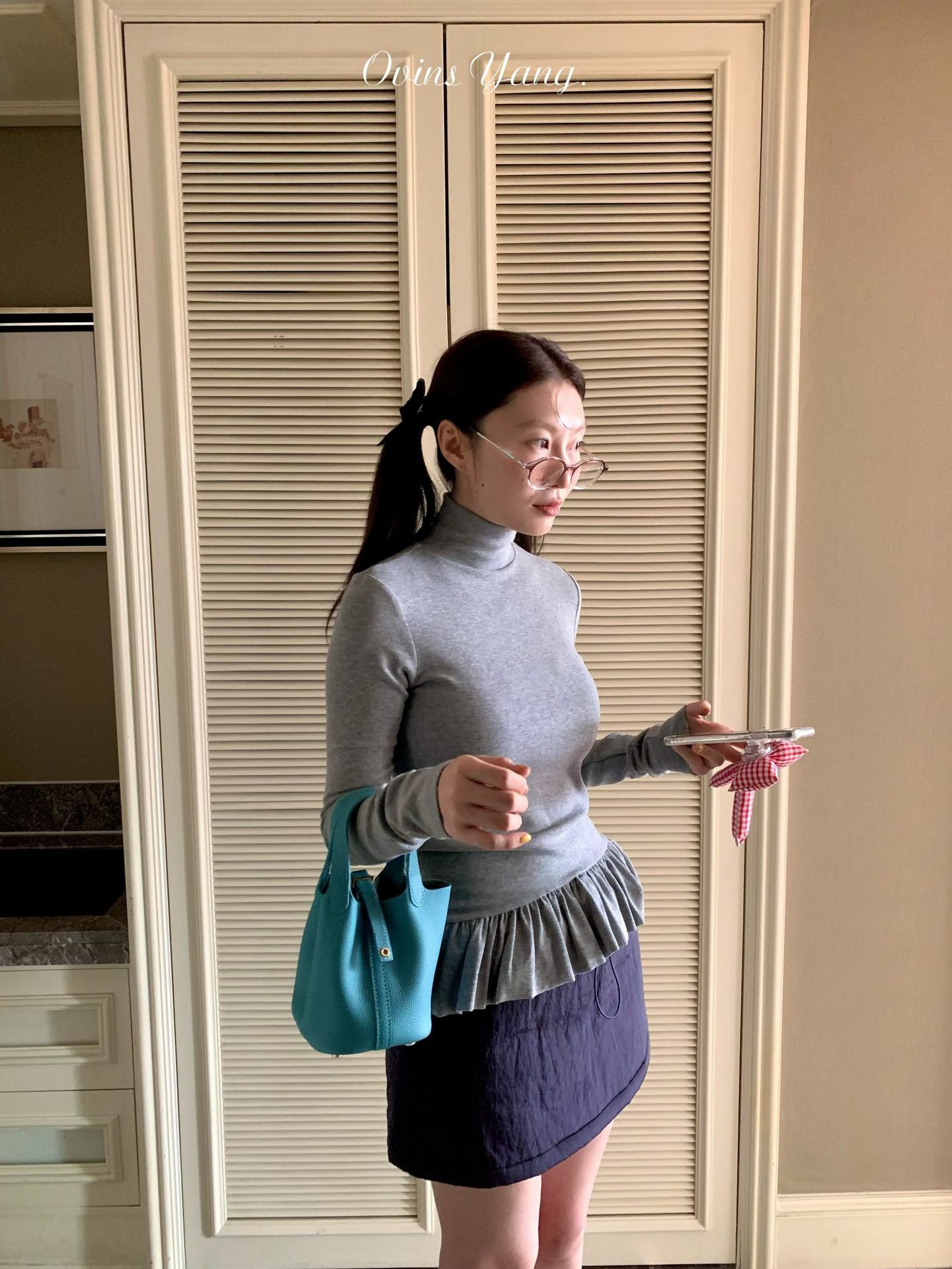*o-ha-you*【FOY100595】花邊下擺半高領打底衫女秋冬長袖T恤內搭修身疊穿上衣-4色-如有需要請先諮詢