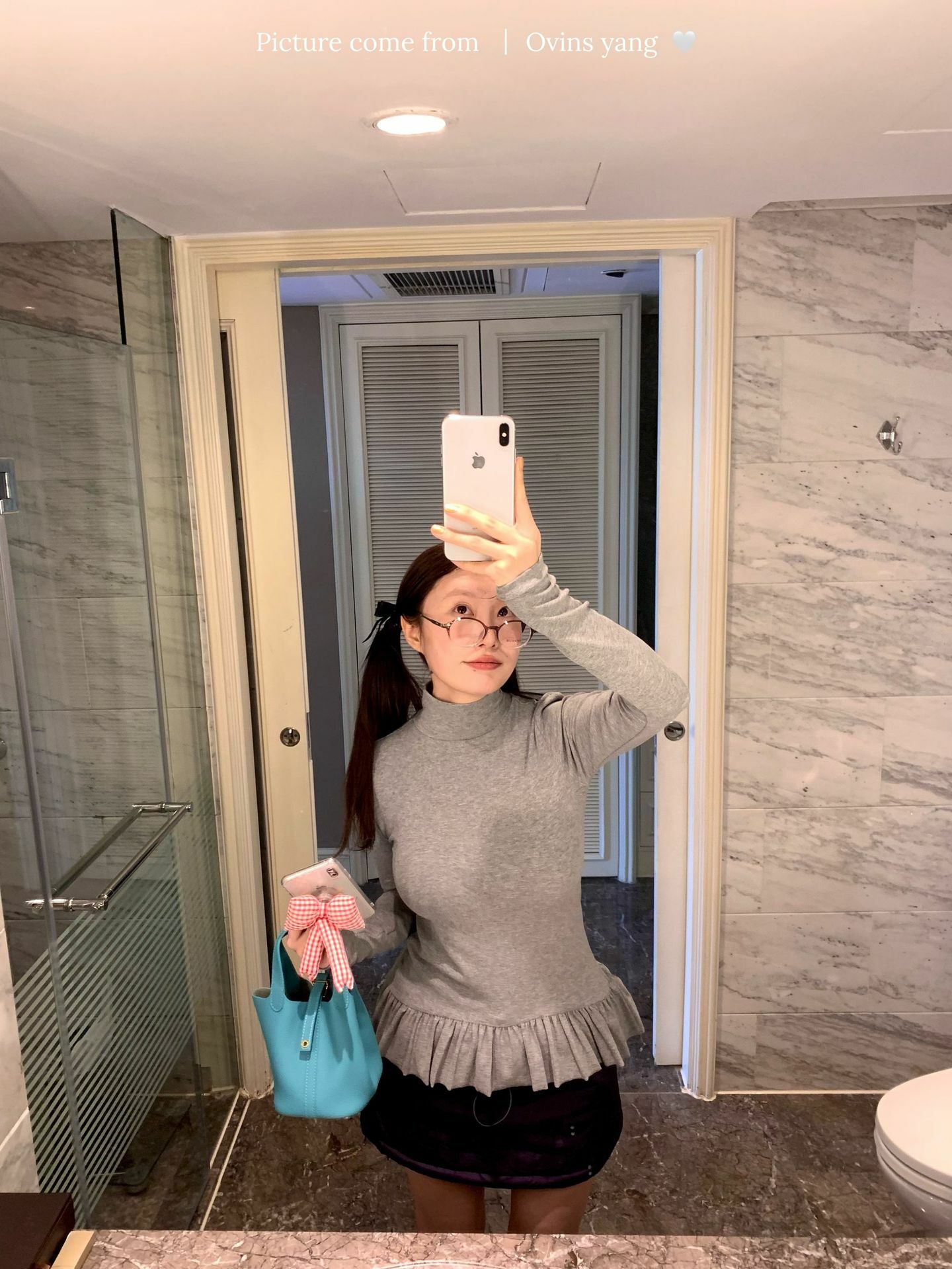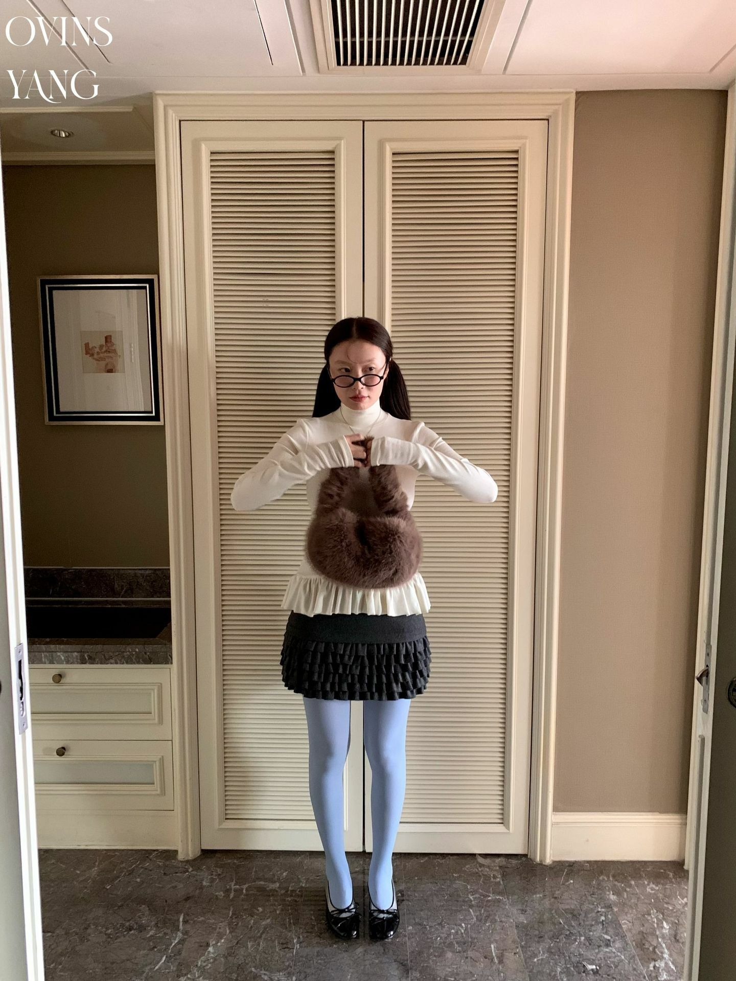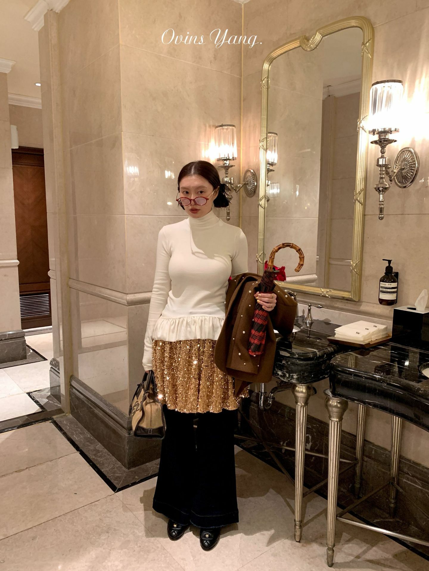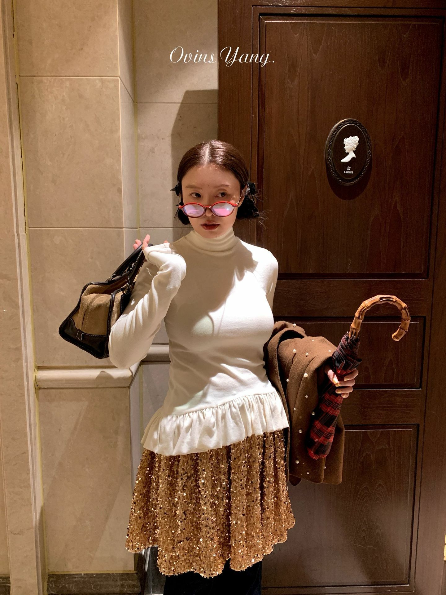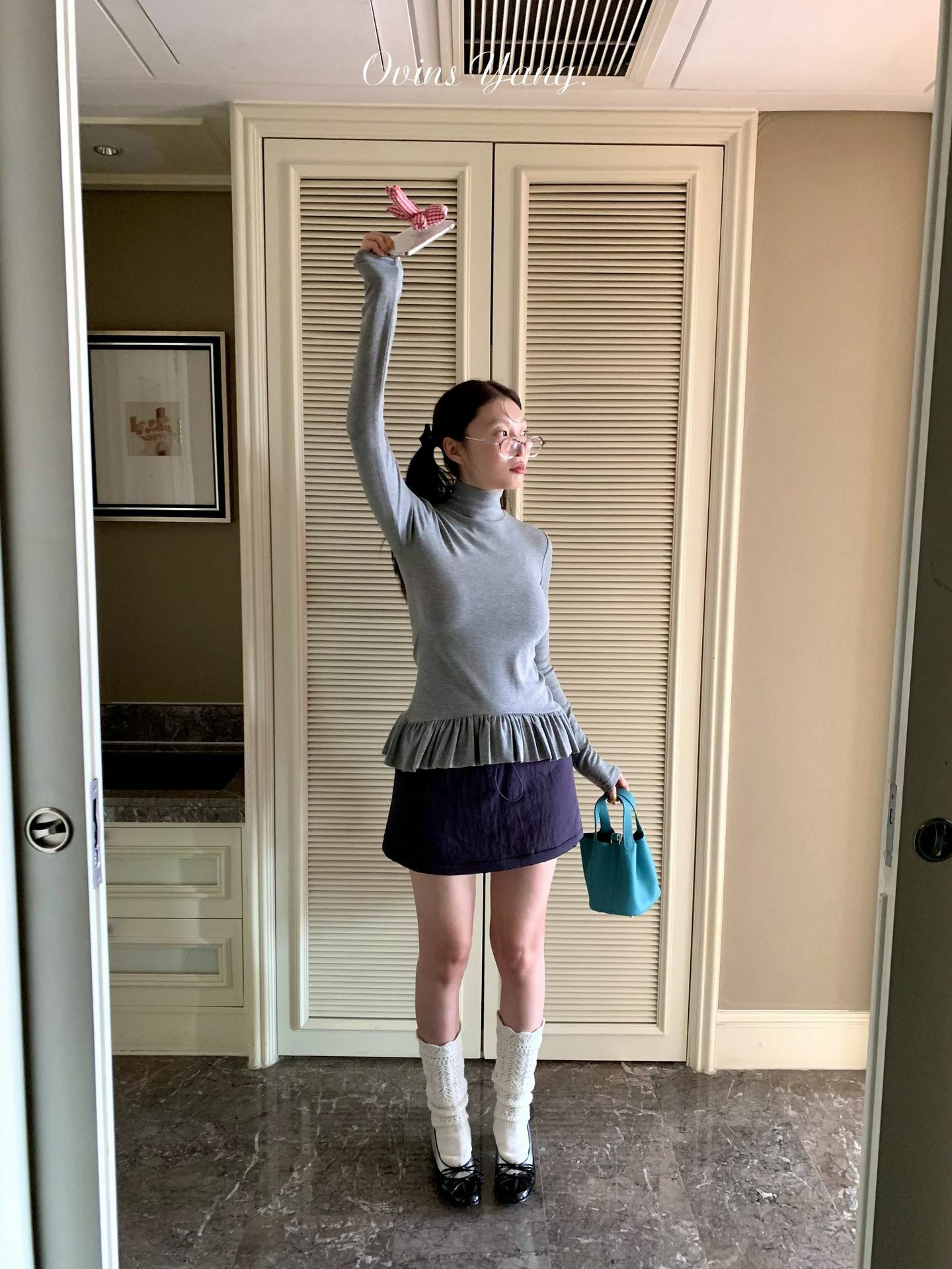 *o-ha-you*【FOY100595】花邊下擺半高領打底衫女秋冬長袖T恤內搭修身疊穿上衣-4色-如有需要請先諮詢