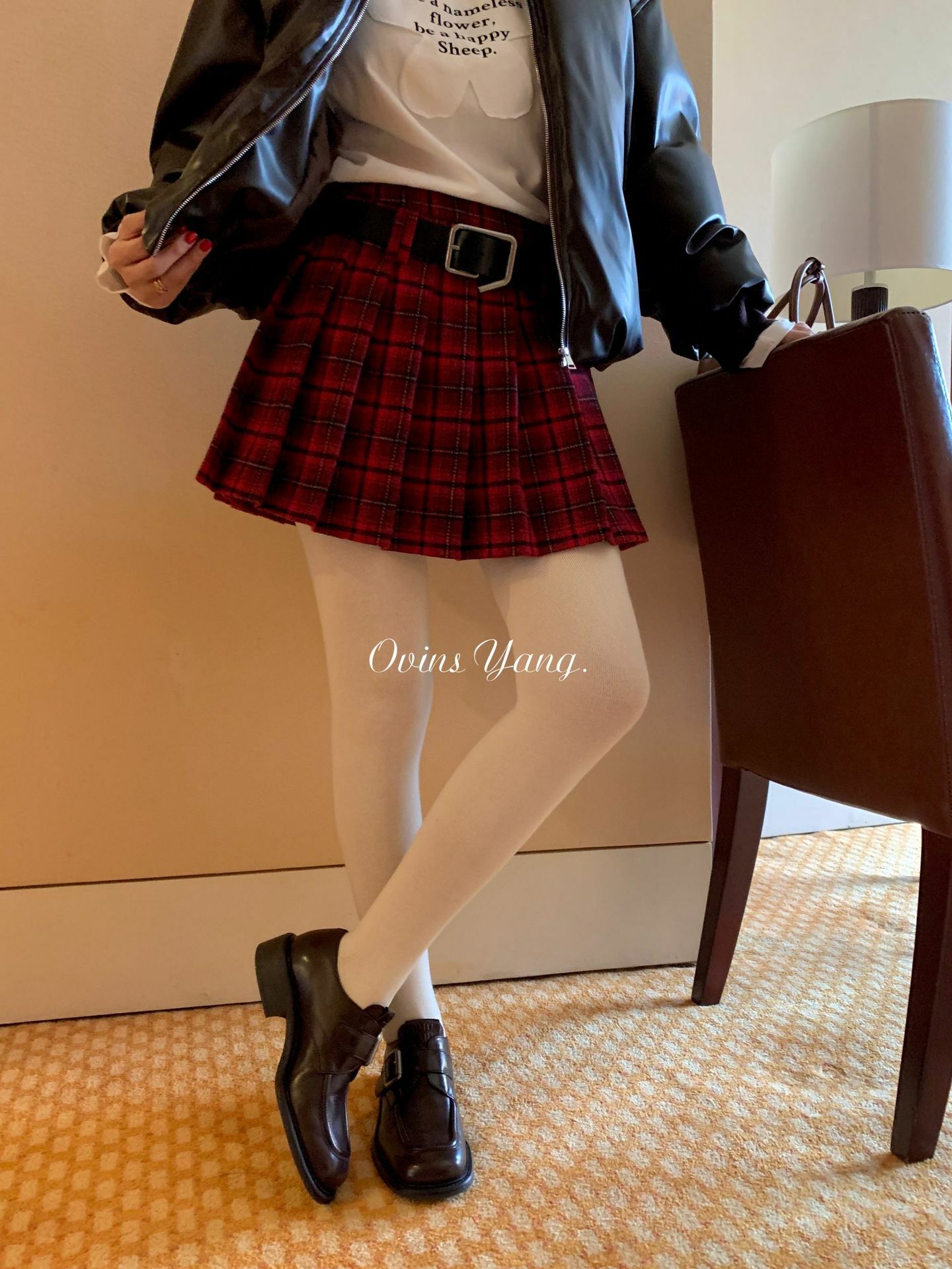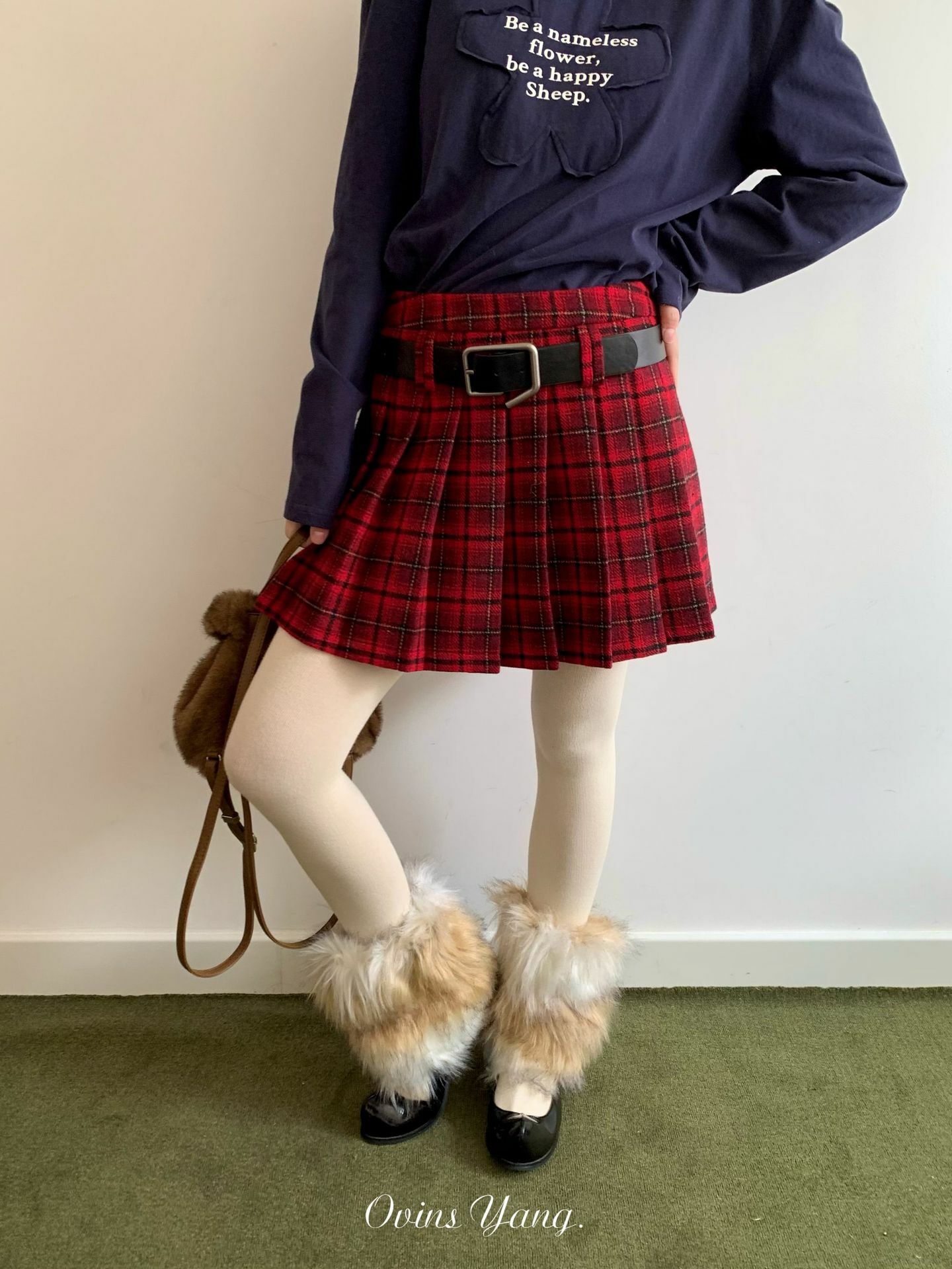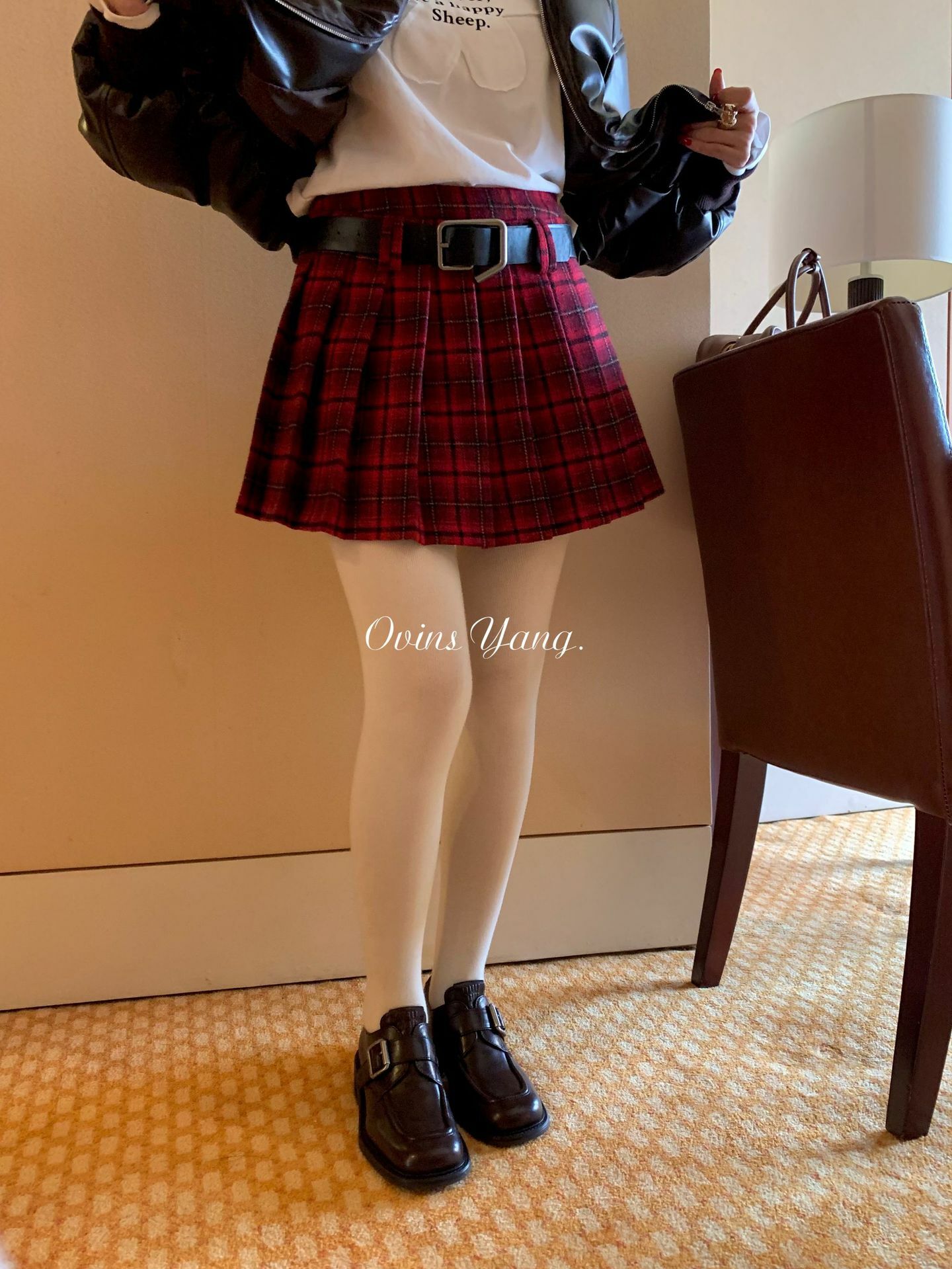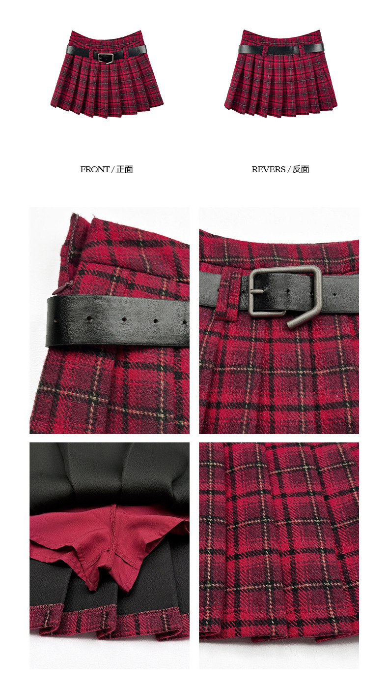 *o-ha-you*【FOY100611】羊毛格紋半身裙秋冬款聖誕感A字短裙百褶裙配腰帶-2色-如有需要請先諮詢