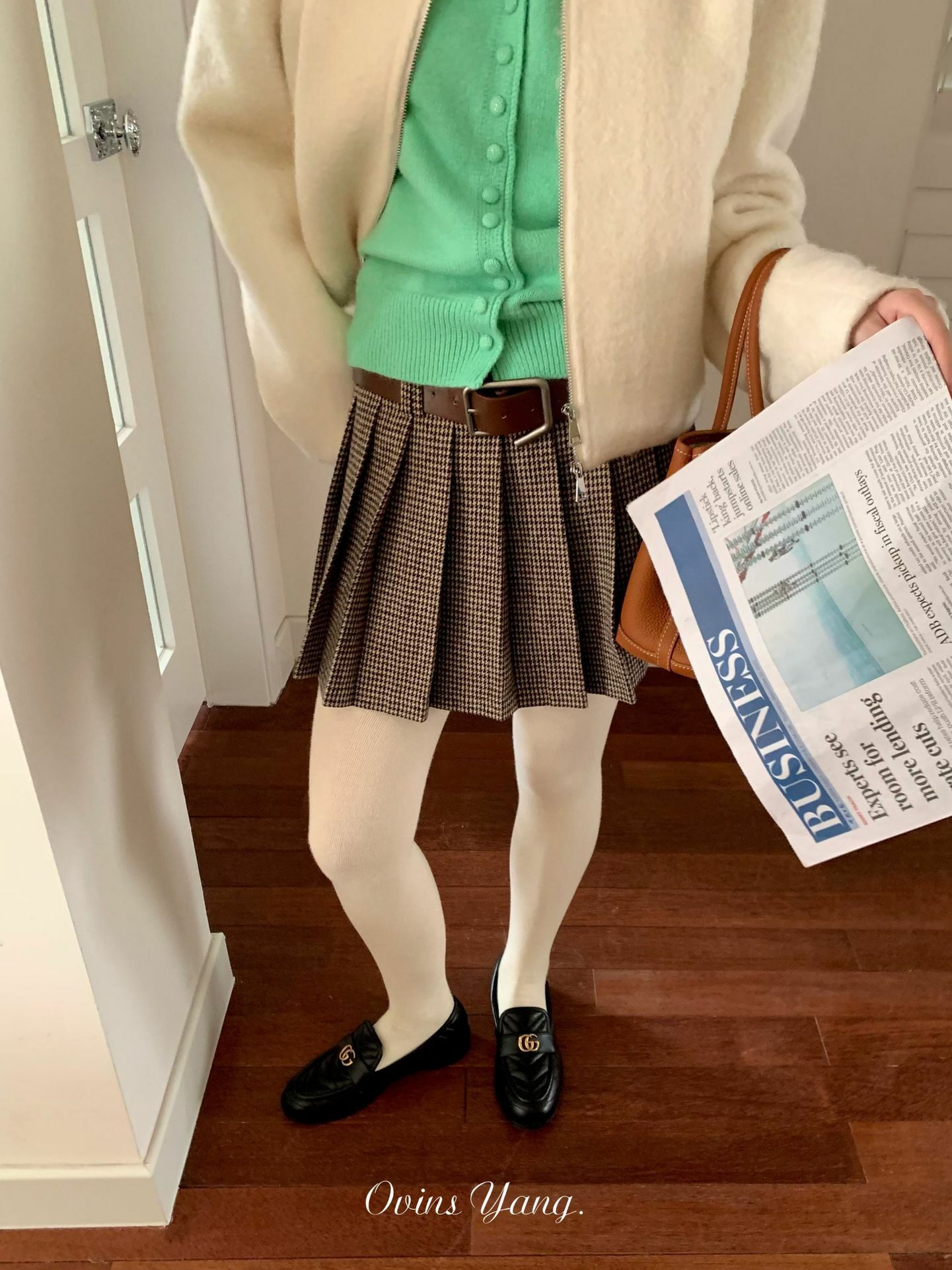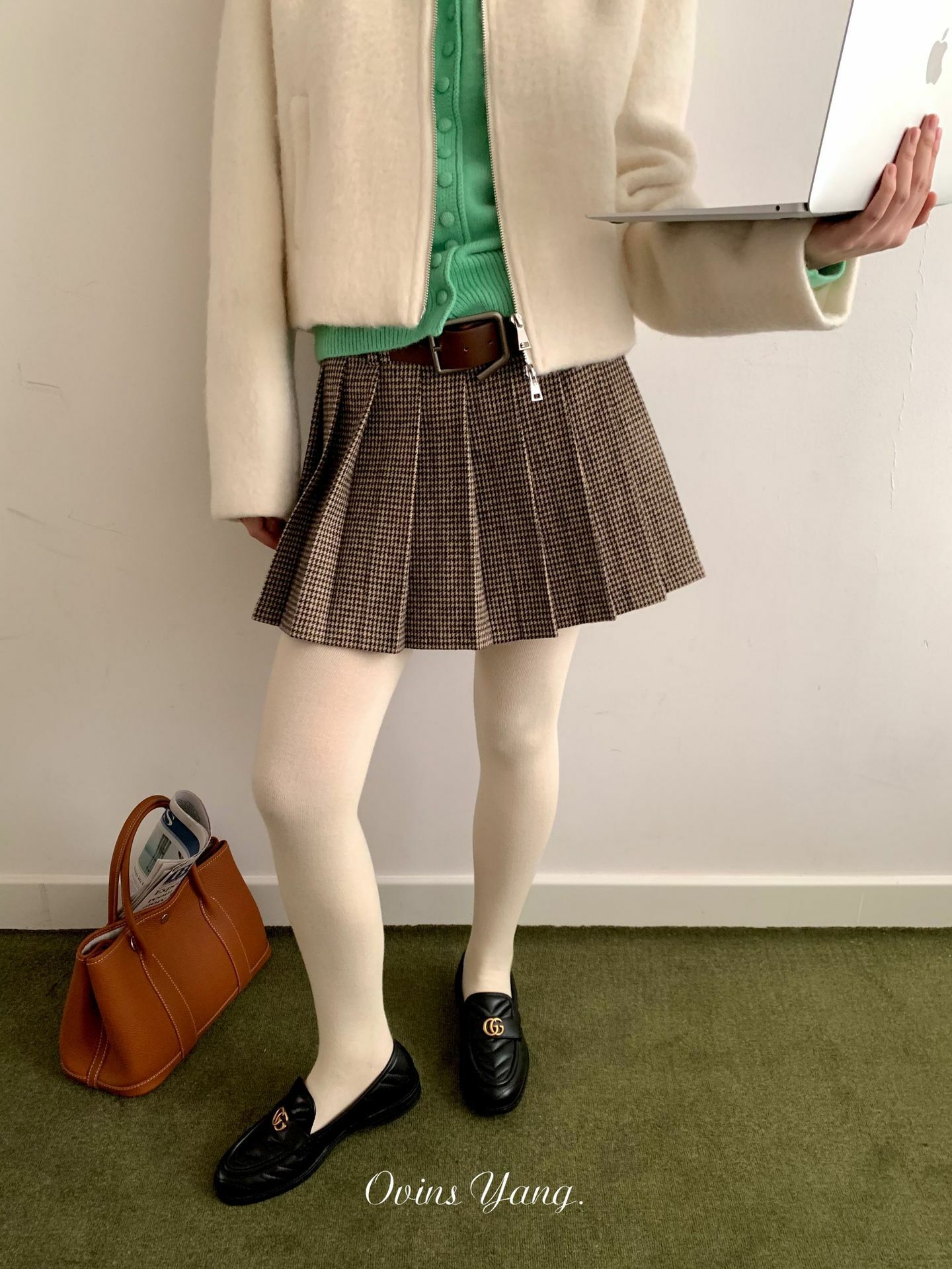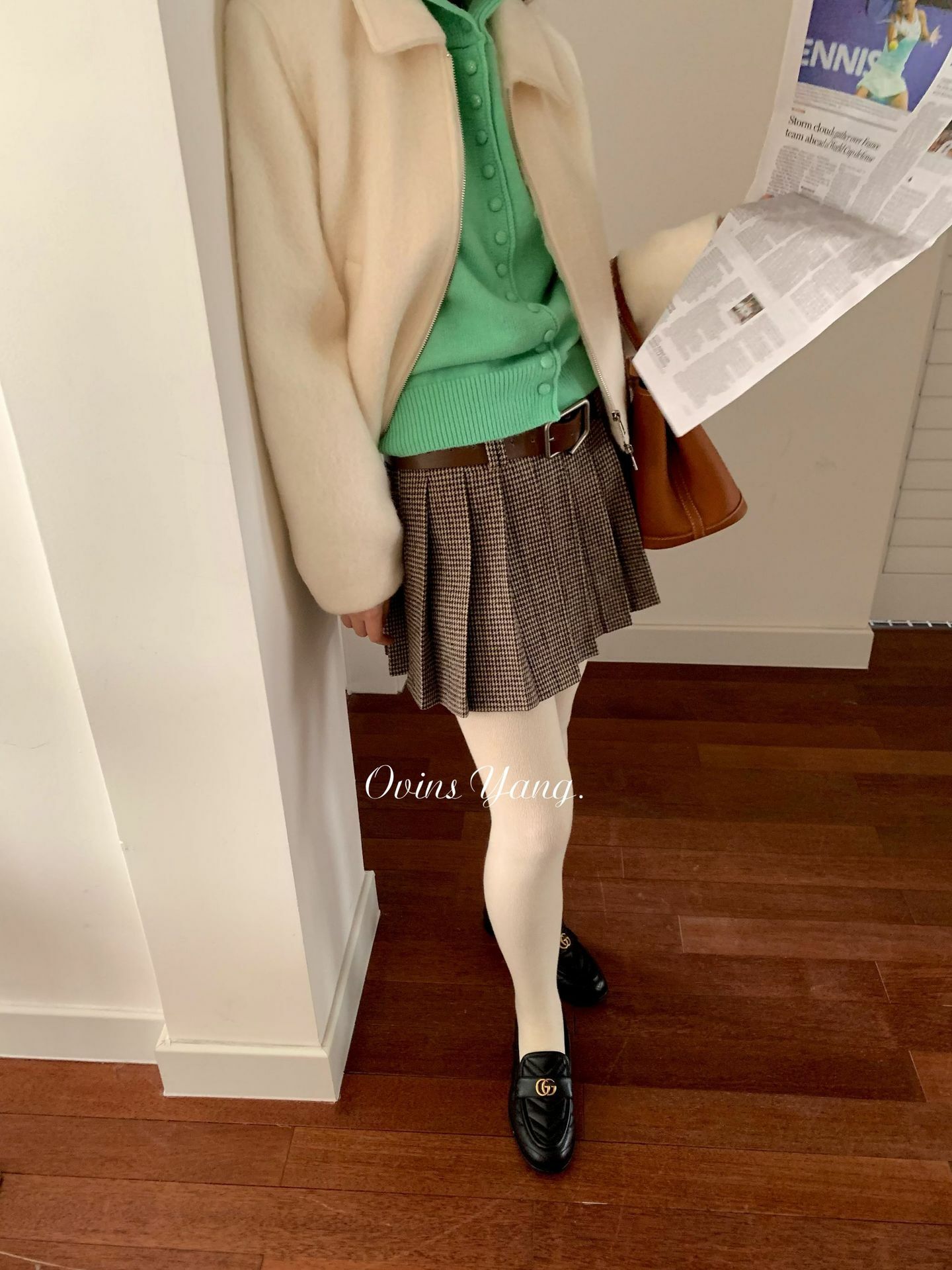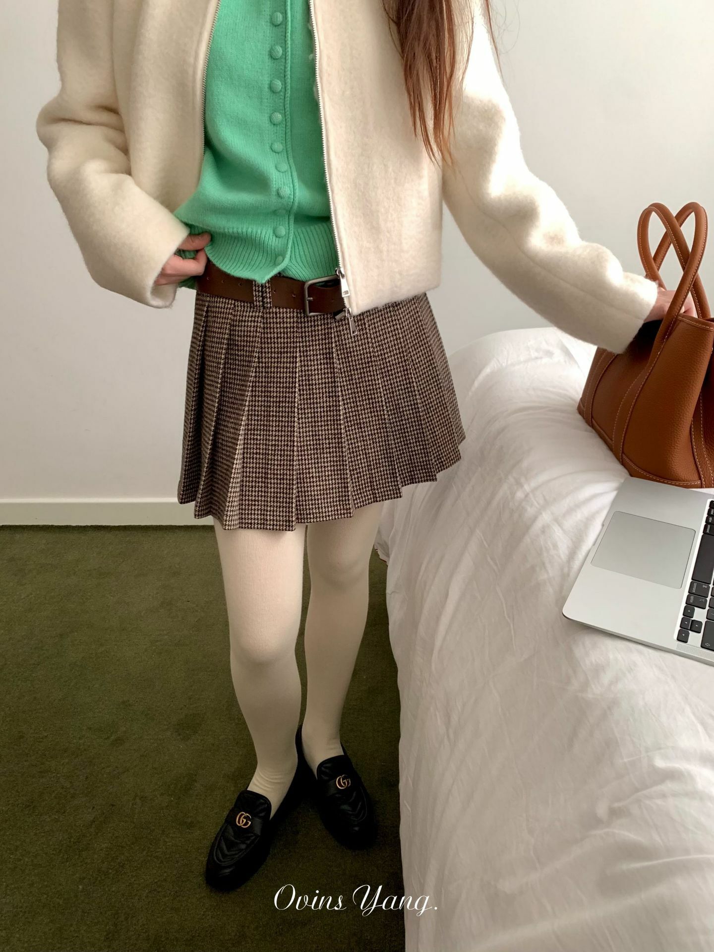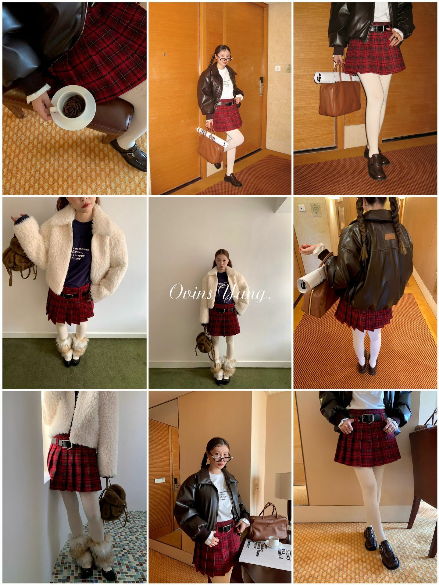 *o-ha-you*【FOY100611】羊毛格紋半身裙秋冬款聖誕感A字短裙百褶裙配腰帶-2色-如有需要請先諮詢
