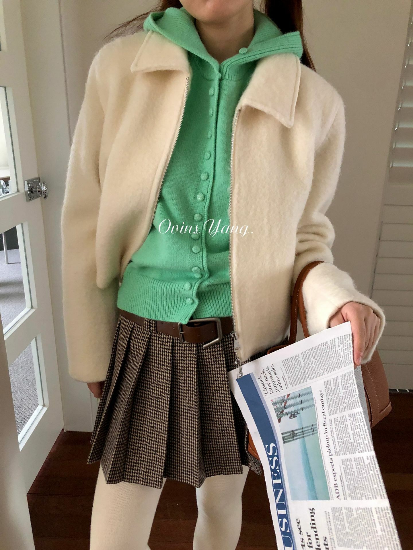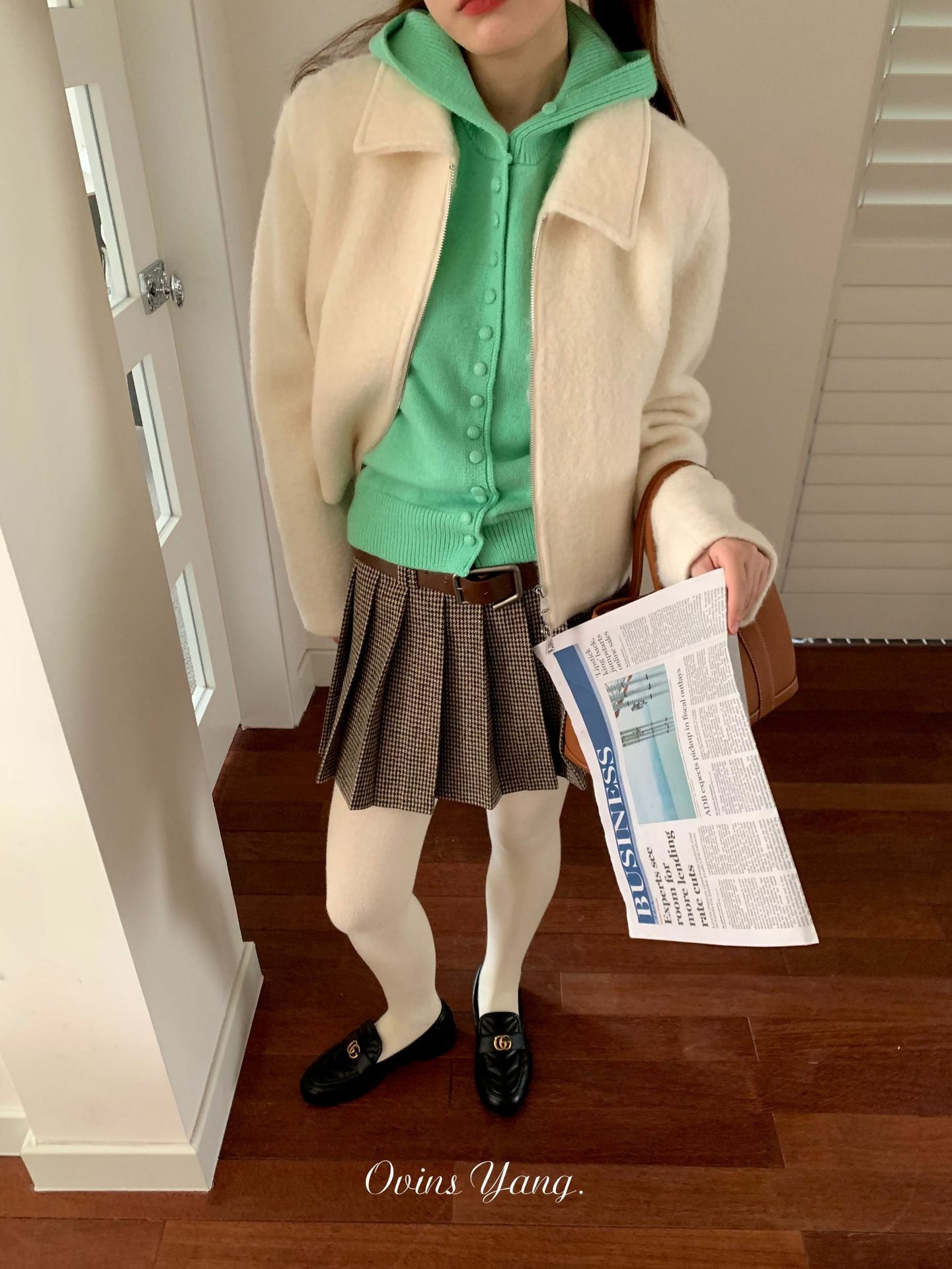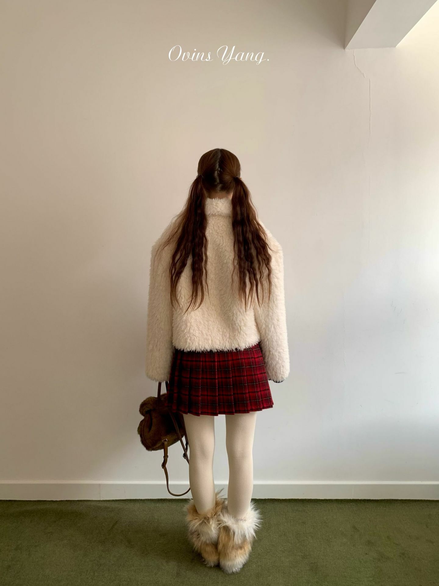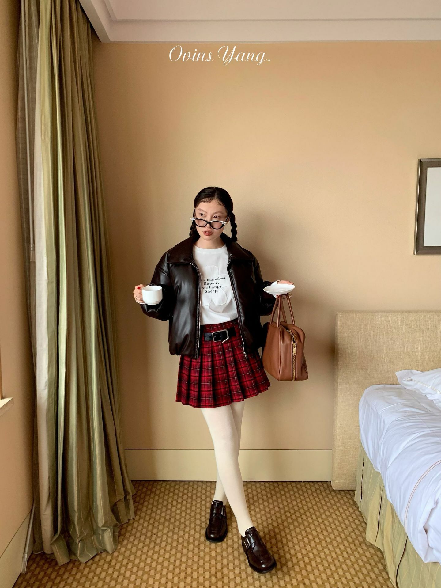 *o-ha-you*【FOY100611】羊毛格紋半身裙秋冬款聖誕感A字短裙百褶裙配腰帶-2色-如有需要請先諮詢