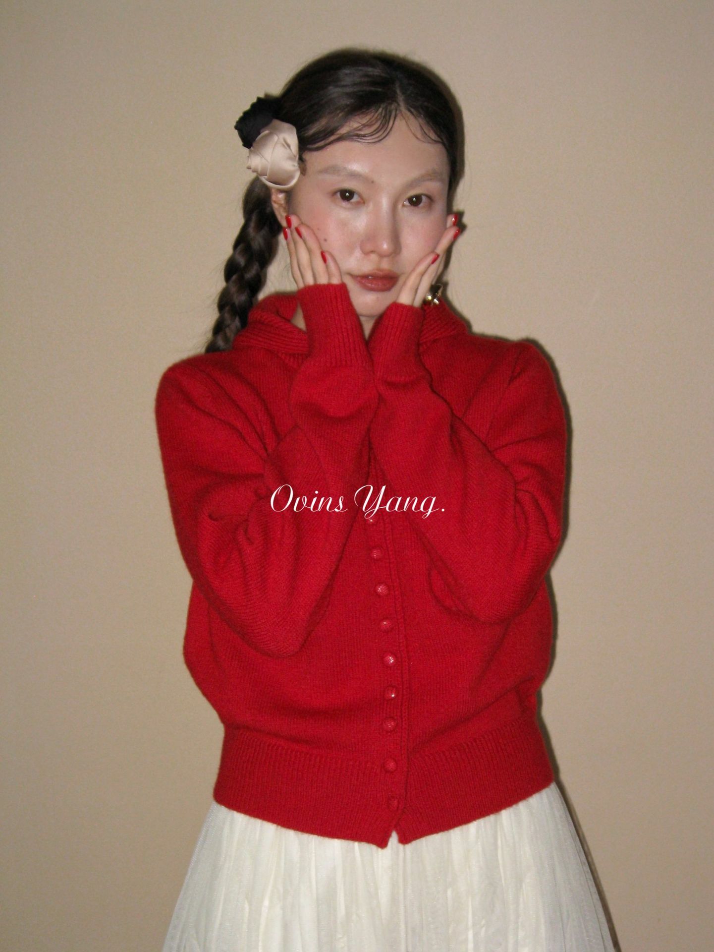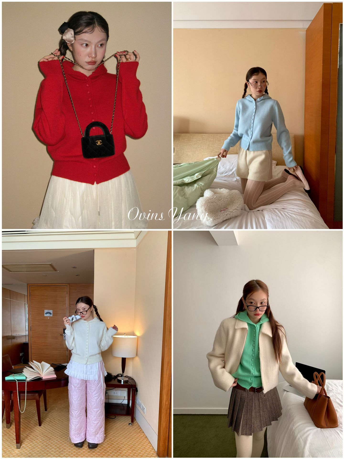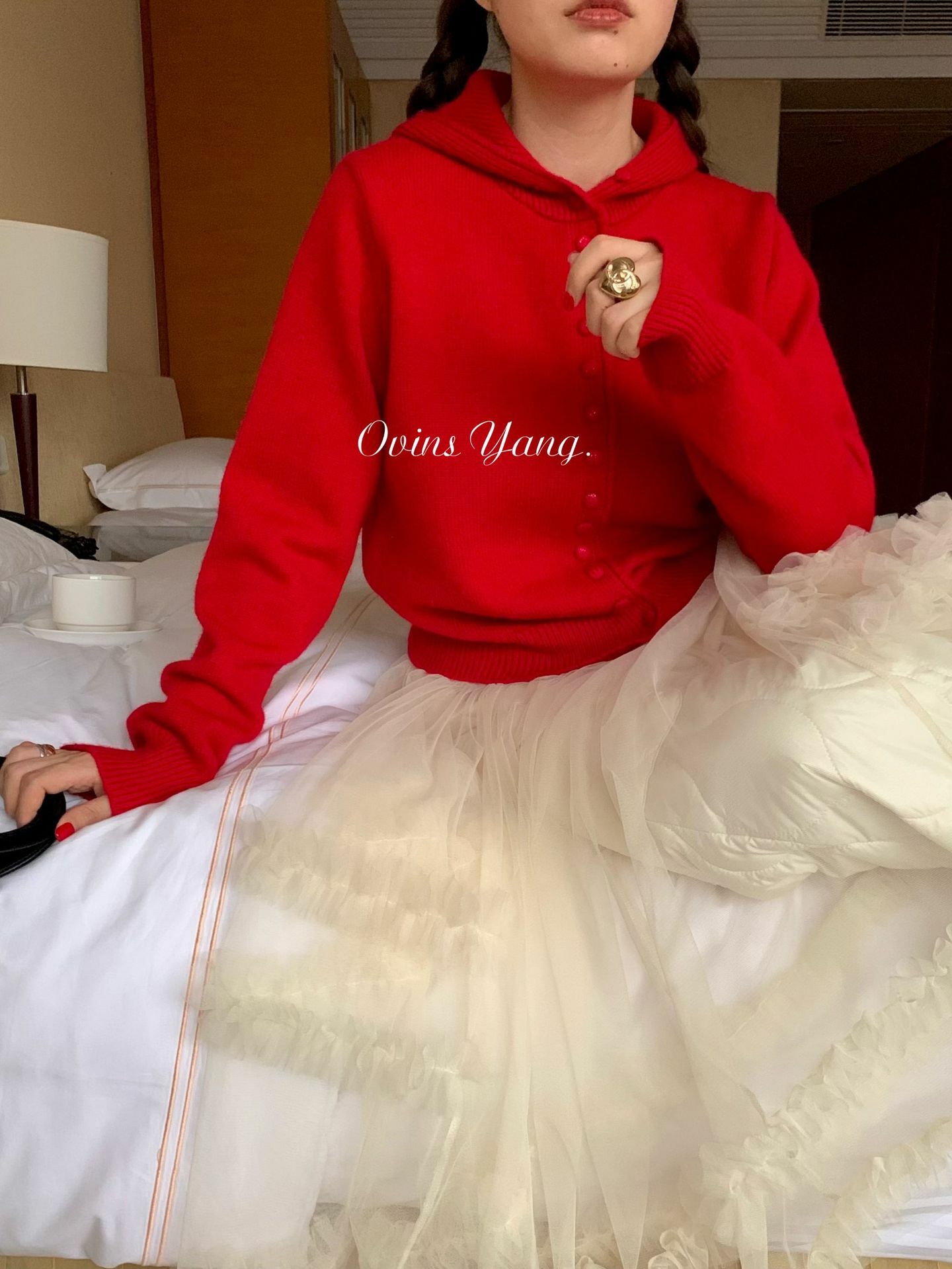 *o-ha-you*【FOY100613】紅色連帽毛衣秋冬穿搭設計感小眾針織開襟衫外套慵懶風-4色-如有需要請先諮詢