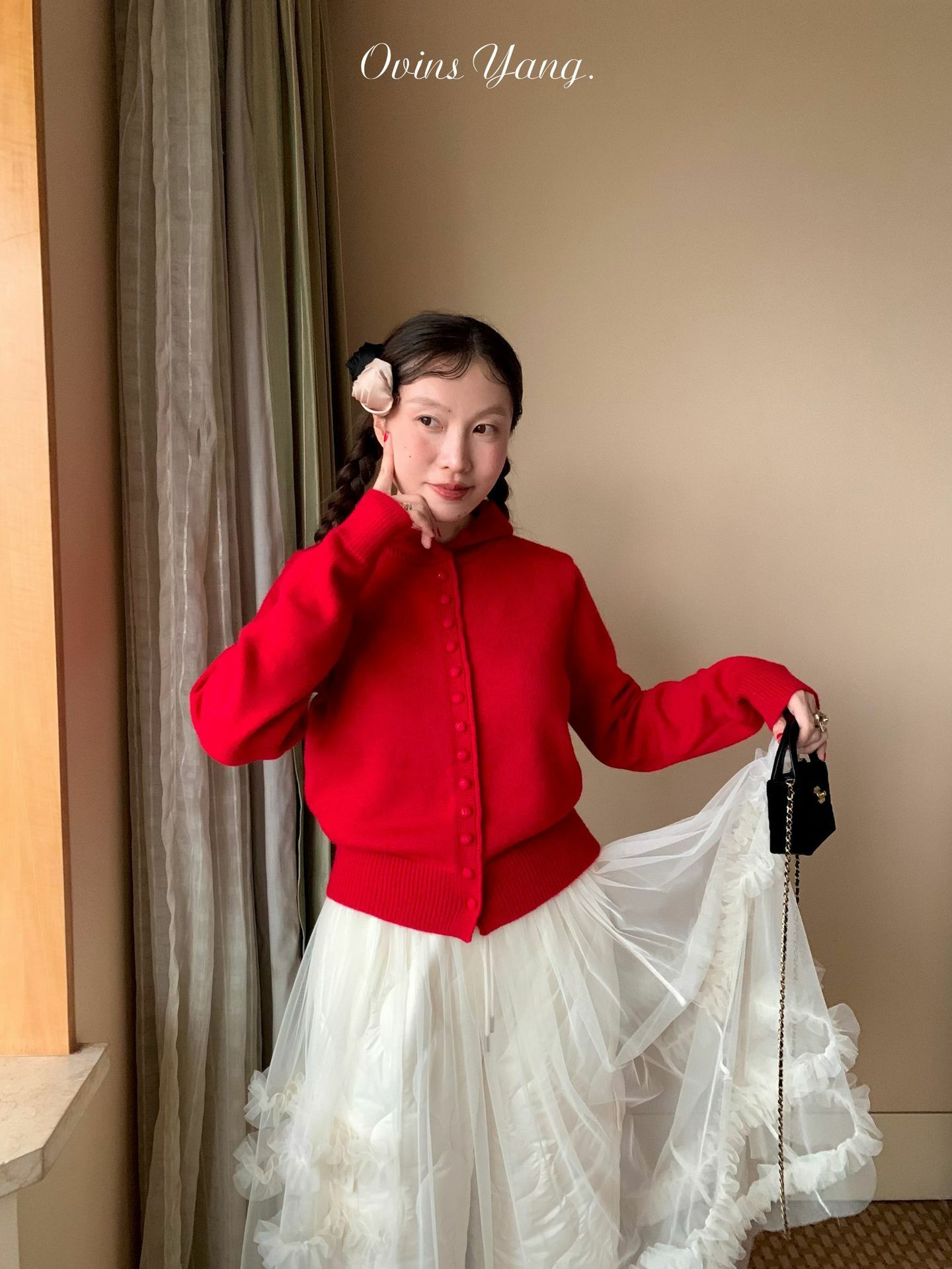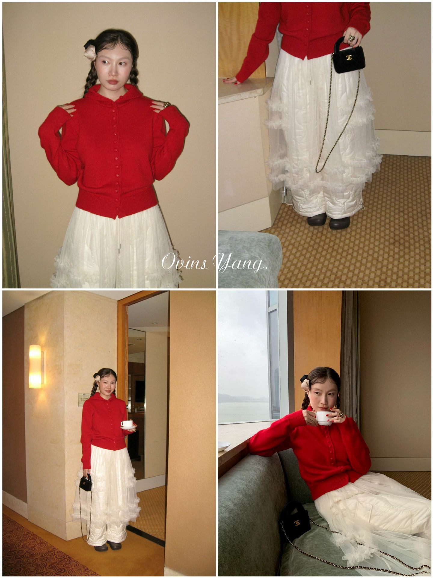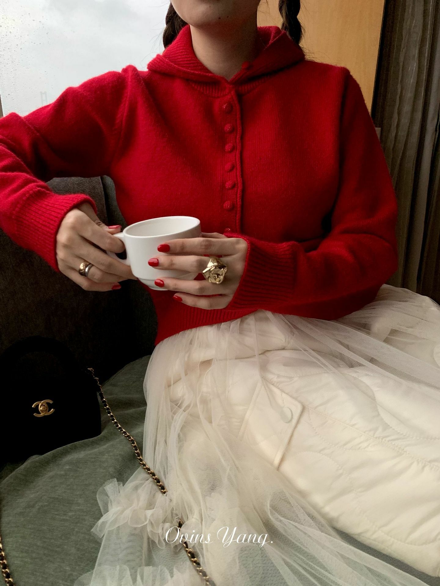 *o-ha-you*【FOY100613】紅色連帽毛衣秋冬穿搭設計感小眾針織開襟衫外套慵懶風-4色-如有需要請先諮詢