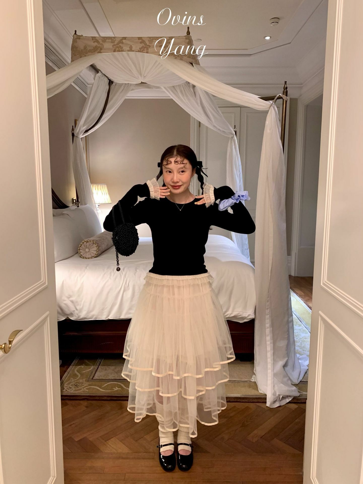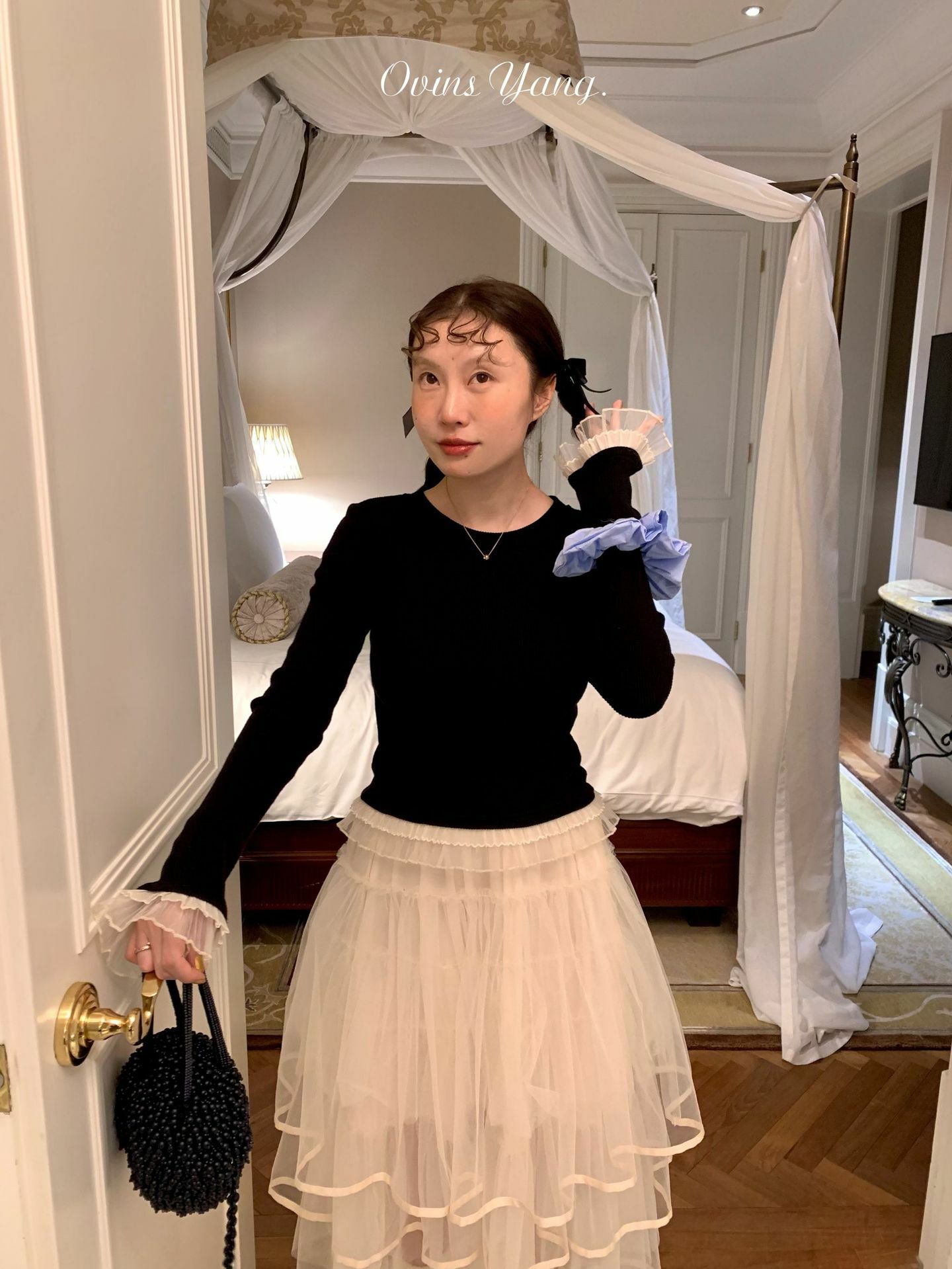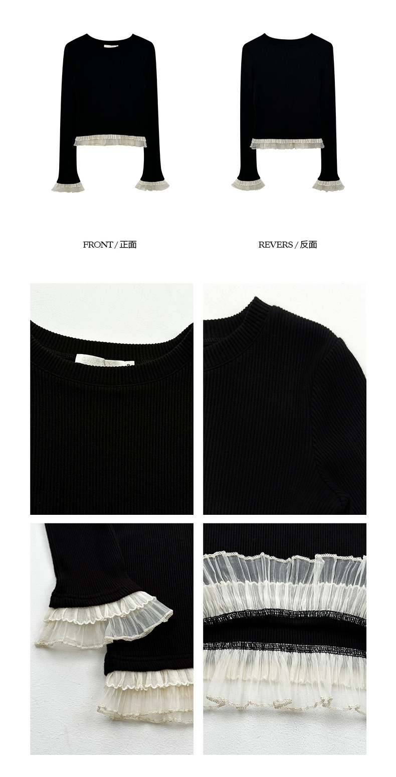 *o-ha-you*【FOY100619】肌理感蕾絲邊下擺內搭打底衫2024新款秋冬長袖T恤上衣-2色-如有需要請先諮詢