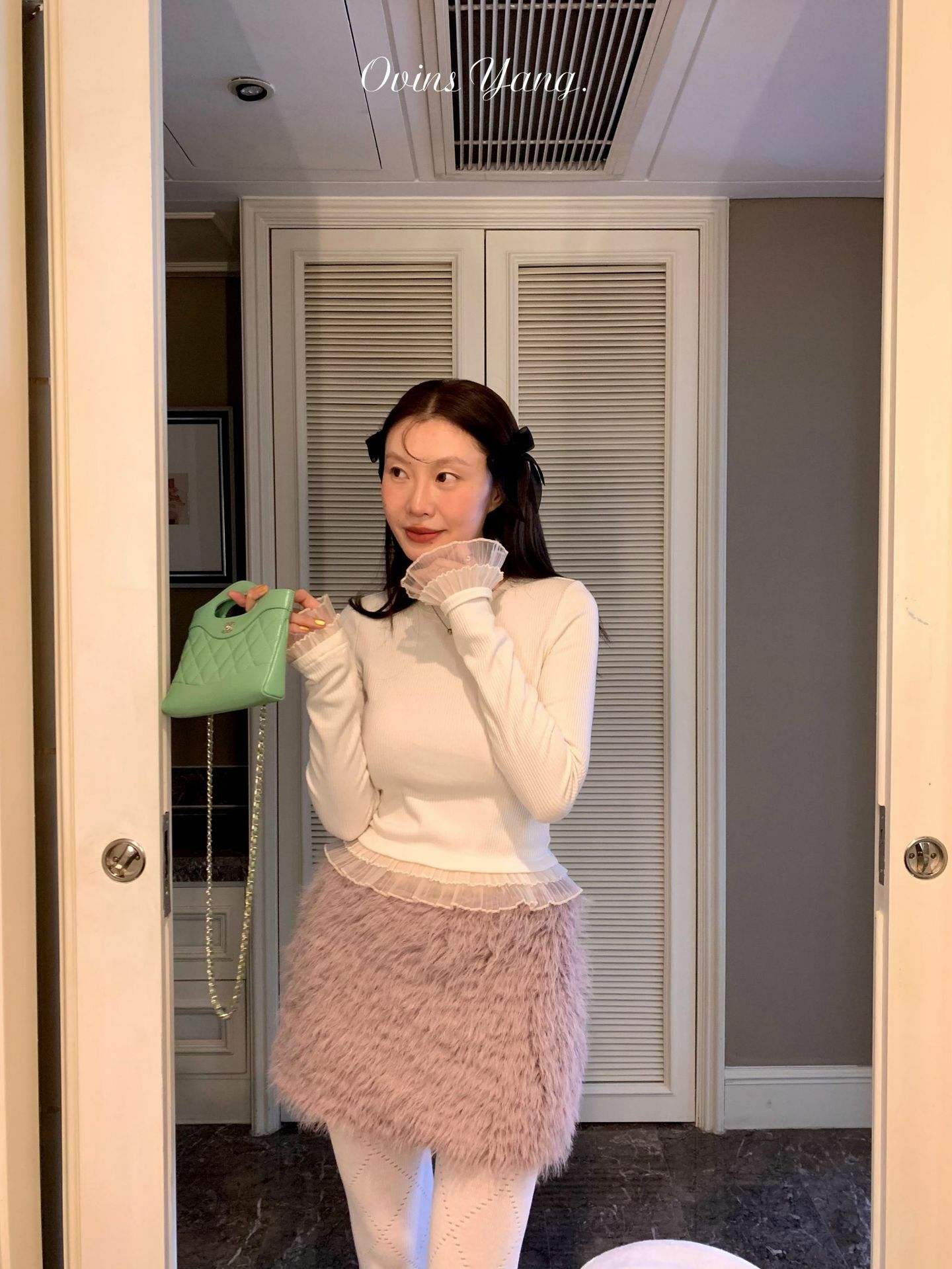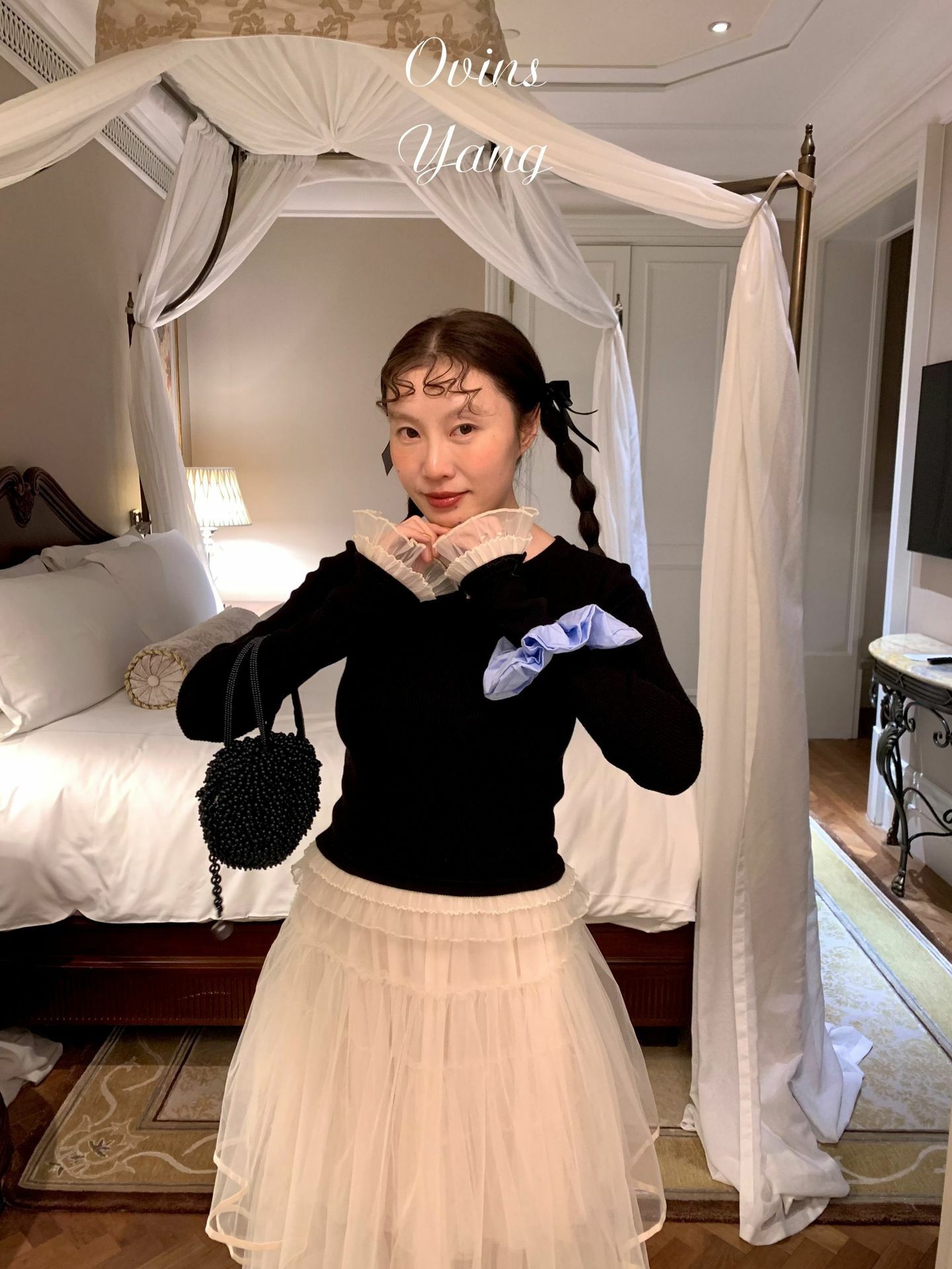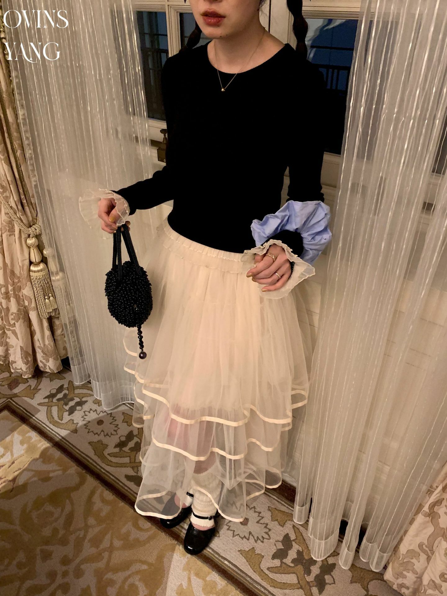*o-ha-you*【FOY100619】肌理感蕾絲邊下擺內搭打底衫2024新款秋冬長袖T恤上衣-2色-如有需要請先諮詢