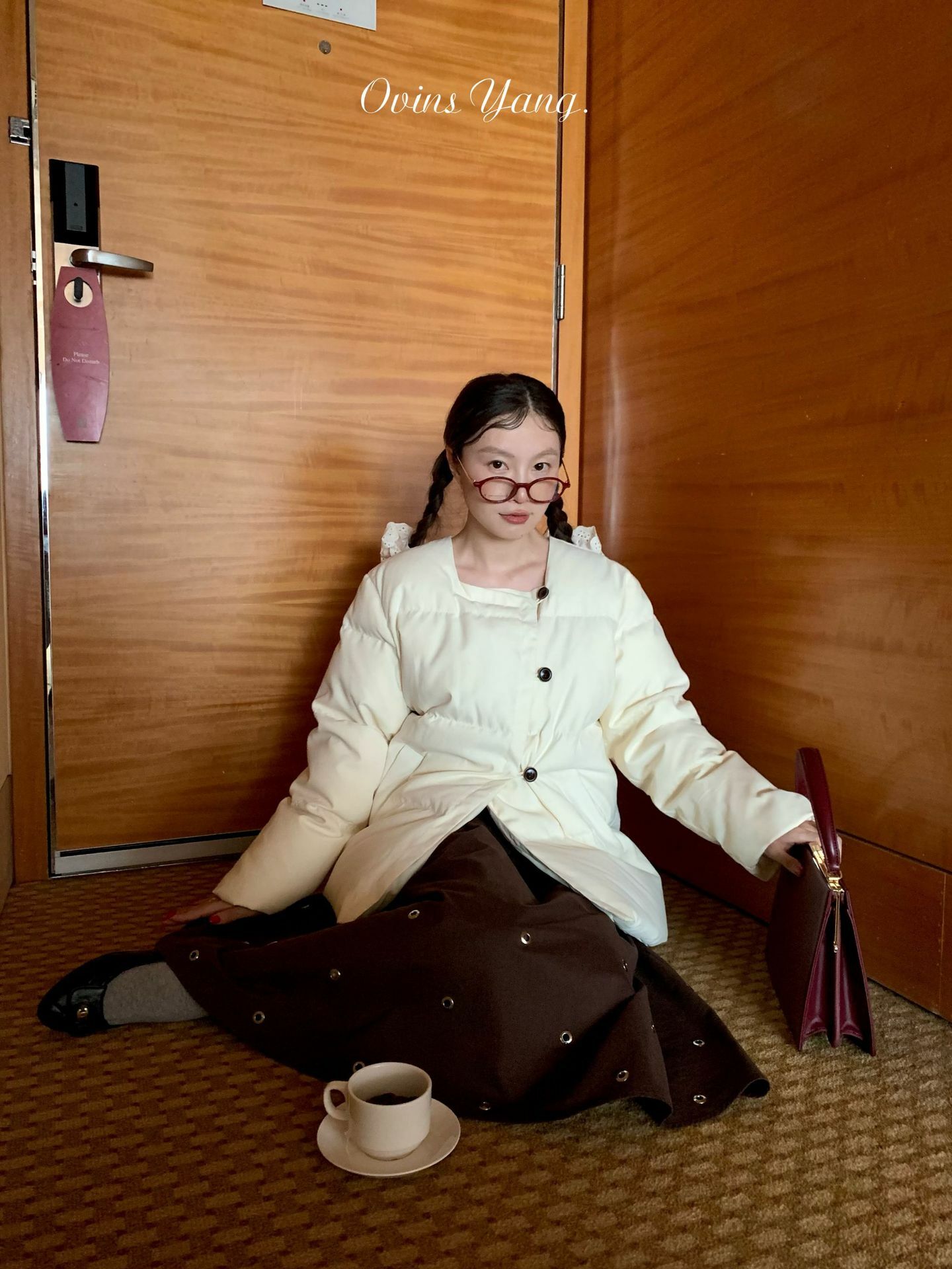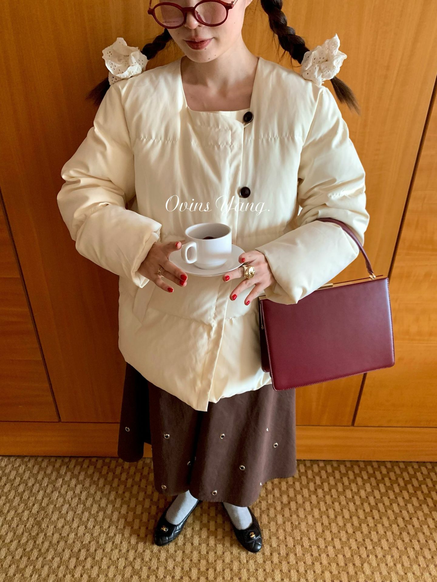 *o-ha-you*【FOY100622】絨感布料和服款羽絨外套女款冬季2024新款高級感麵包服-2色-如有需要請先諮詢