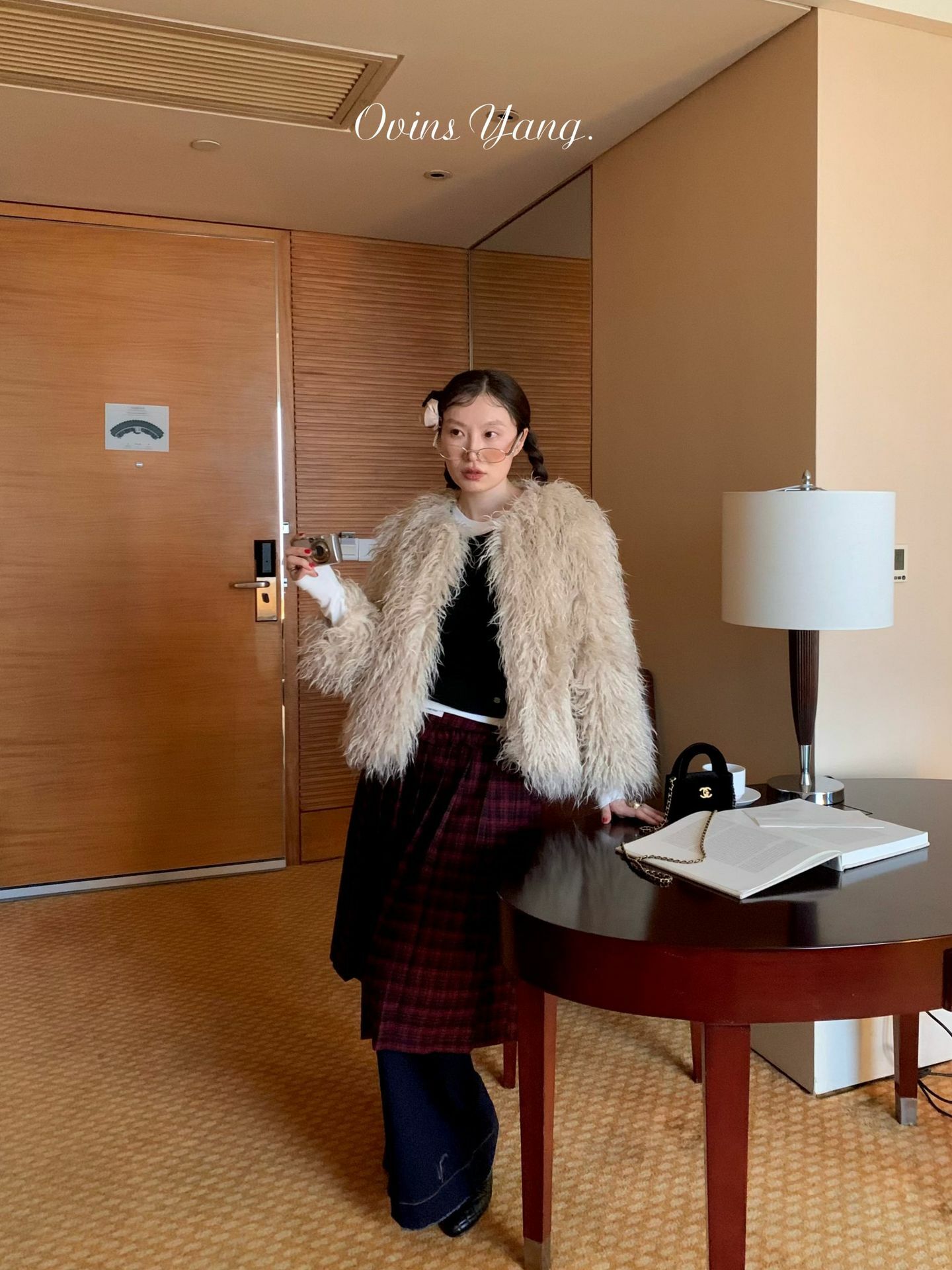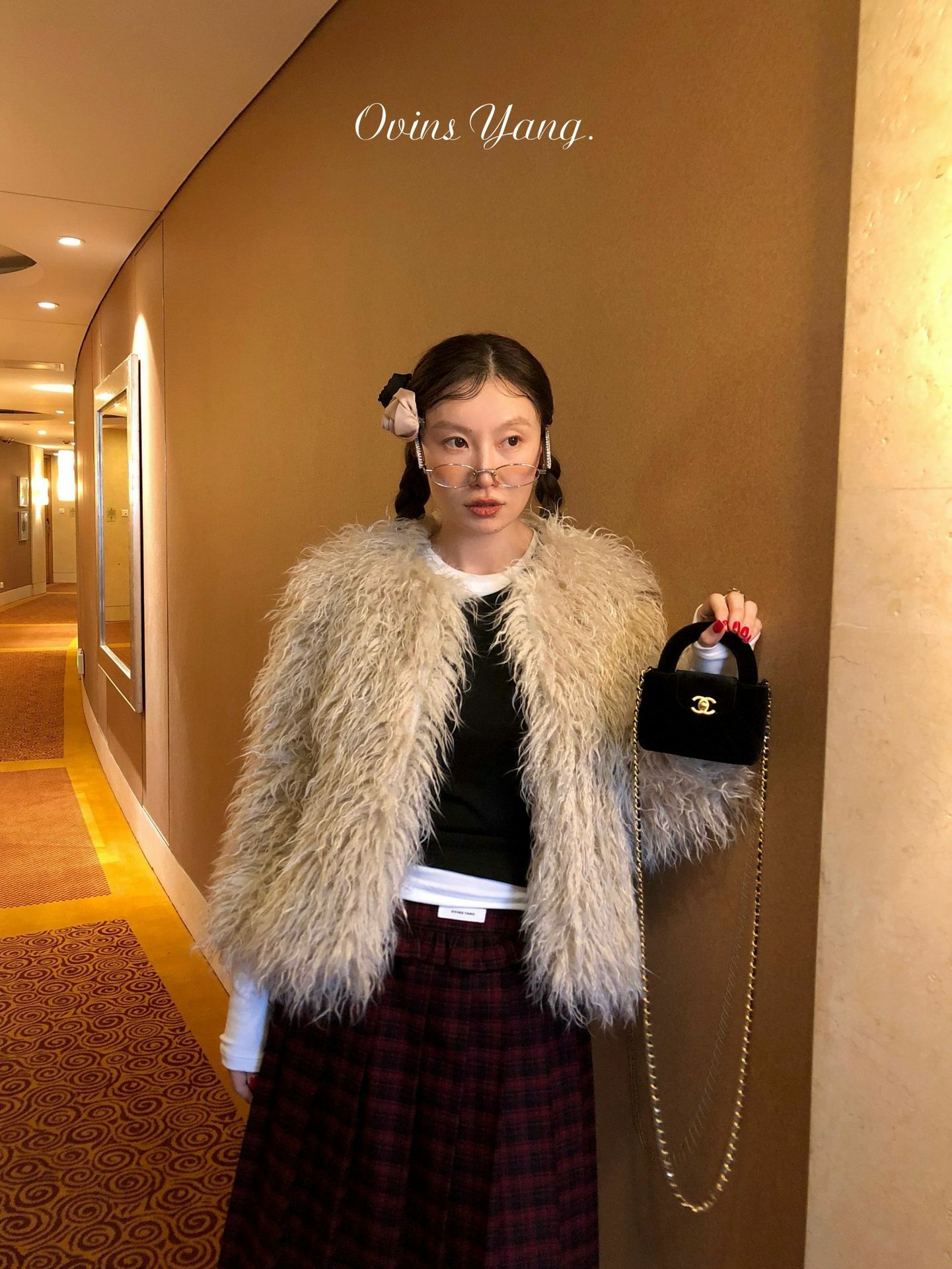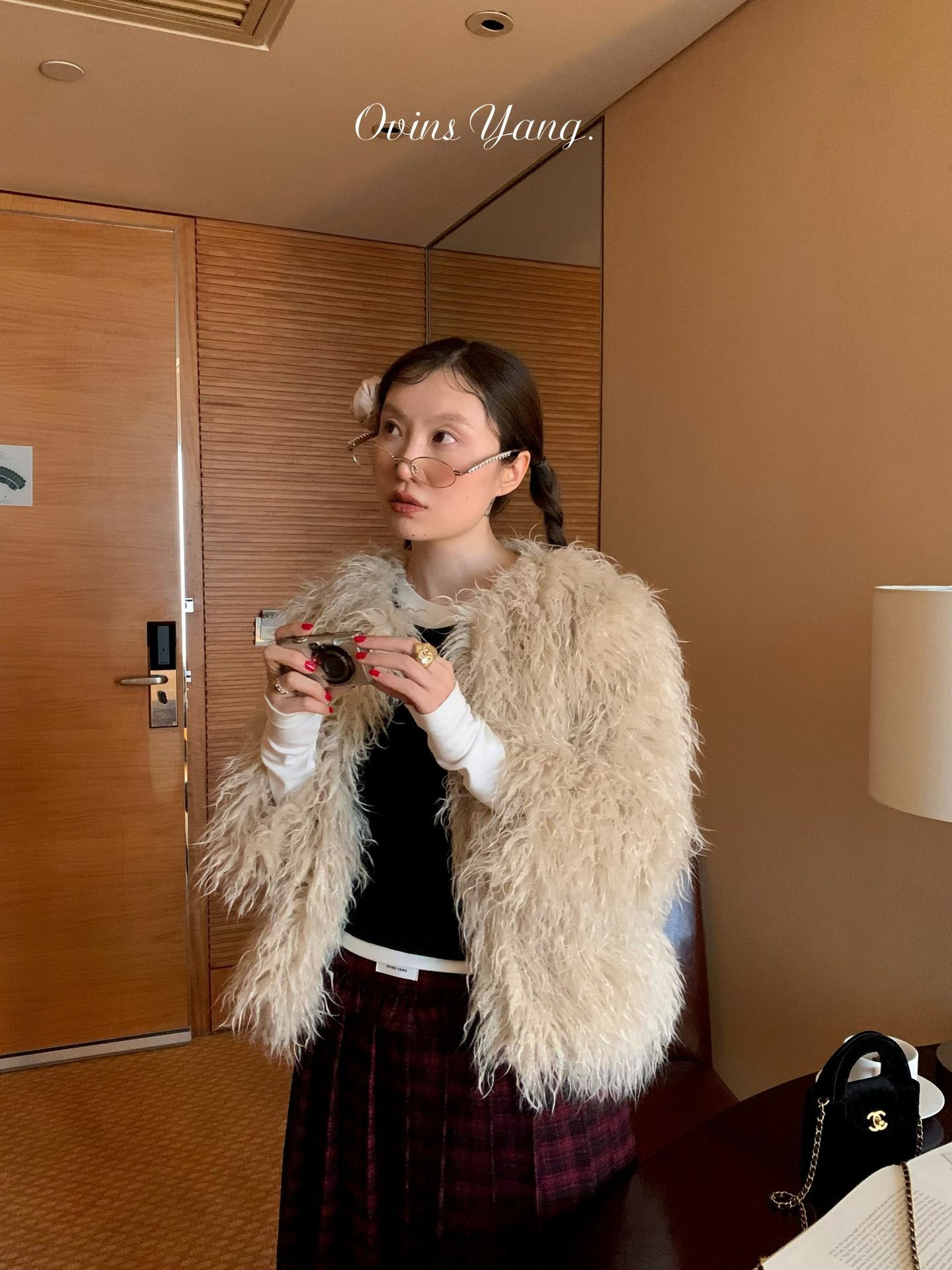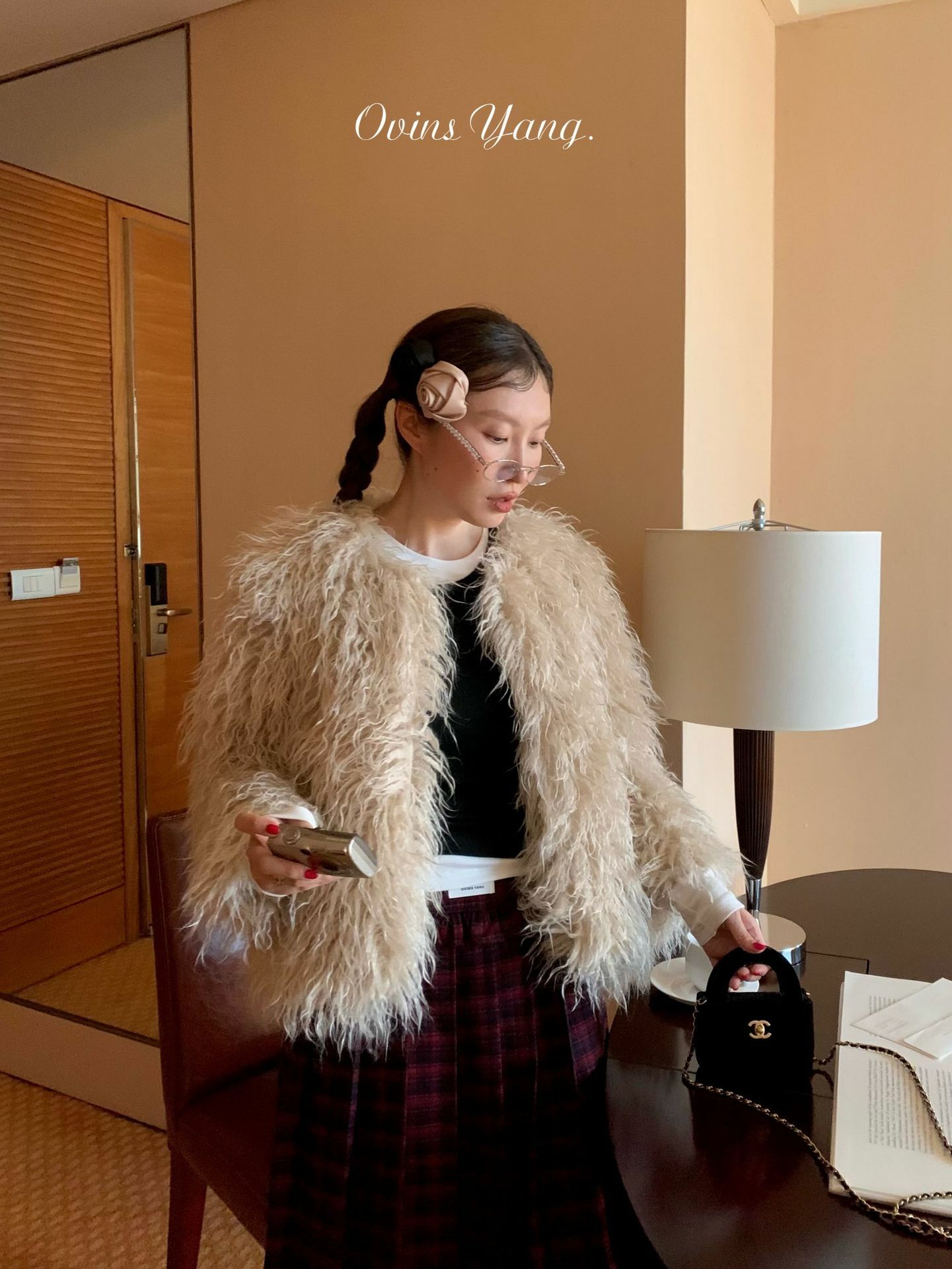 *o-ha-you*【FOY100628】羊灘毛毛外套秋冬高級感設計感小眾今年流行的皮草-2色-如有需要請先諮詢