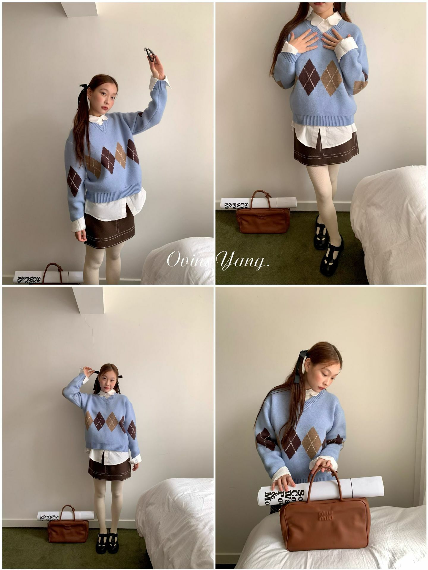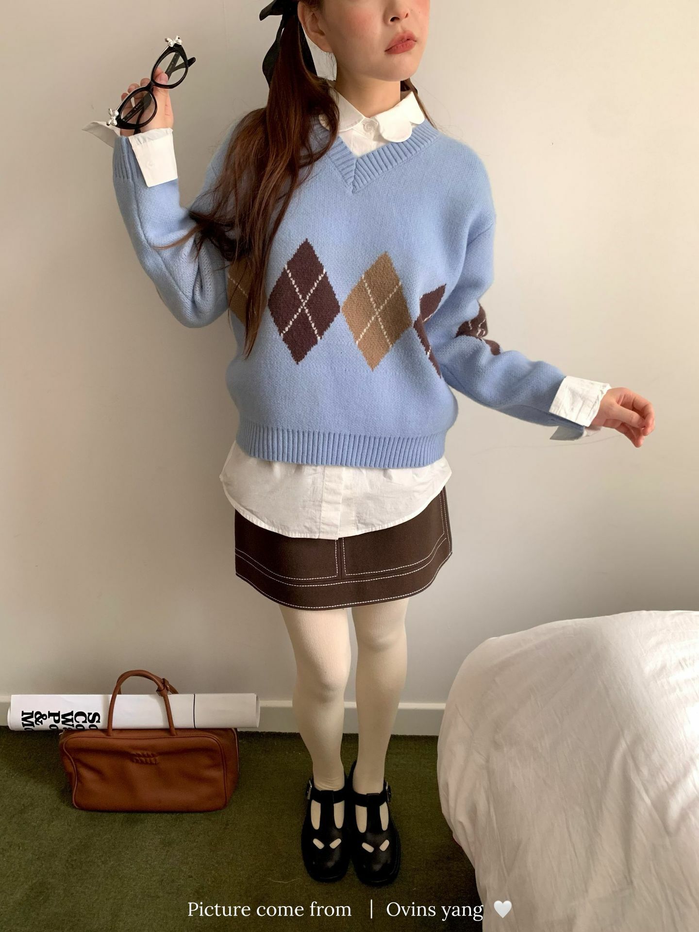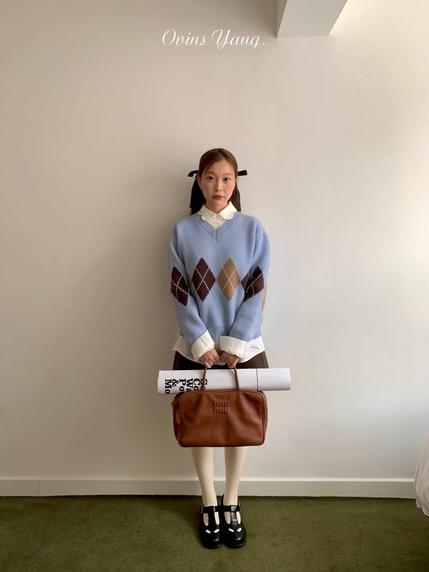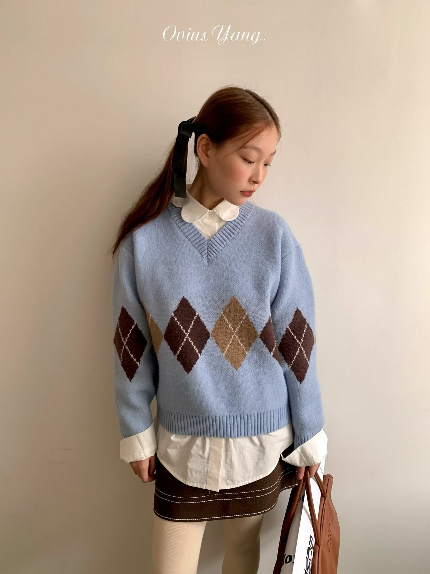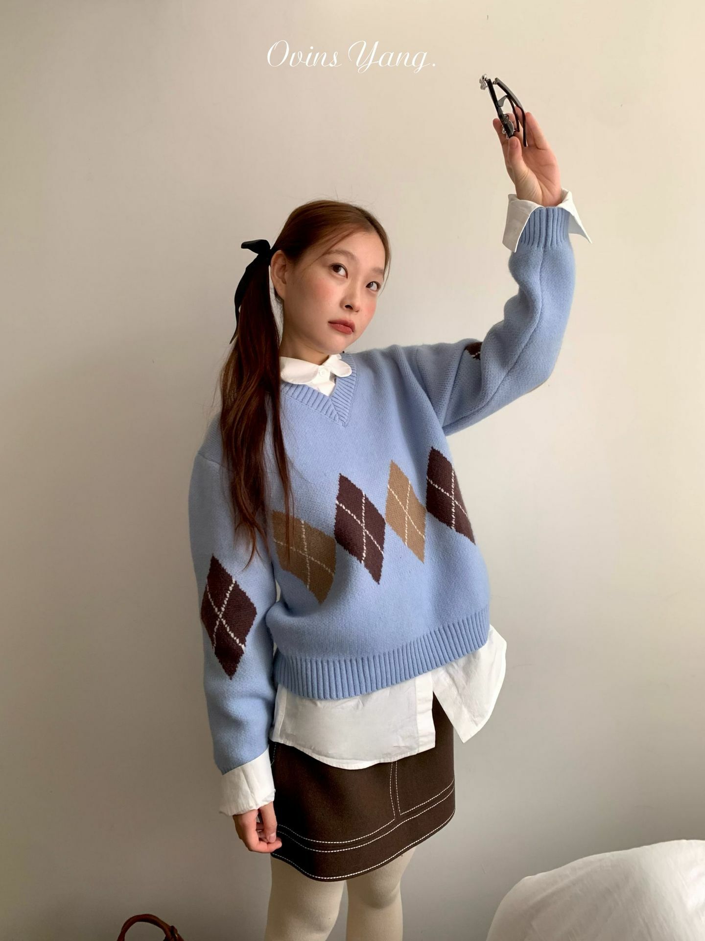 *o-ha-you*【FOY100635】費爾島聖誕紅毛衣秋冬穿搭甜美慵懶風寬鬆V領上衣-2色-如有需要請先諮詢